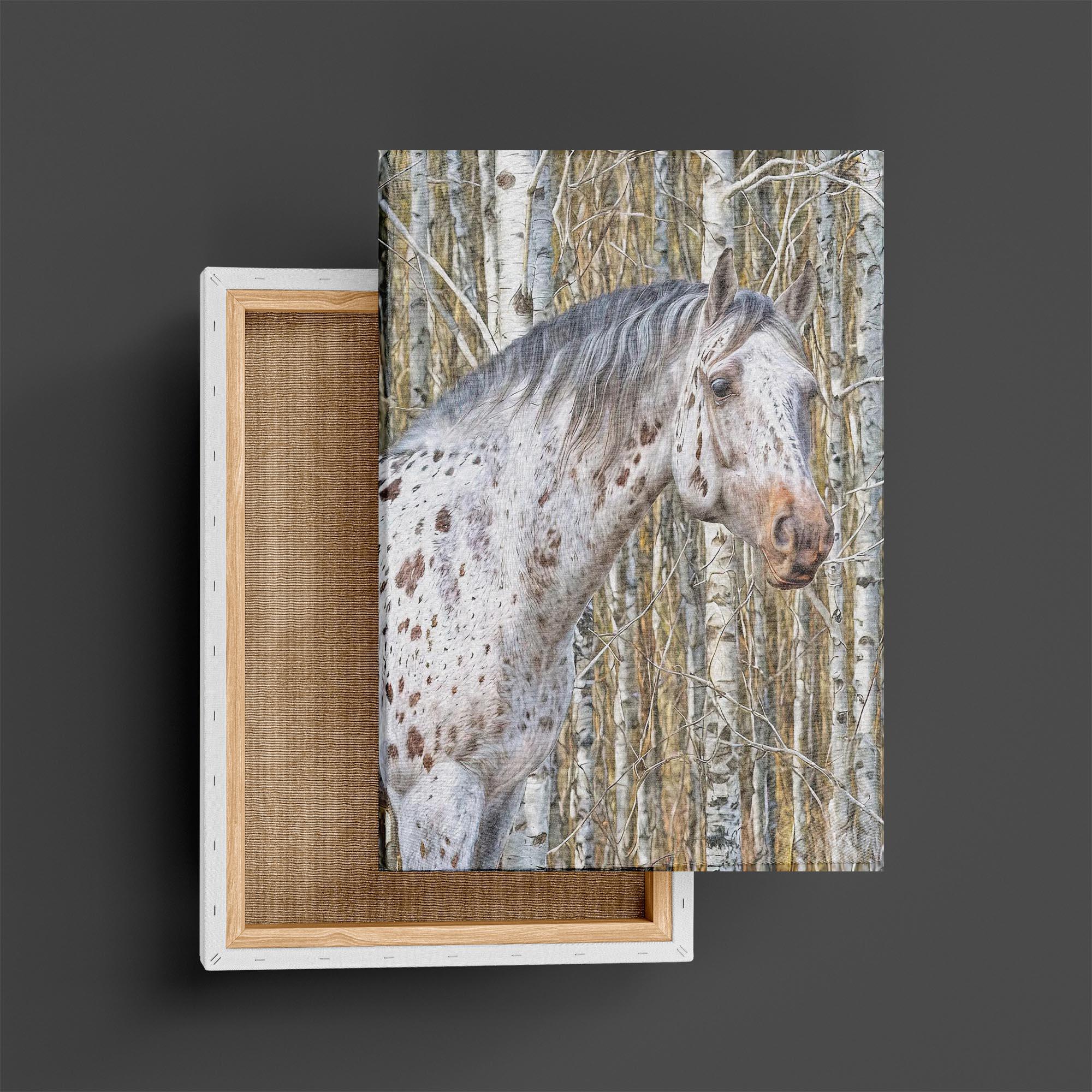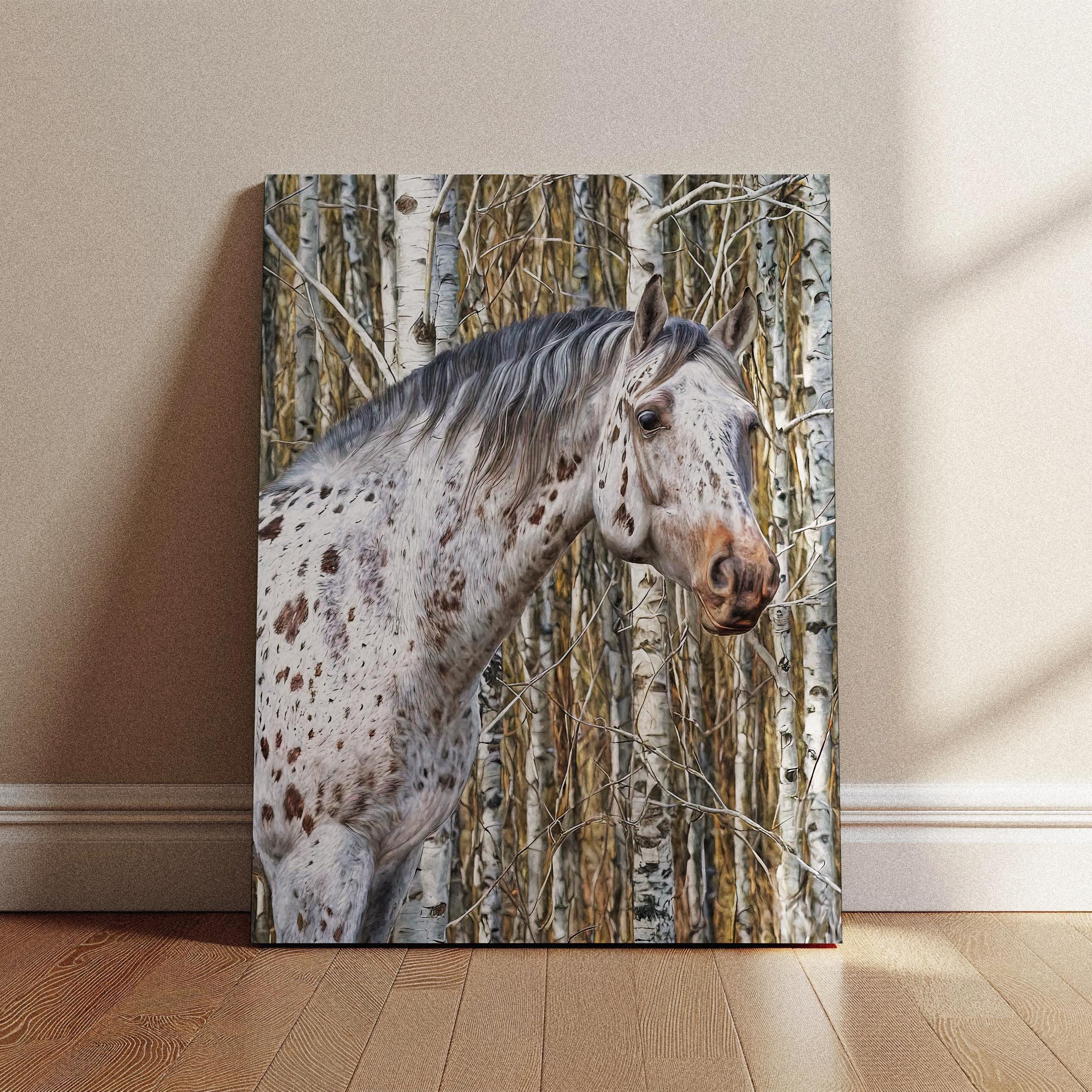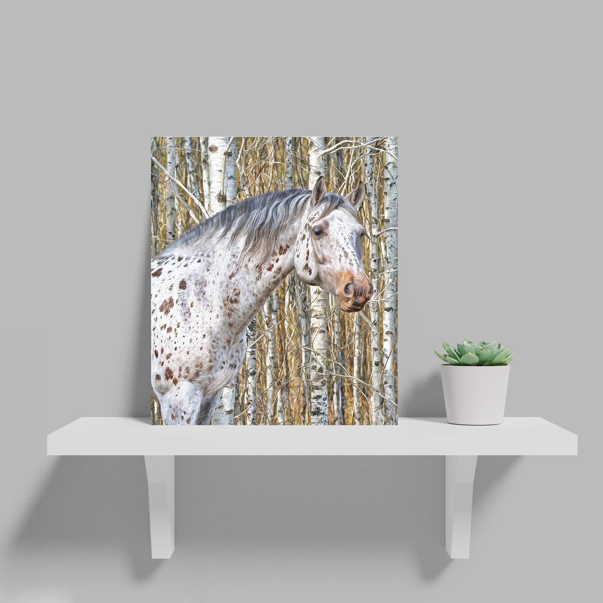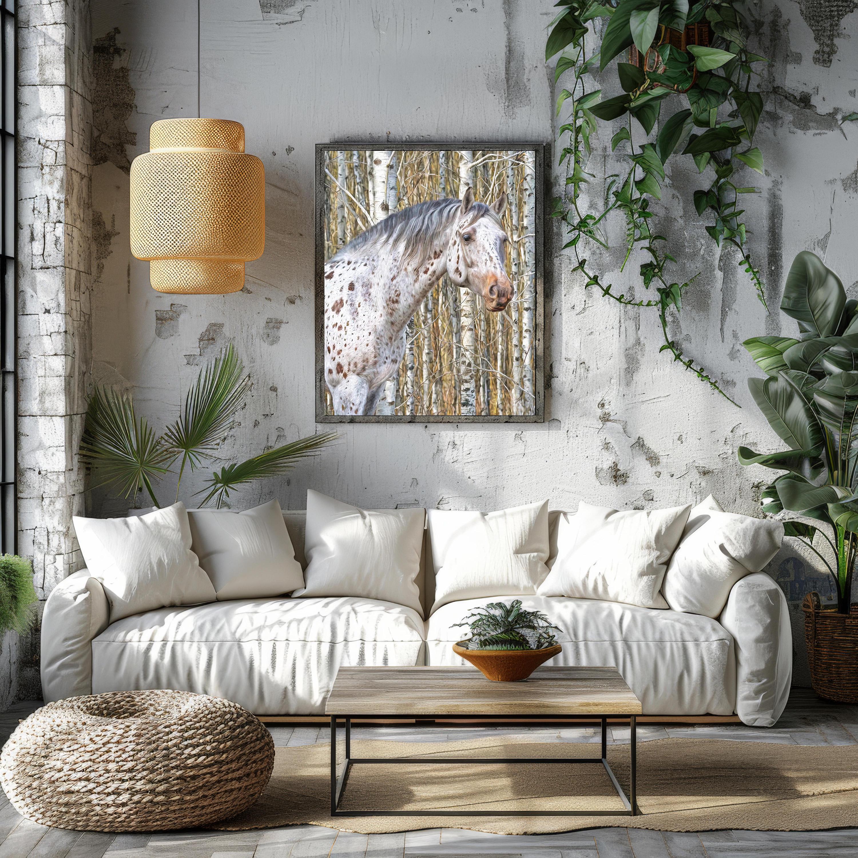 I created this appaloosa equine portrait to bring a stylish animal accent into the home for every horse lover. The soft details and natural tones turn this unique horse into wall décor that feels warm, modern, and timeless, perfect decor for adding personality and charm to any space.