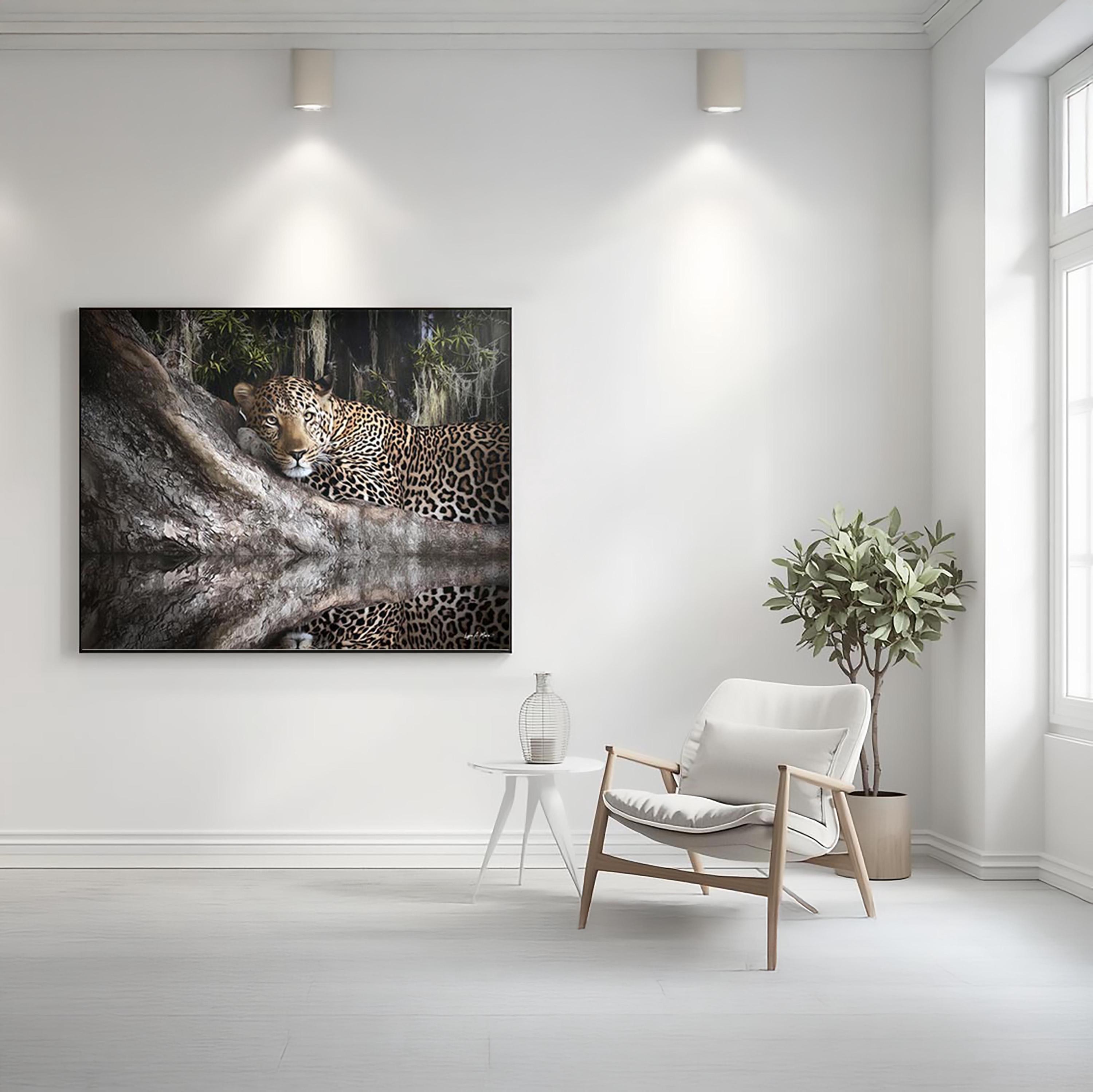 I created this big cat artwork because I wanted to capture a peaceful moment in the wild. The leopard resting by the water shows both strength and calm, and I liked the balance of power and relaxation in that scene.
