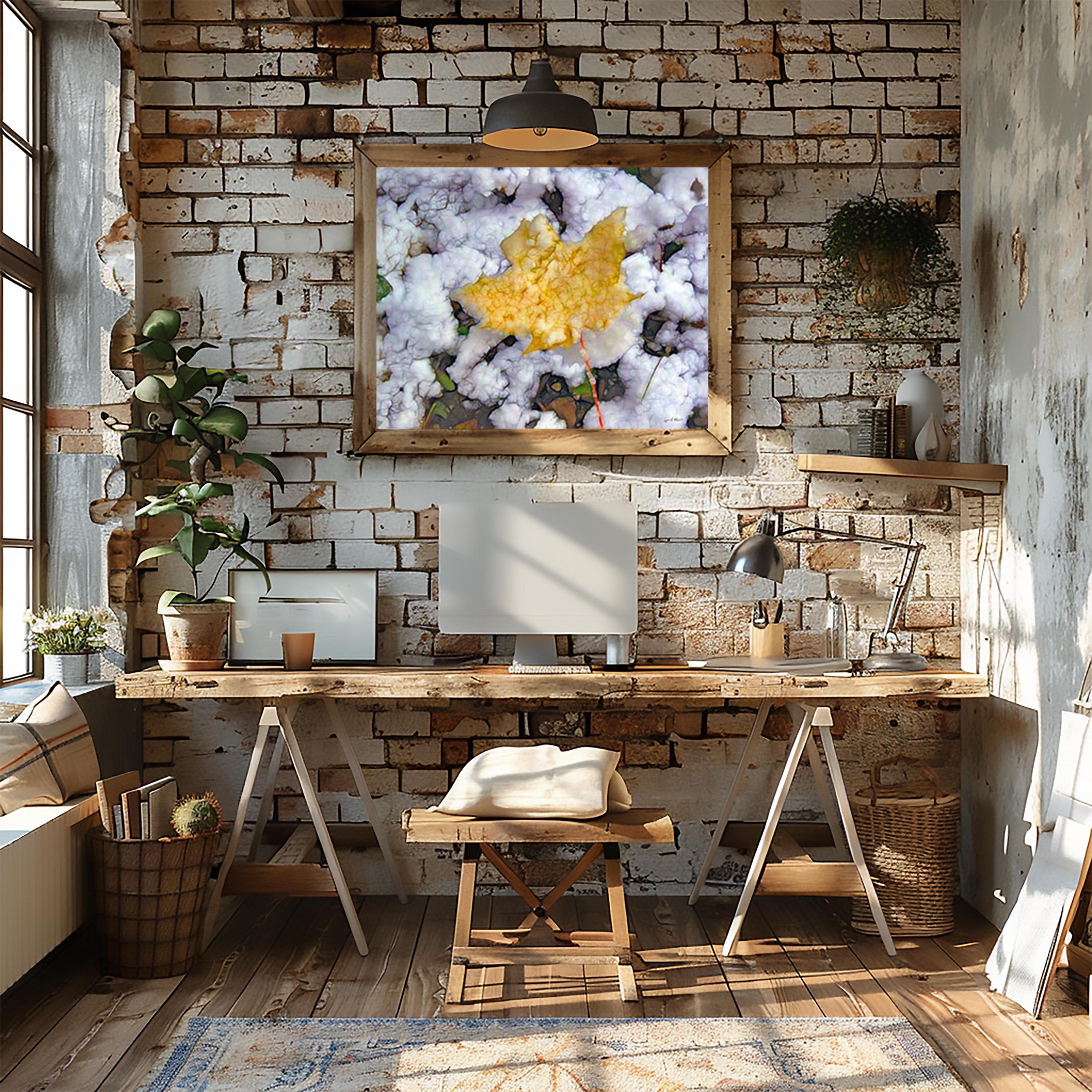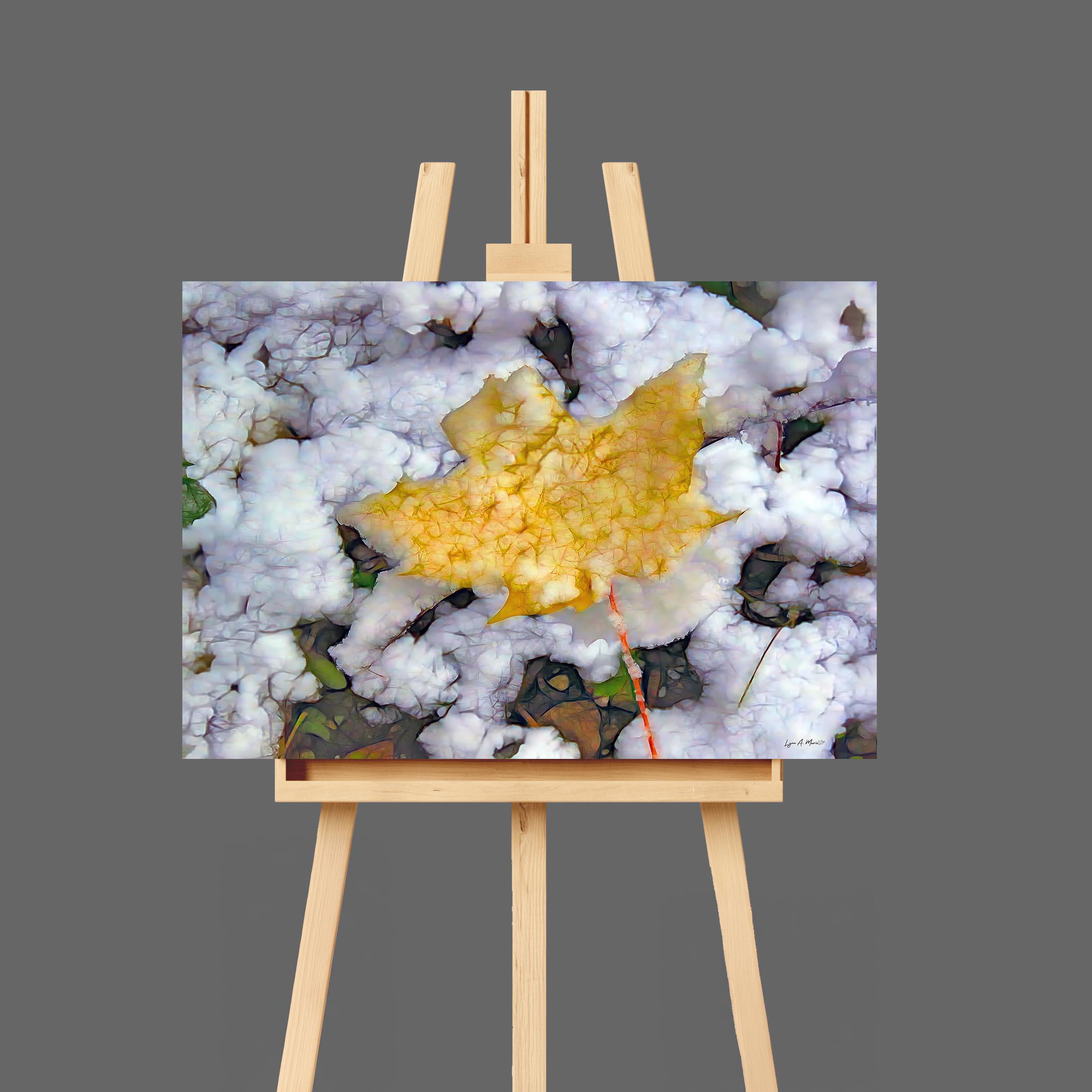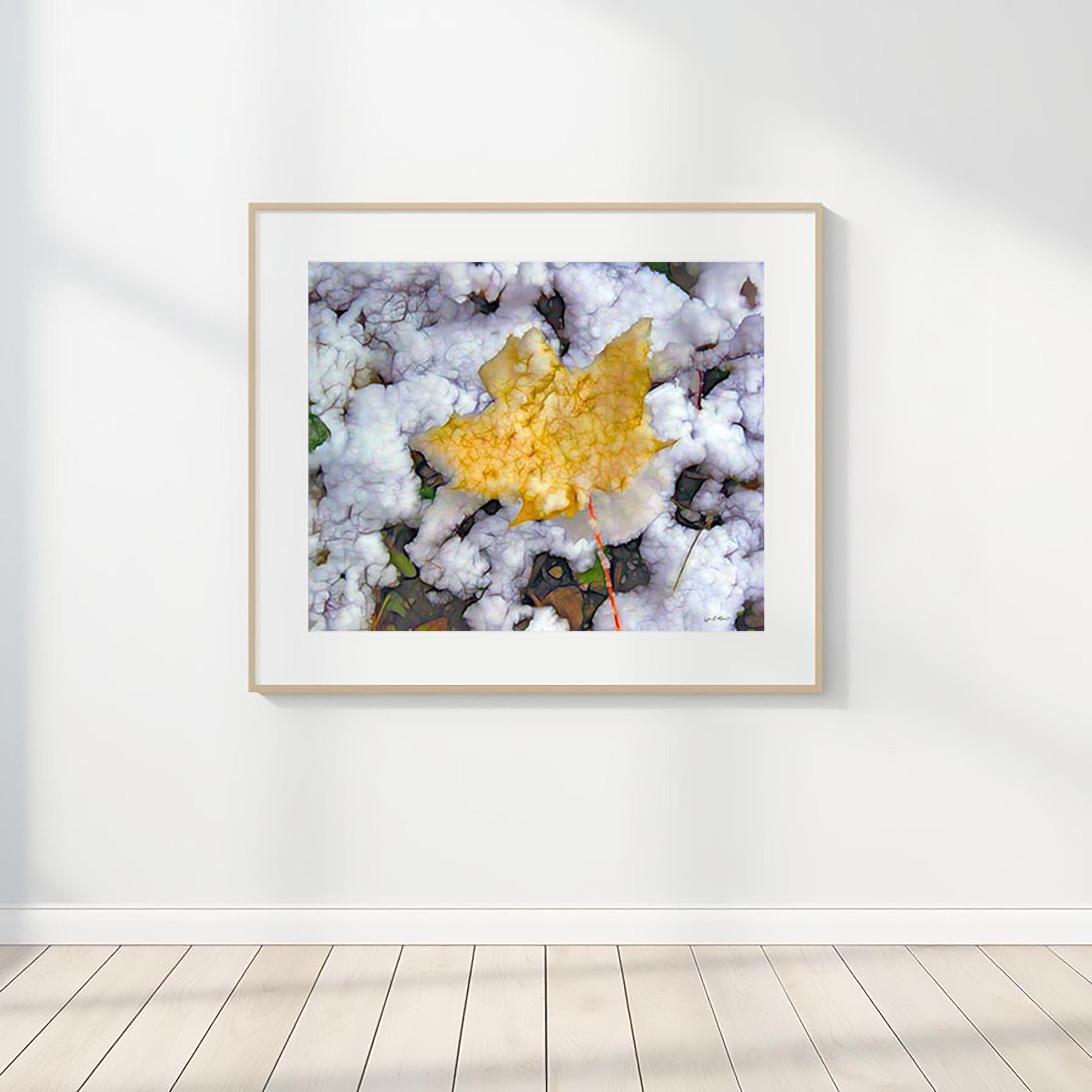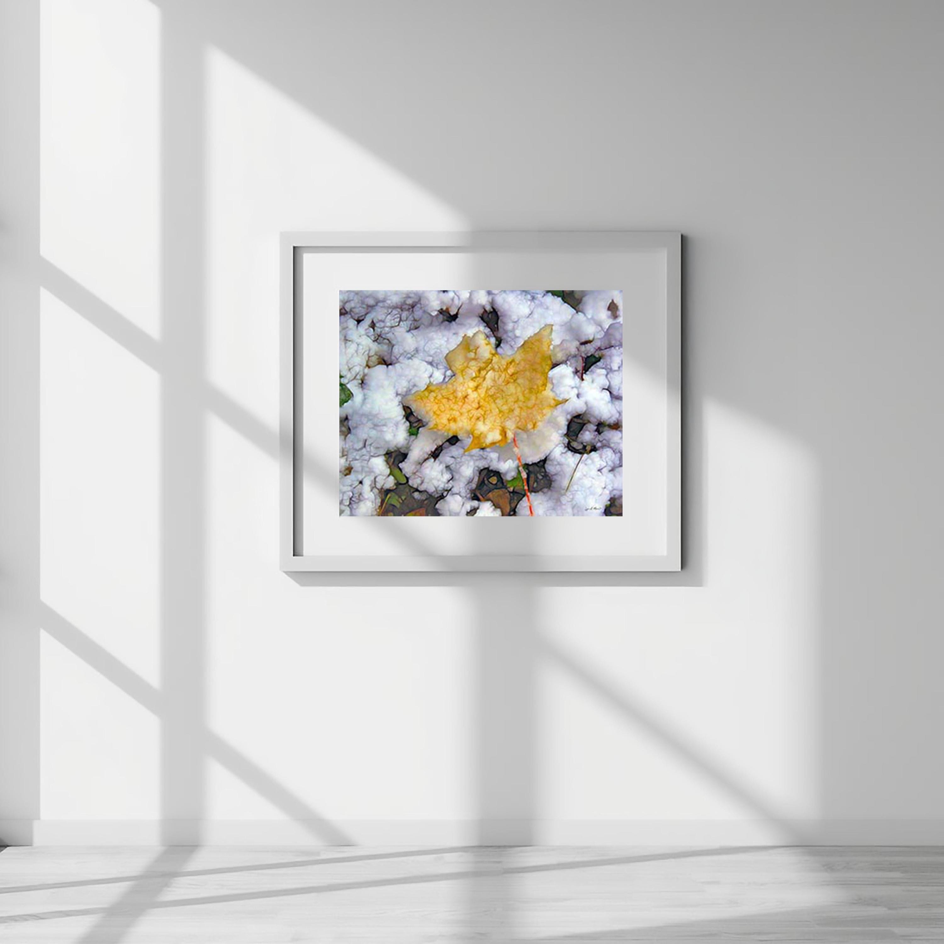 I created this artwork because I loved the contrast between the warm fall leaf and the fresh snow. It felt like a quiet moment marking the change of seasons — a reminder of how beautiful simple, natural transitions can be.