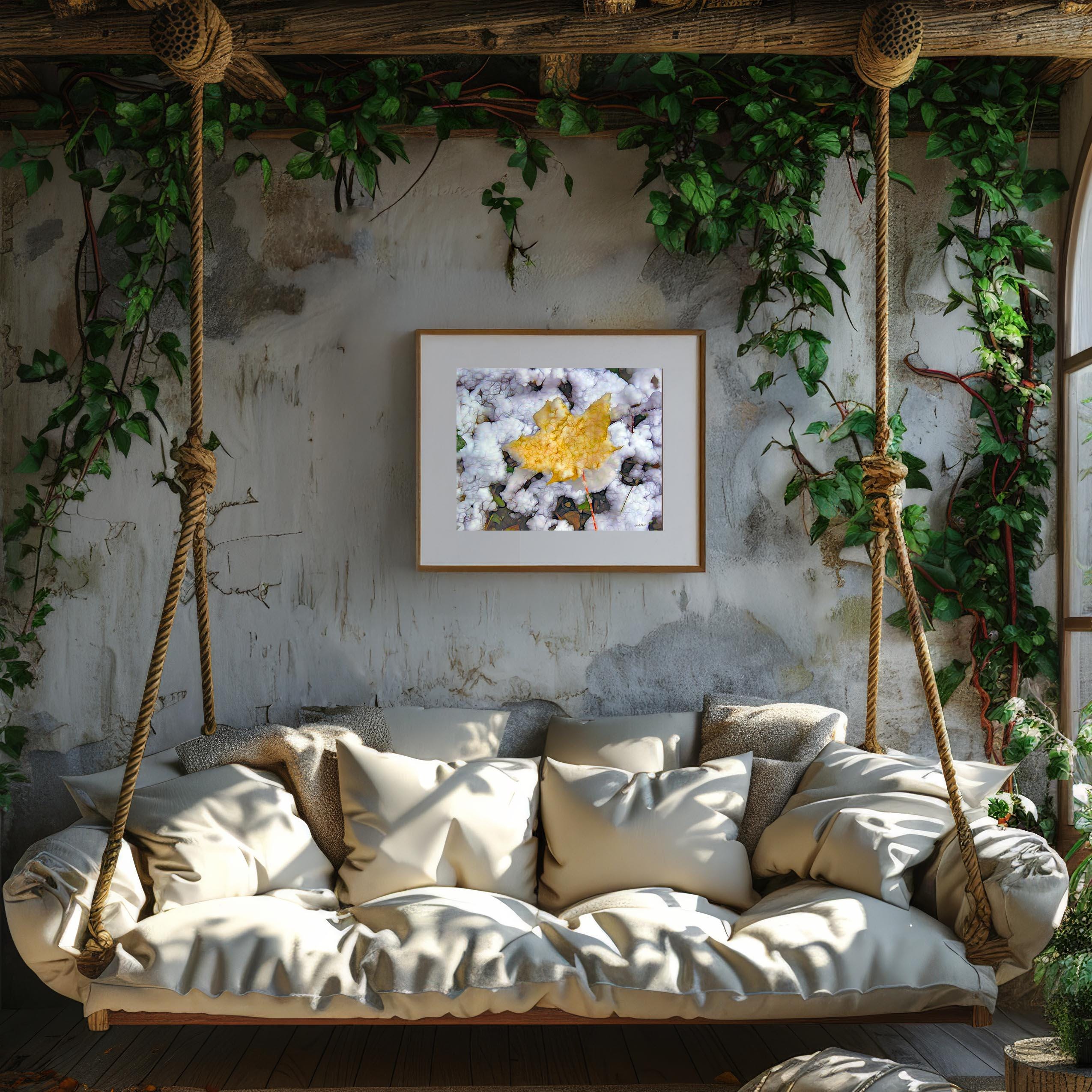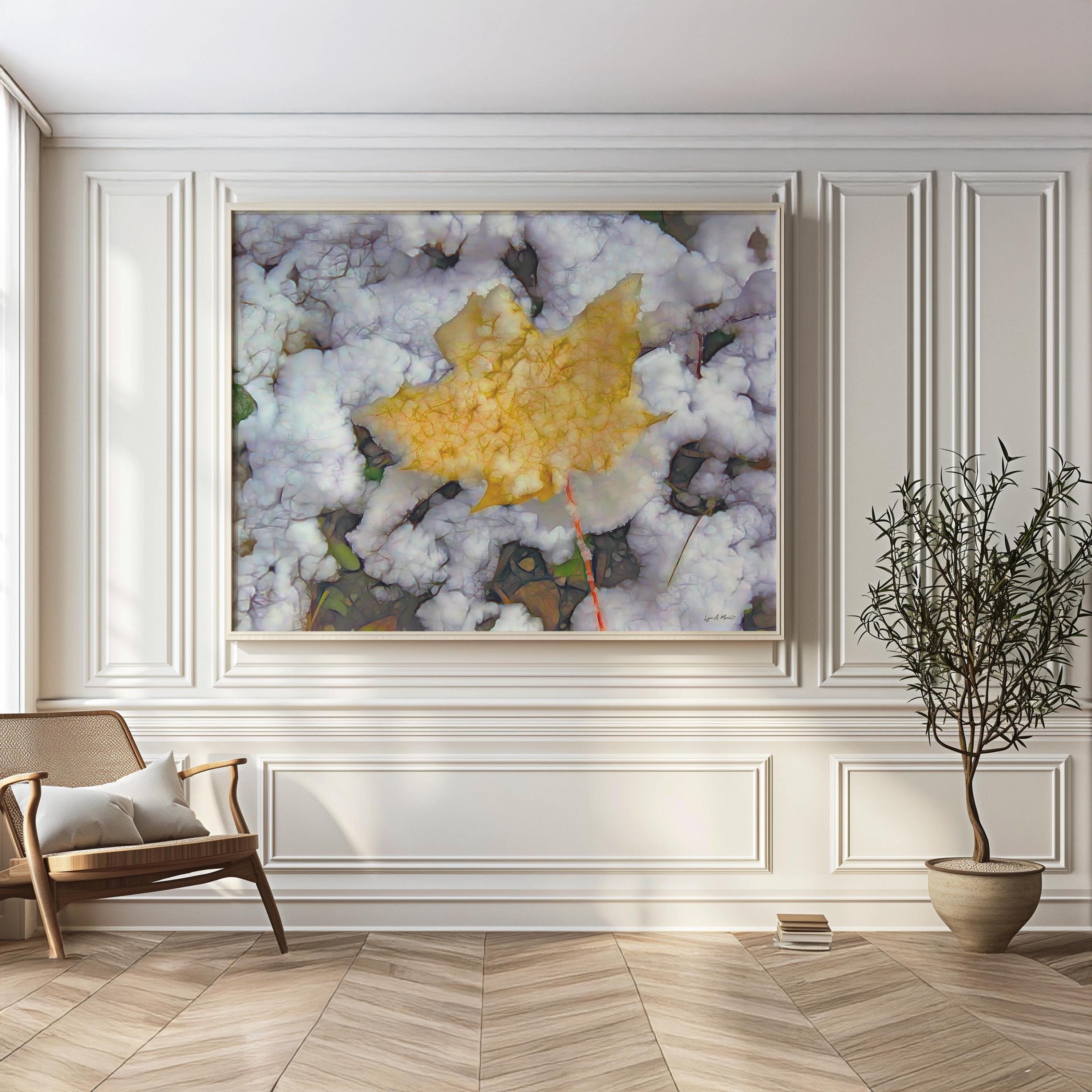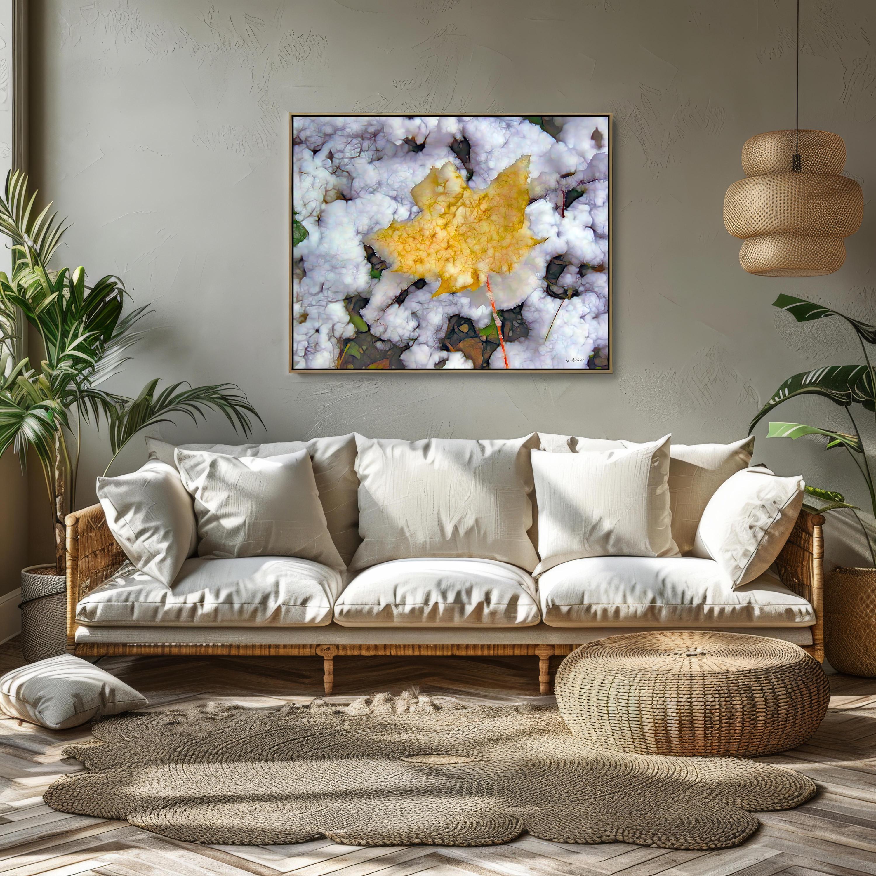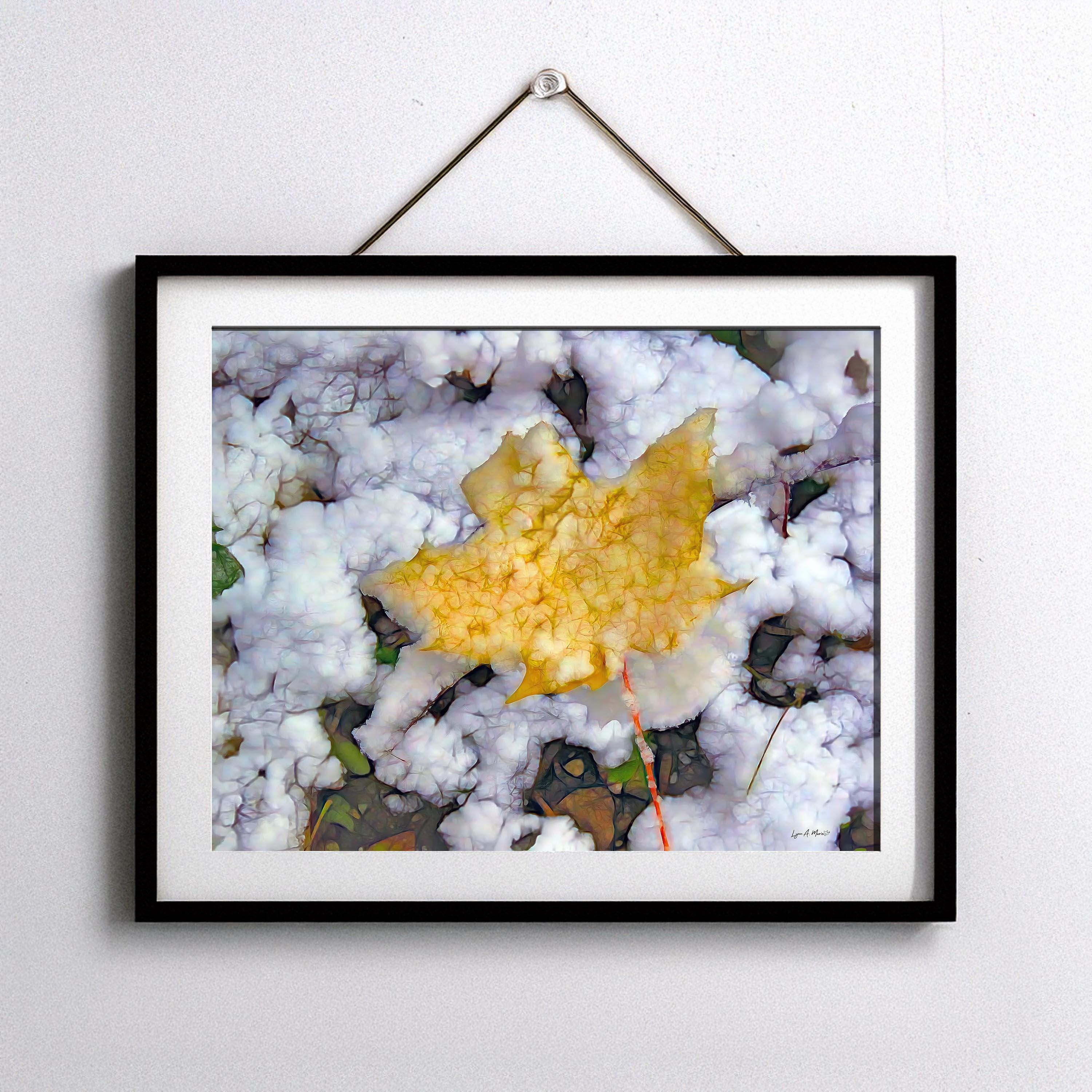 I created this artwork because I loved the contrast between the warm fall leaf and the fresh snow. It felt like a quiet moment marking the change of seasons — a reminder of how beautiful simple, natural transitions can be.