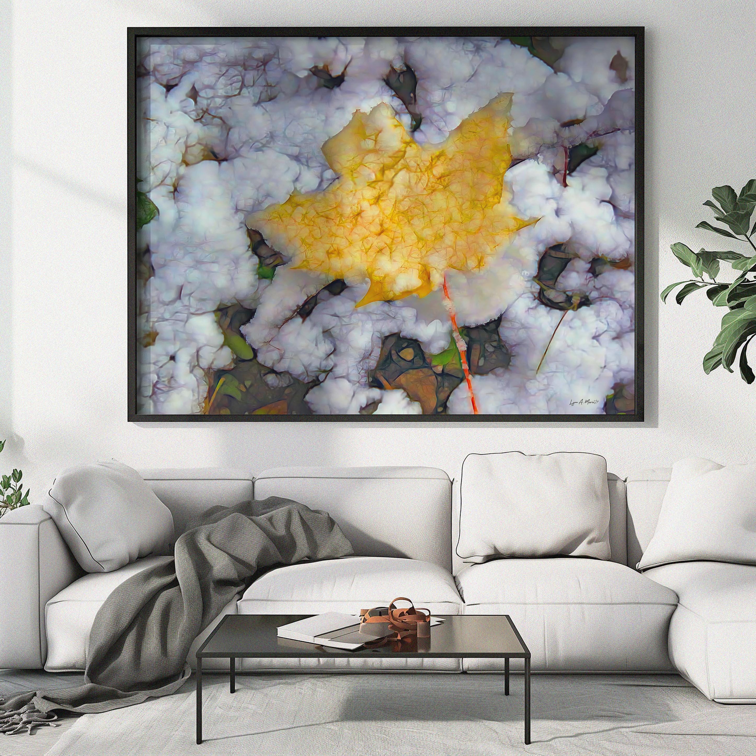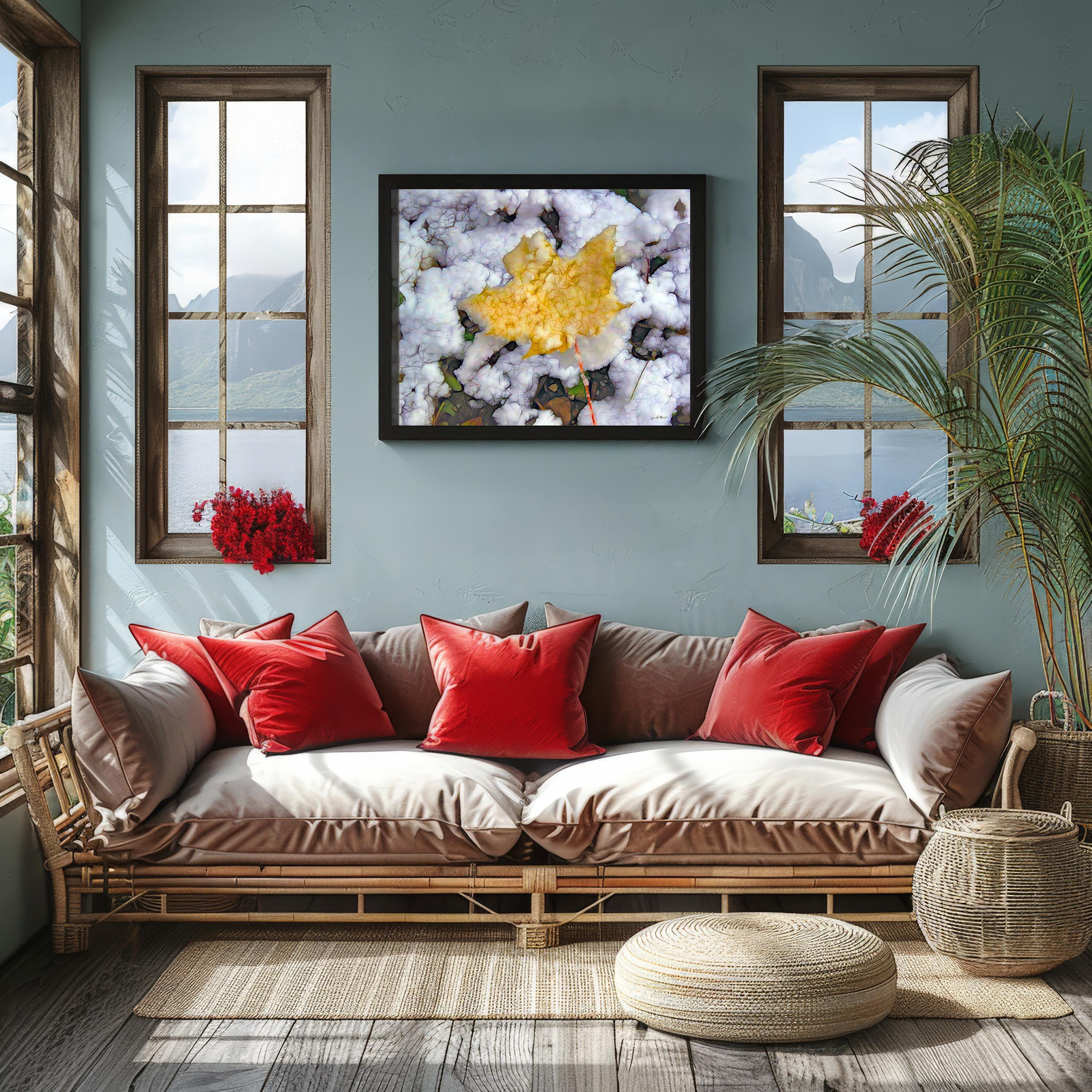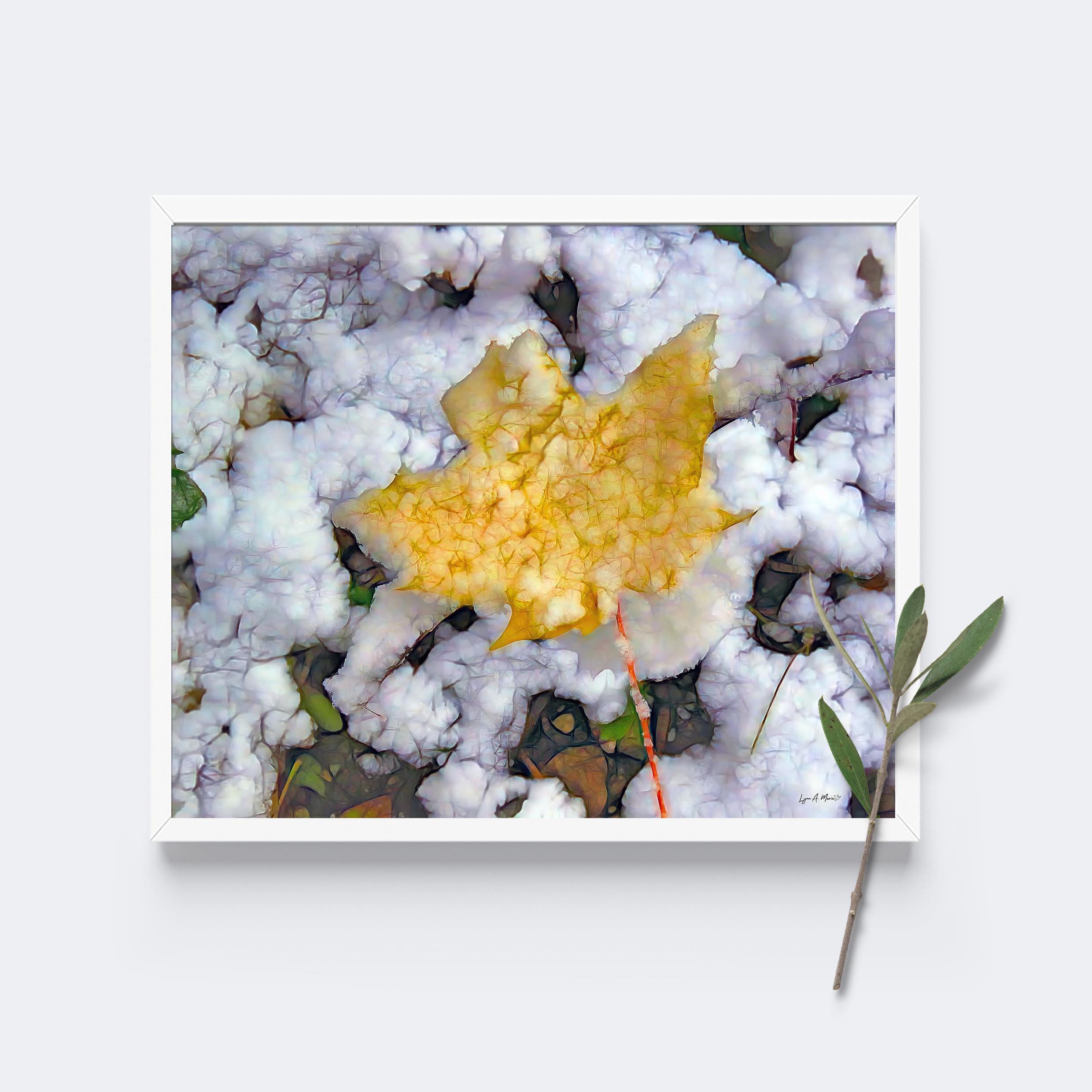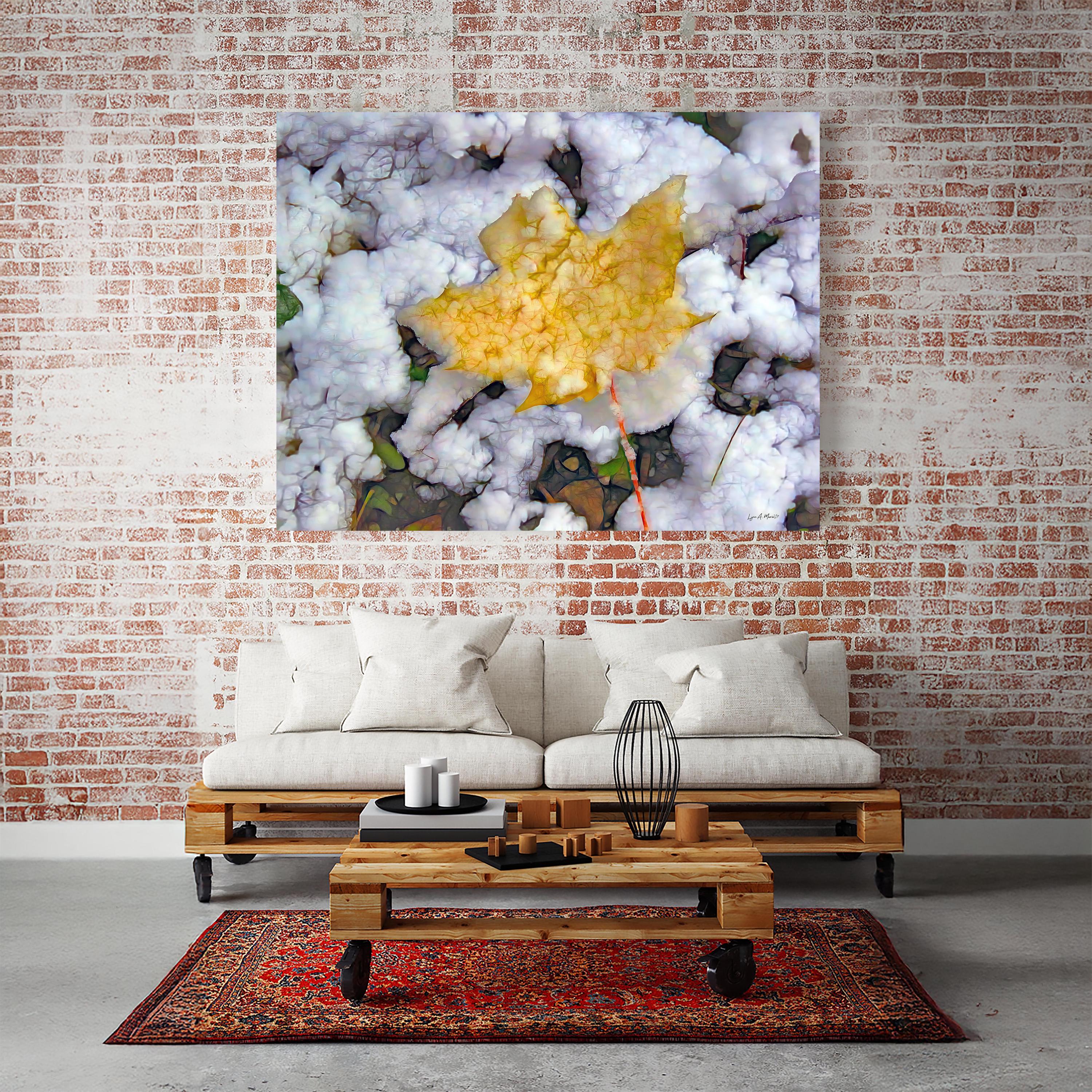 I created this artwork because I loved the contrast between the warm fall leaf and the fresh snow. It felt like a quiet moment marking the change of seasons — a reminder of how beautiful simple, natural transitions can be.