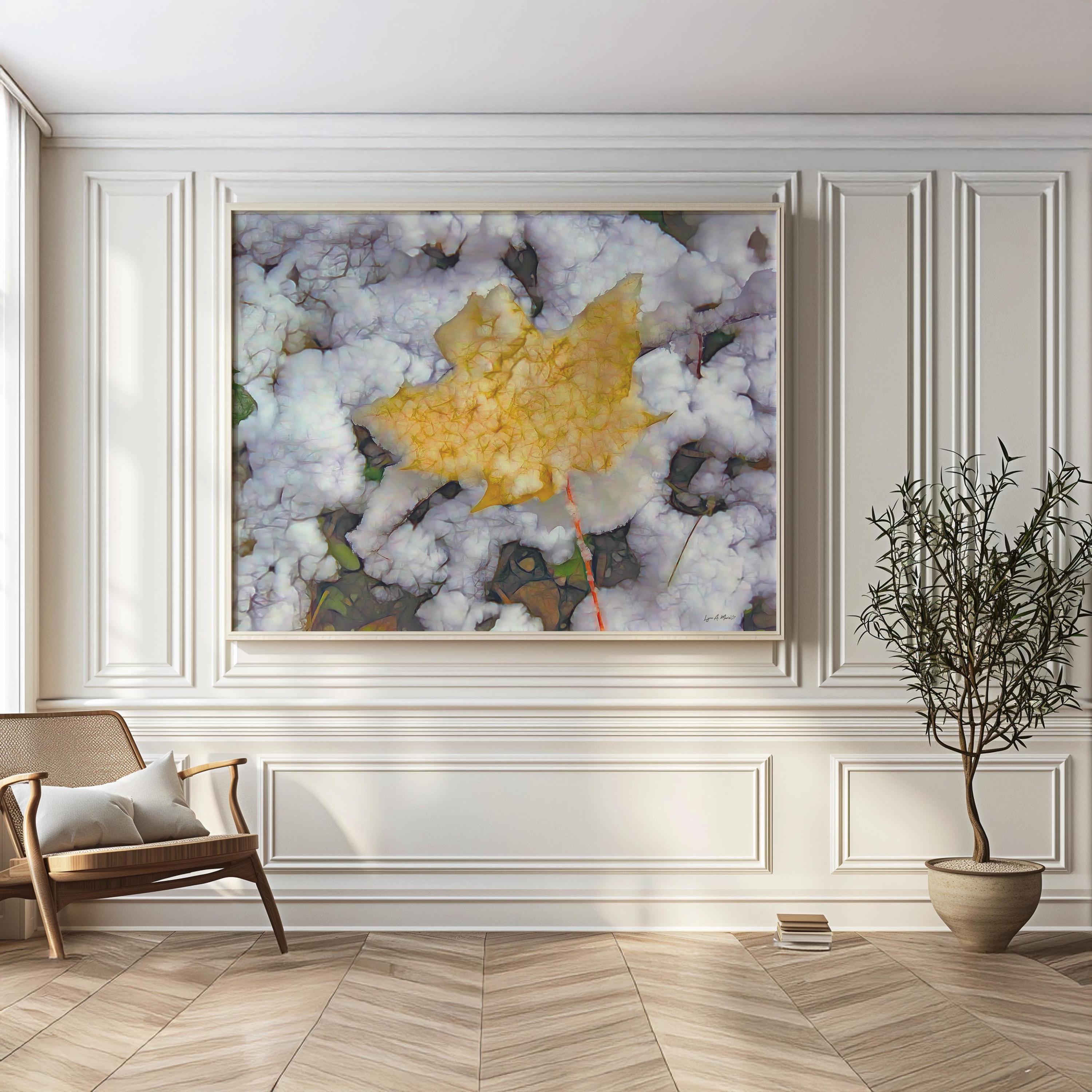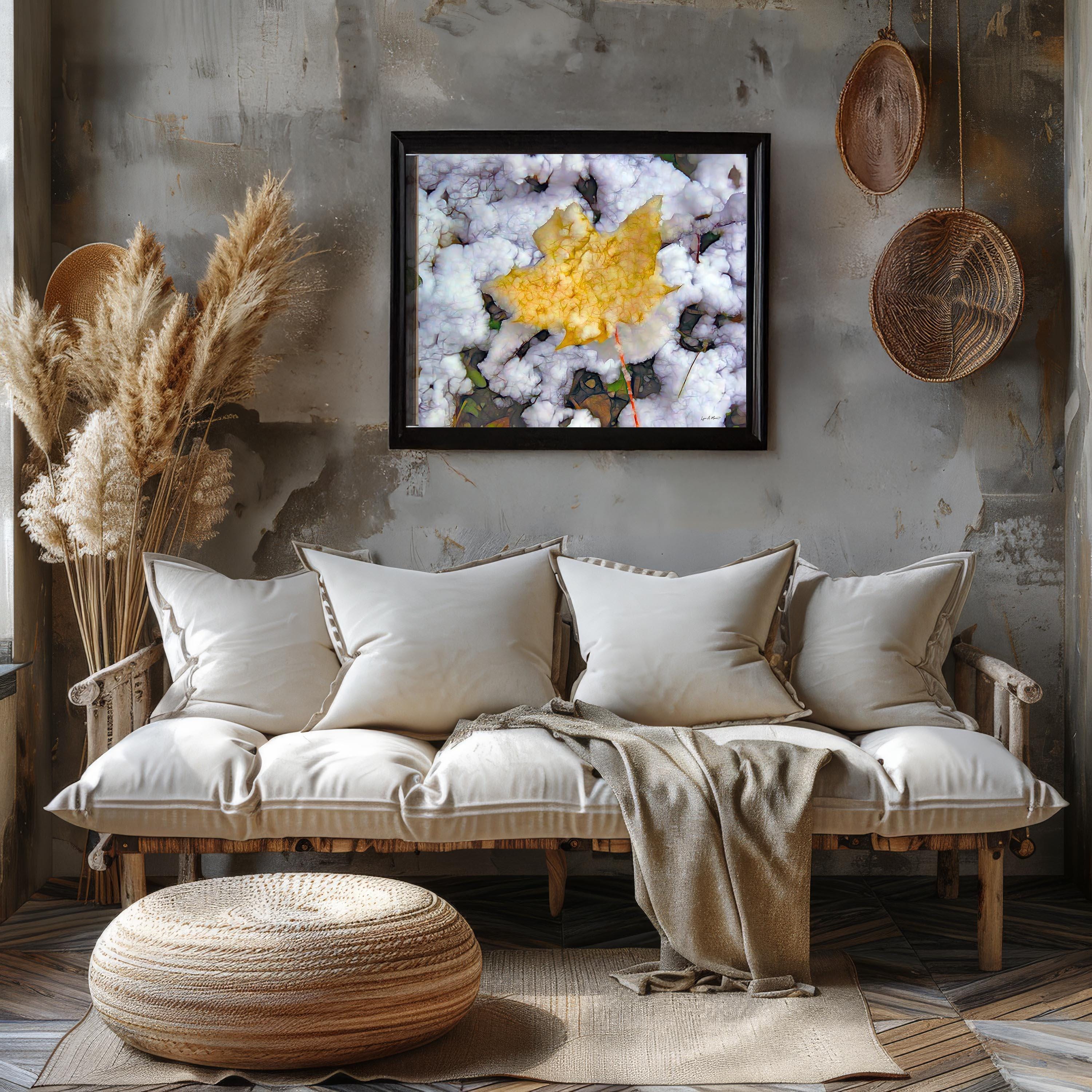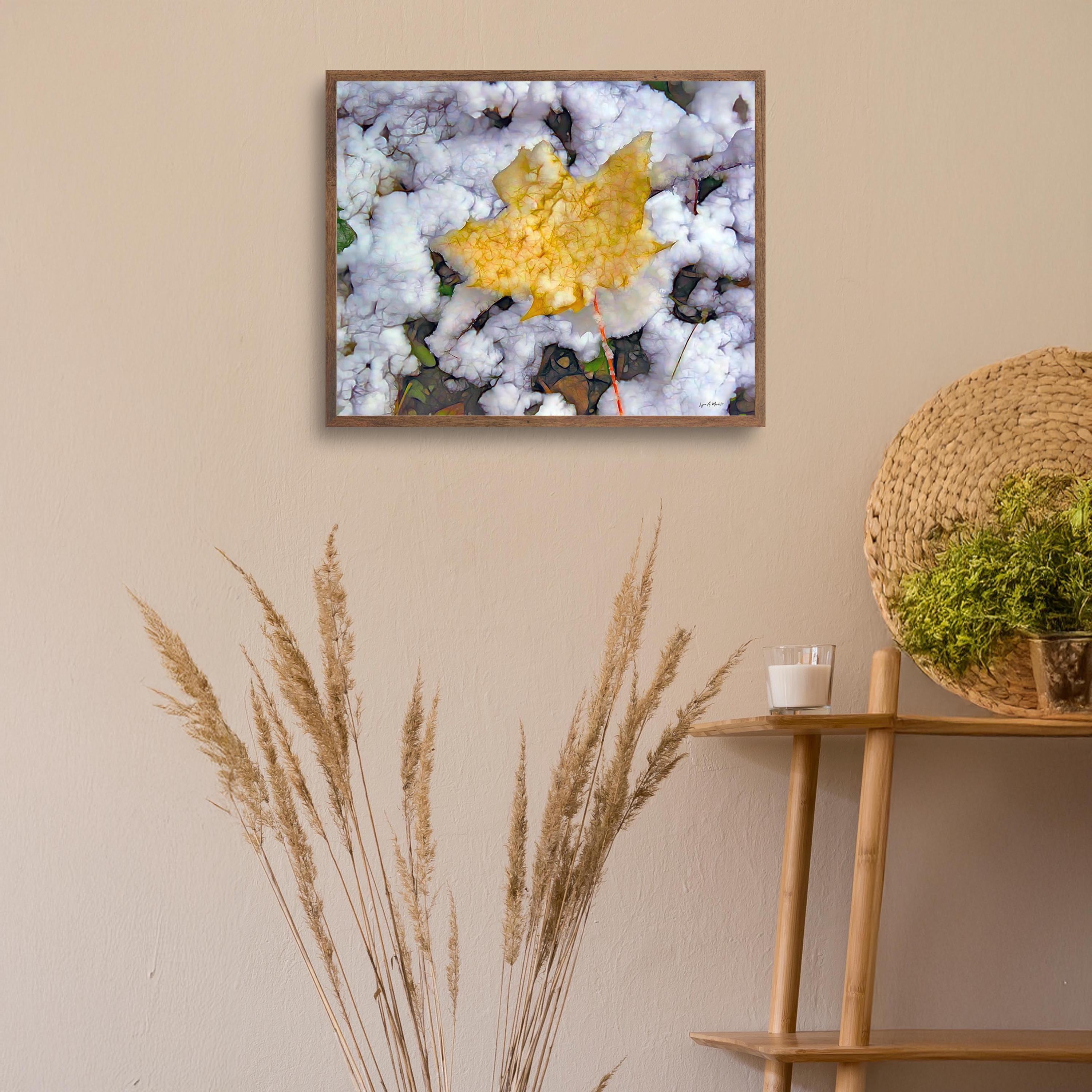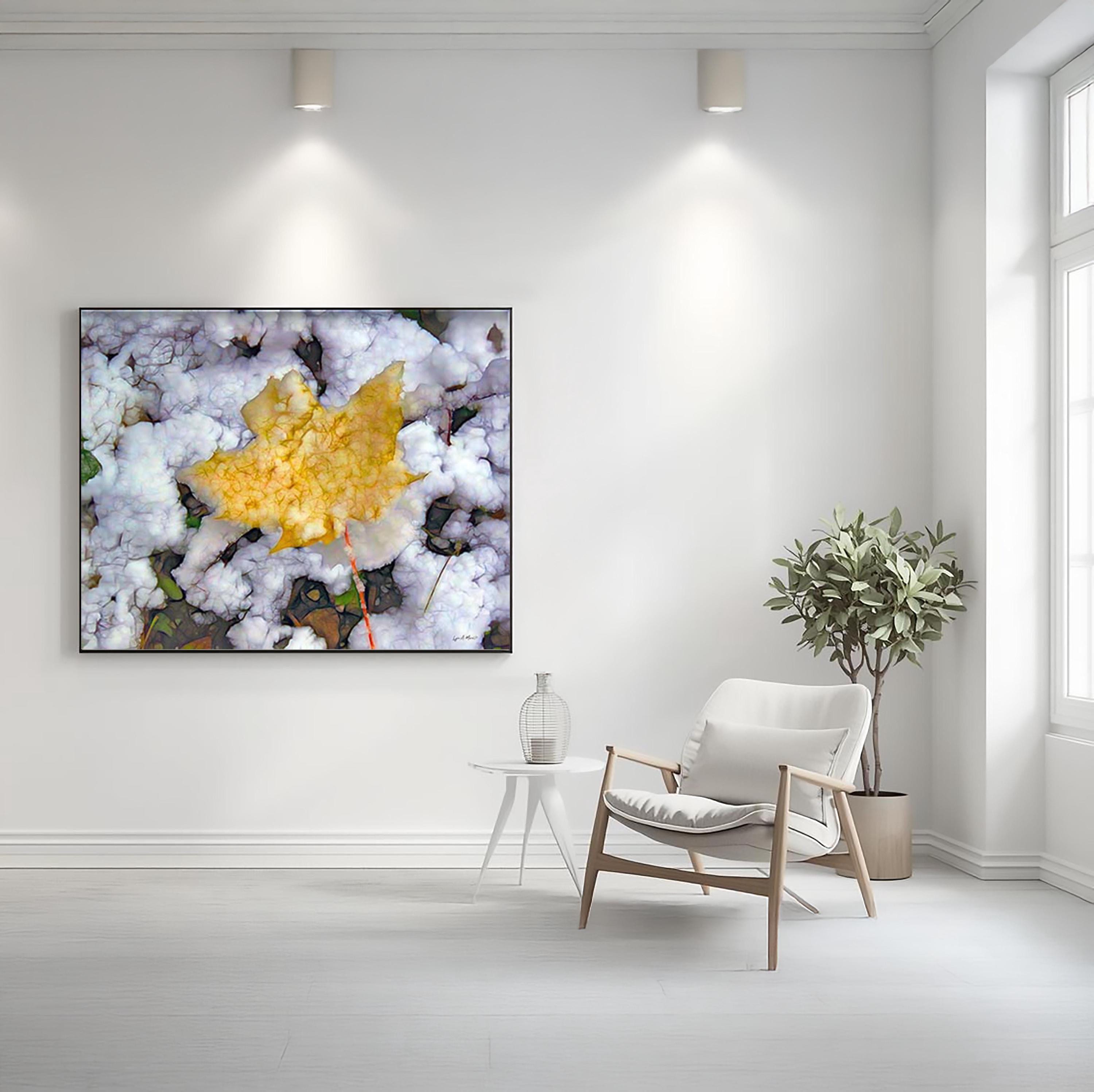 I created this colorful landscape artwork because I loved the contrast between the warm fall leaf and the fresh snow. It felt like a quiet moment marking the change of seasons, a reminder of how beautiful simple, natural transitions can be in nature.
