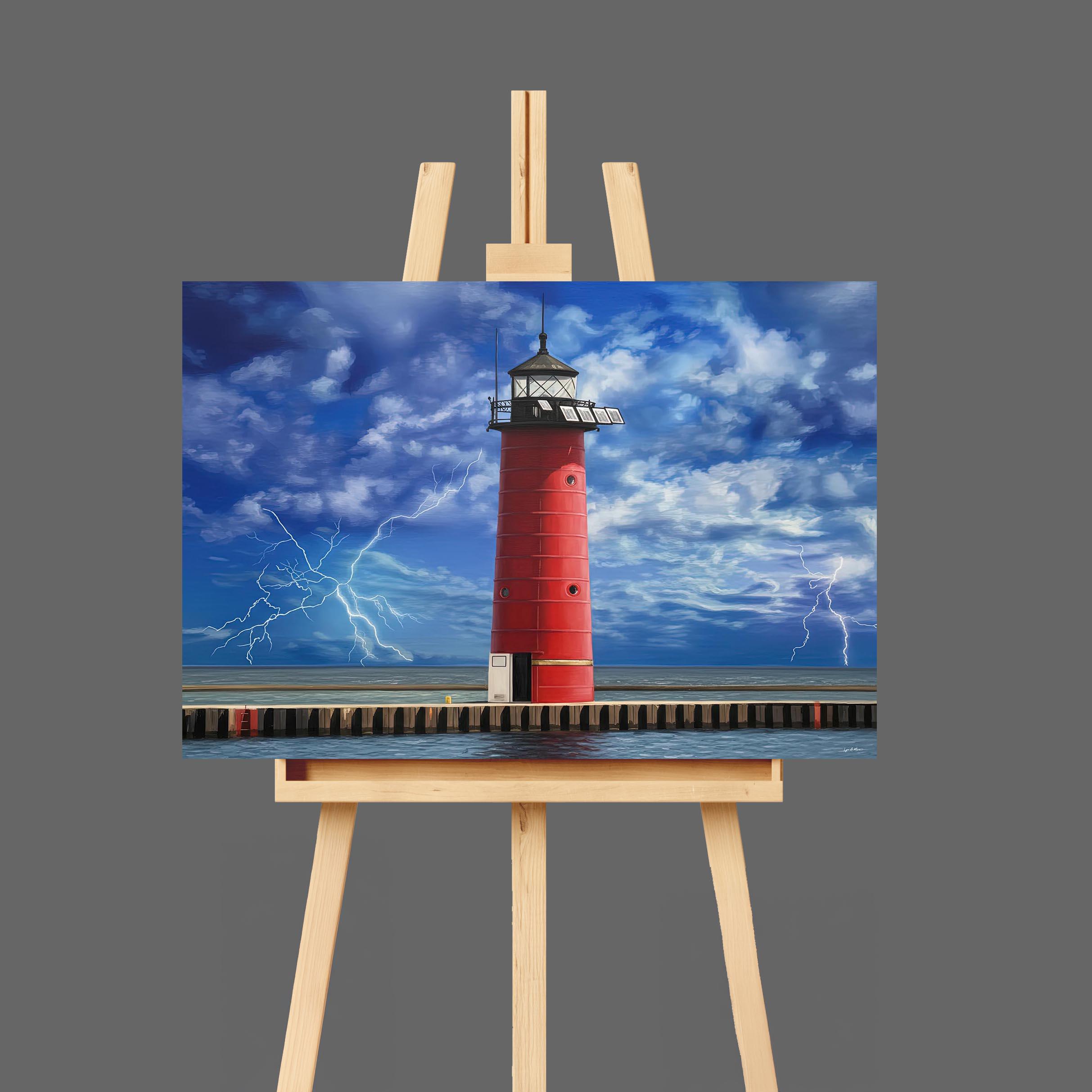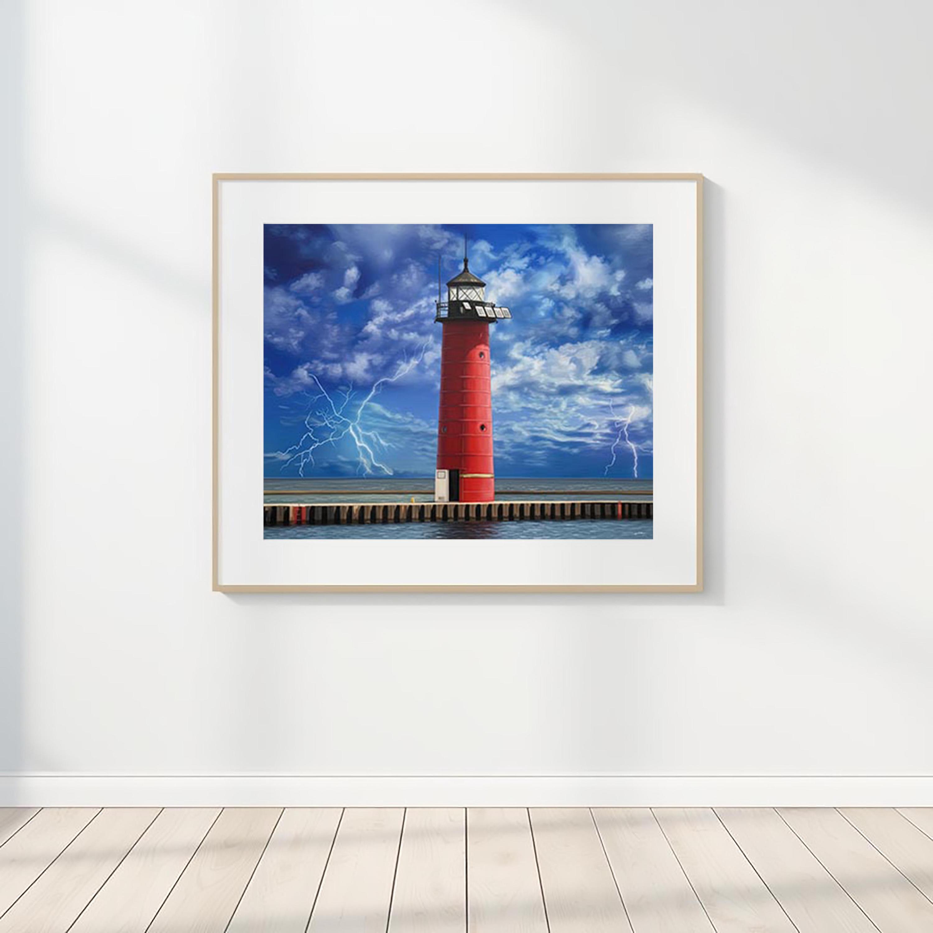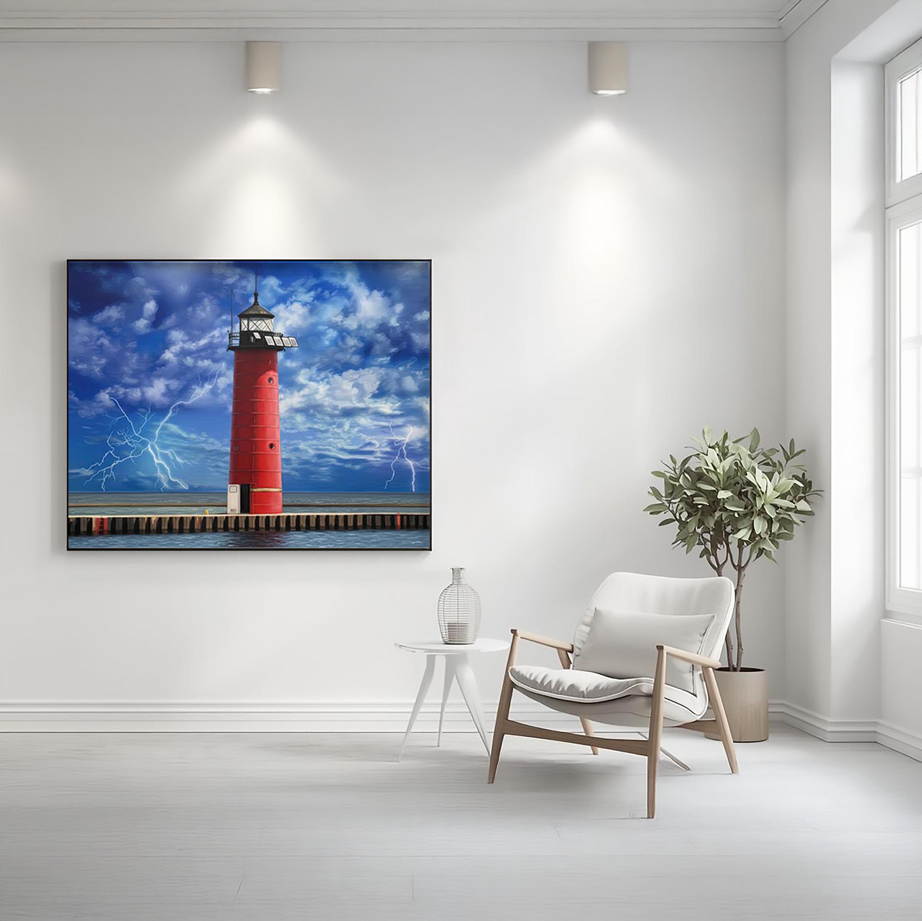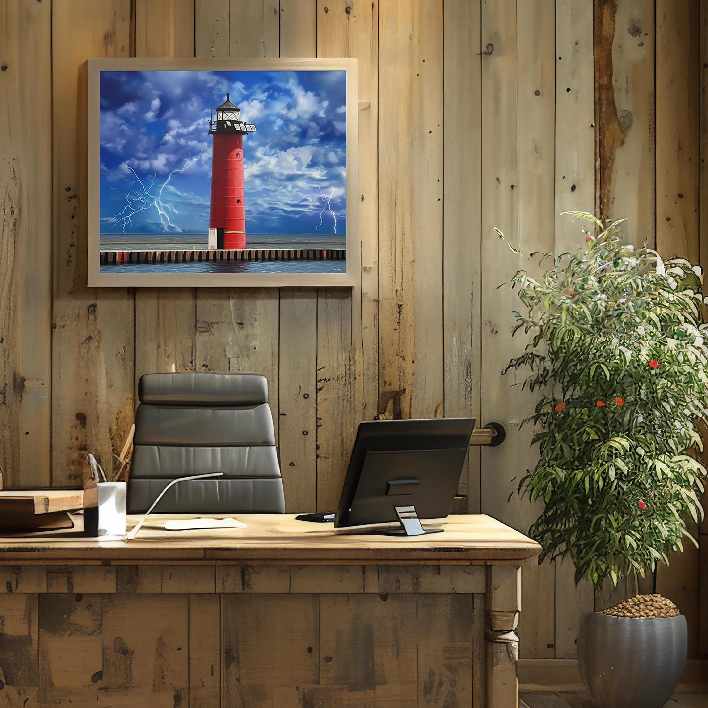 I created this artwork because I’ve always been drawn to the strength and beauty of lighthouses. This one, standing tall against the storm and lightning, reminded me of resilience, how we can stay steady even when things get rough. I wanted to capture that power and peace in one bold image. Bring the calm beauty of a Wisconsin scene into your space with this realistic landscape print by Lynn Marie. Soft light, warm tones, and detailed forest silhouettes make it a perfect focal point for any livingroom, rustic lodge, hotel lobby, or modern cabin decor. Each print is professionally produced as a fine art piece and comes signed, making it a thoughtful gift idea for nature lovers, cabin owners, and anyone who feels at home outdoors.