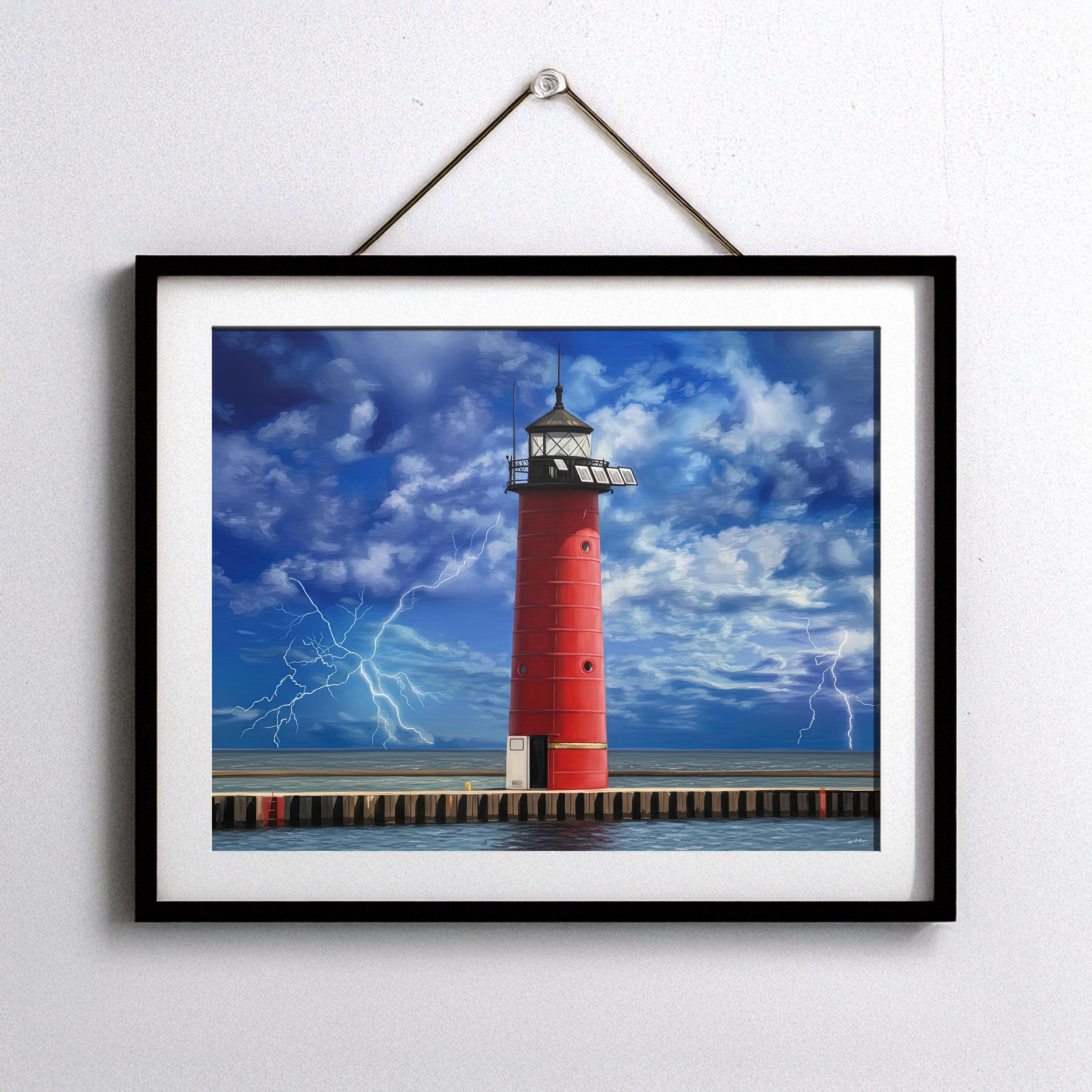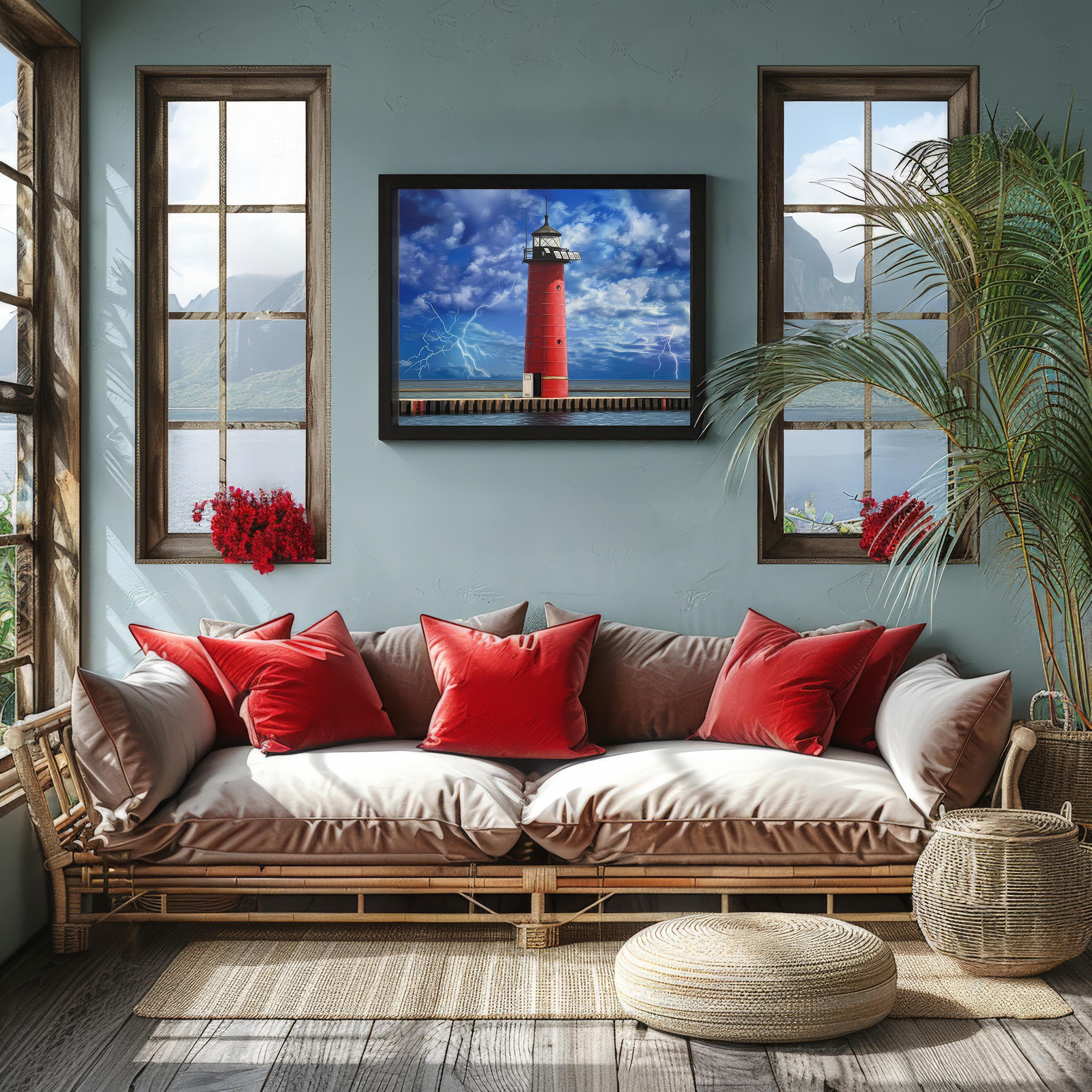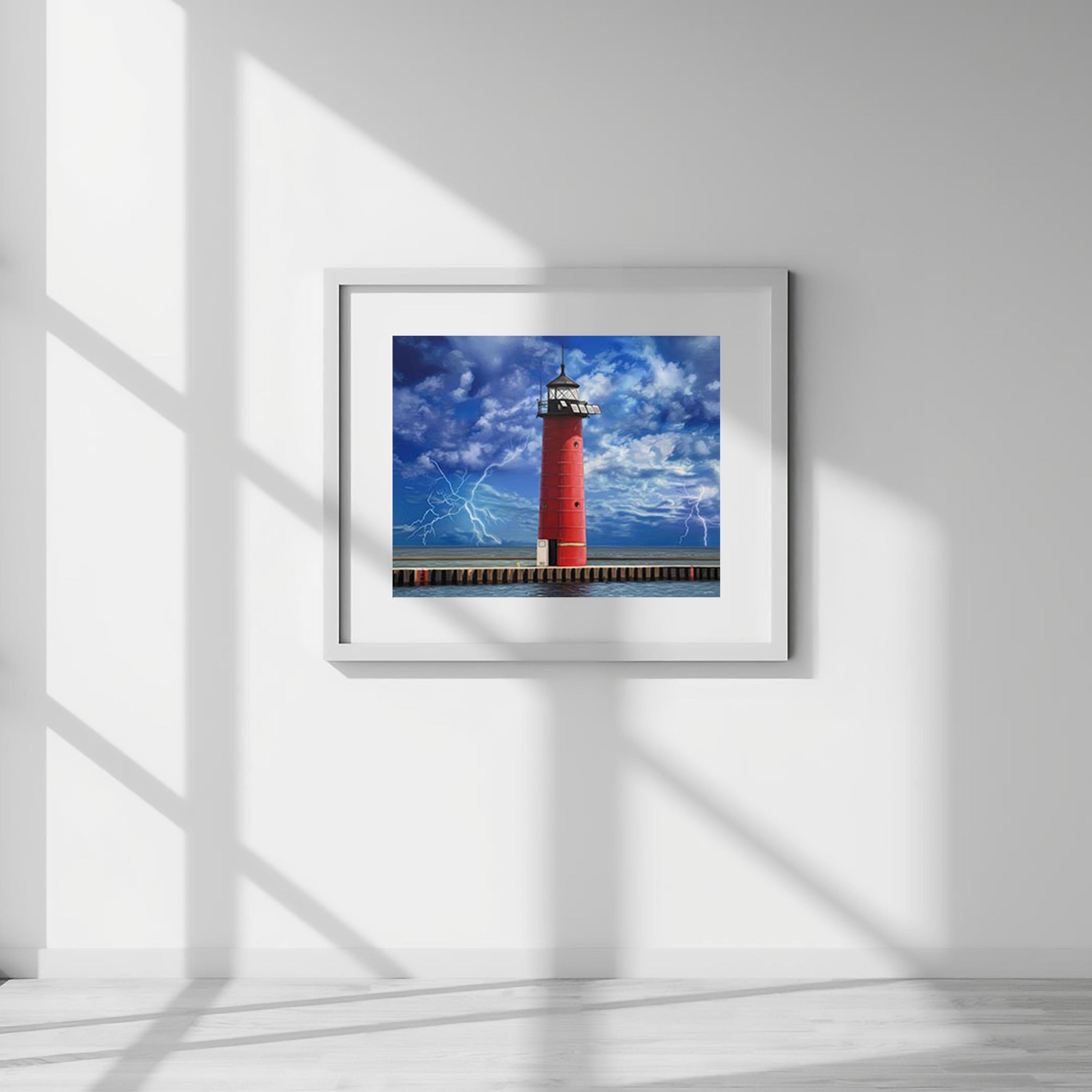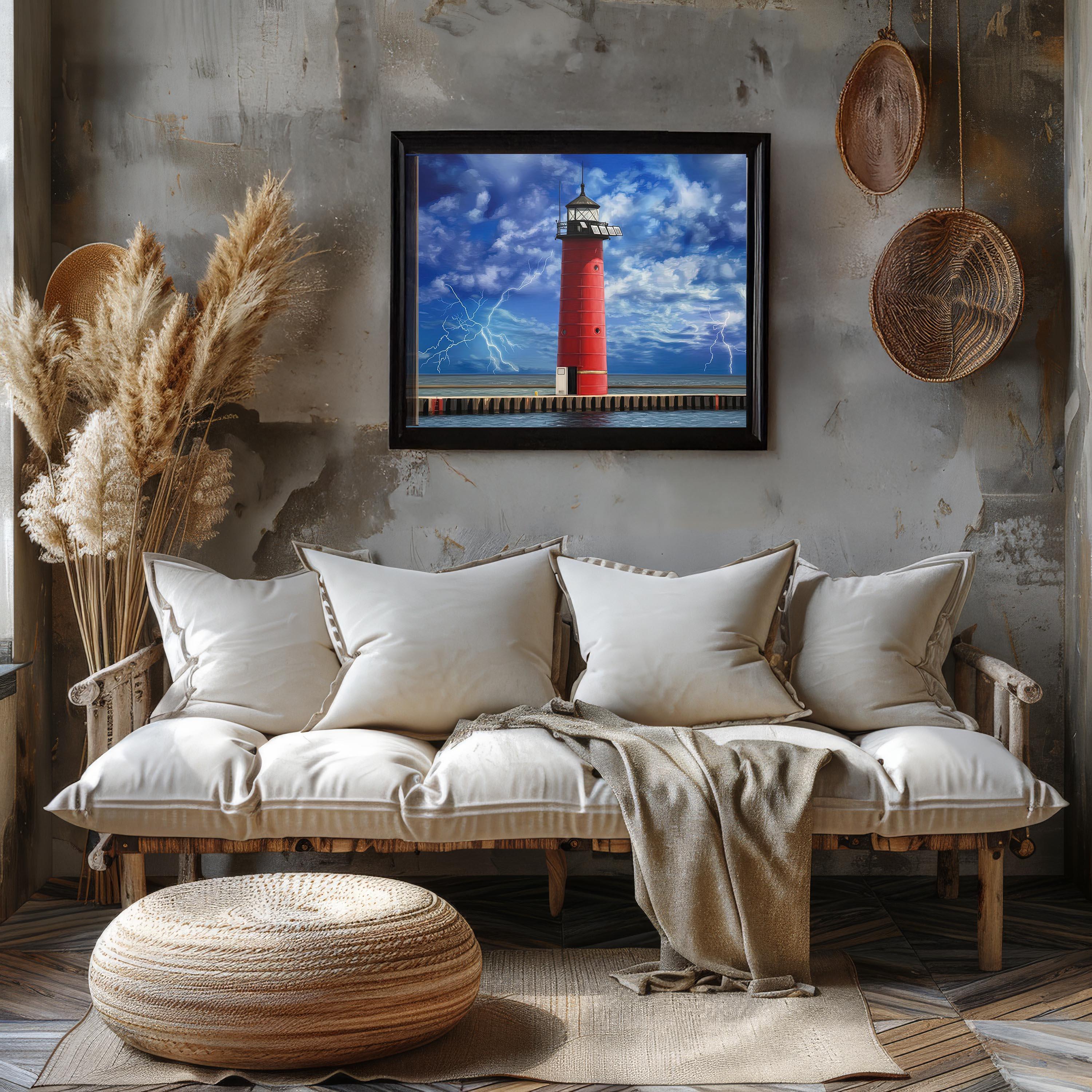 I created this artwork because I’ve always been drawn to the strength and beauty of lighthouses. This one, standing tall against the storm and lightning, reminded me of resilience, how we can stay steady even when things get rough. I wanted to capture that power and peace in one bold image. Bring the calm beauty of a Wisconsin scene into your space with this realistic landscape print by Lynn Marie. Soft light, warm tones, and detailed forest silhouettes make it a perfect focal point for any livingroom, rustic lodge, hotel lobby, or modern cabin decor. Each print is professionally produced as a fine art piece and comes signed, making it a thoughtful gift idea for nature lovers, cabin owners, and anyone who feels at home outdoors.