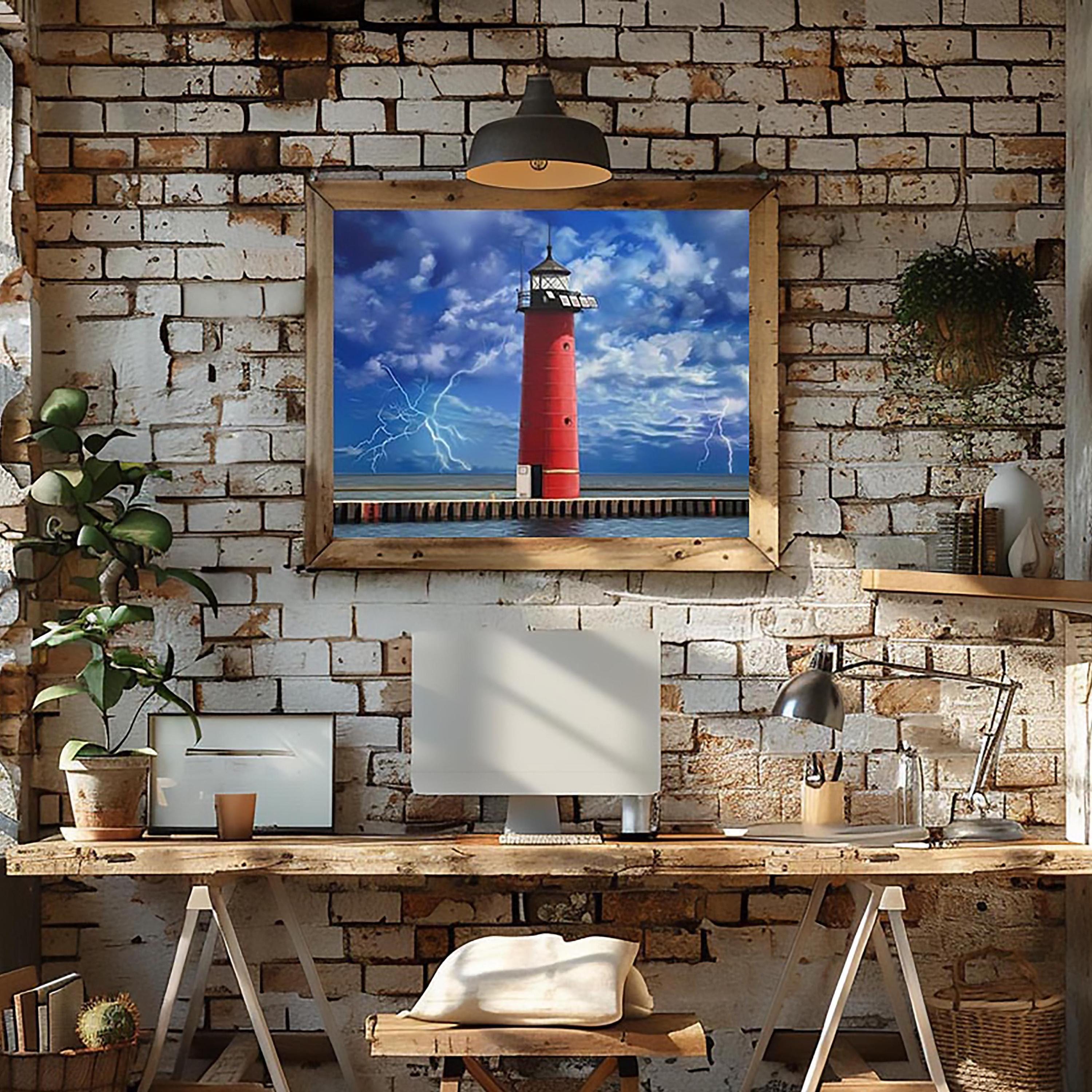 I created this artwork because I’ve always been drawn to the strength and beauty of lighthouses. This one, standing tall against the storm and lightning, reminded me of resilience, how we can stay steady even when things get rough. I wanted to capture that power and peace in one bold image. Bring the calm beauty of a Wisconsin scene into your space with this realistic landscape print by Lynn Marie. Soft light, warm tones, and detailed forest silhouettes make it a perfect focal point for any living room, office, rustic lodge, hotel lobby, or modern cabin wall decor. Each print is professionally produced as a fine art piece and comes signed, making it a great gift idea for nature lovers, cabin owners, and anyone who feels at home outdoors.