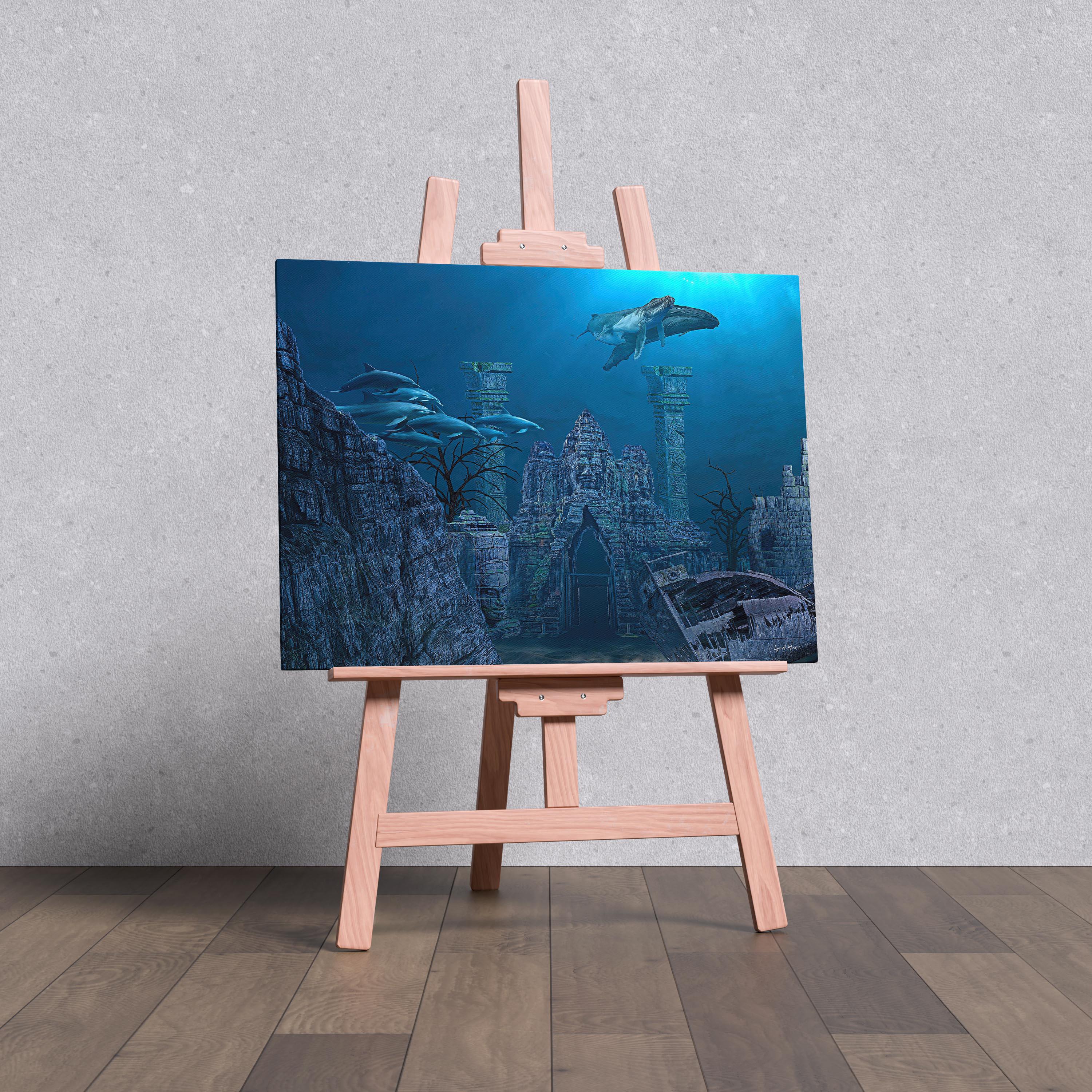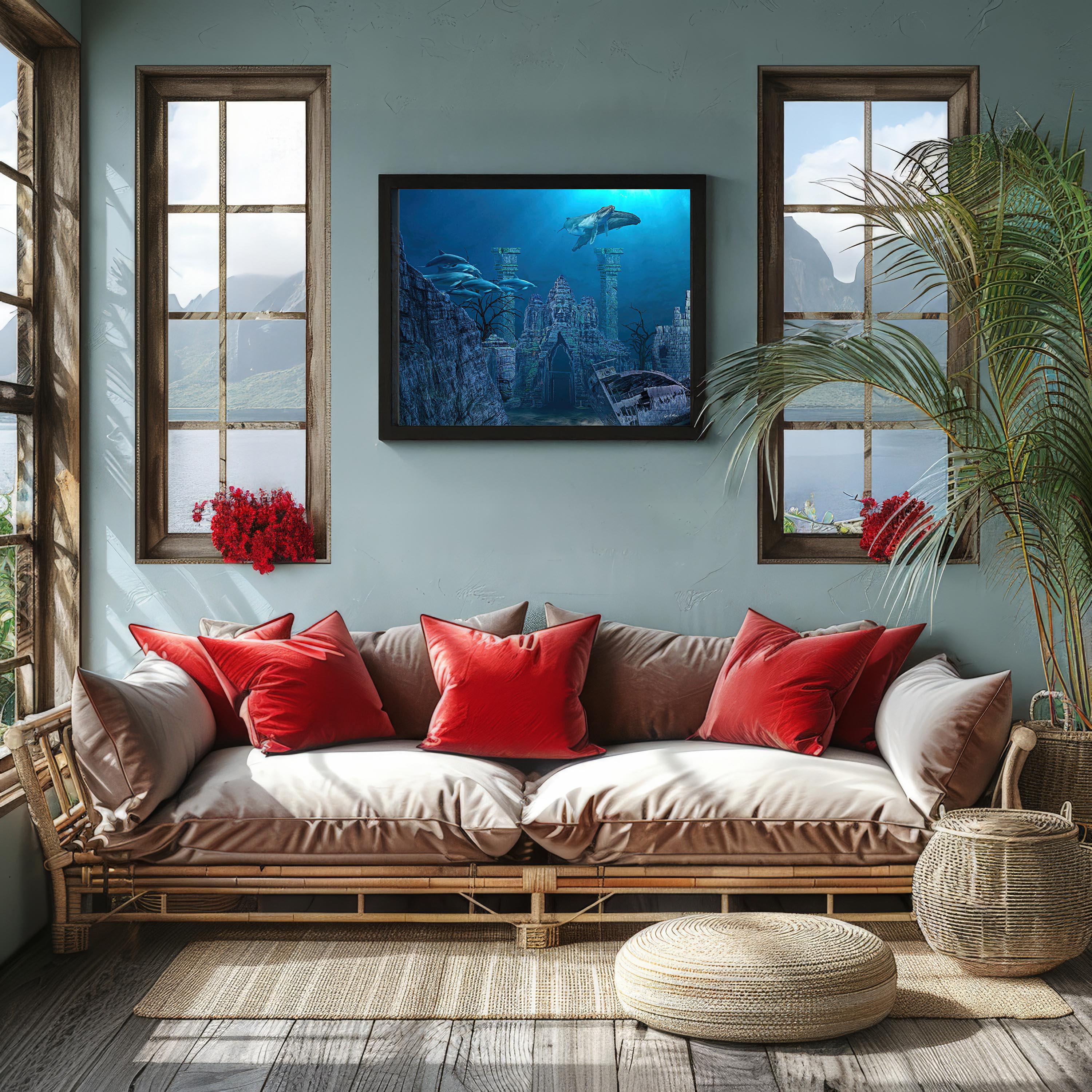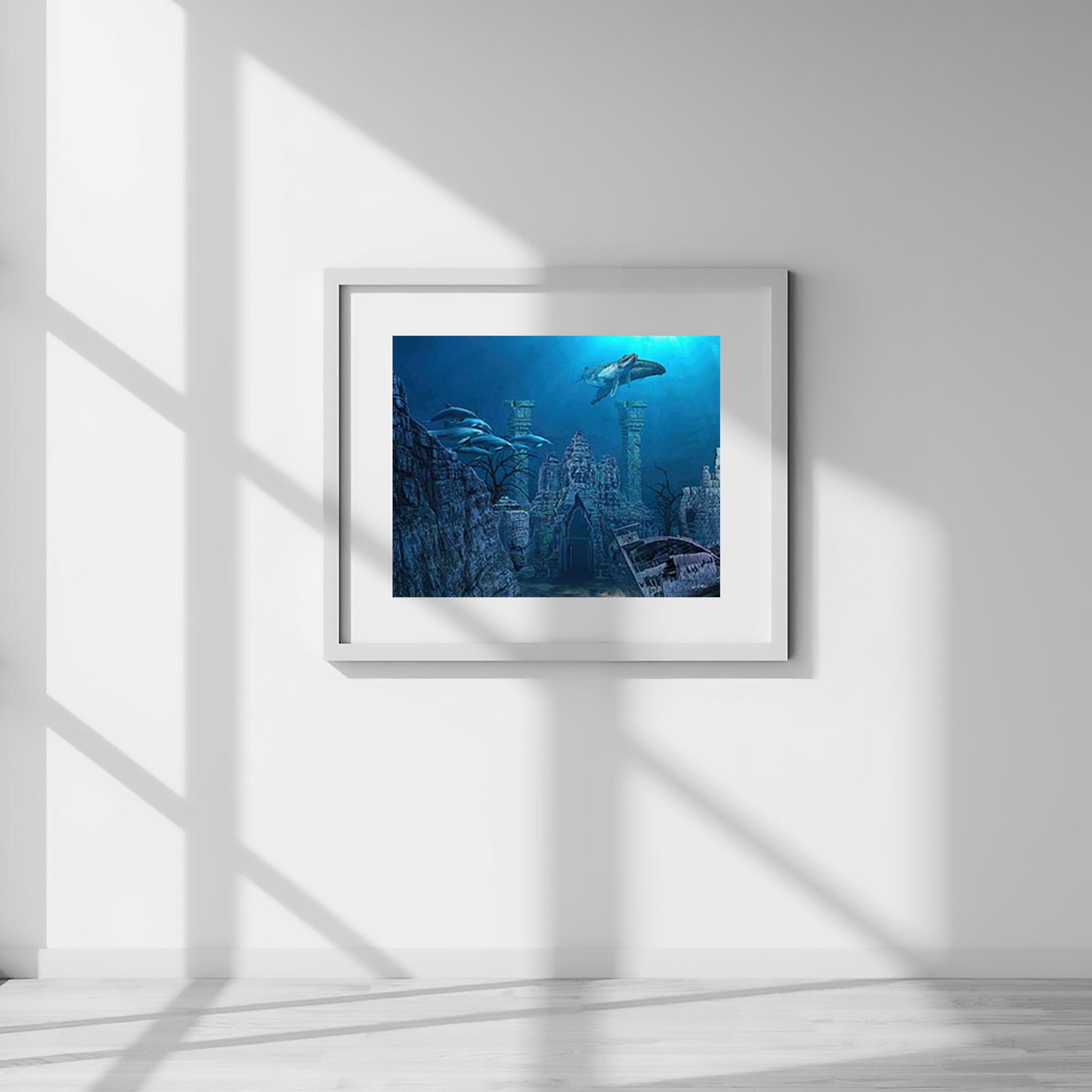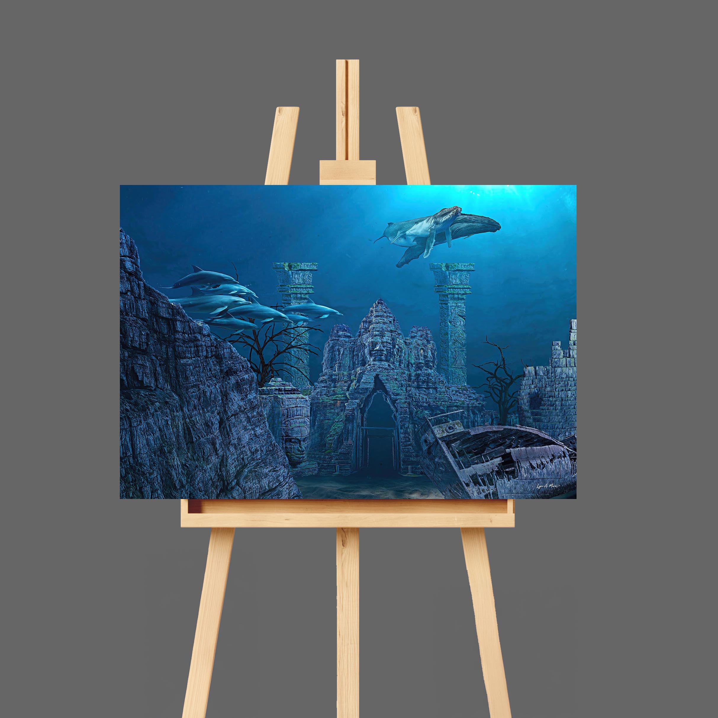 I created this signed piece as a dreamscape for sea lovers, a calm, fantasy ocean world filled with sealife and ancient ruins. The underwater marine landscape invites you to pause and imagine what’s hidden beneath the waves. Designed for decor that feels transportive, it brings a quiet coastal mood into any livingroom. Perfect for anyone who finds peace in the sea.