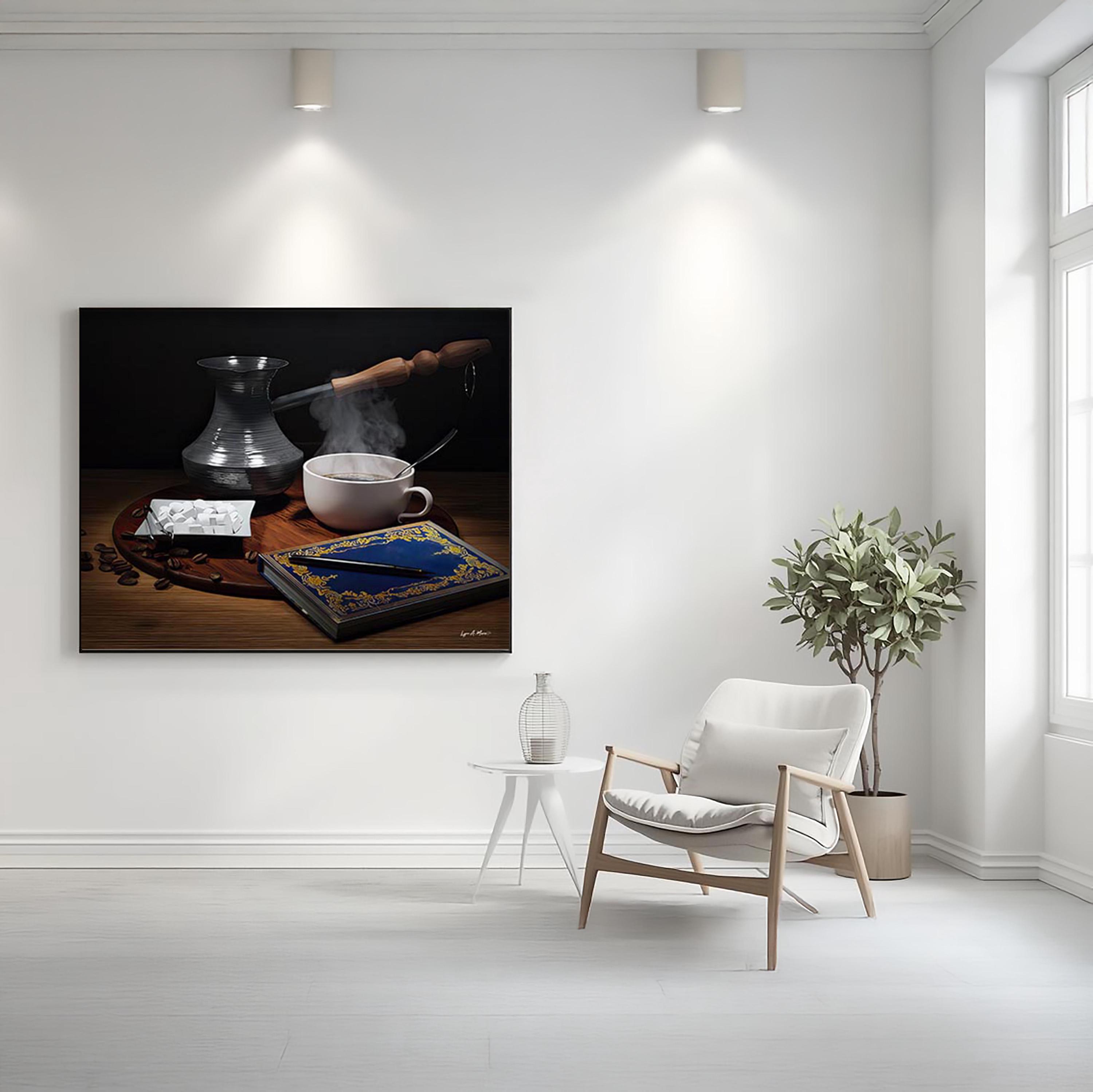 I created this digital art piece because I wanted to capture a calm, everyday moment — enjoying a warm cup of coffee and a quiet time to think or write. It reminds me to slow down, relax, and appreciate the simple things in life.
