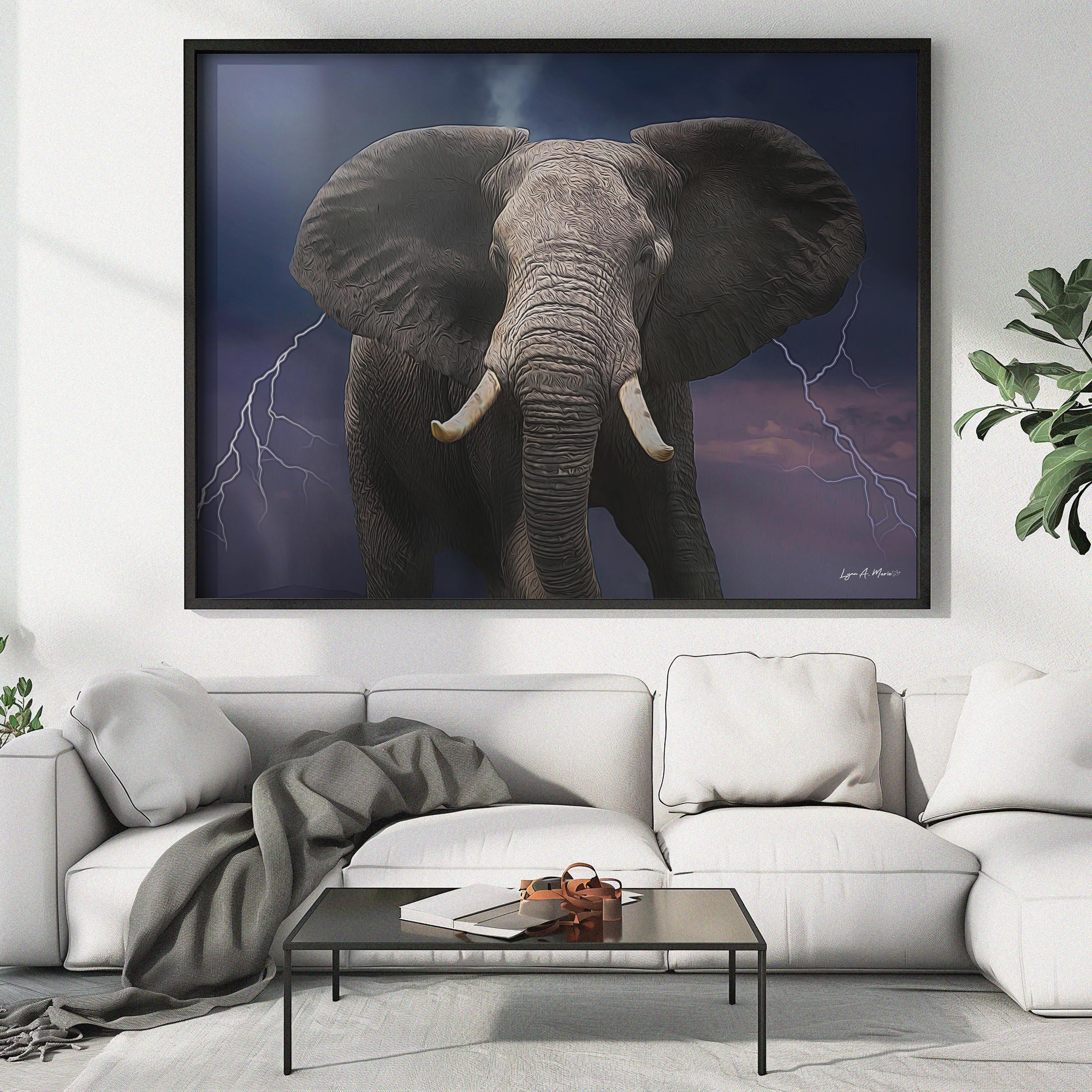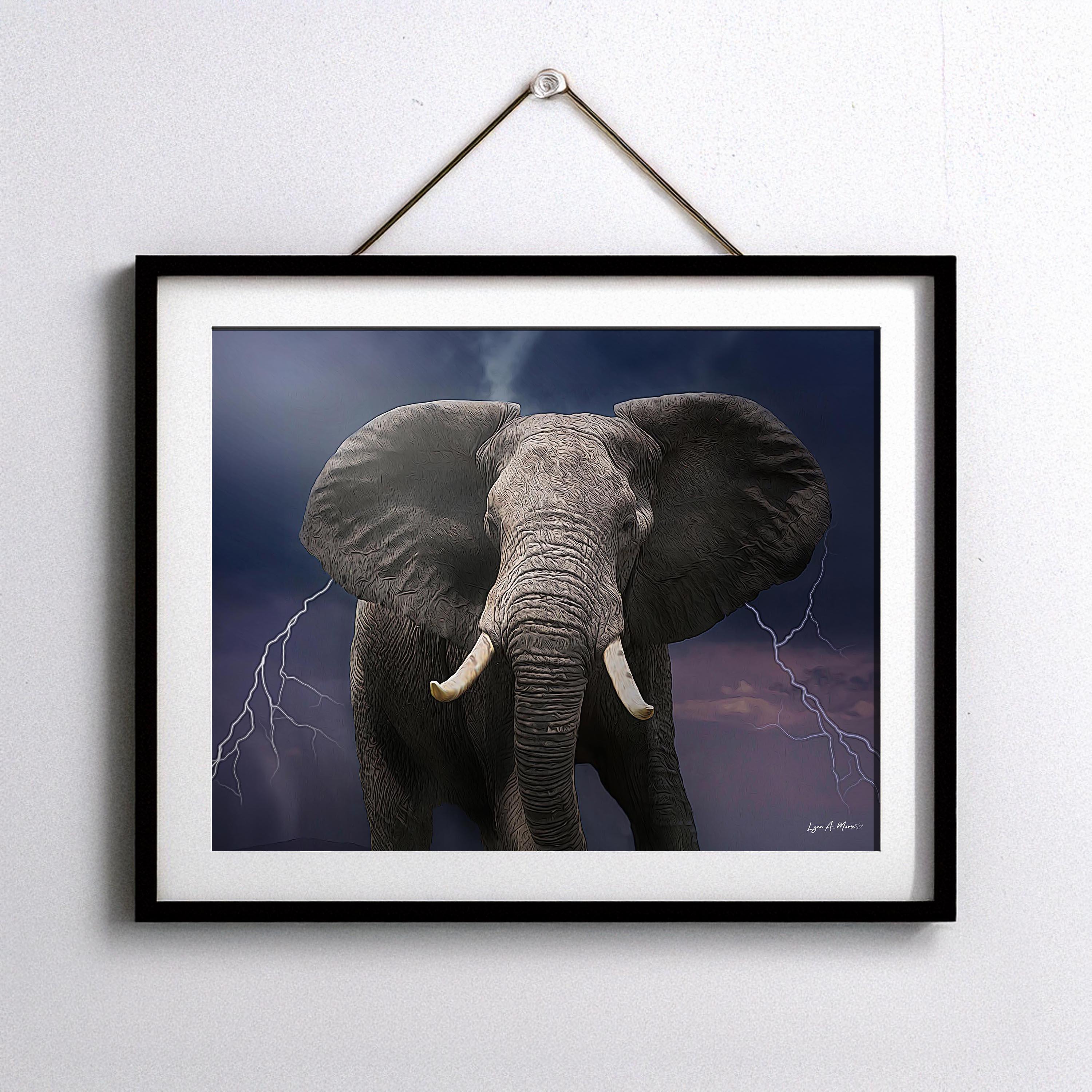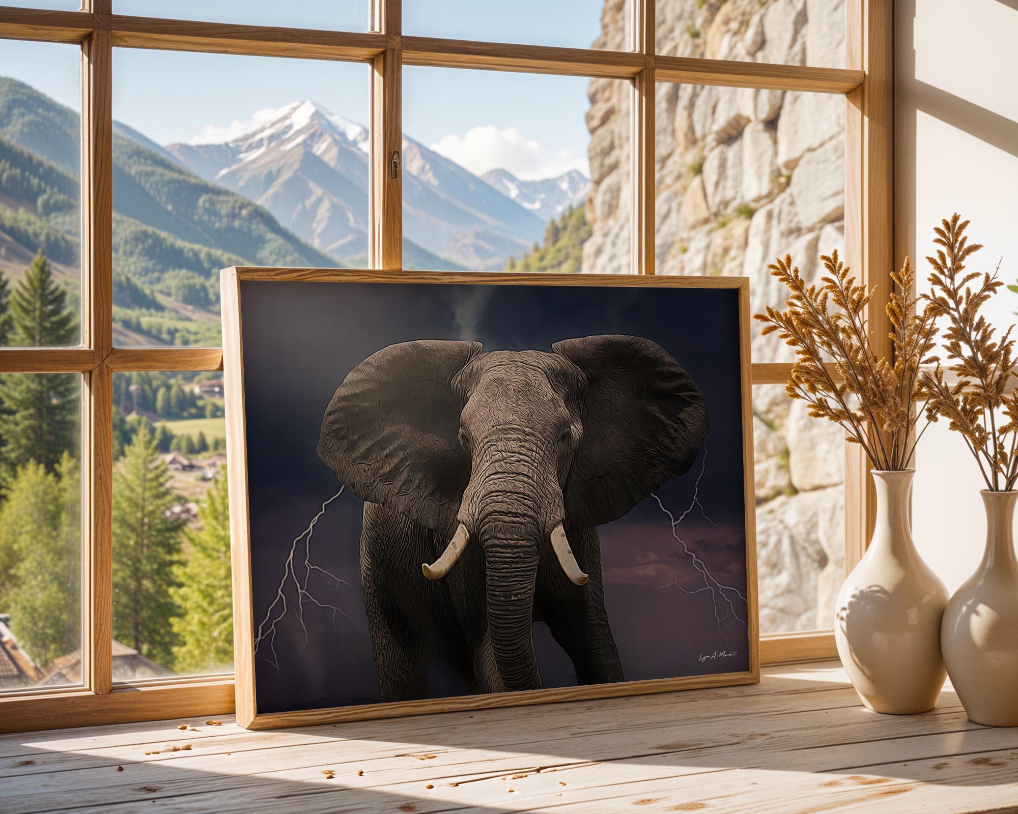 I created this to capture the bold strength of the African elephant and bring that wild energy into any living room or nature-inspired homes. This piece is digitally created, not AI generated, and reflects my love for wildlife, classic safari art, and meaningful animal conservation. The stormy atmosphere adds a dramatic touch, making it a striking choice for elephant decor, home decor, cabins, or a wildlife lodge lovers. I wanted this signed art print to feel powerful, real, and alive on your wall.