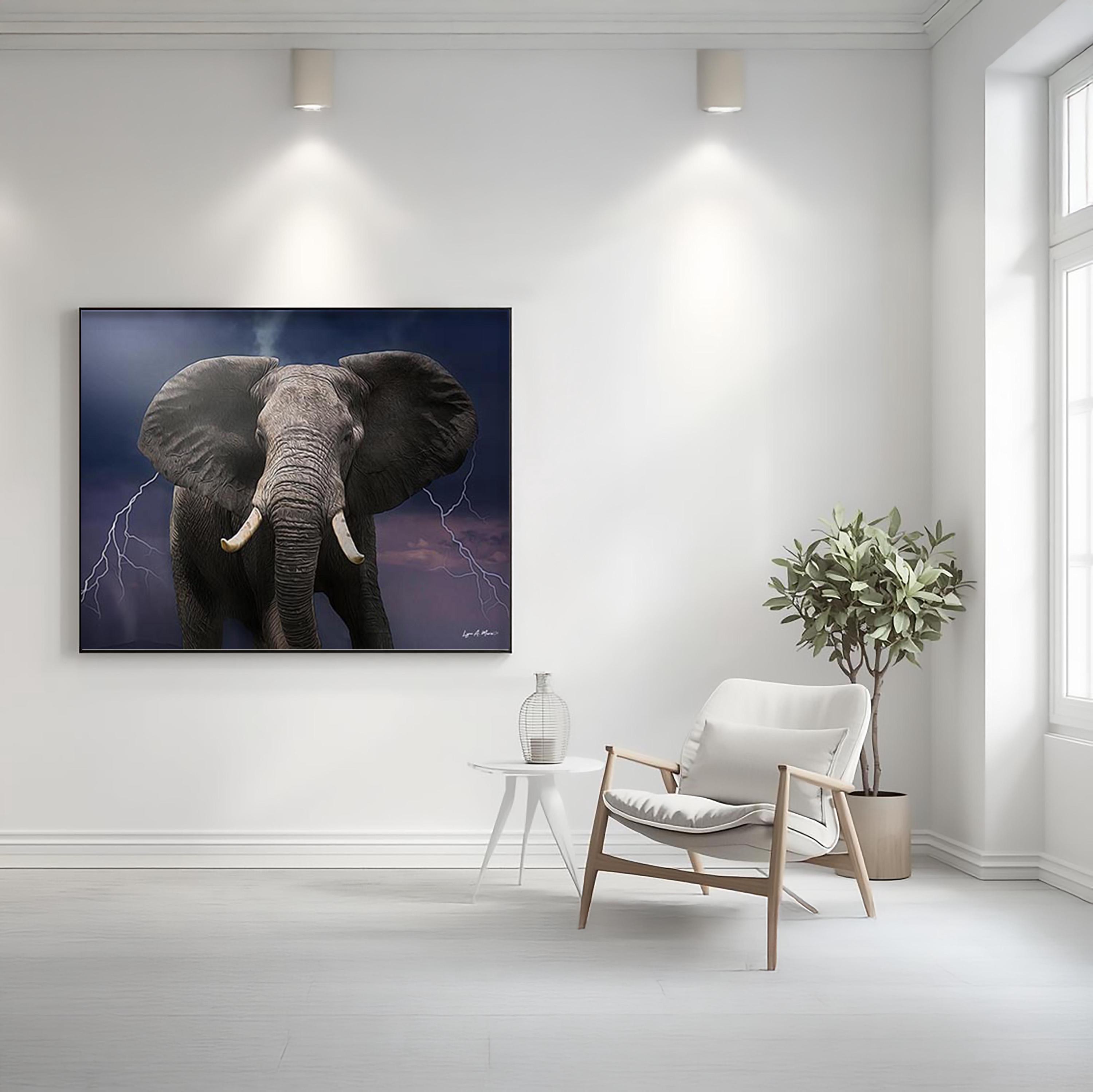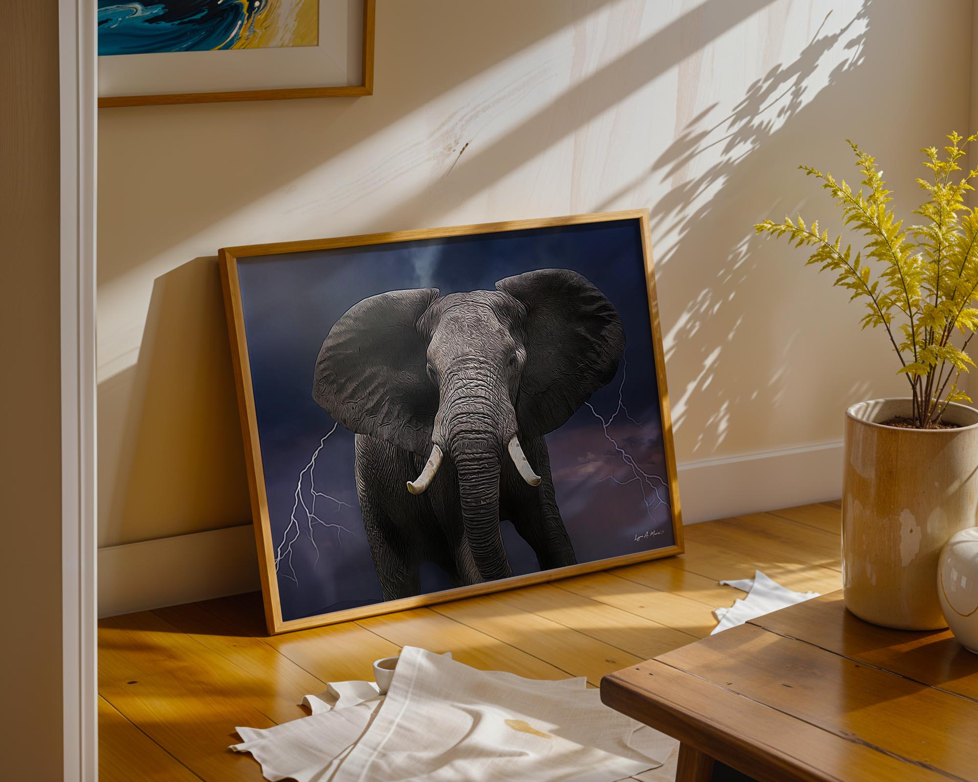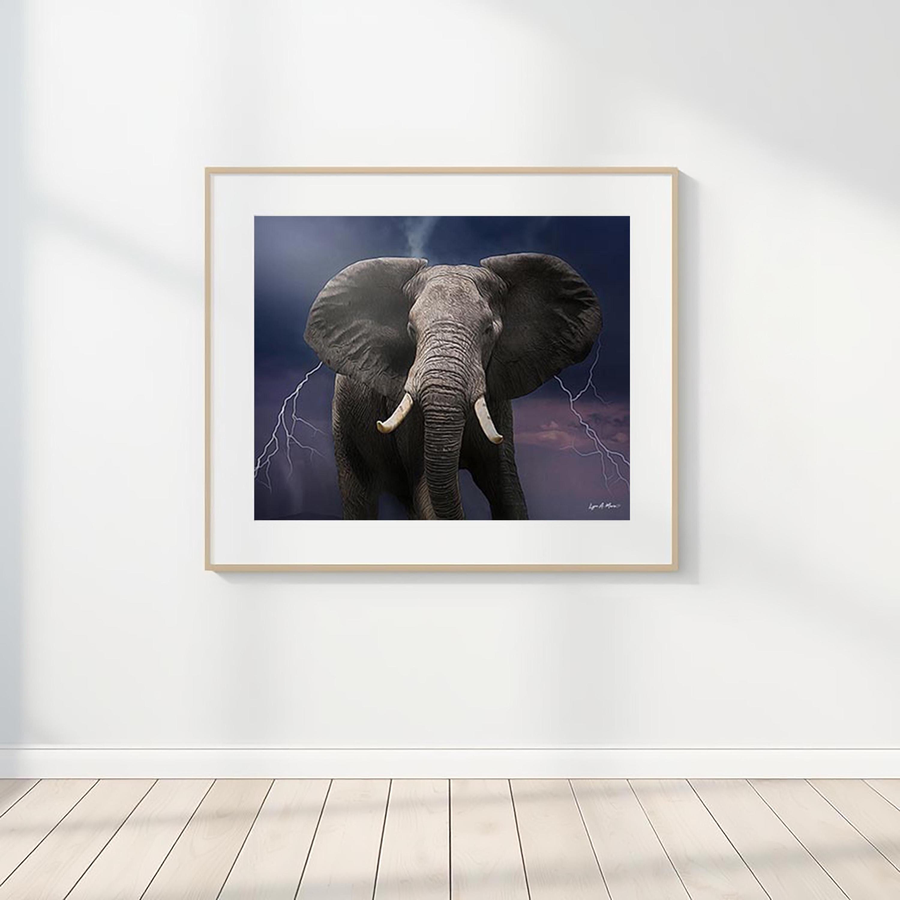 I created this to capture the bold strength of the African elephant and bring that wild energy into any living room or nature-inspired homes. This piece is digitally created, not AI generated, and reflects my love for wildlife, classic safari art, and meaningful animal conservation. The stormy atmosphere adds a dramatic touch, making it a striking choice for elephant decor, home decor, cabins, or a wildlife lodge lovers. I wanted this signed art print to feel powerful, real, and alive on your wall.