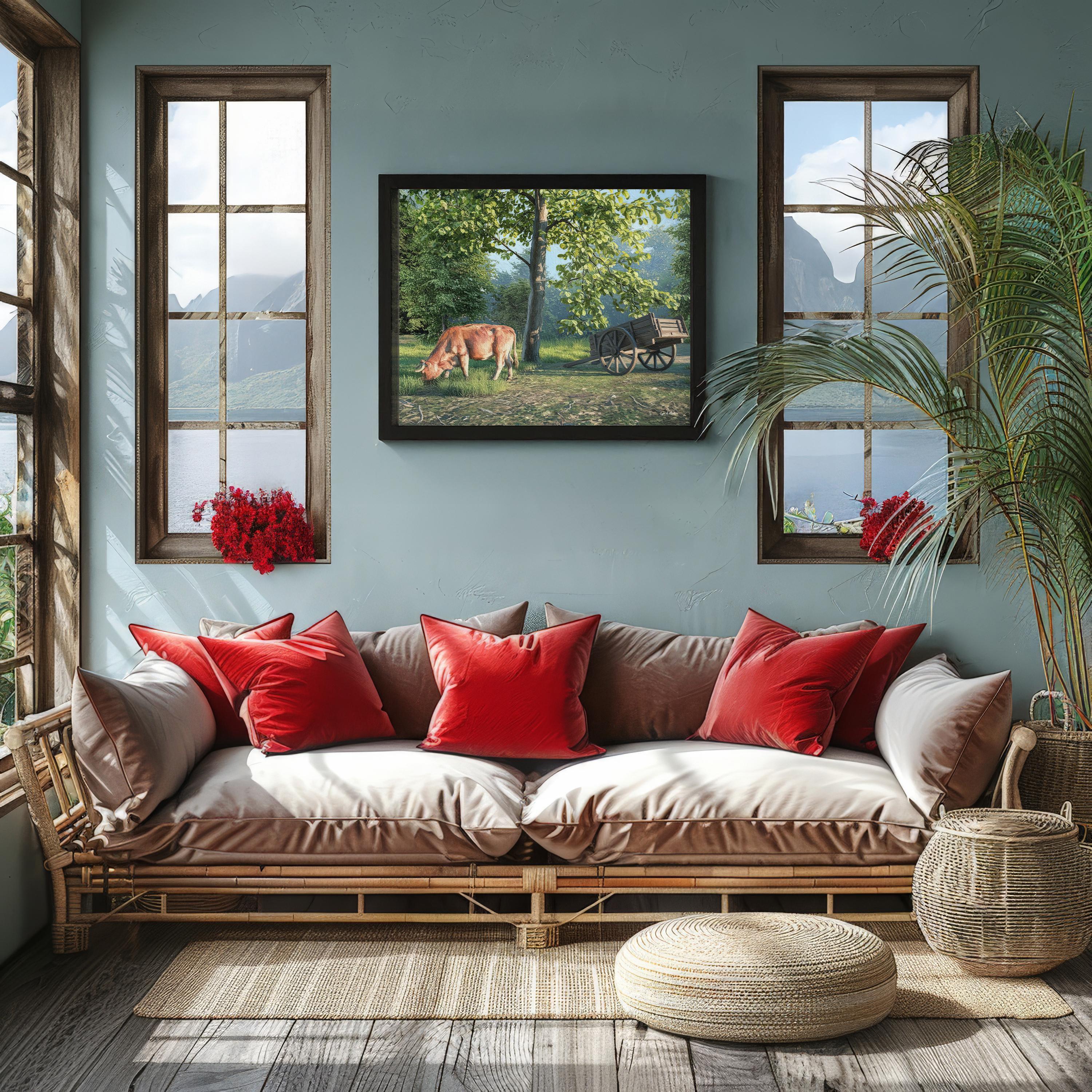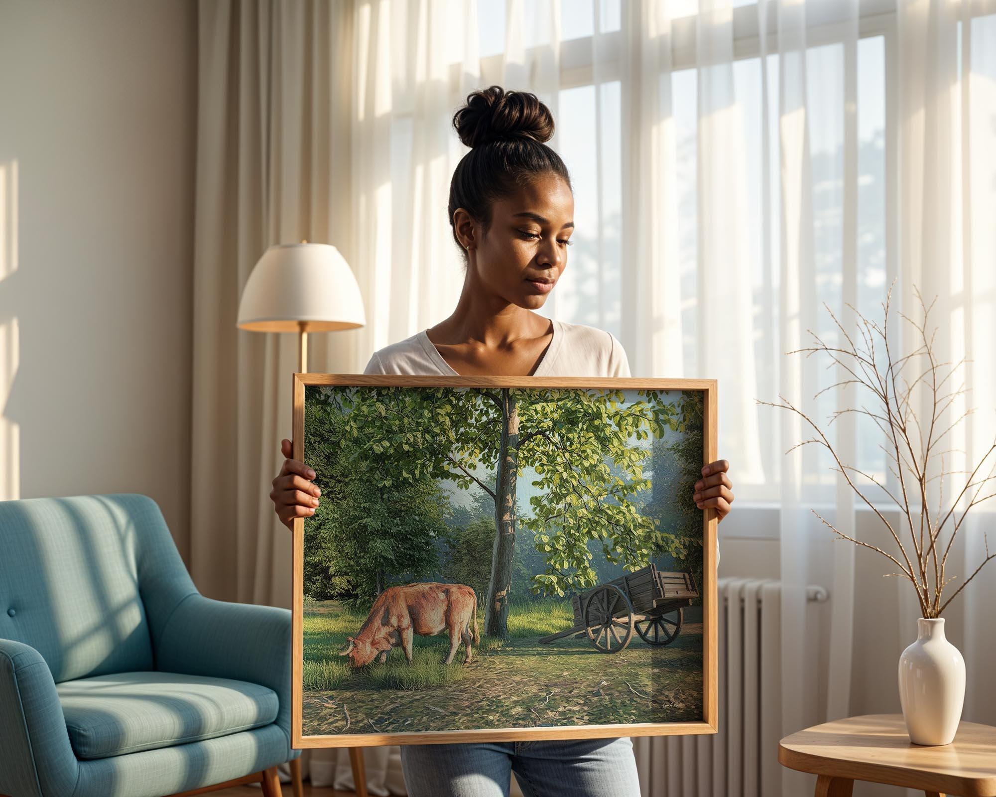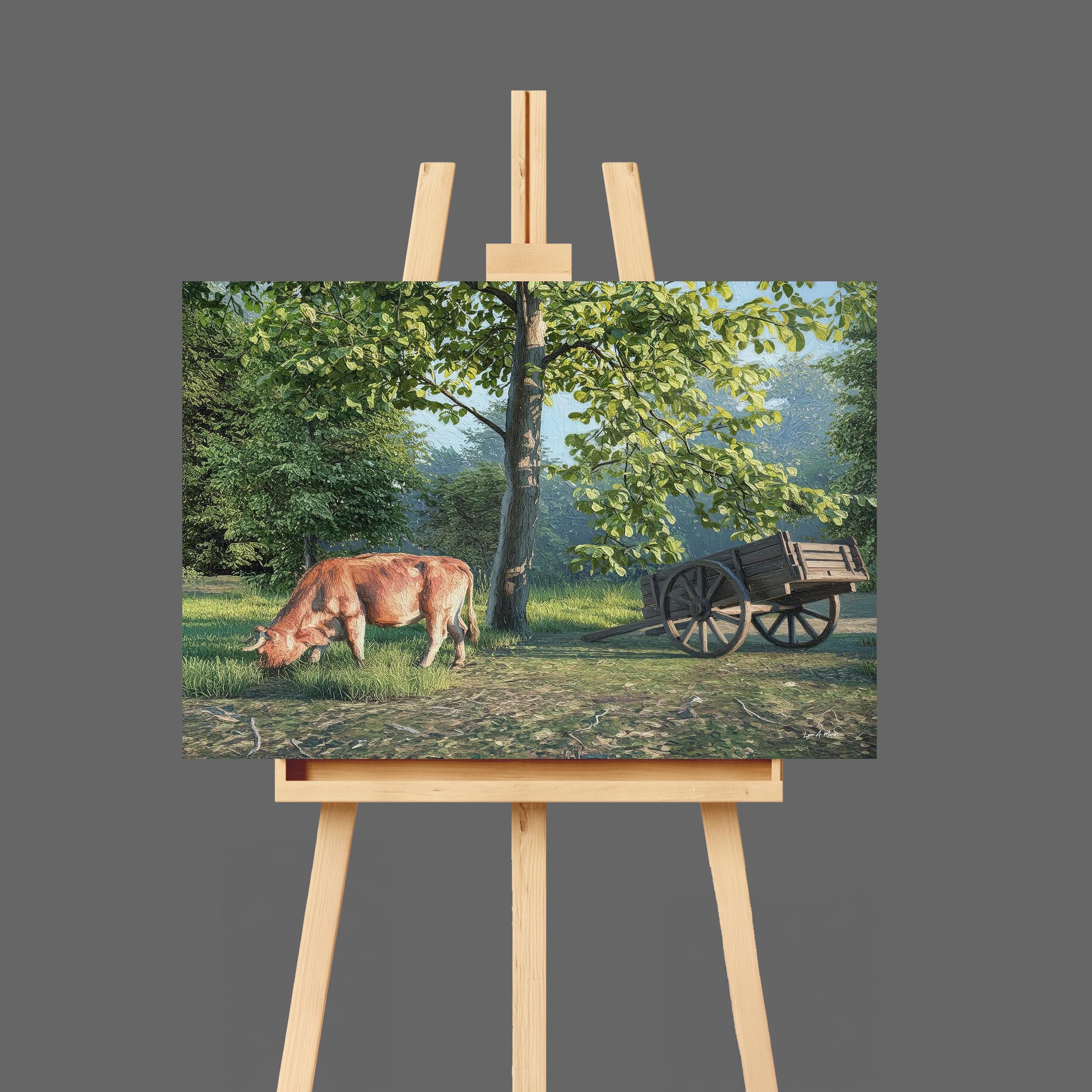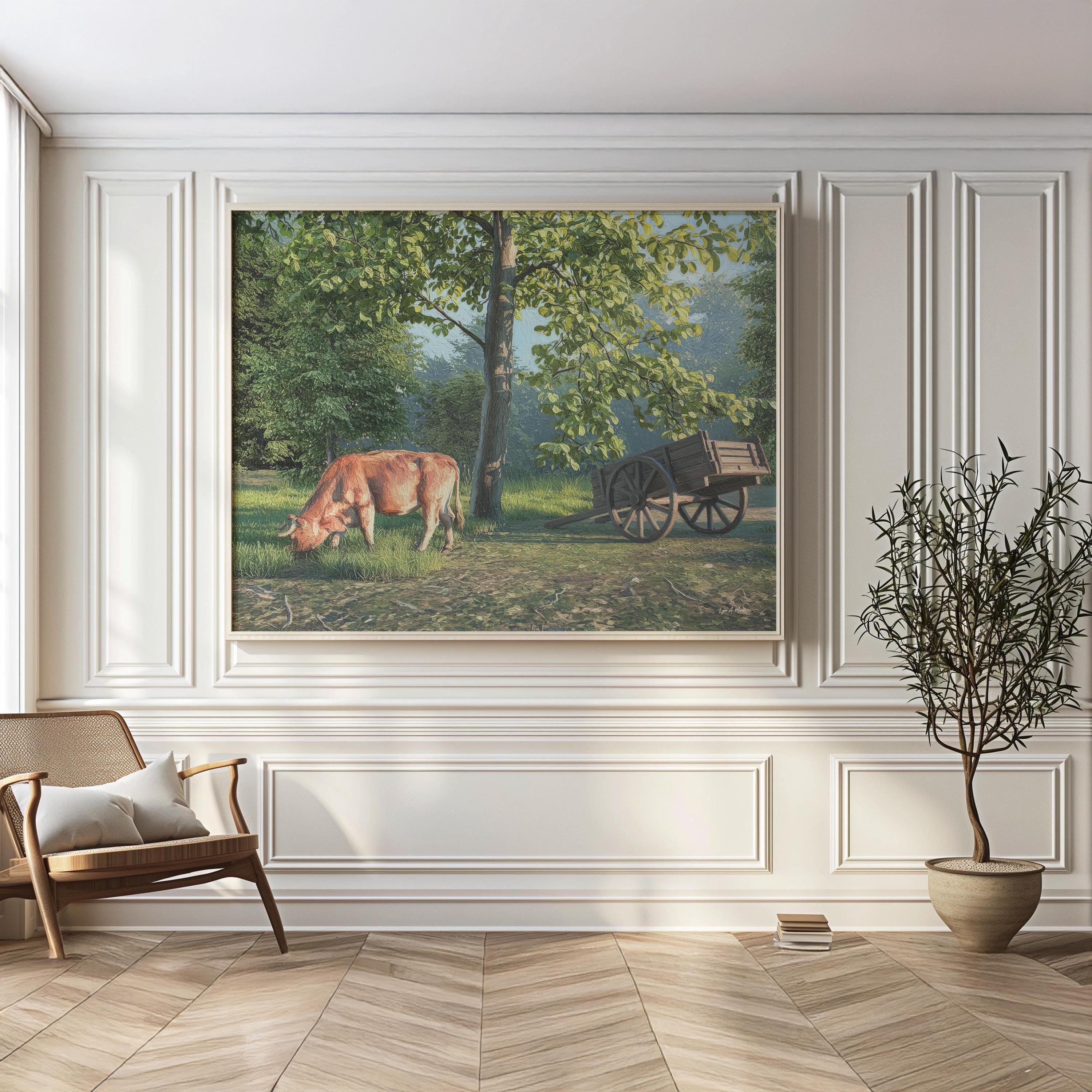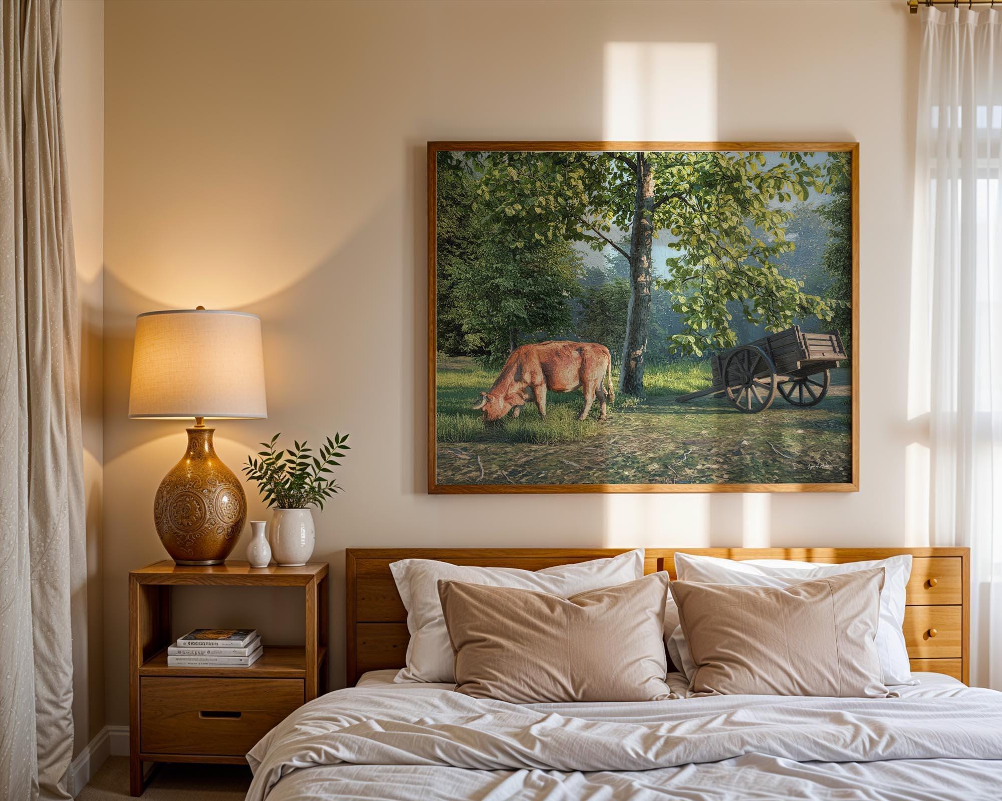 I created this signed landscape country piece to capture the serene, peaceful feeling of nature’s quiet moments. The gentle light, open pasture field, and simple beauty of rural life remind me how calming it is to slow down and just breathe. It’s a perfect addition to any office wall or any living room decor, bringing a touch of natural harmony and warmth into the home.