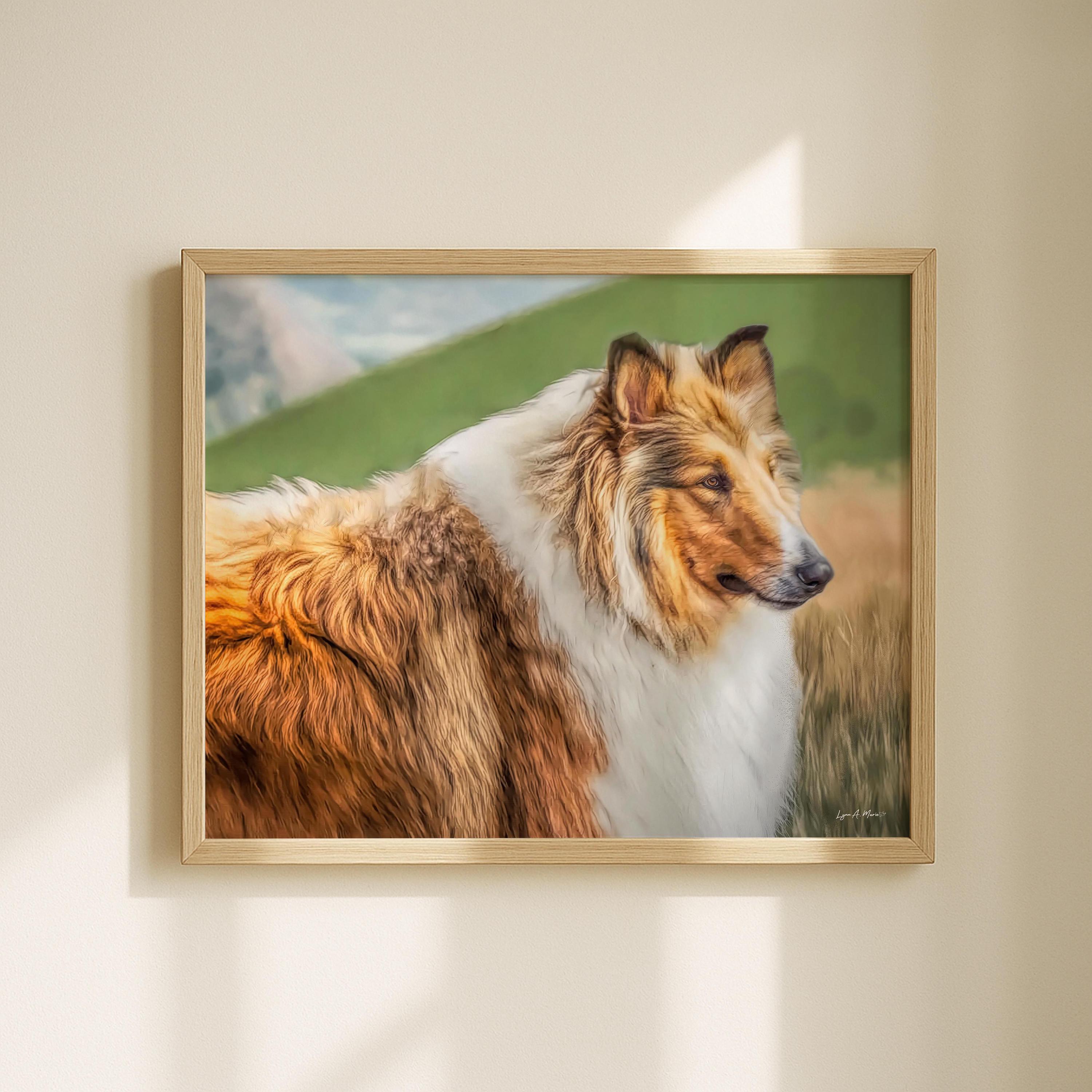 I created this artwork to capture the calm beauty of the rough collie in a real, heartfelt way. Its gentle, herding nature makes it perfect as living room wall decor and a great gift idea for any dog or pet lover. I wanted this piece to feel warm, authentic, and not AI generated, offering decor that brings comfort and personality into any space.
