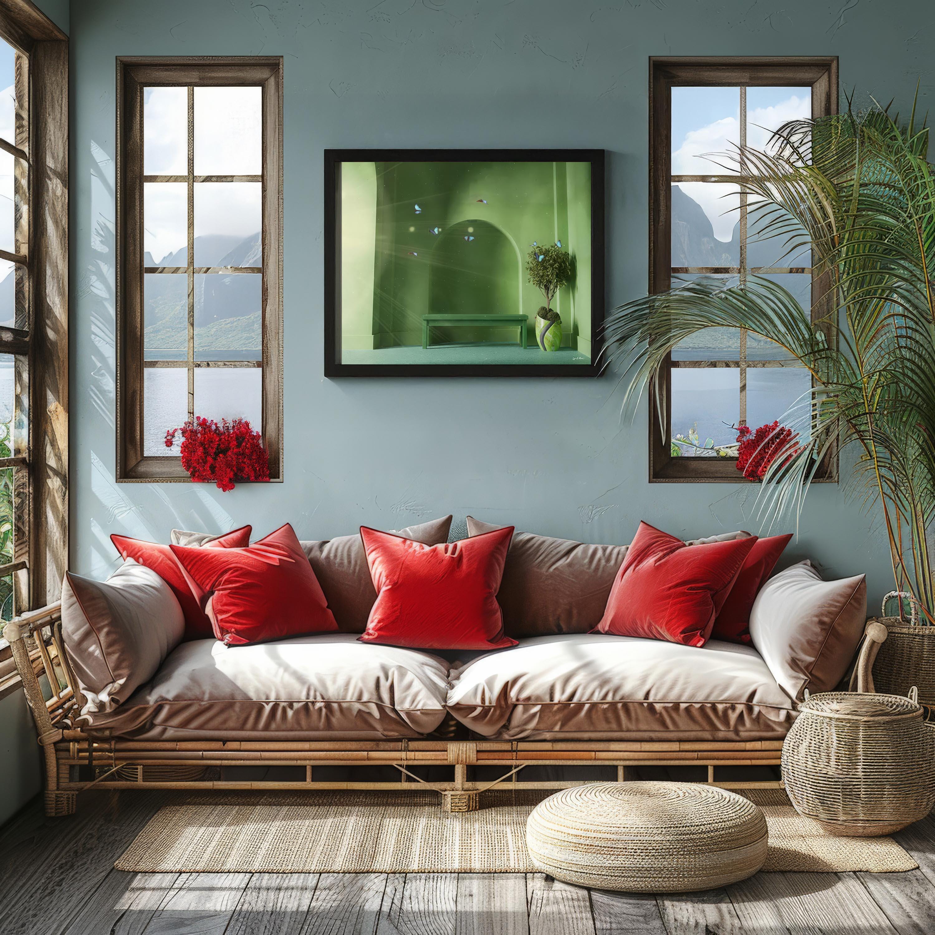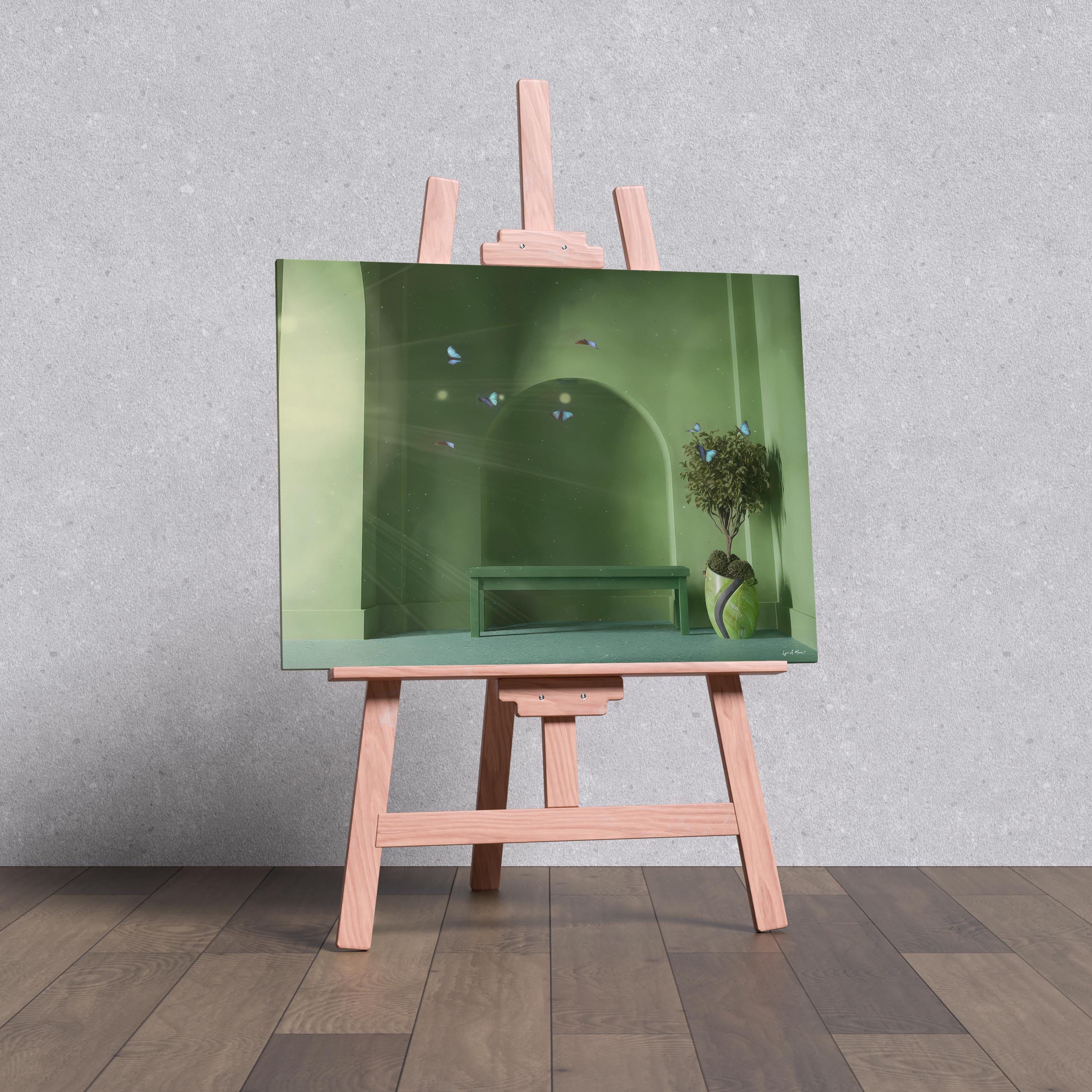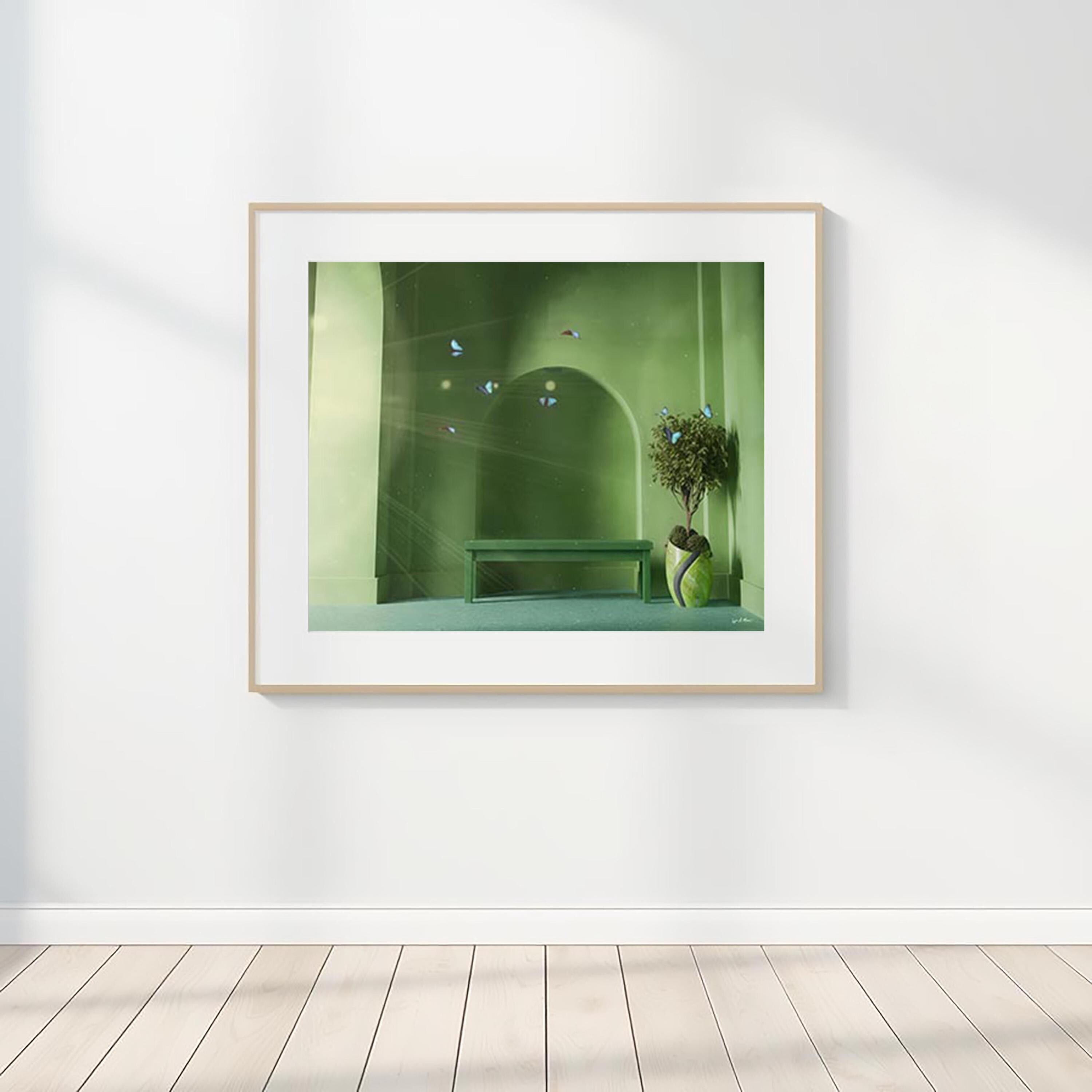 This artwork features a calm, refined portrait-style composition with soft green tones and subtle motion, inspired by a journalistic sense of balance and storytelling. Designed to feel quiet yet thoughtful, it brings a polished, professional atmosphere to an office, hotel, or lobby setting.