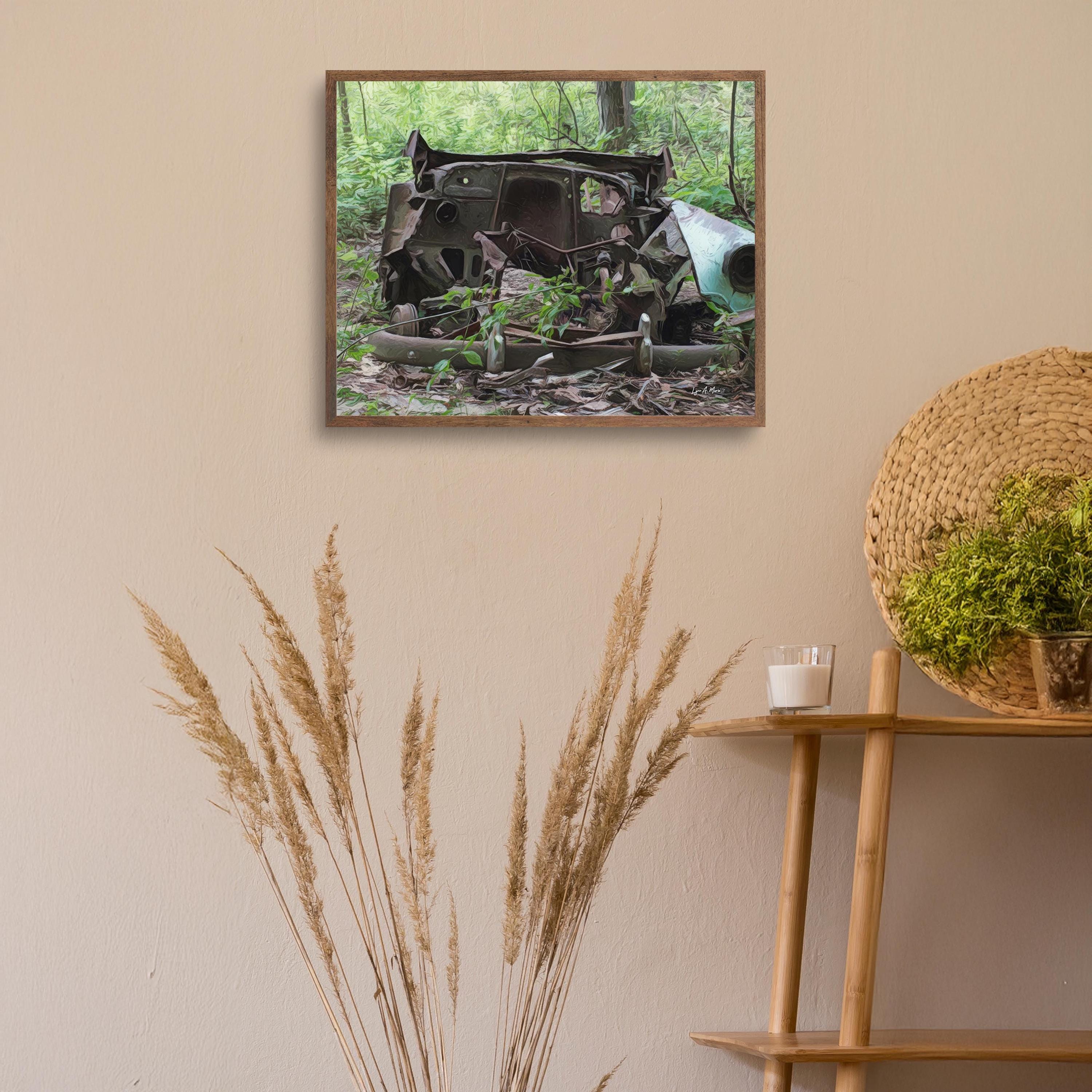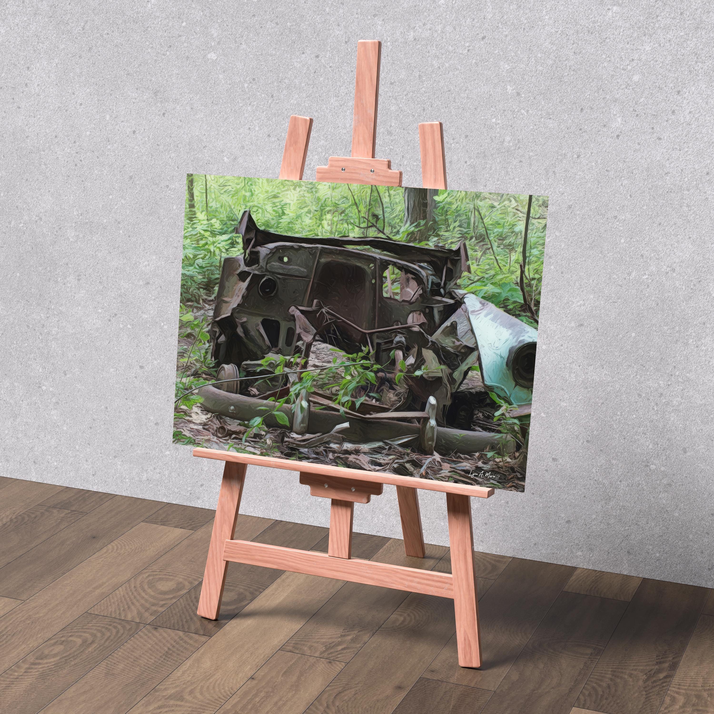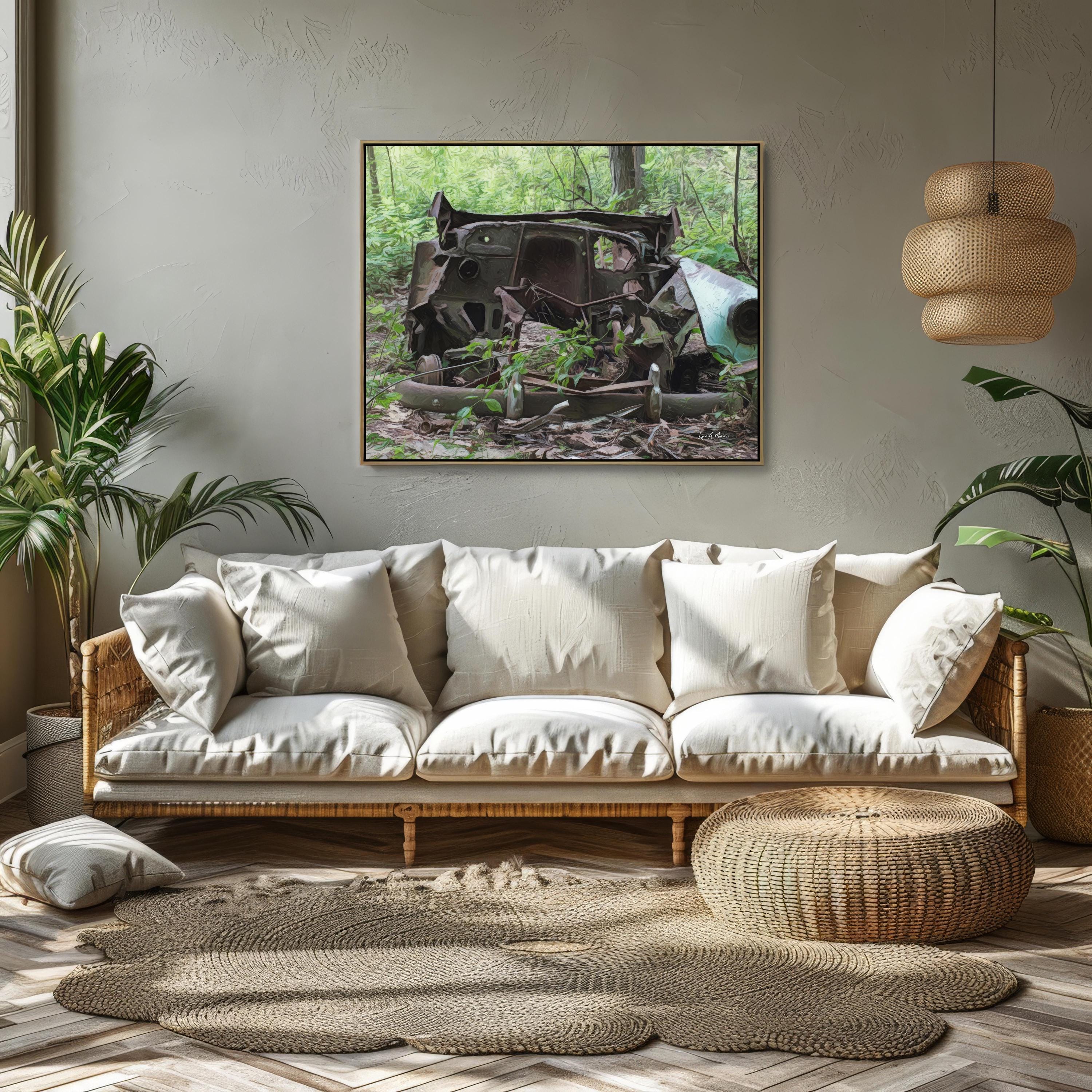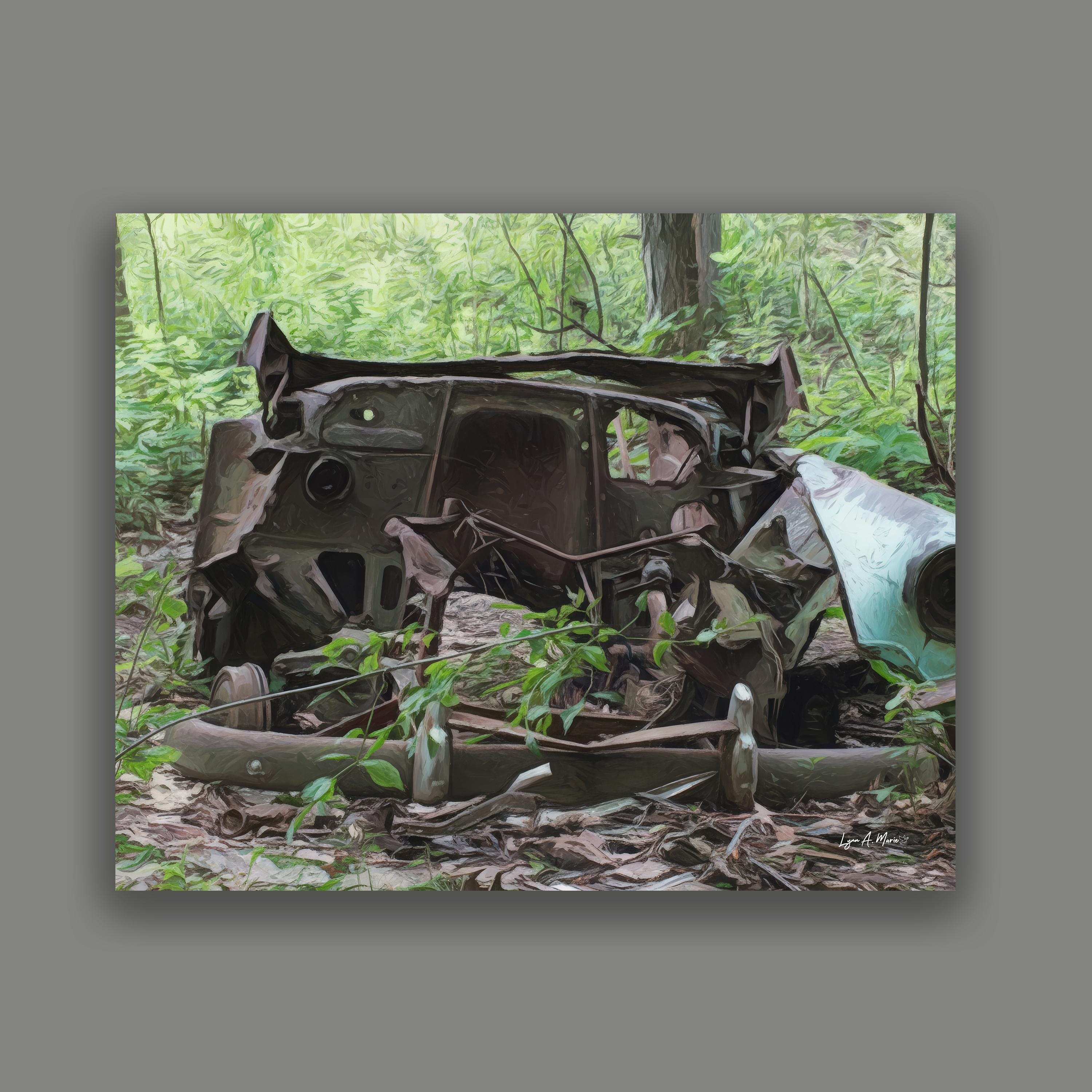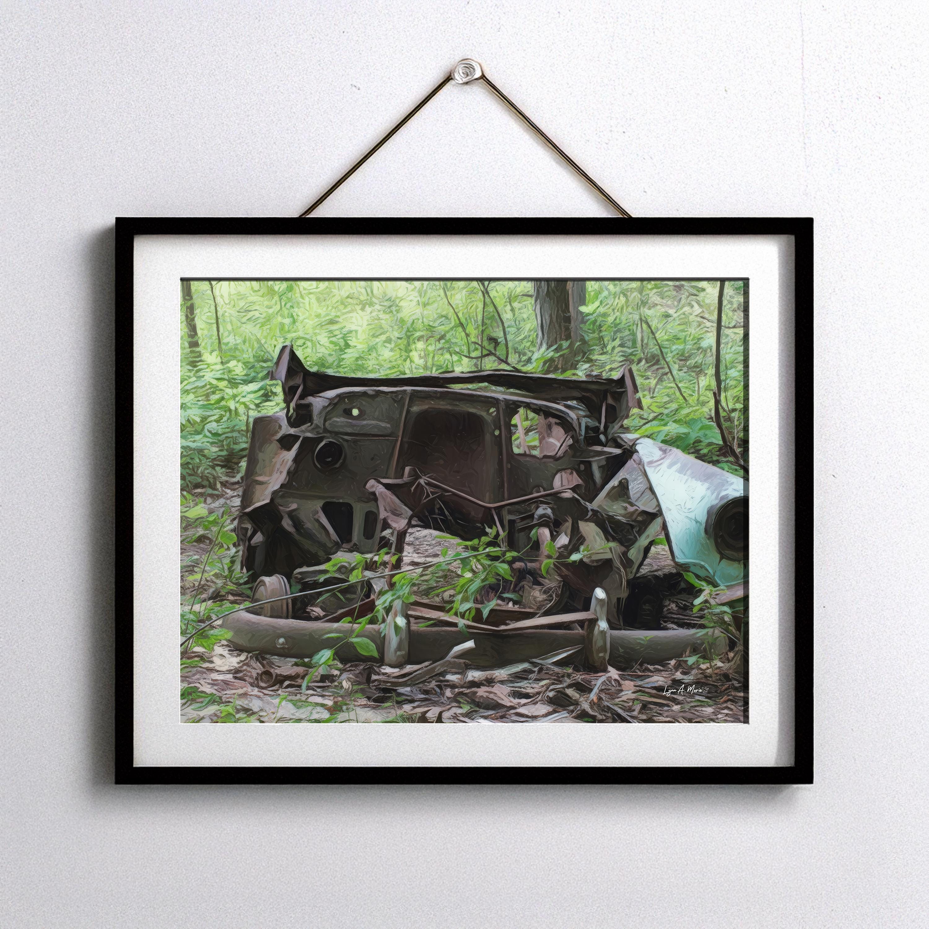 I created this artwork because I was drawn to how nature was taking back what was once man-made. The old car slowly being reclaimed by the forest felt peaceful and powerful at the same time, and I wanted to capture that moment in a simplistic way.