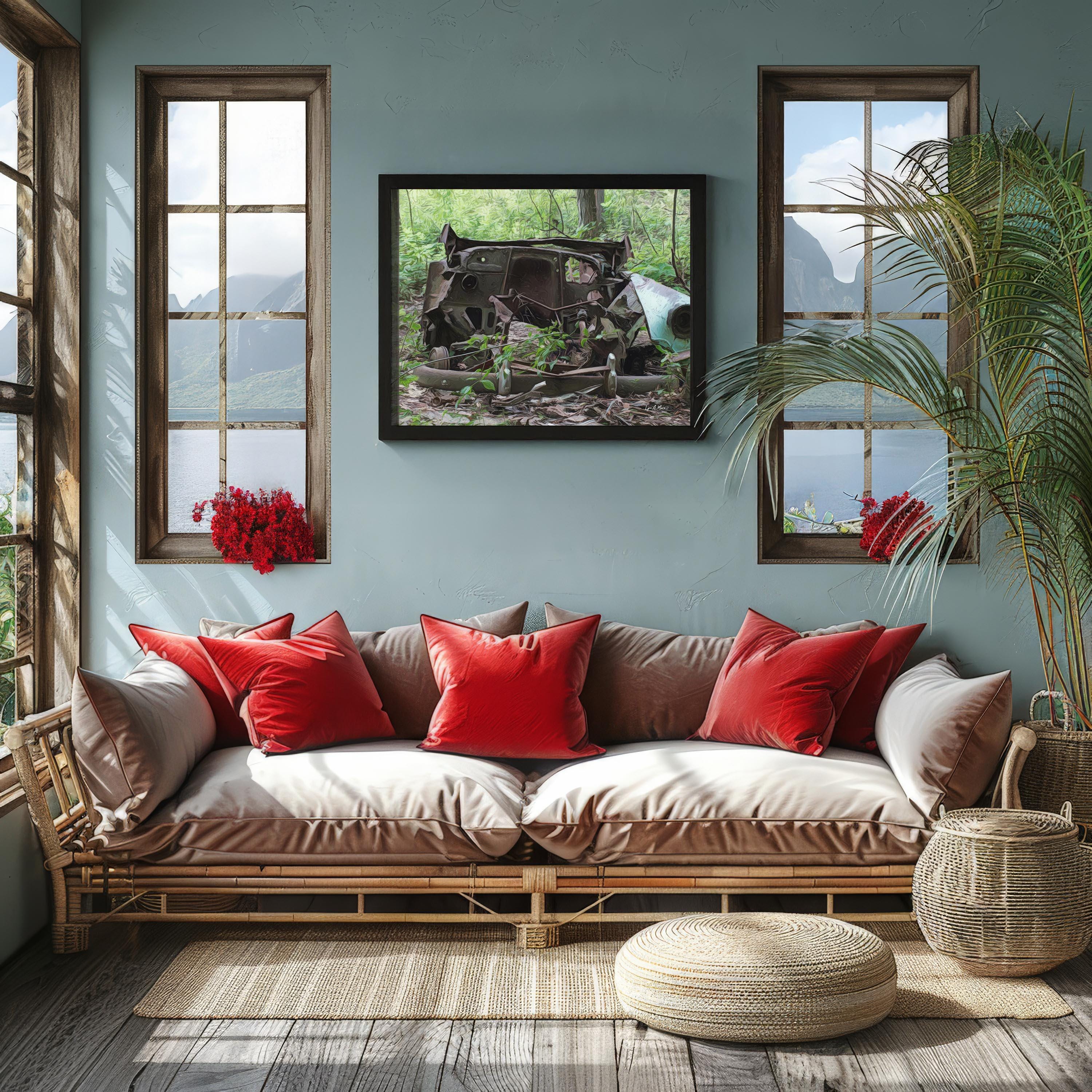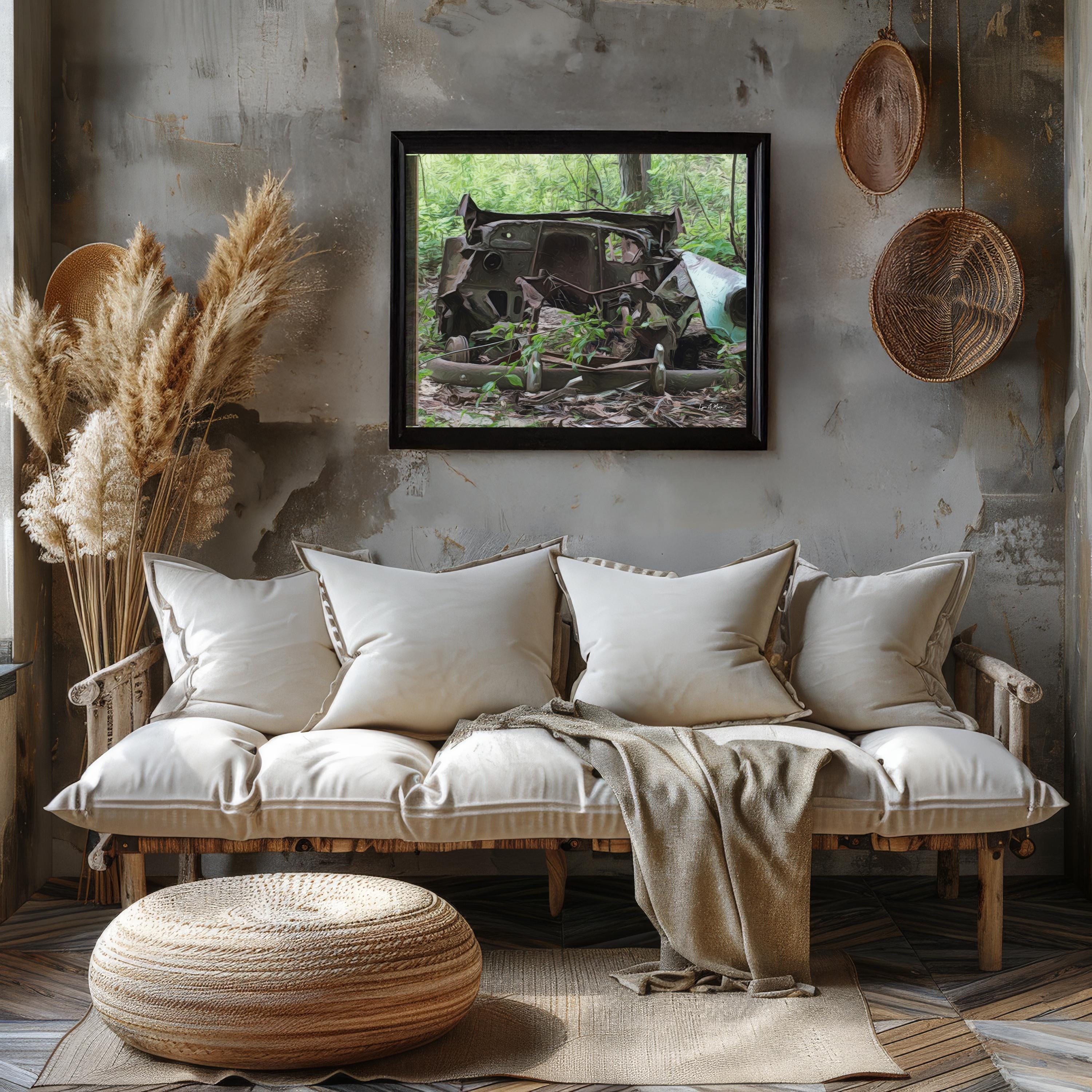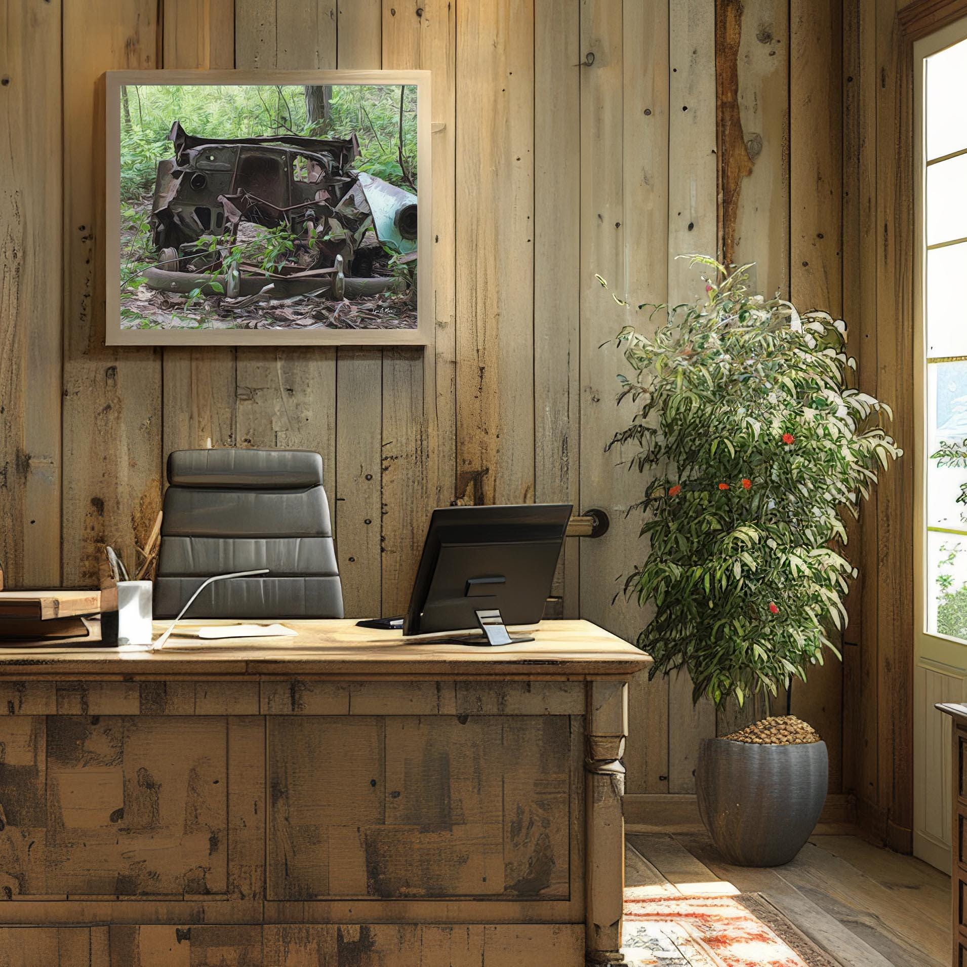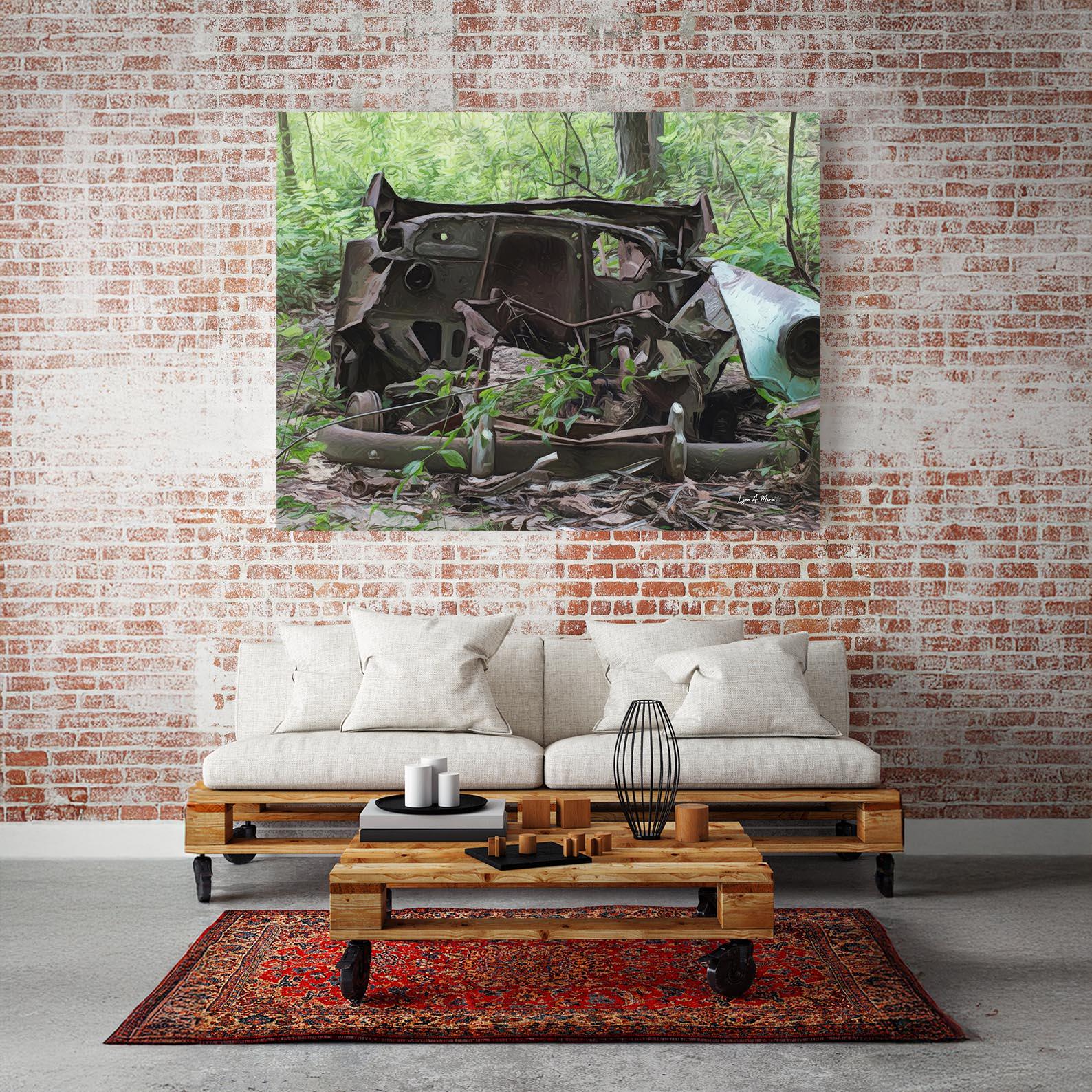 I created this artwork because I was drawn to how nature was taking back what was once man-made. The old car slowly being reclaimed by the forest felt peaceful and powerful at the same time, and I wanted to capture that moment in a simplistic way.