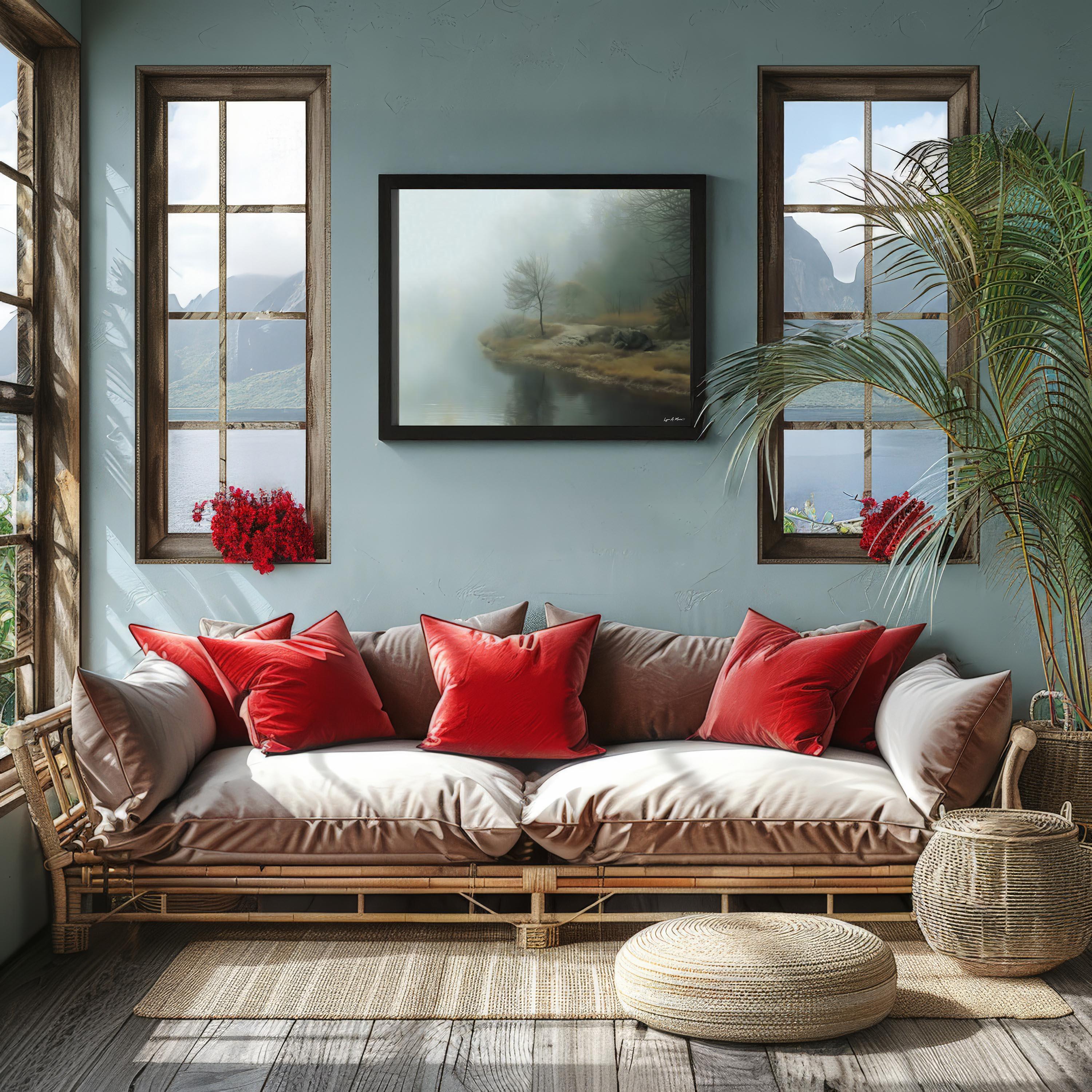 This print is a big seller when I take it to art fairs. It's usually the first one that sells out. I created this serene, misty landscape to capture a quiet moment in nature that feels calming and timeless. The soft fog and still water scene were meant to evoke a sense of tranquility, offering peaceful wall decor that helps create a relaxing atmosphere in any space. Perfect for a office or a spa style atmosphere as well.