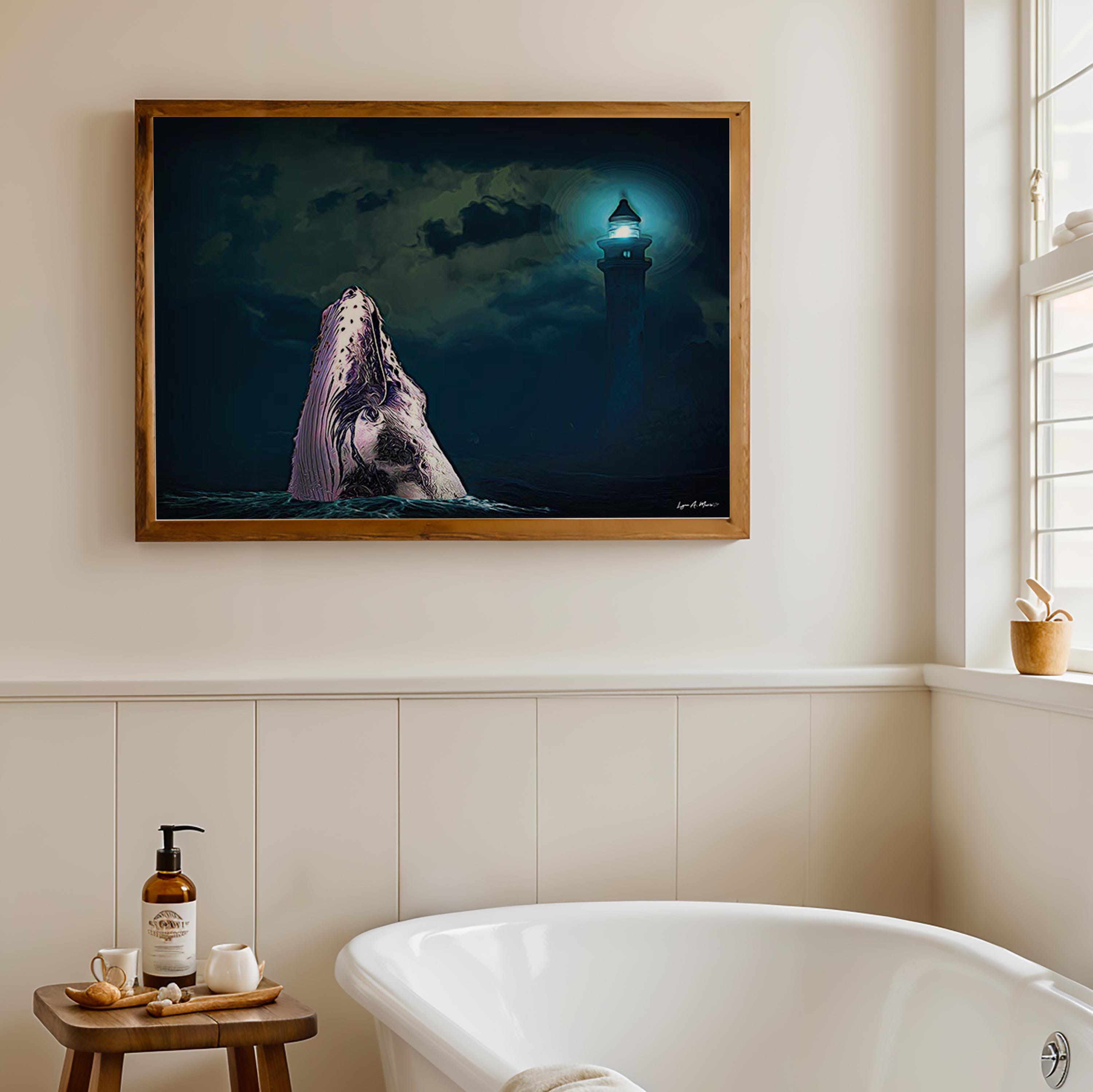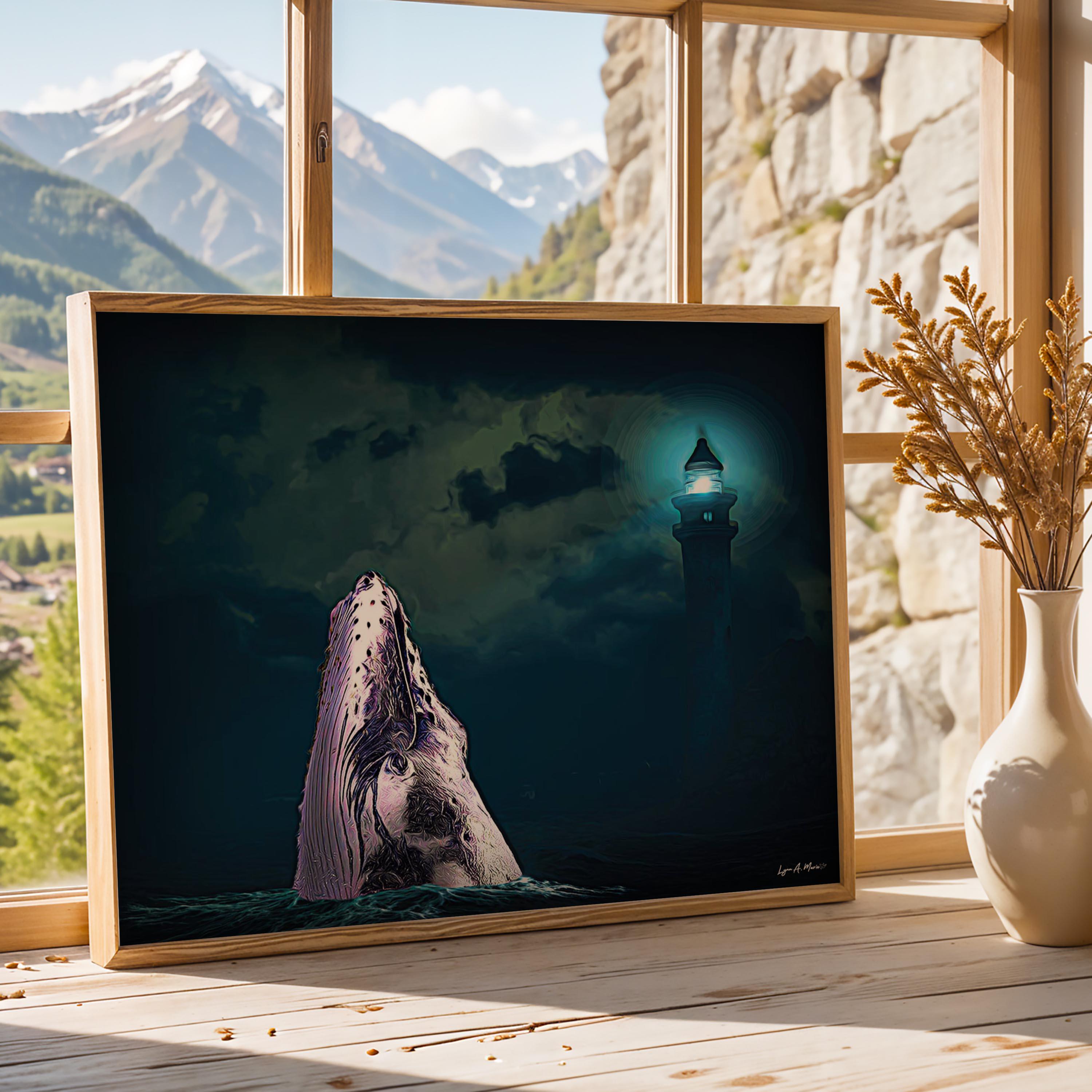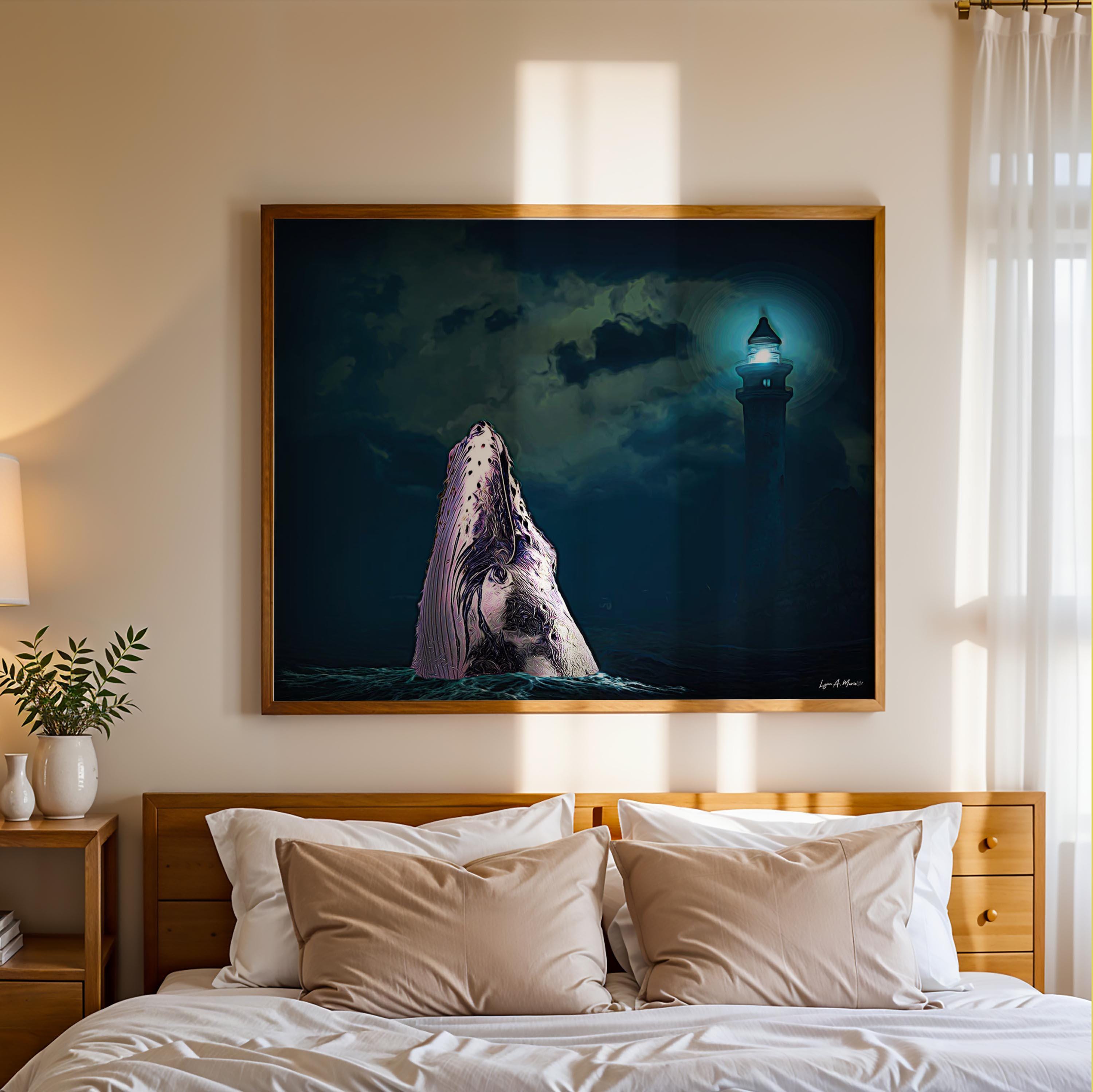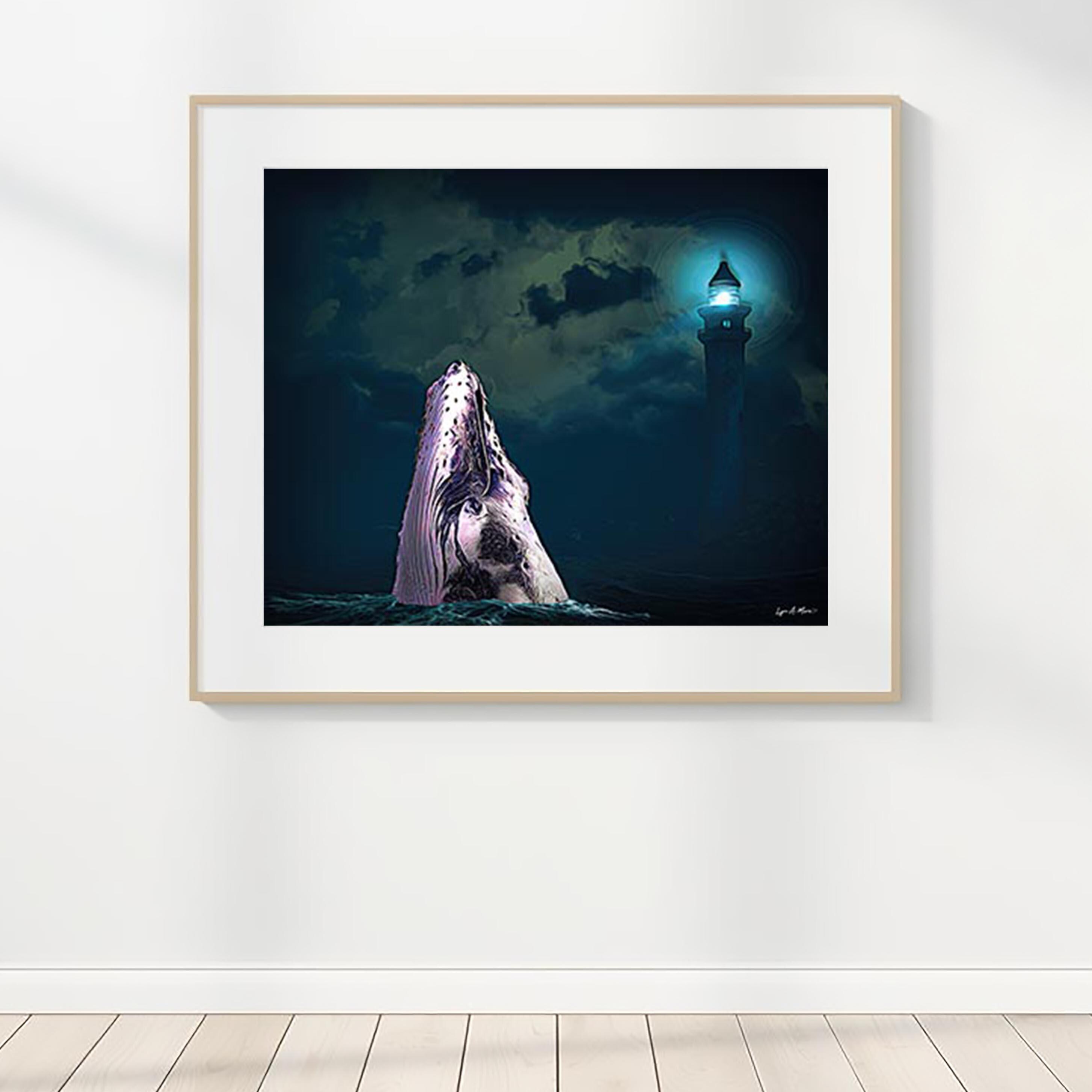 I created this piece to capture the quiet magic of a humpback whale rising beneath a guiding light, an intimate seascape that feels both strong and serene. I imagined it hanging in a livingroom or any coastal home, bringing the mood of the ocean indoors as calming decor. As a signed artprint, it’s a thoughtful gift idea for any animal fan or wildlife lover who keeps the beach close at heart. Whether for a modern loft or a beach house, this whale moment offers a timeless connection to the sea.