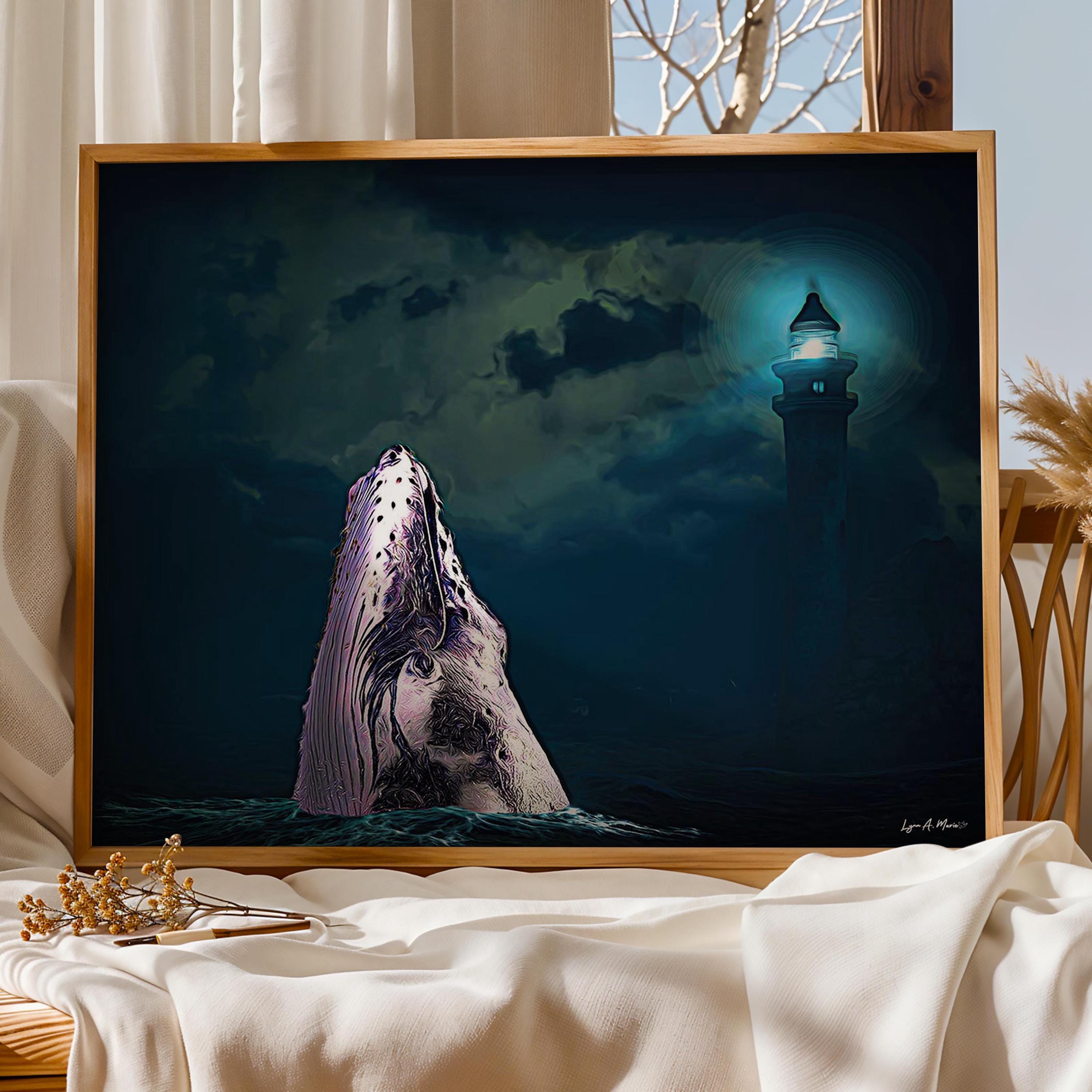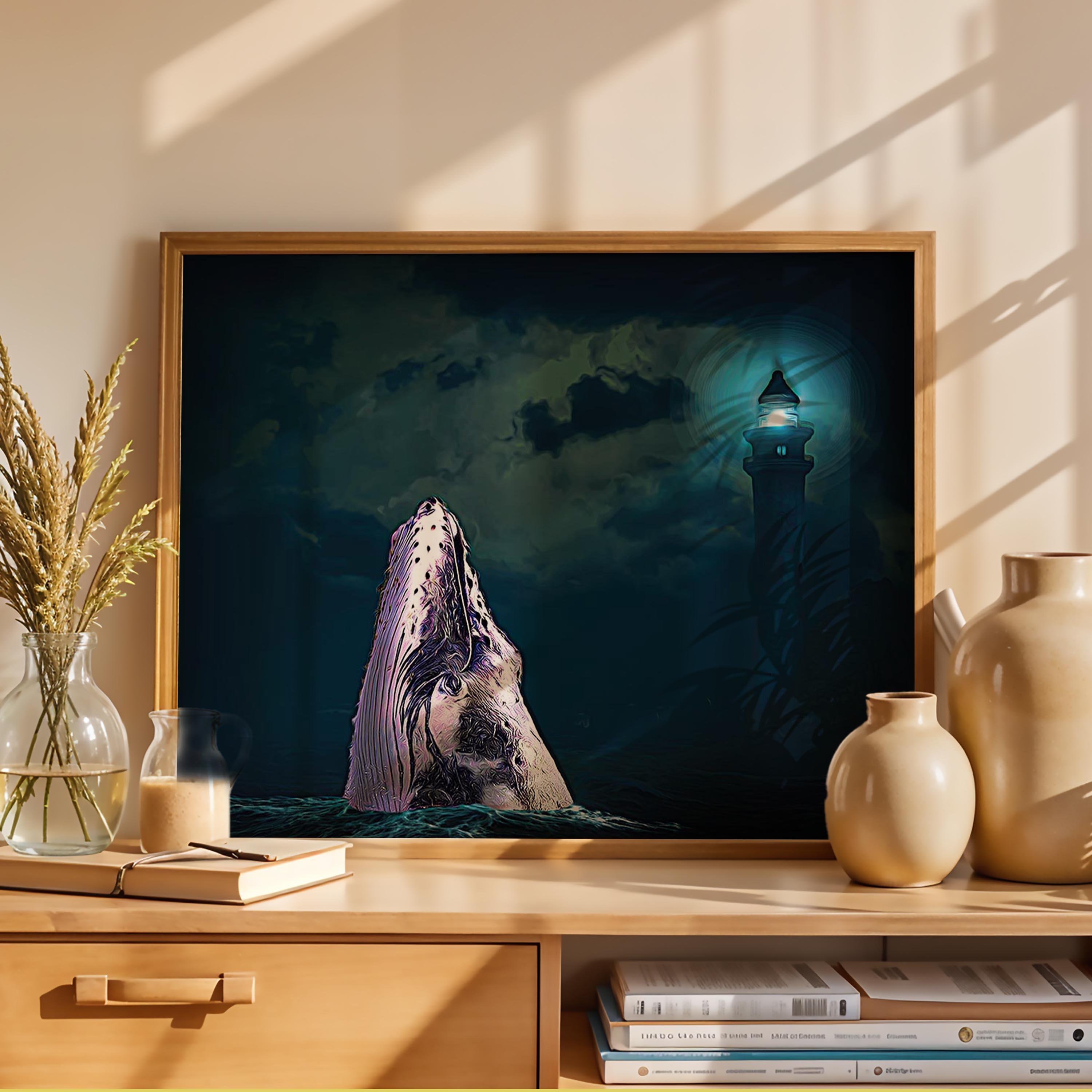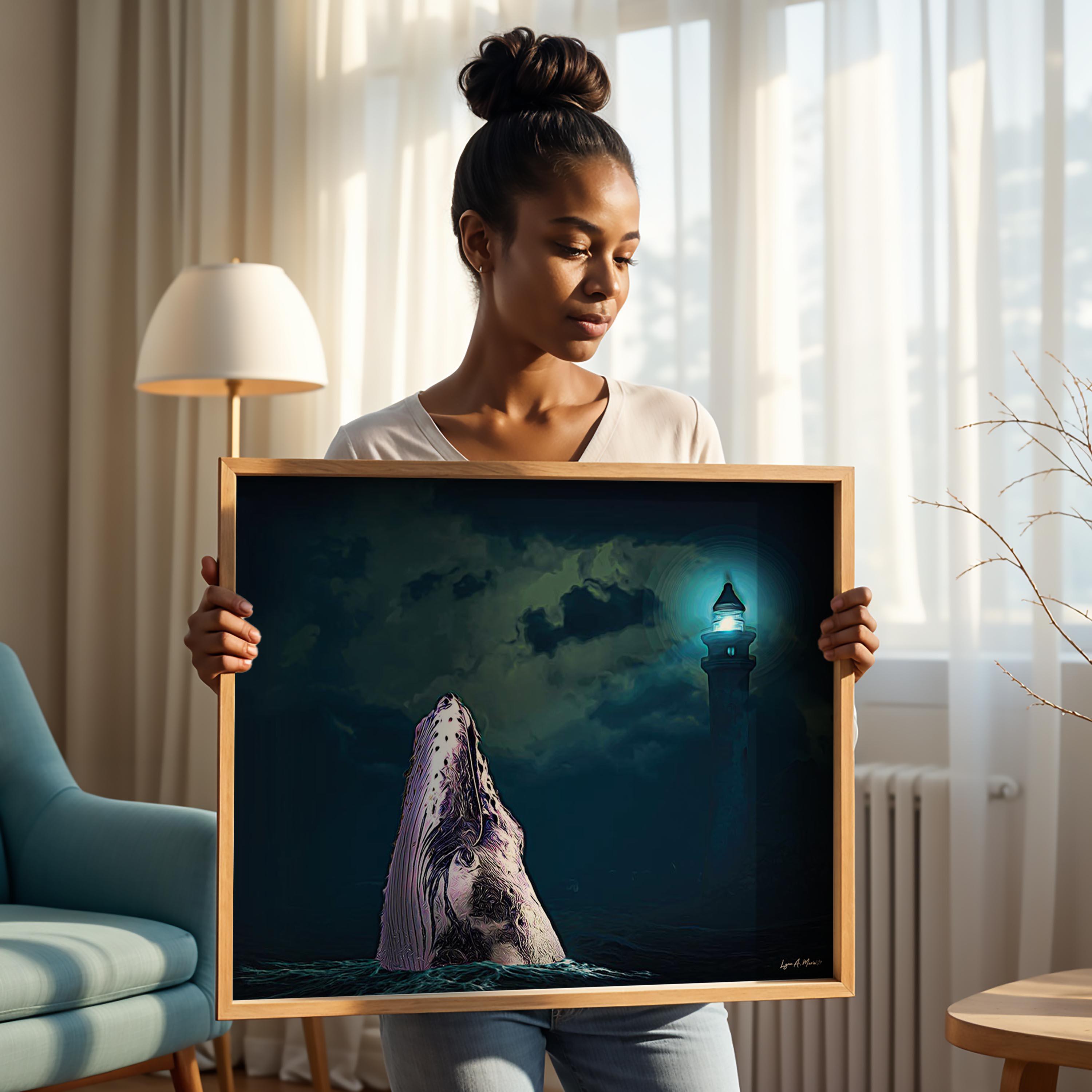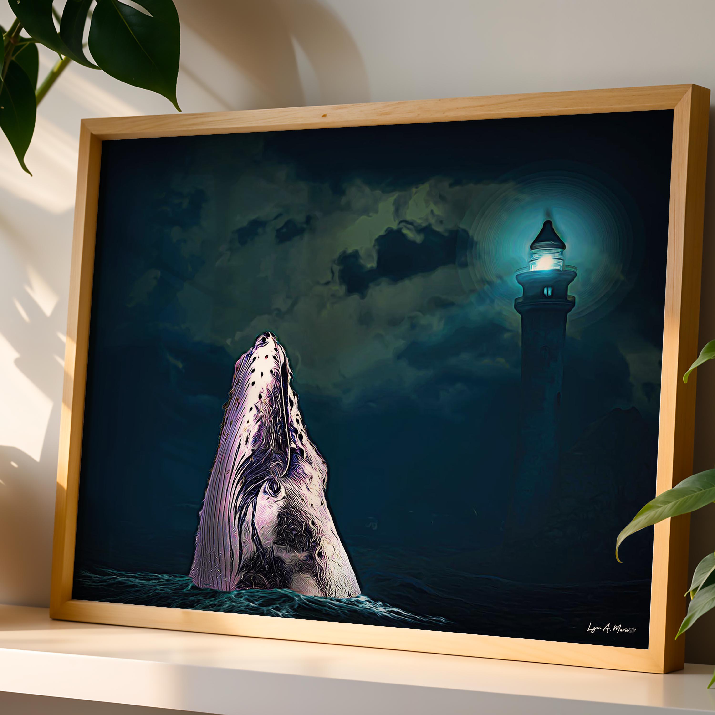 I created this piece to capture the quiet magic of a humpback whale rising beneath a guiding light, an intimate seascape that feels both strong and serene. I imagined it hanging in a livingroom or any coastal home, bringing the mood of the ocean indoors as calming decor. As a signed artprint, it’s a thoughtful gift idea for any animal fan or wildlife lover who keeps the beach close at heart. Whether for a modern loft or a beach house, this whale moment offers a timeless connection to the sea.