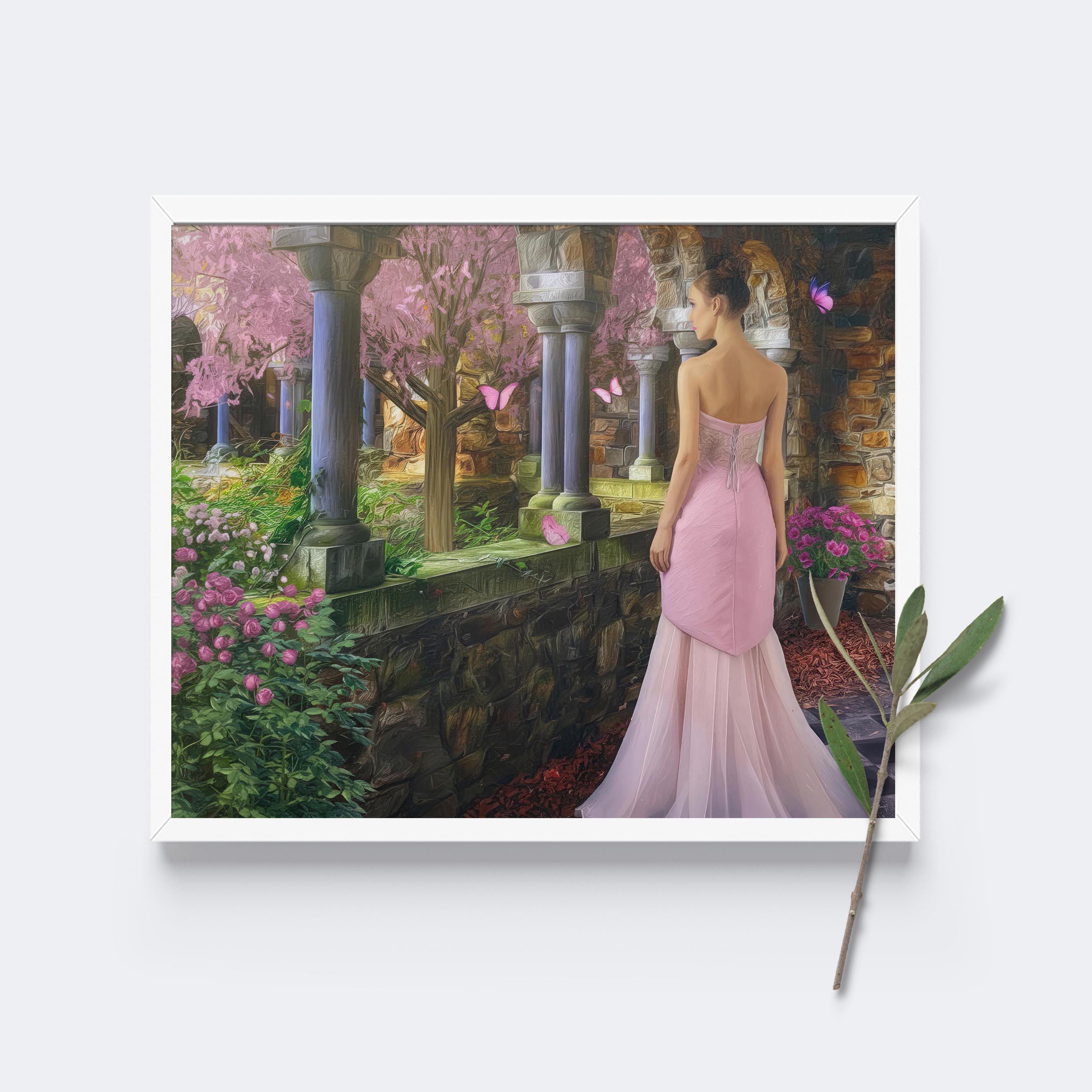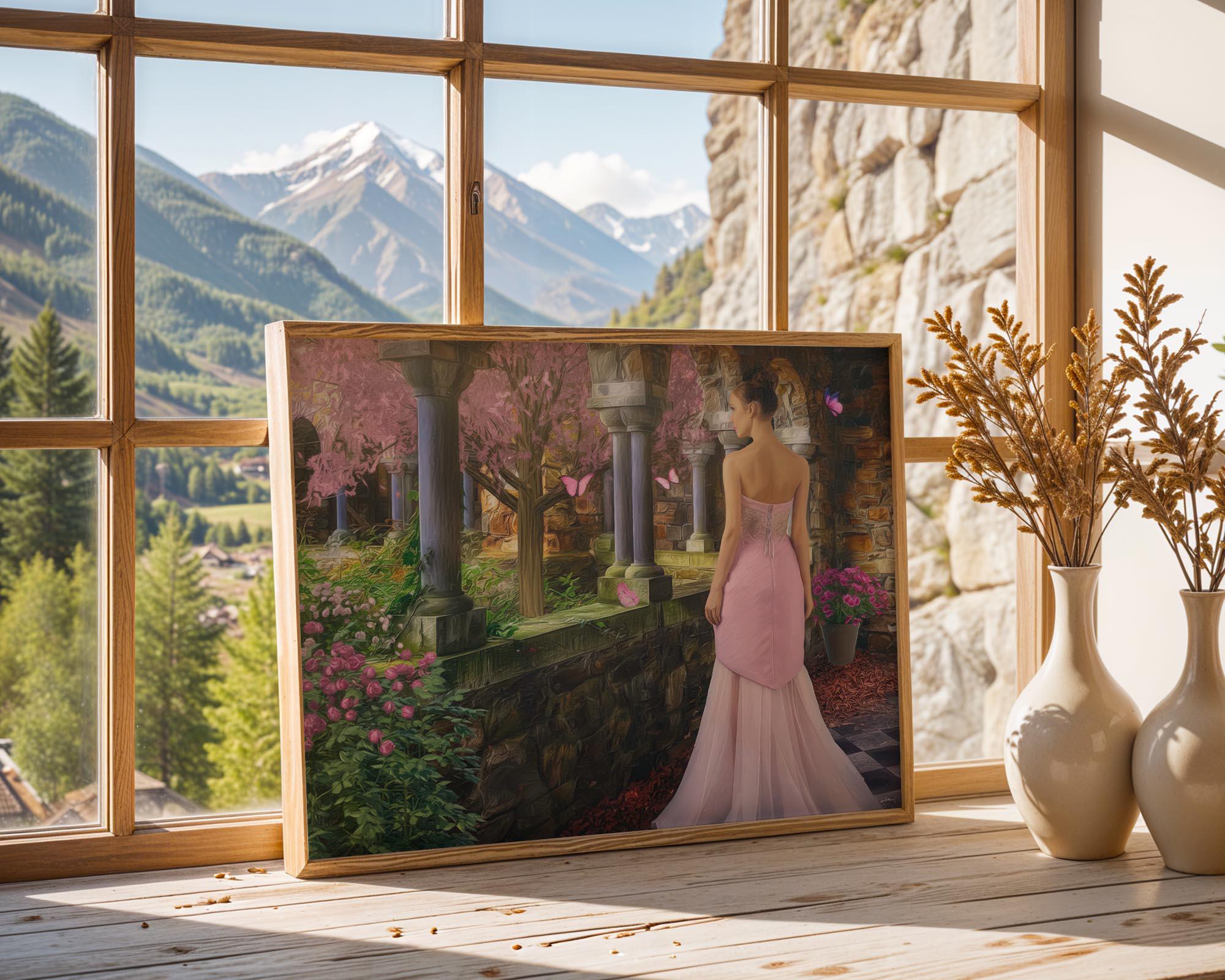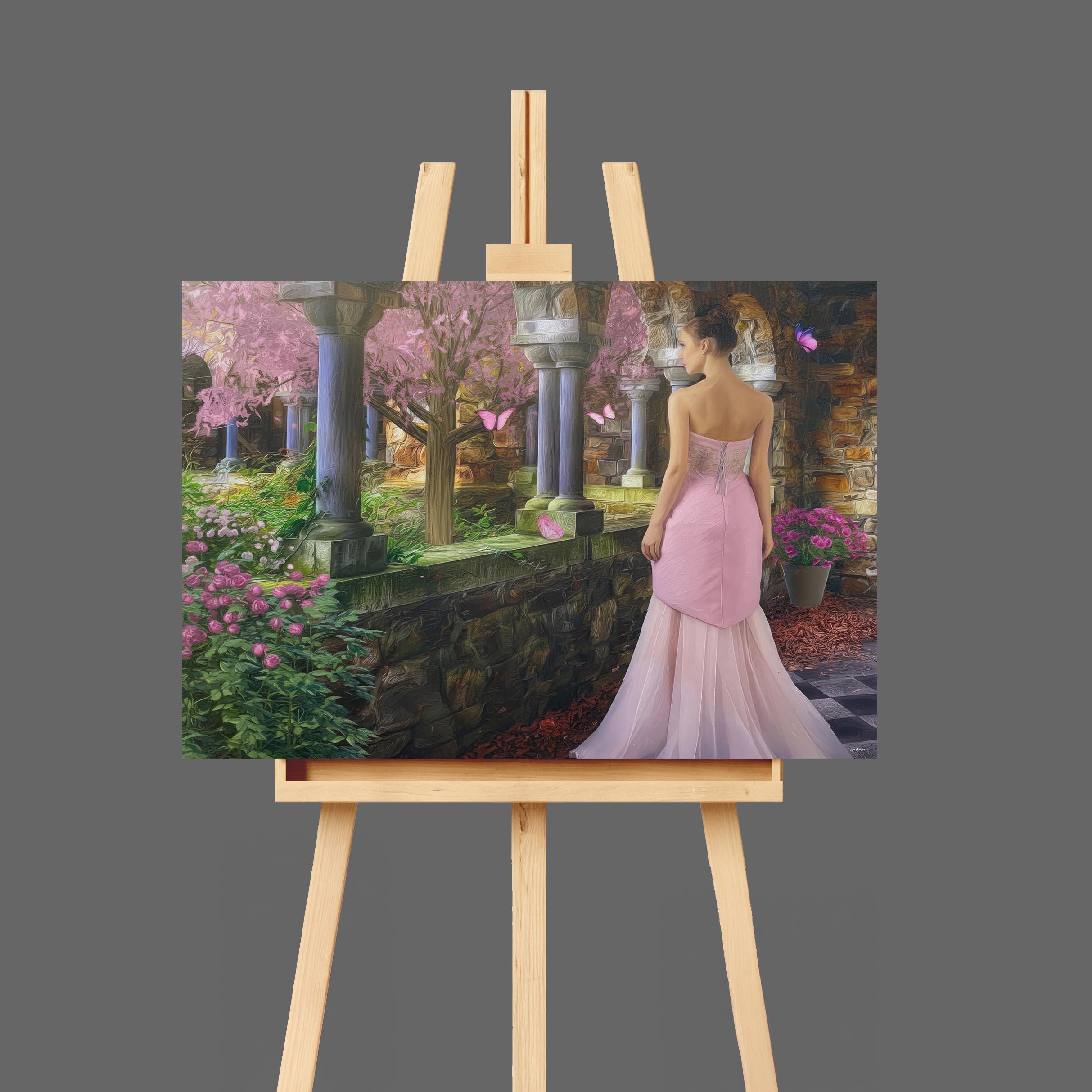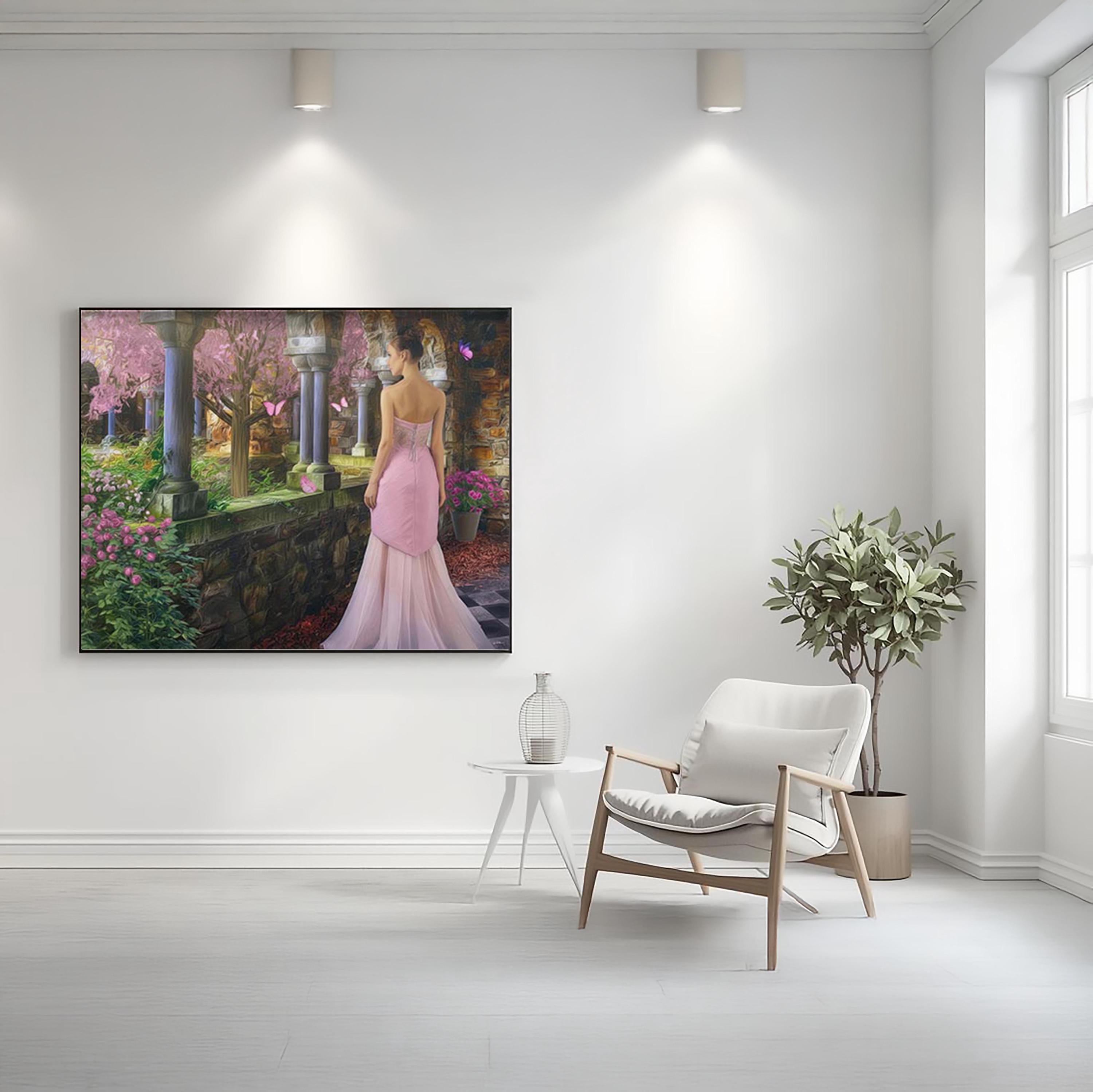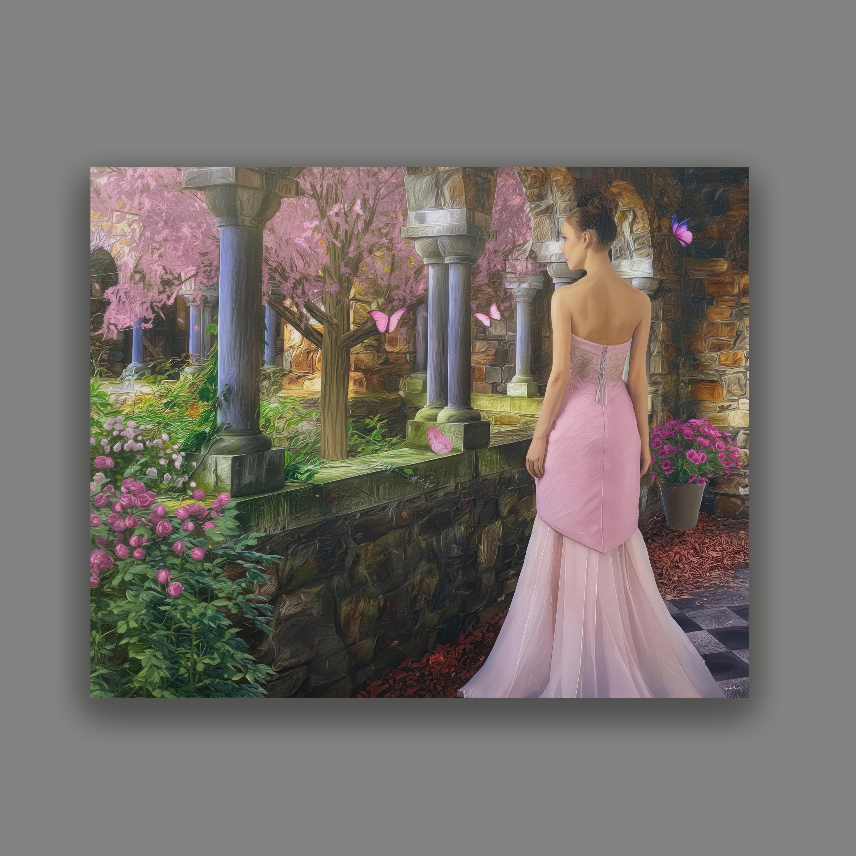 I created this signed artwork as a gentle escape into a fairy-tale garden, a place where nature feels soft, serene, and peaceful. The glowing stone arches, blooming flowers, and drifting butterfly shapes turn the scene into a dreamlike landscape that would bring a romantic touch to any livingroom or quiet lobby. I imagined it as a heartfelt Christmas gift or special occasion idea for someone who loves whimsical decor and calm, enchanted spaces.