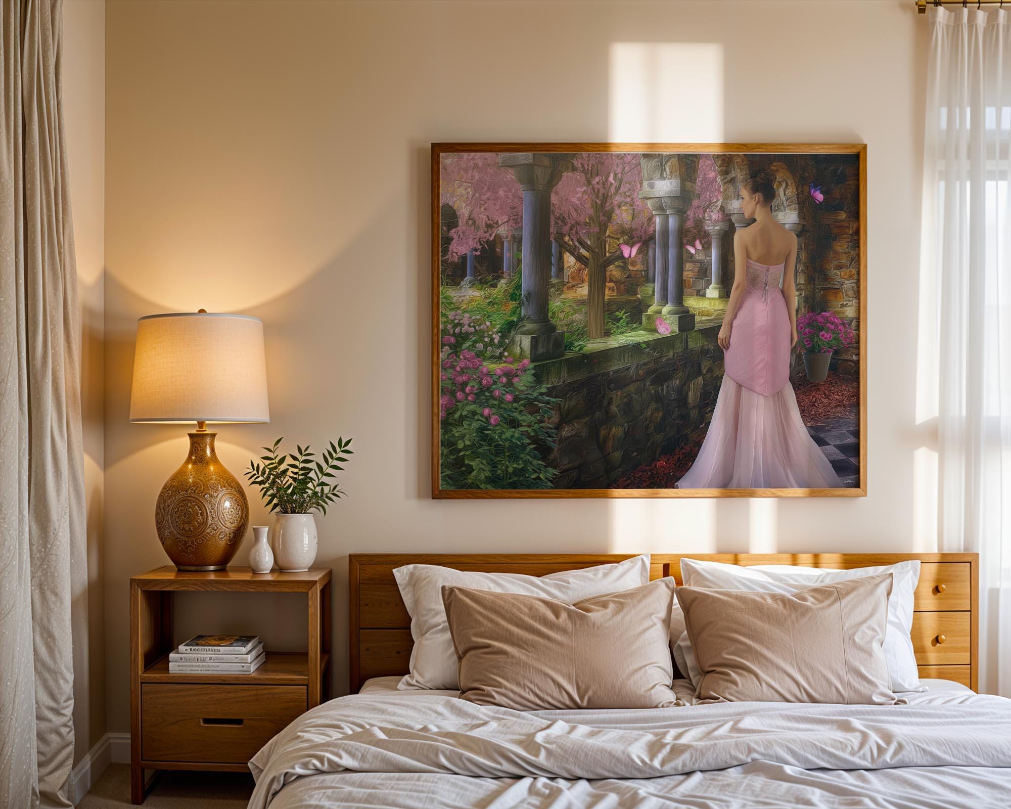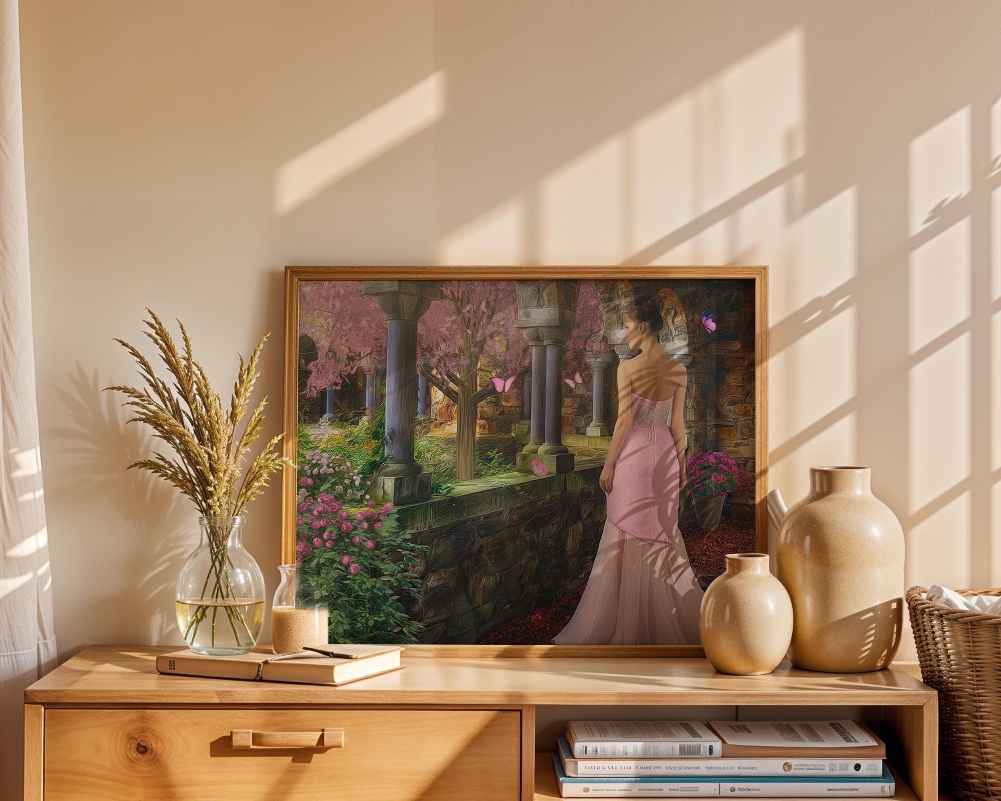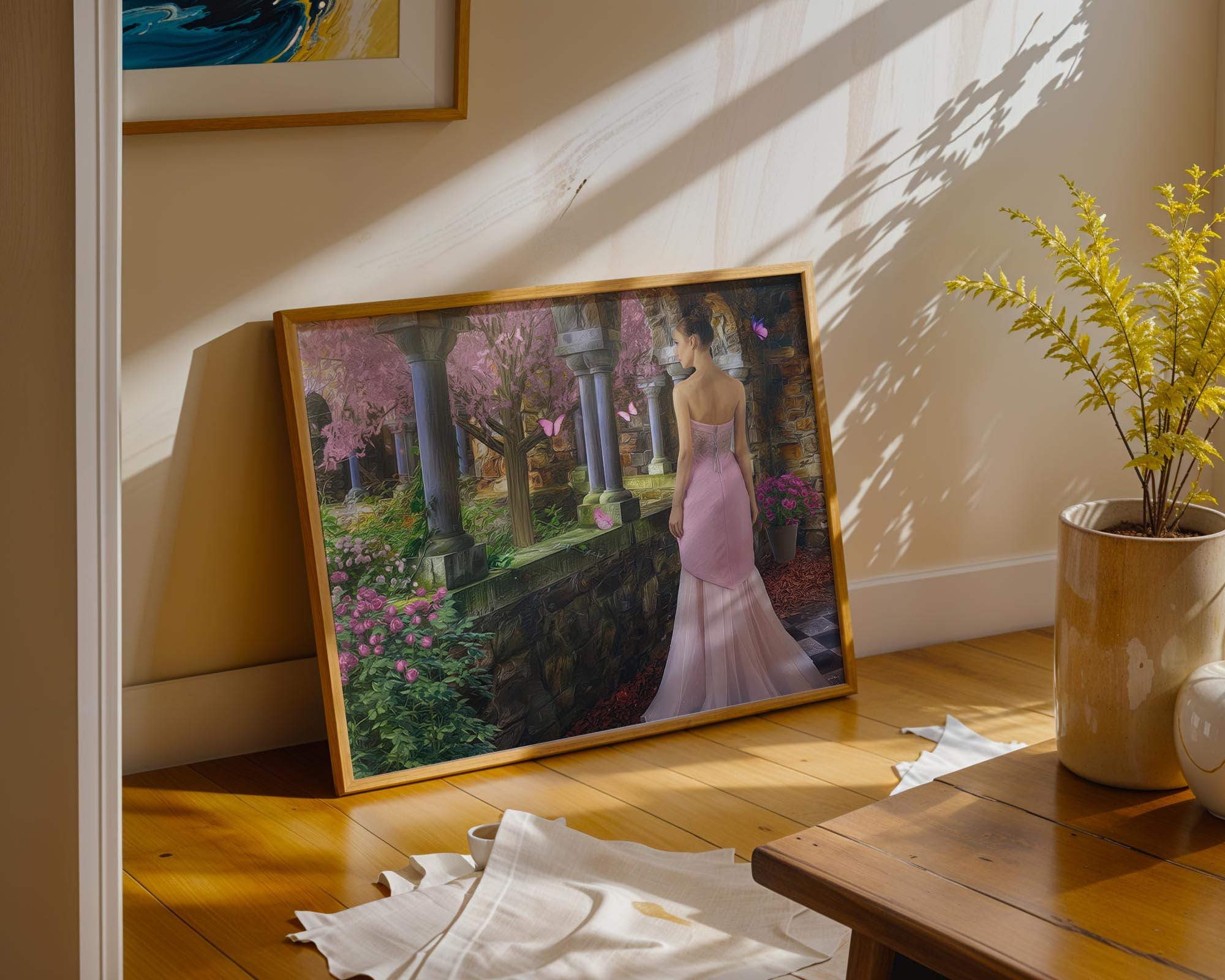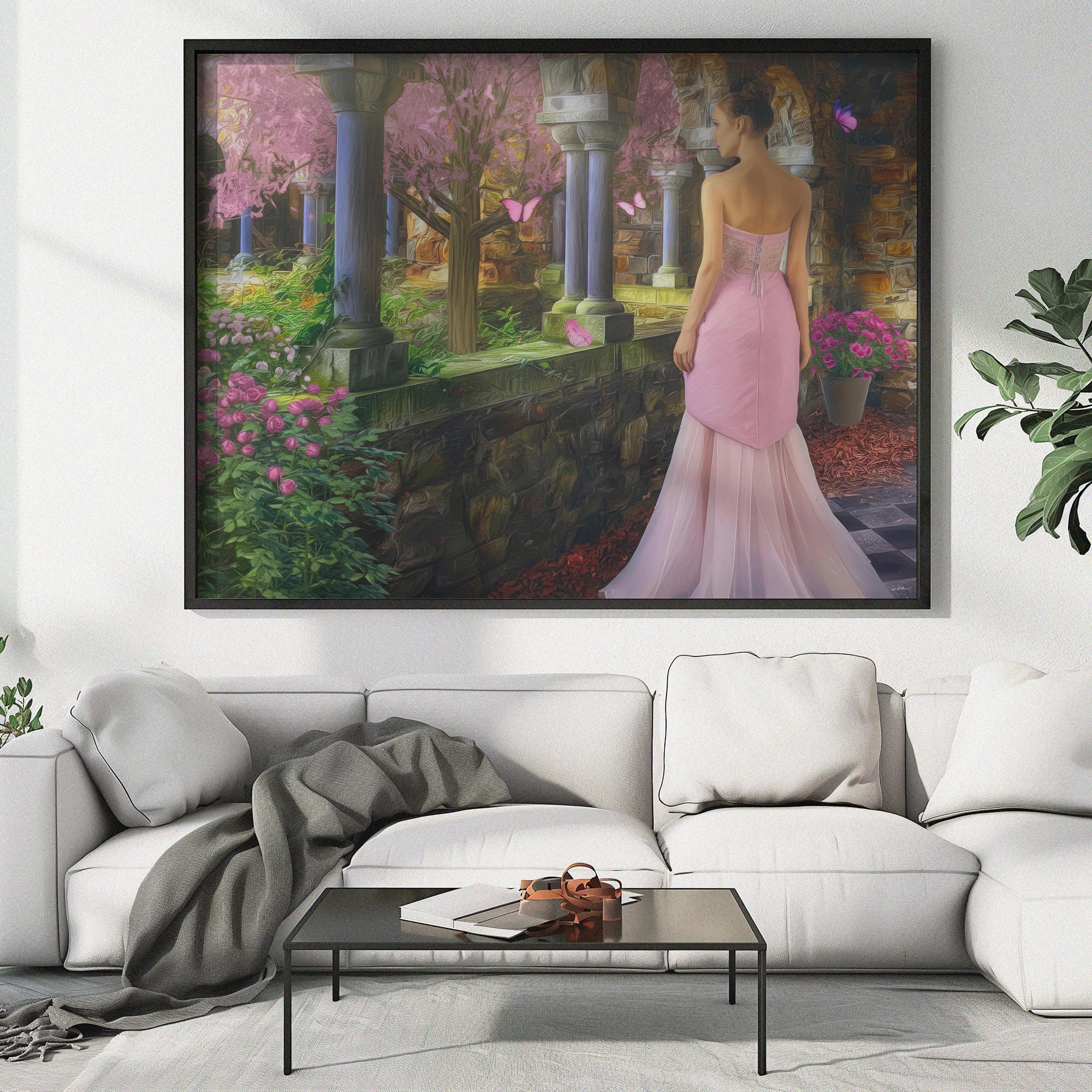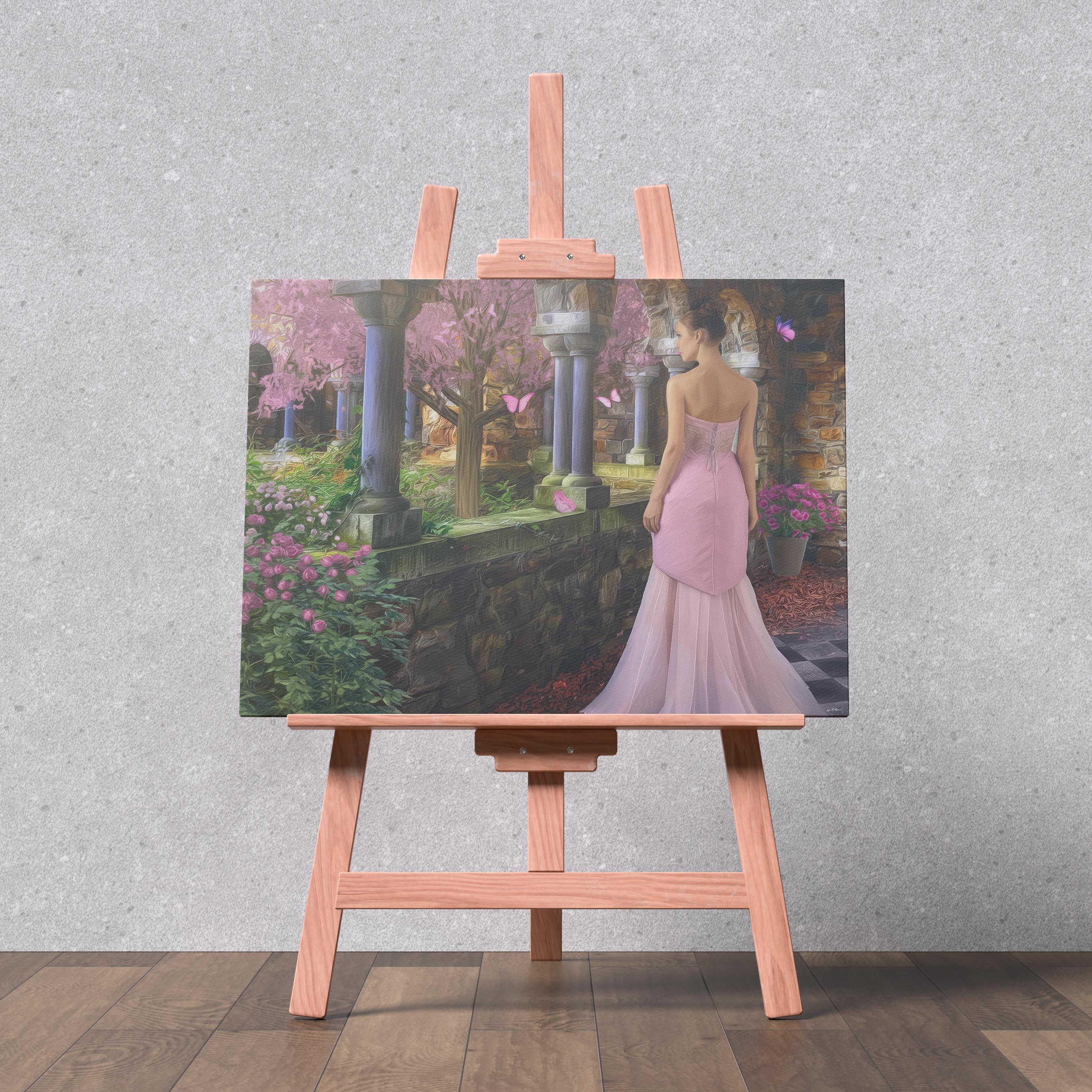 I created this signed artwork as a gentle escape into a fairy-tale garden, a place where nature feels soft, serene, and peaceful. The glowing stone arches, blooming flowers, and drifting butterfly shapes turn the scene into a dreamlike landscape that would bring a romantic touch to any livingroom or quiet lobby. I imagined it as a heartfelt Christmas gift or special occasion idea for someone who loves whimsical decor and calm, enchanted spaces.