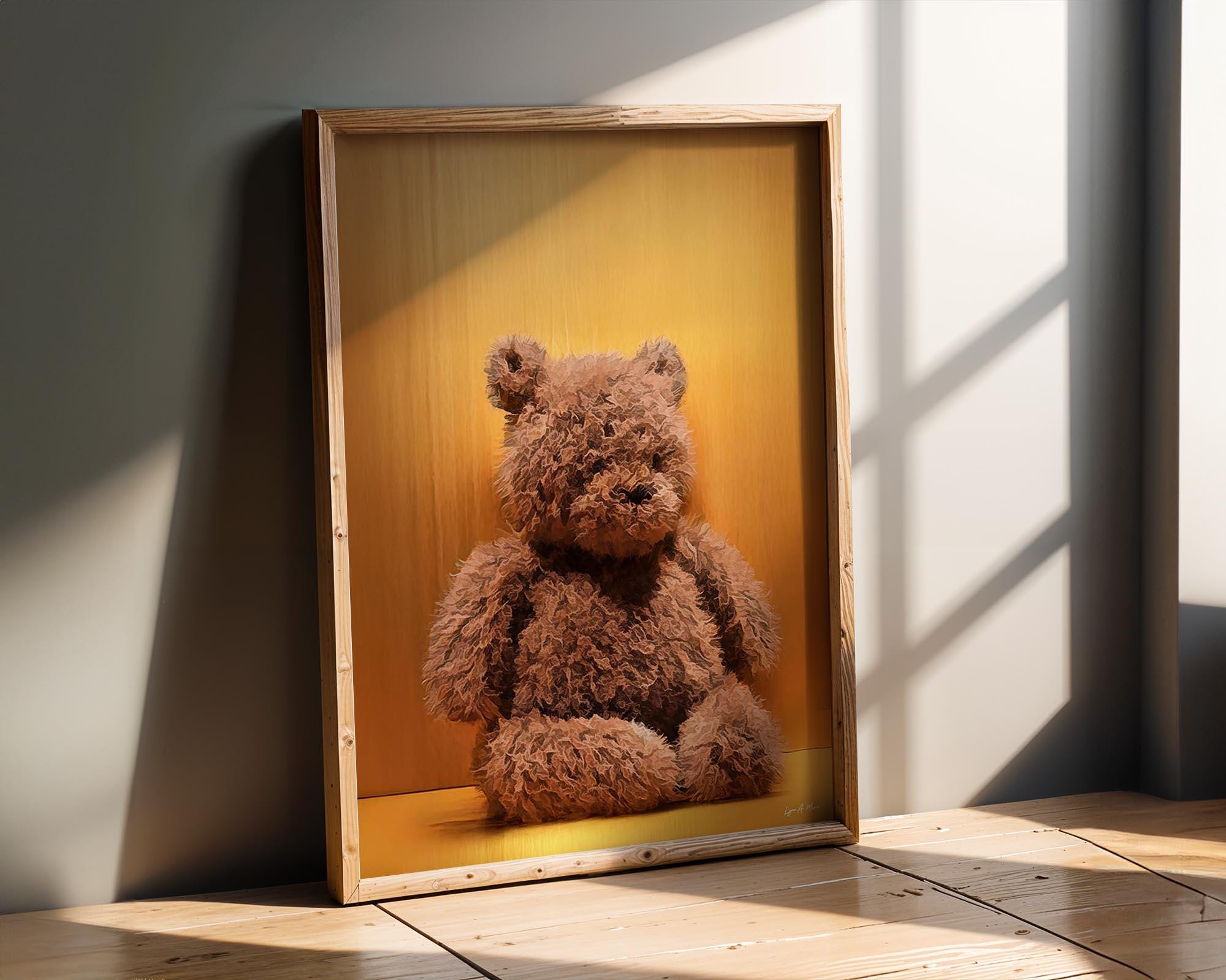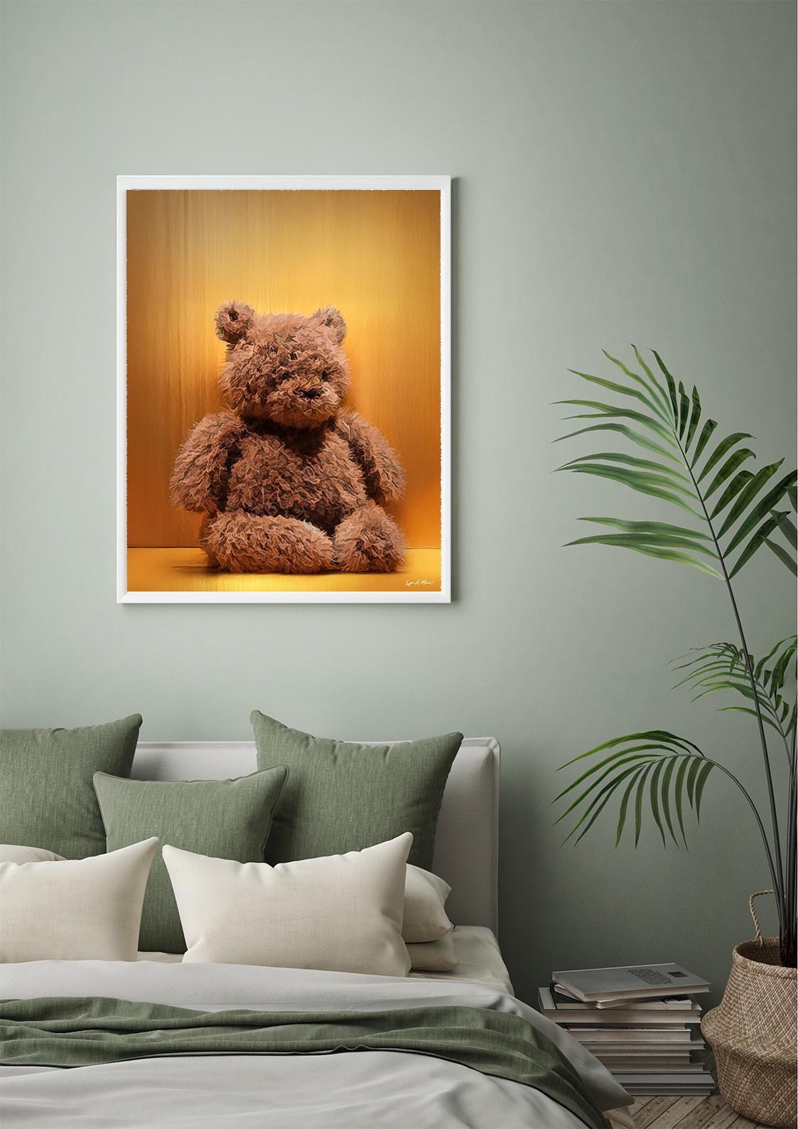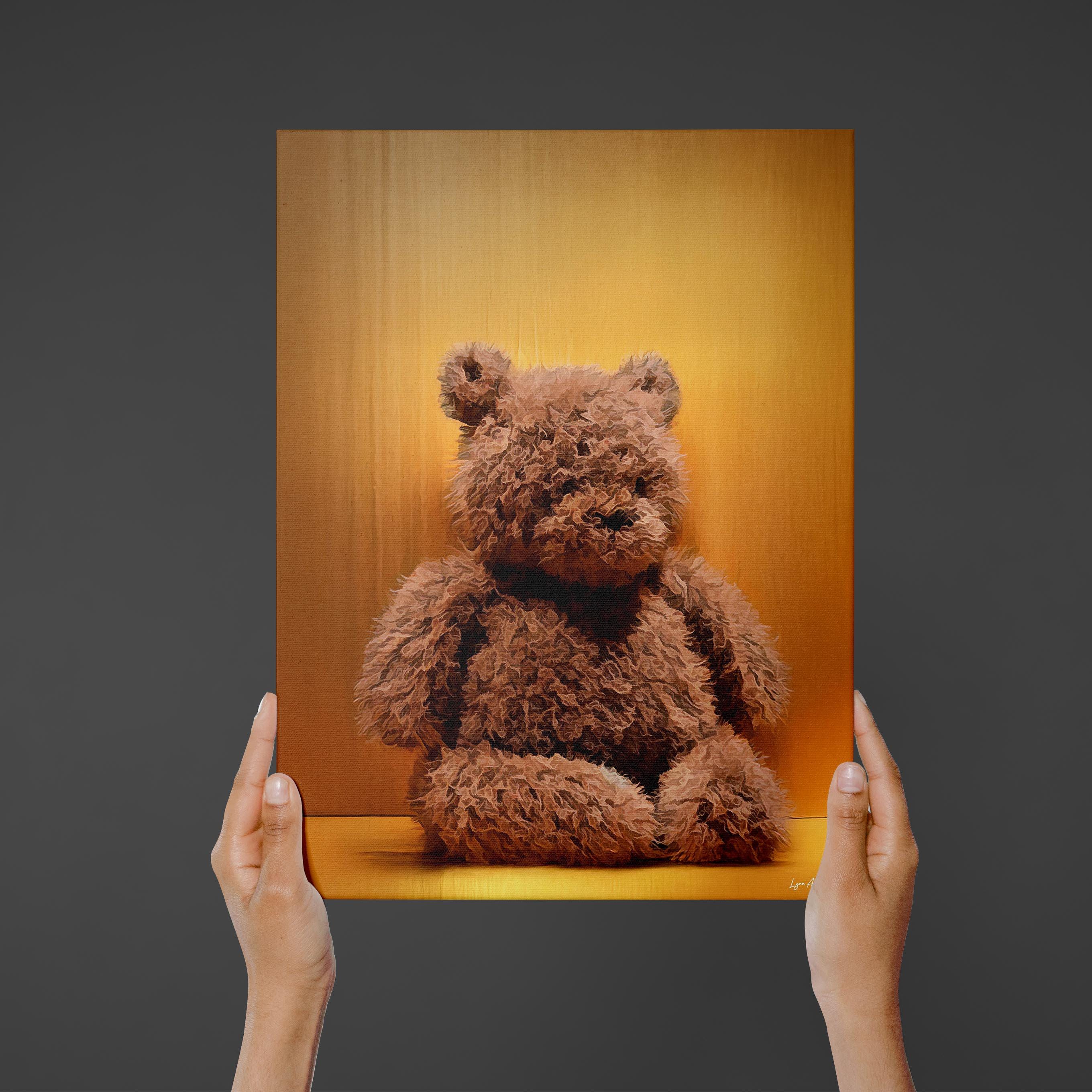 I created this piece to capture the cozy nostalgia of a well-loved teddy bear. The warm glow and soft, textured fur are meant to feel like comfort and safety, something simple that makes a room feel gentle and loved