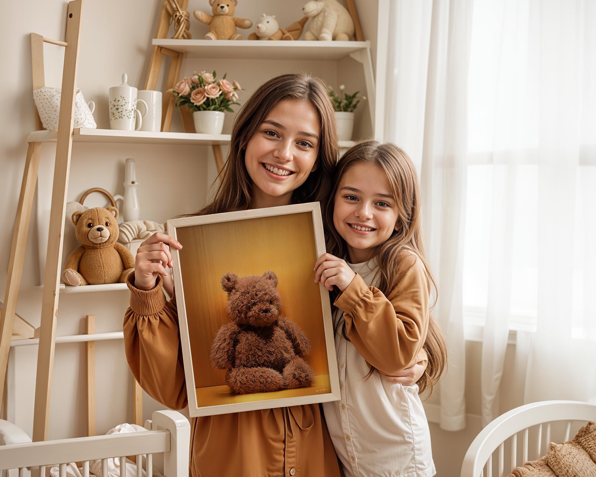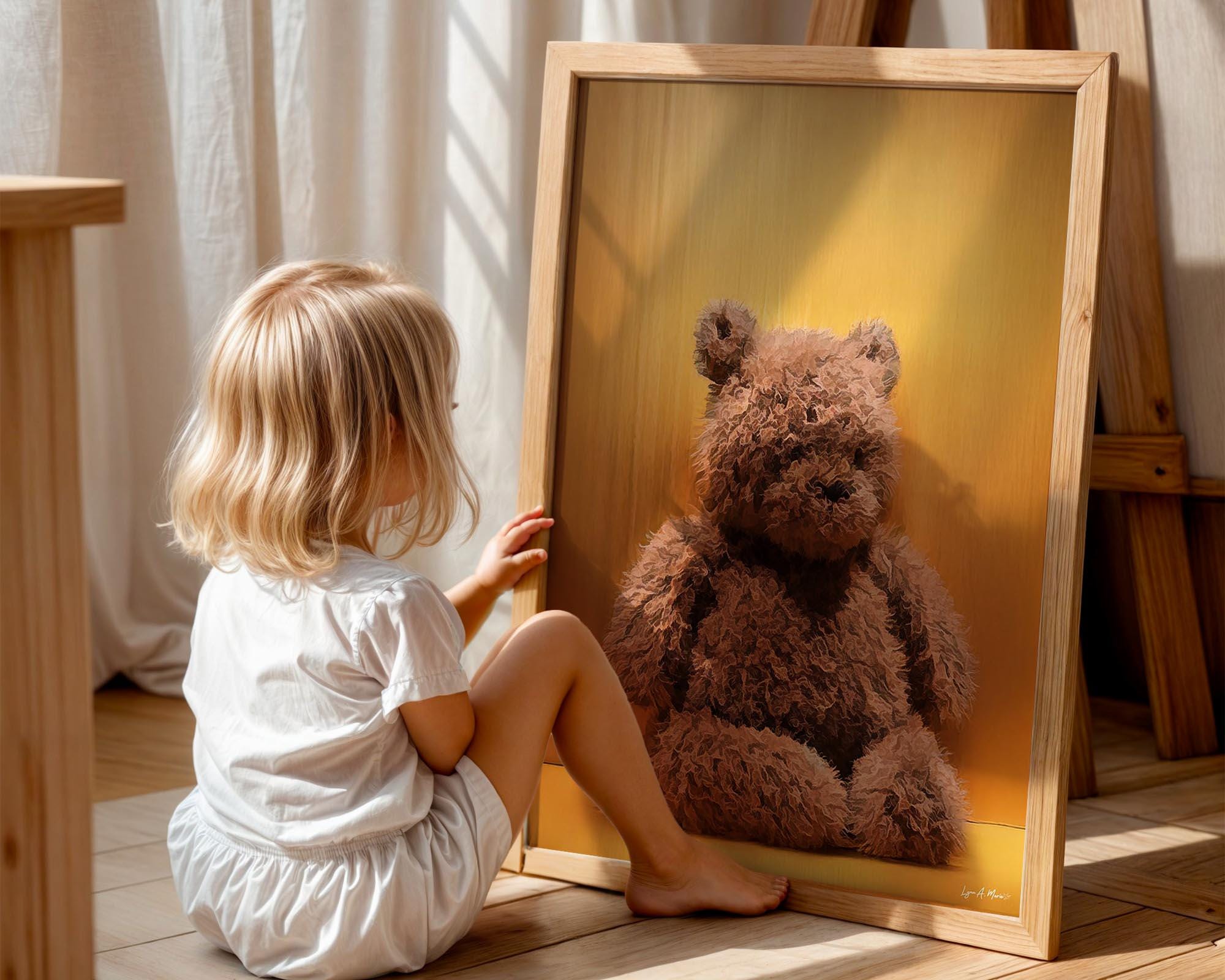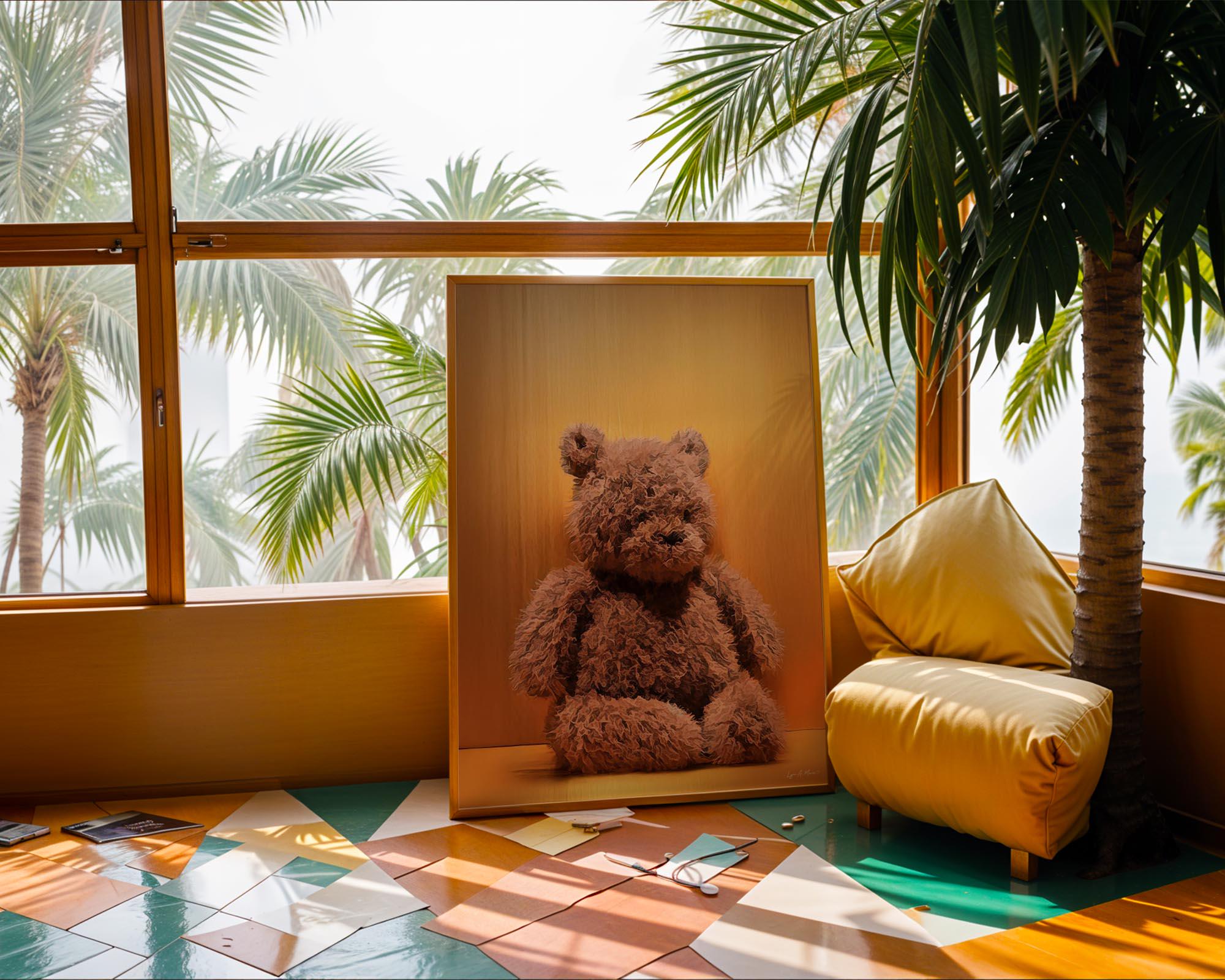 I created this piece to capture the cozy nostalgia of a well-loved teddy bear. The warm glow and soft, textured fur are meant to feel like comfort and safety, something simple that makes a room feel gentle and loved