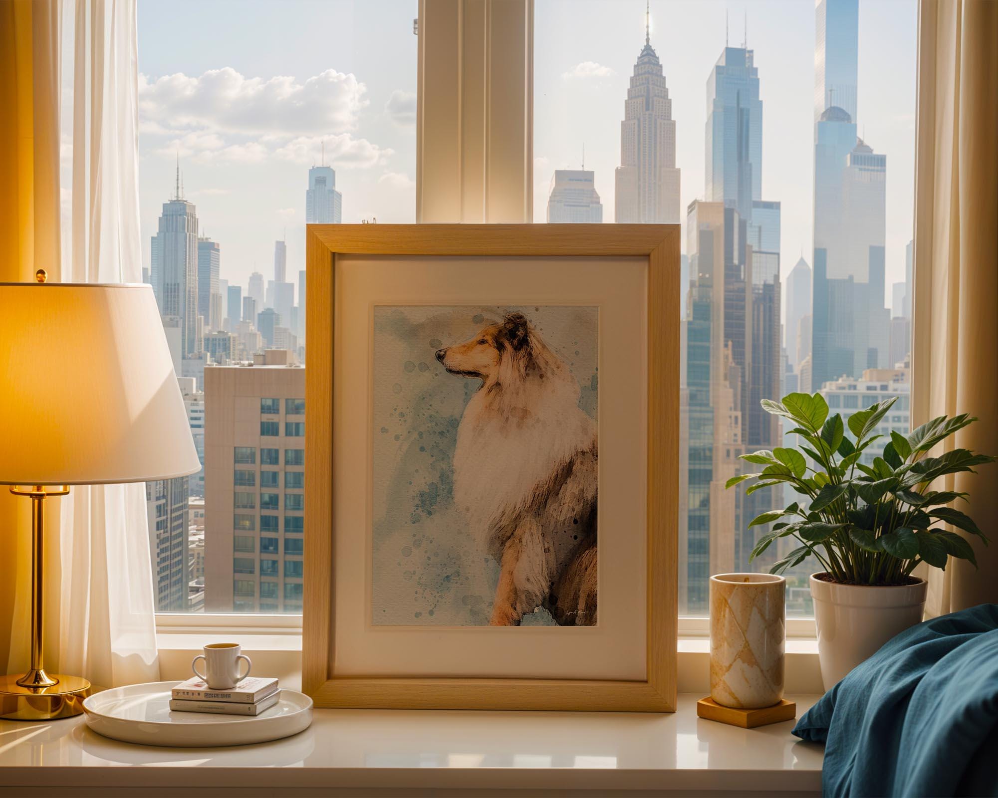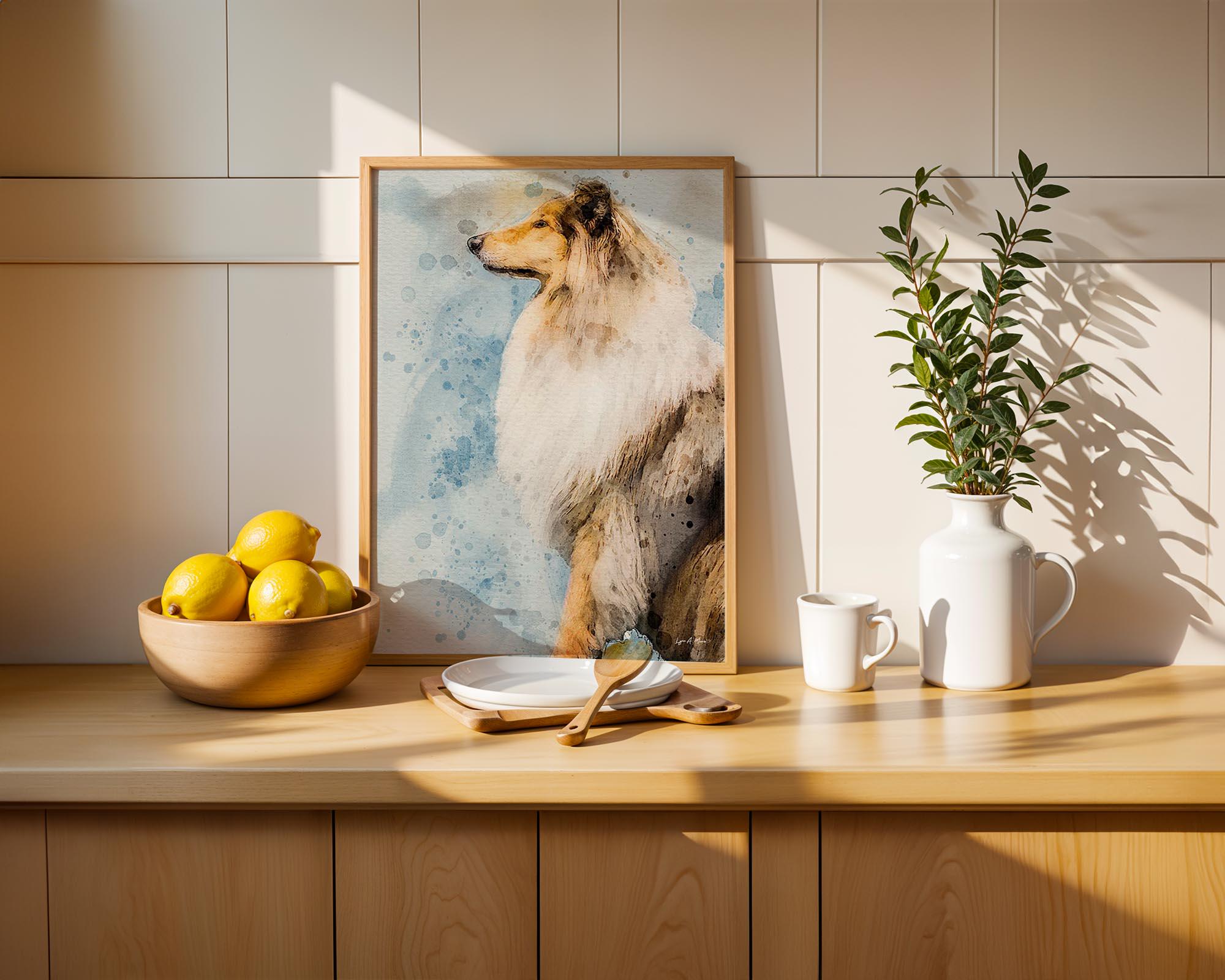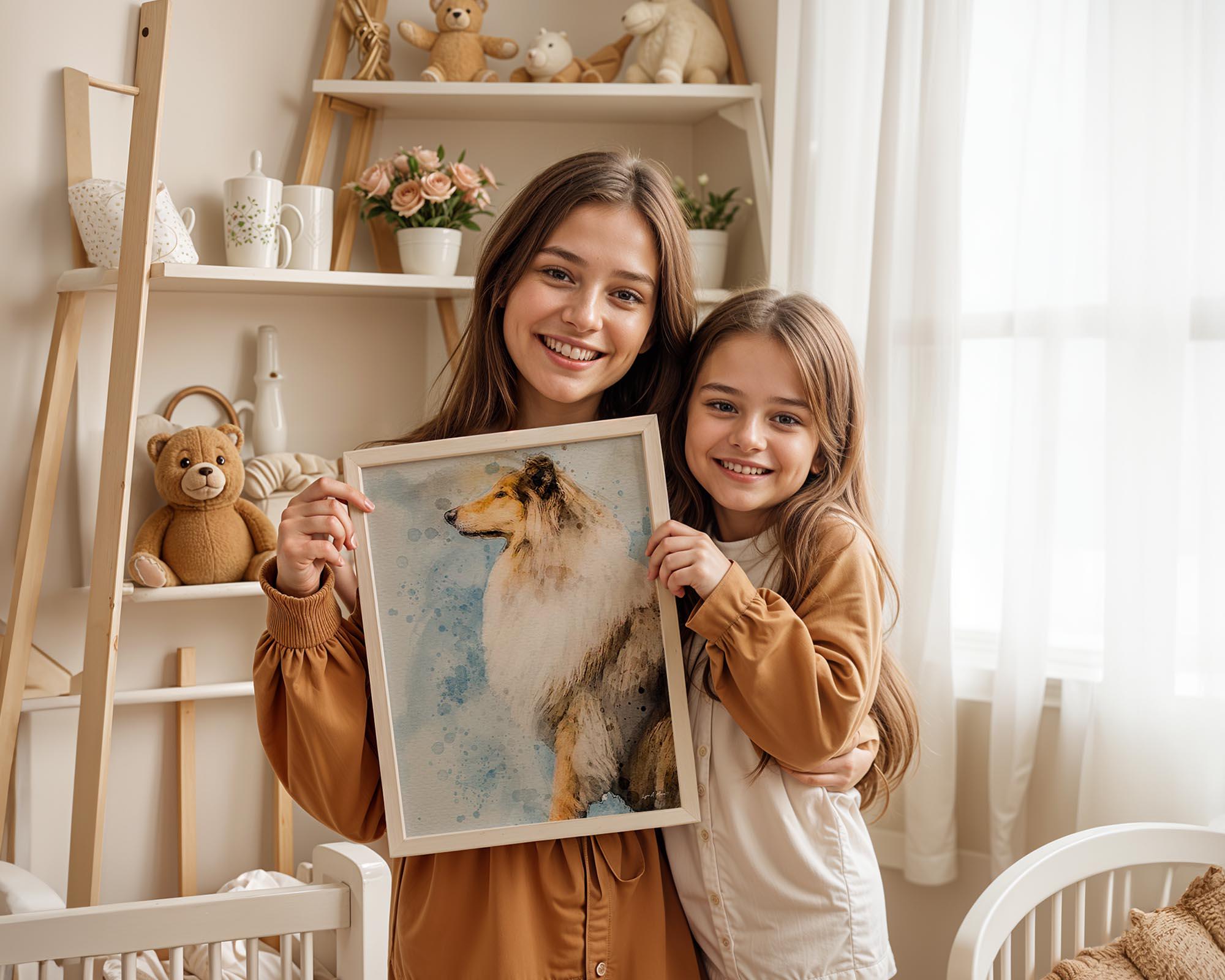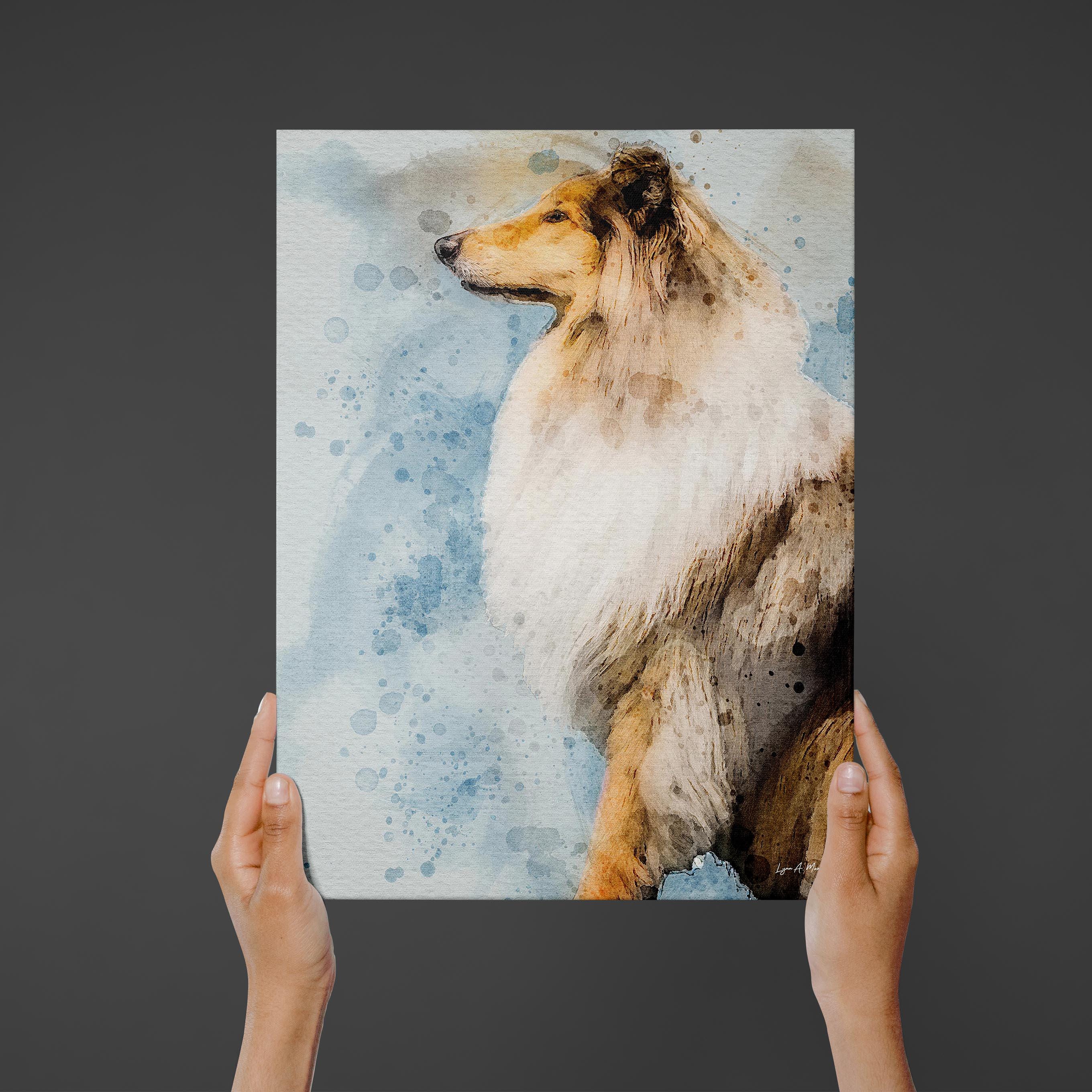 I created this piece to celebrate the collie’s quiet loyalty and graceful strength. The soft watercolor textures let the fur feel airy and alive, while the calm blue wash reflects the breed’s gentle, steady spirit. It’s a tribute to a faithful companion.