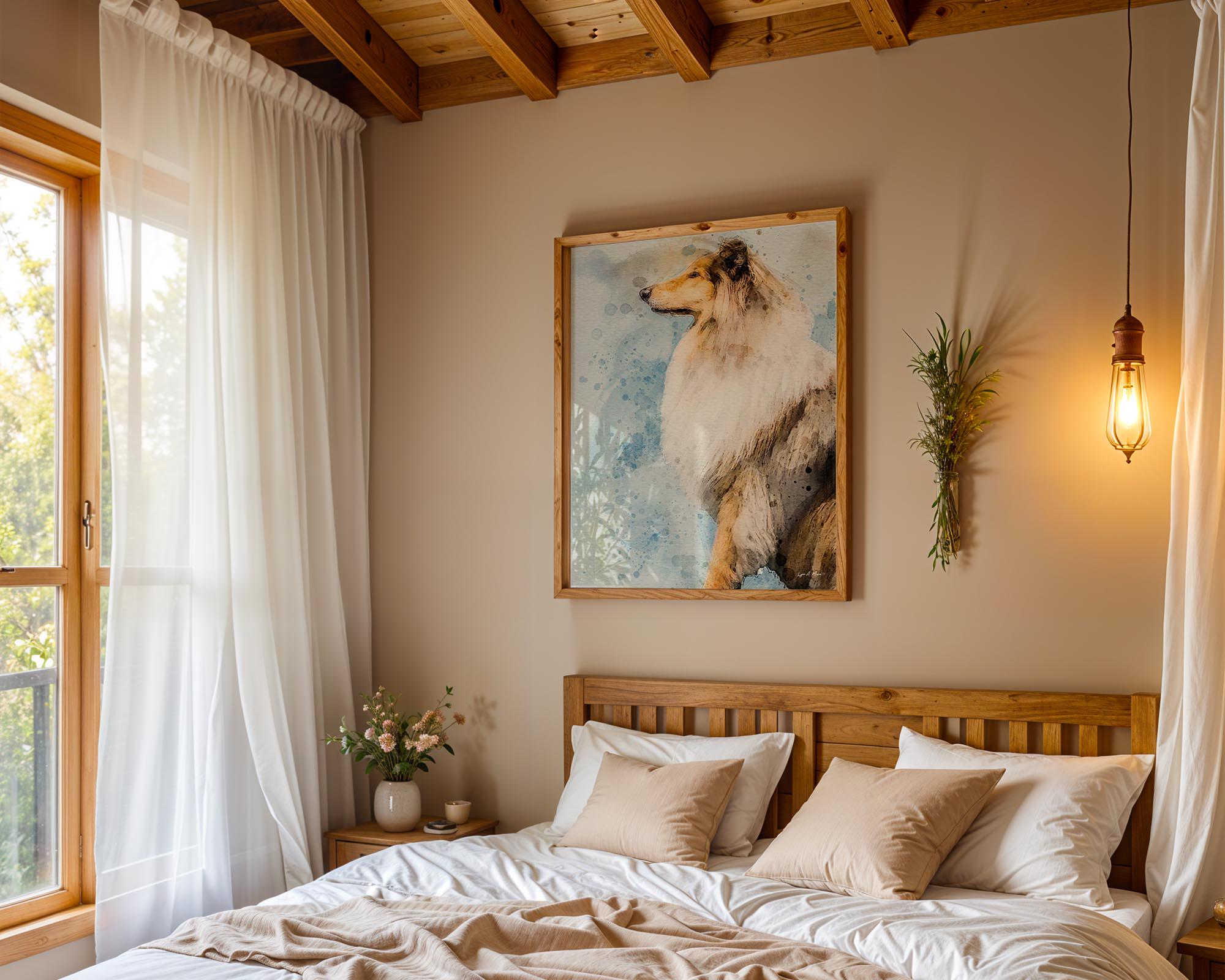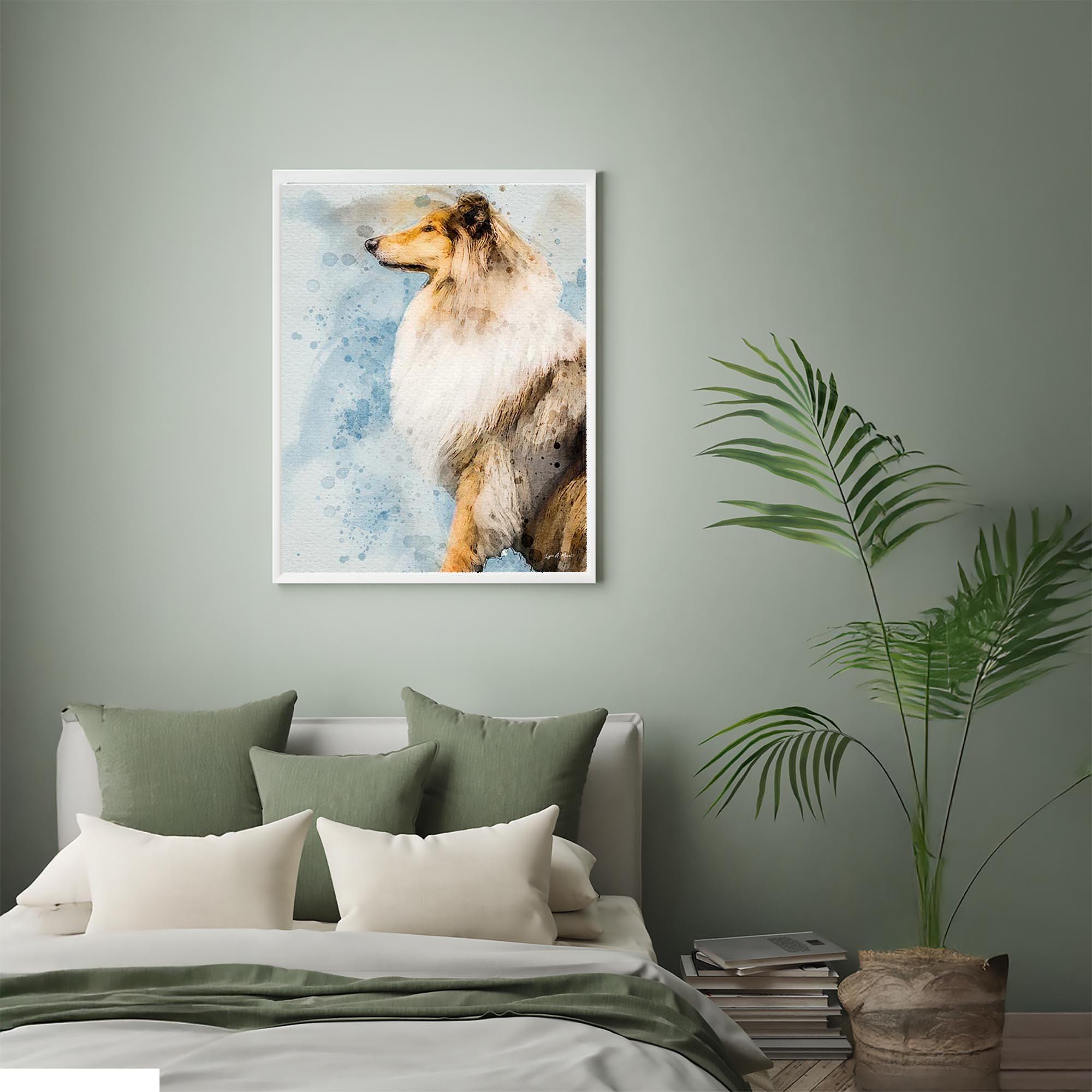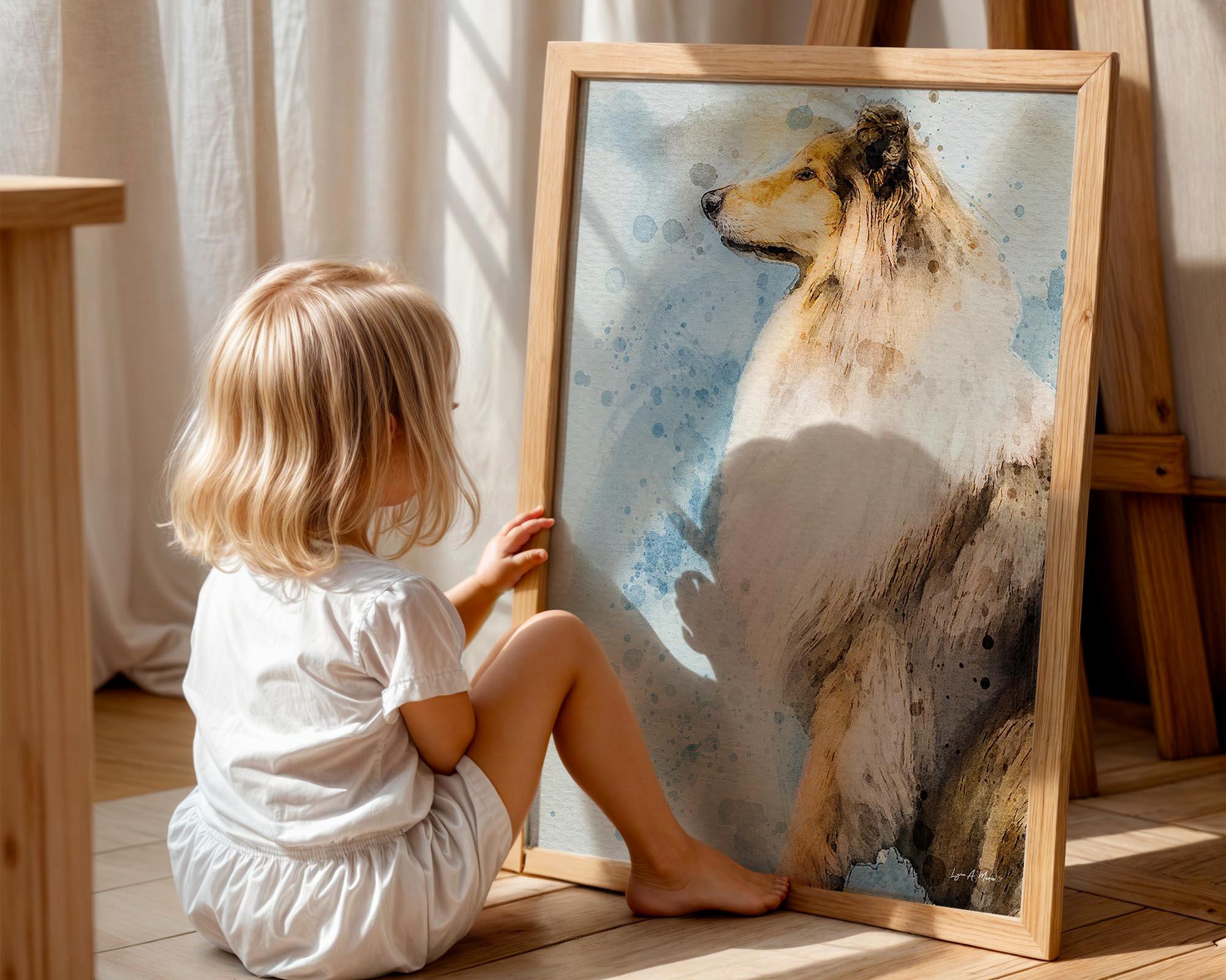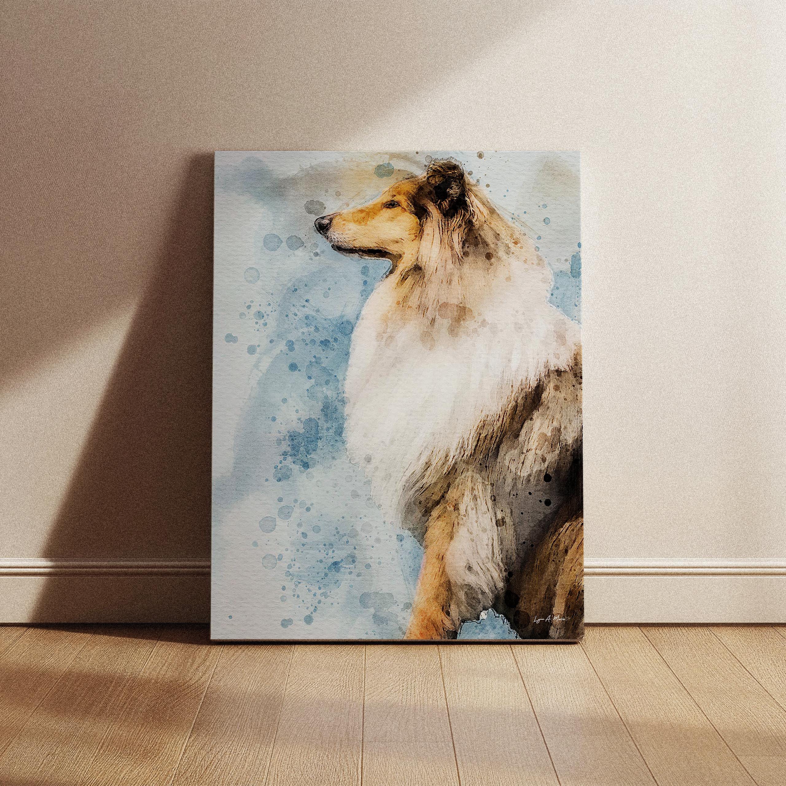 I created this piece to celebrate the collie’s quiet loyalty and graceful strength. The soft watercolor textures let the fur feel airy and alive, while the calm blue wash reflects the breed’s gentle, steady spirit. It’s a tribute to a faithful companion.
