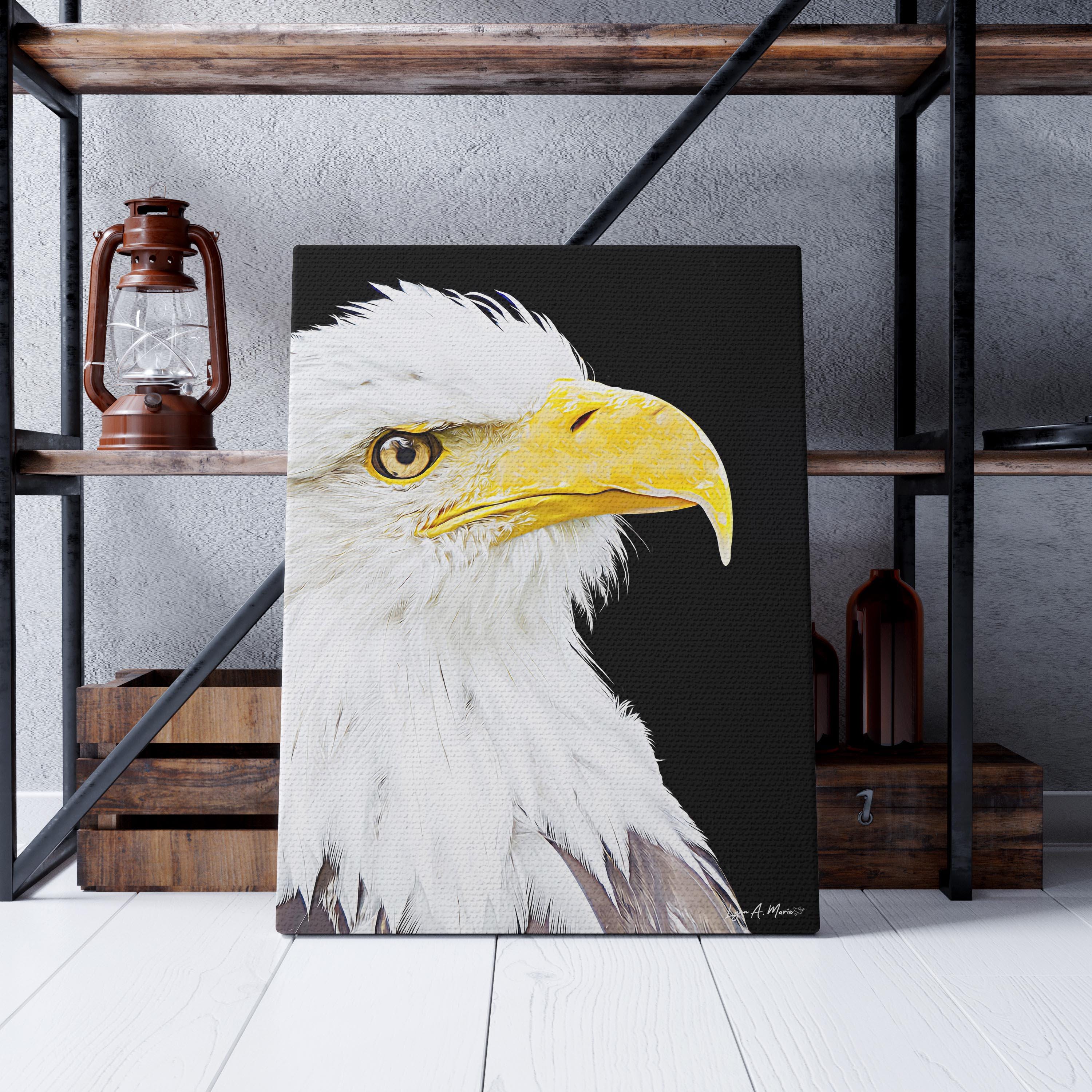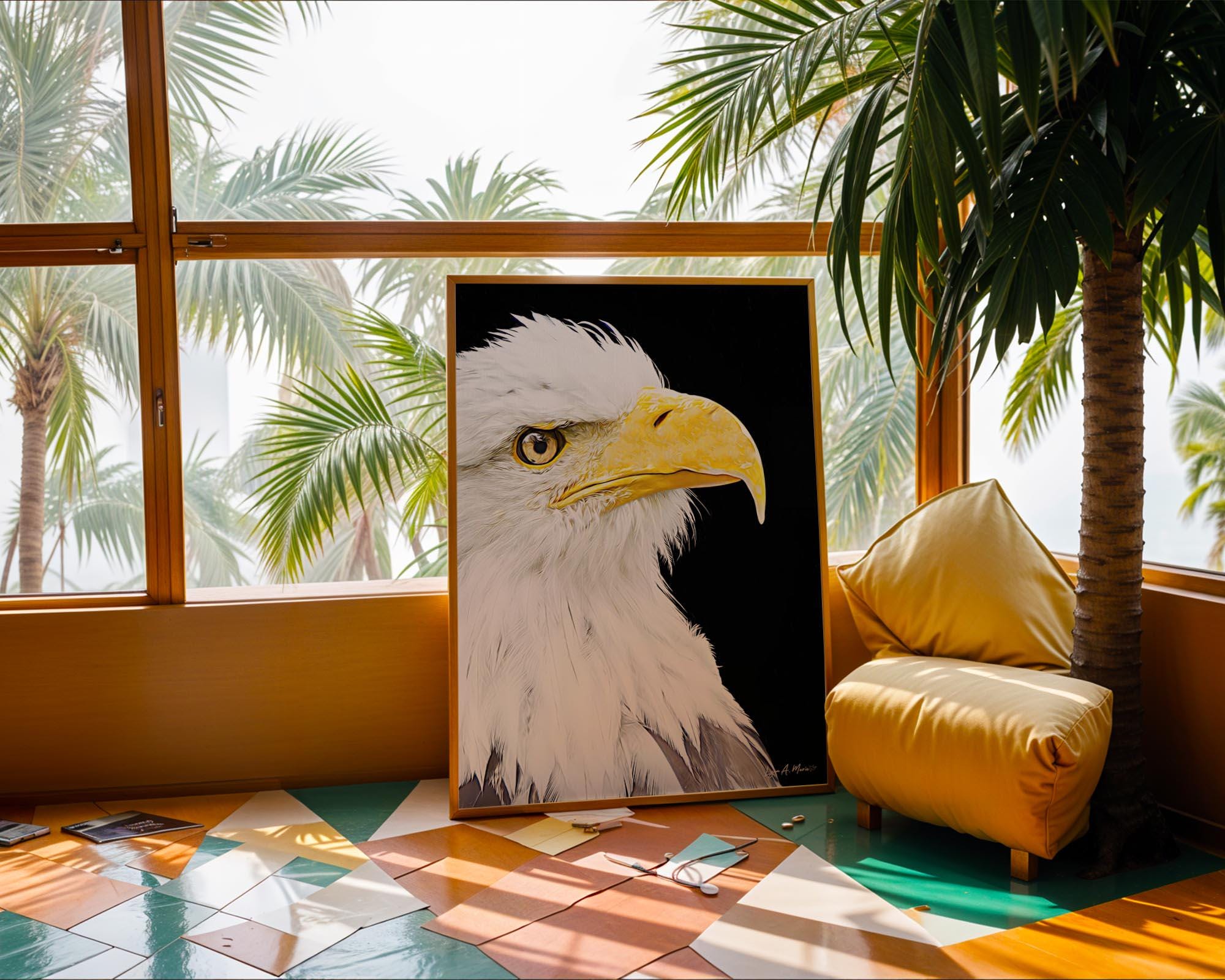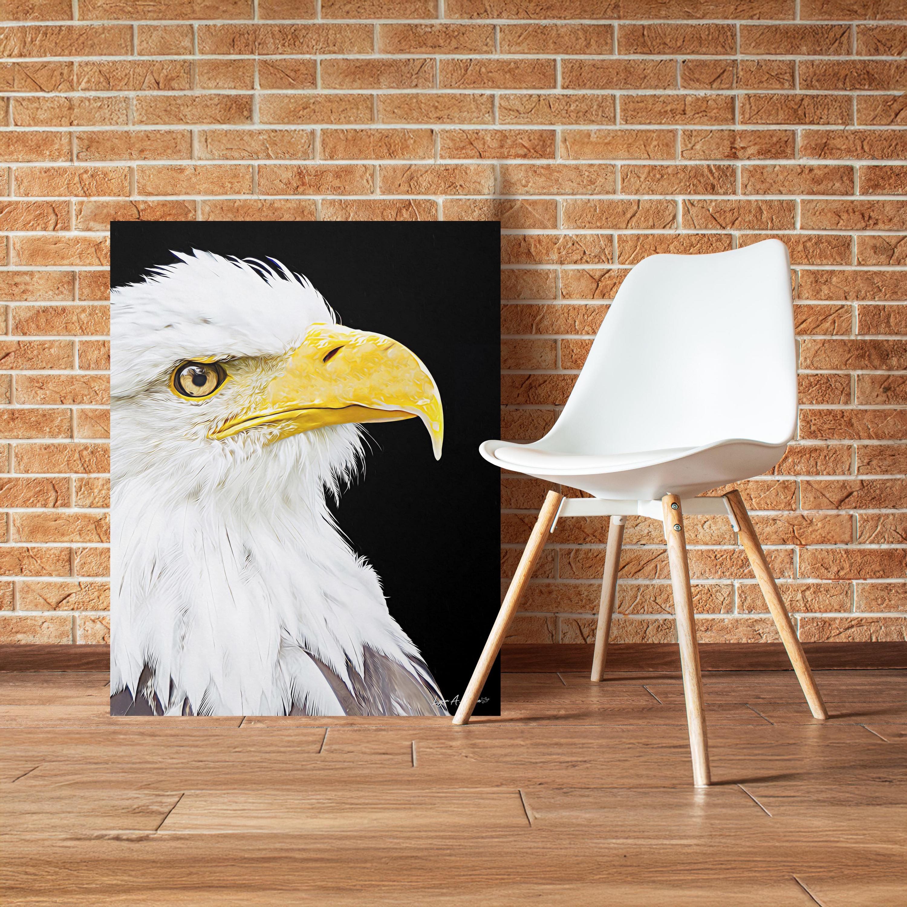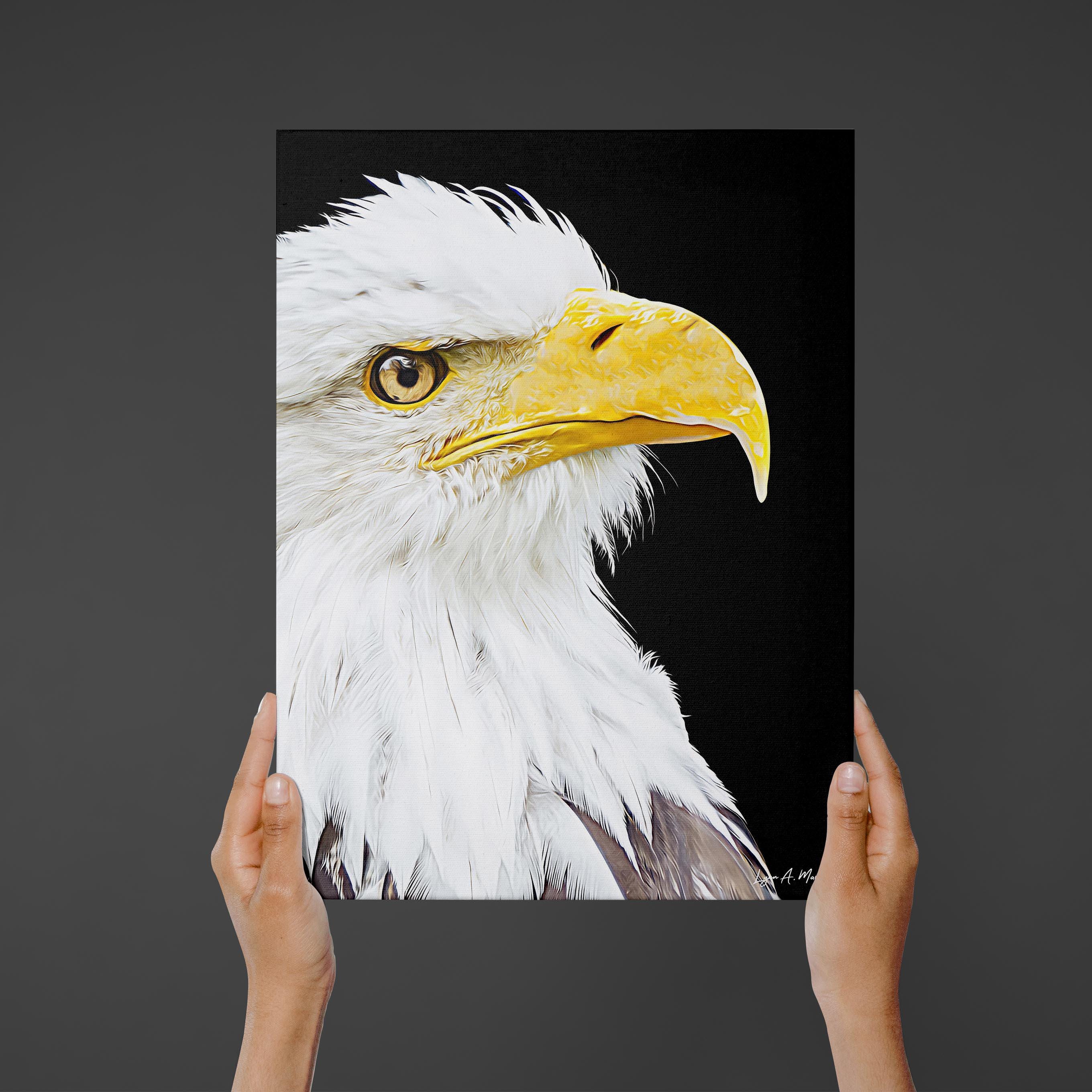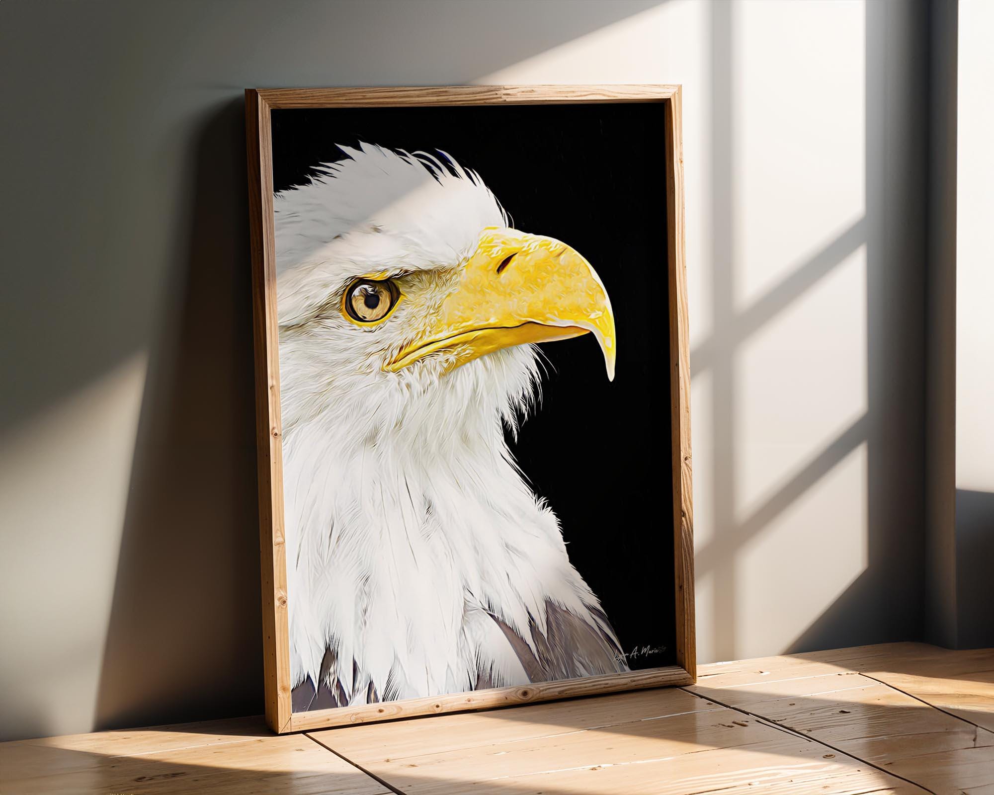 " I created this bald eagle portrait to honor the quiet strength of a raptor up close, the razor focus in the eye, the texture of each feather, the clean curve of the beak. The stark black background lets the bird’s dignity and light stand on their own. It’s my way of celebrating resilience, freedom, and the wild spirit that inspires me."