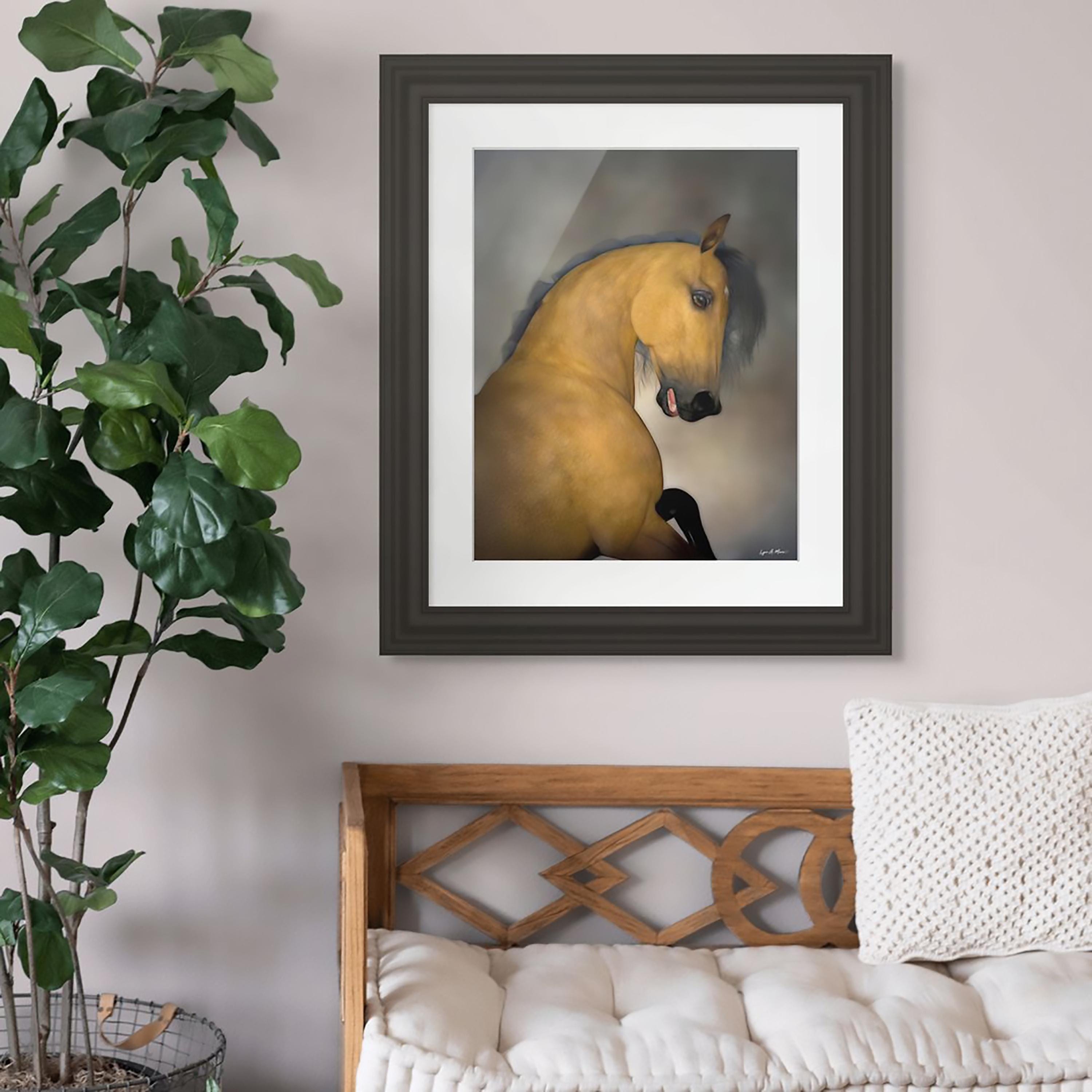 I created this unique Quarter Horse piece to capture the strength, elegance, and warmth of the buckskin breed. Designed to elevate a livingroom wall, this real, artist-digitally generated (Not AI Generated) artwork brings refined equestrian beauty into any space. It’s a timeless gift for any rider or horse lover who appreciates elegant décor.