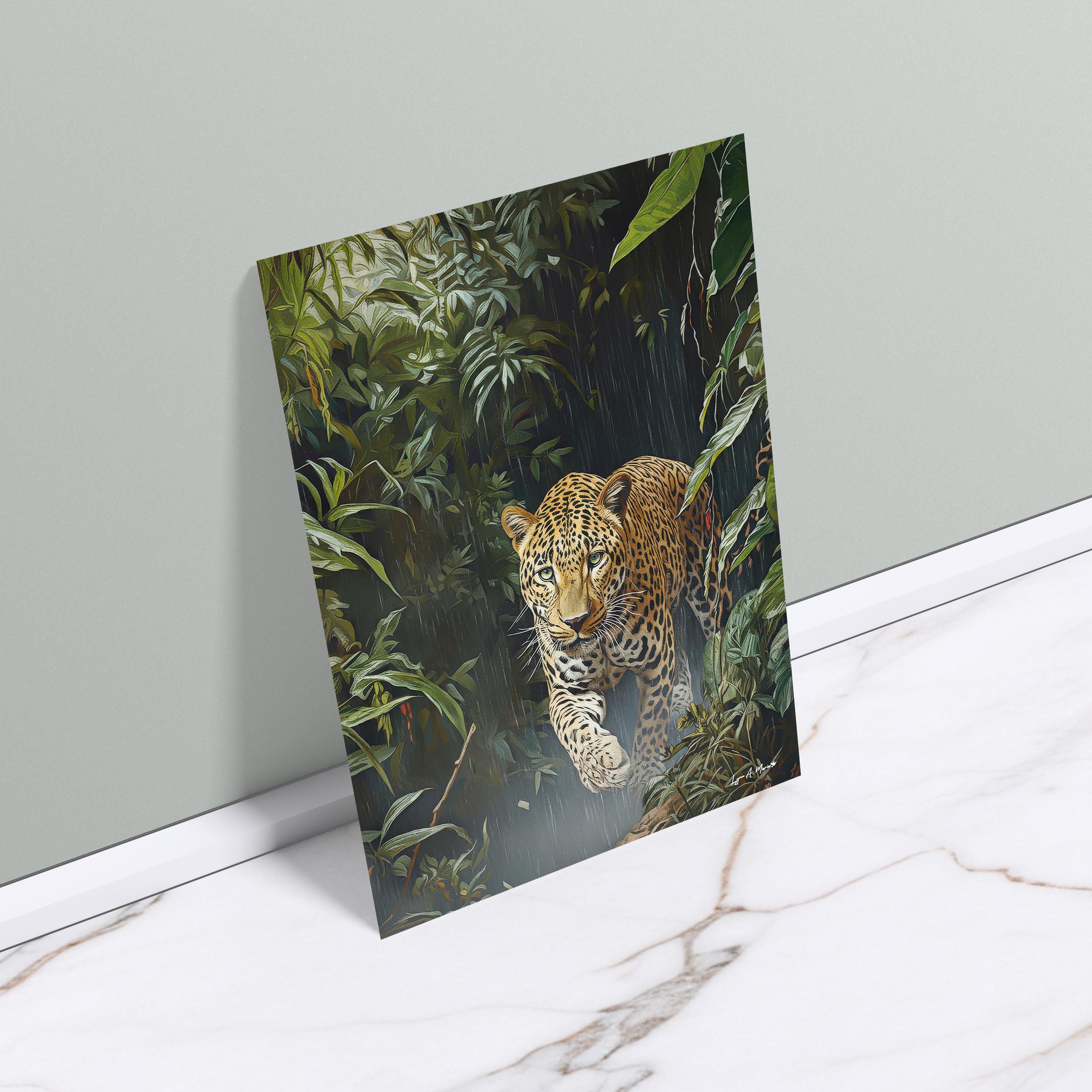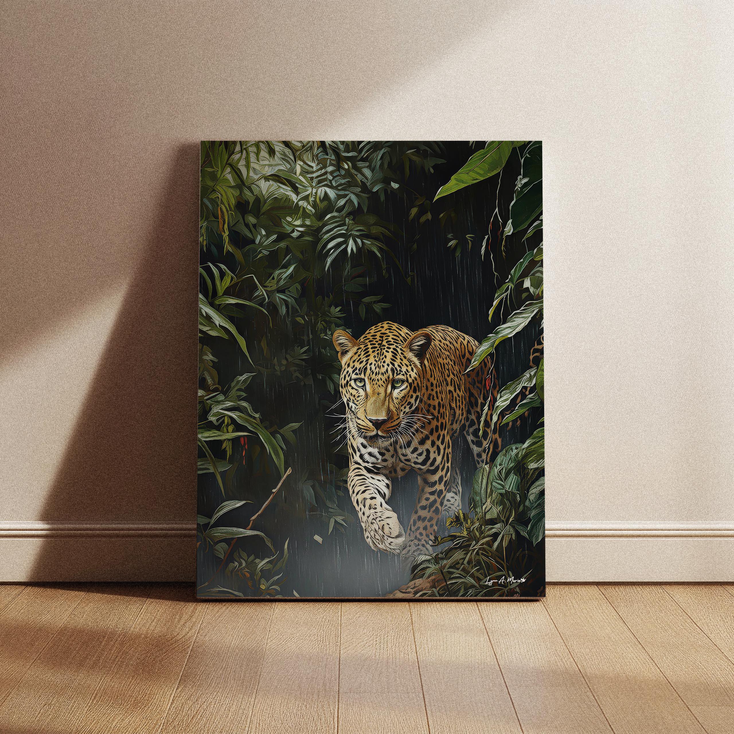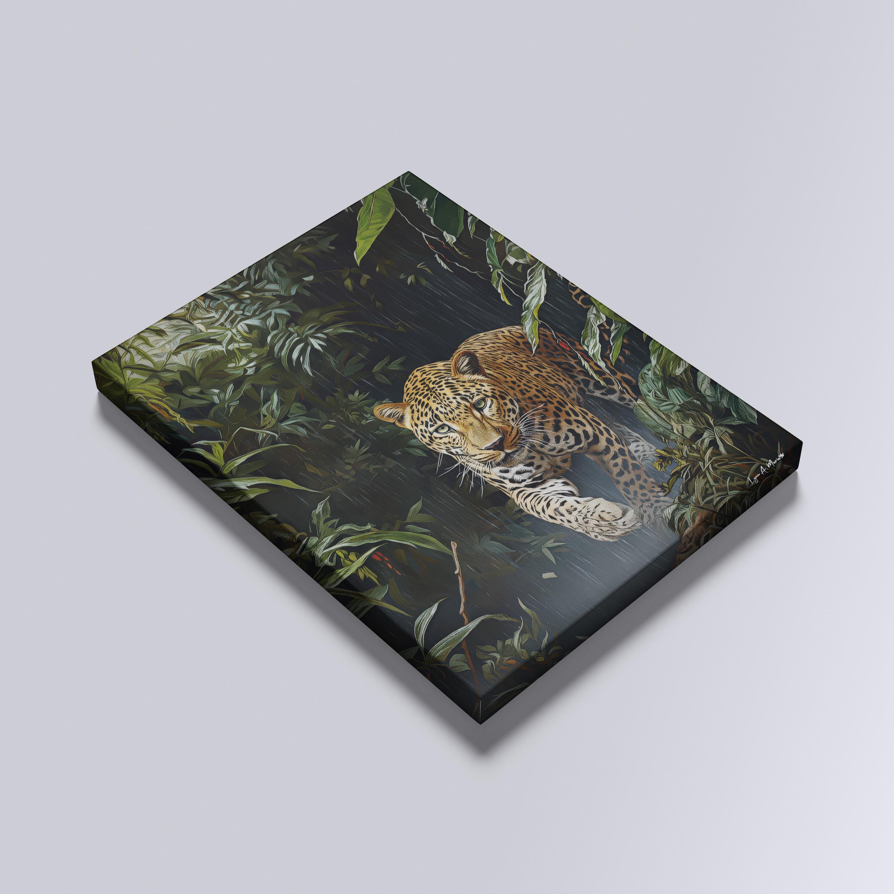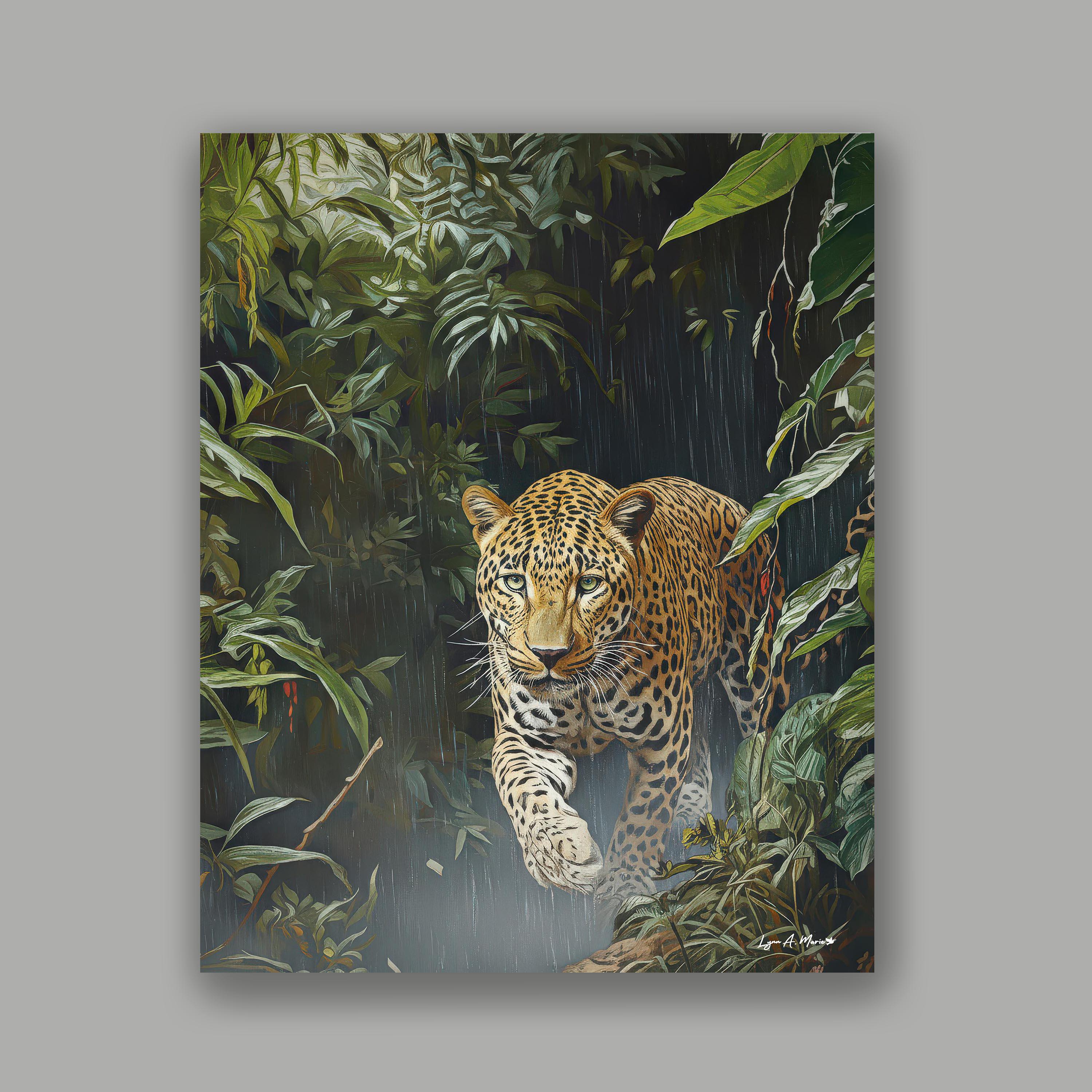 I created this artwork to show the strength and mystery of the leopard in its jungle home. The rain and shadows capture its wild, powerful spirit and the beauty of nature.