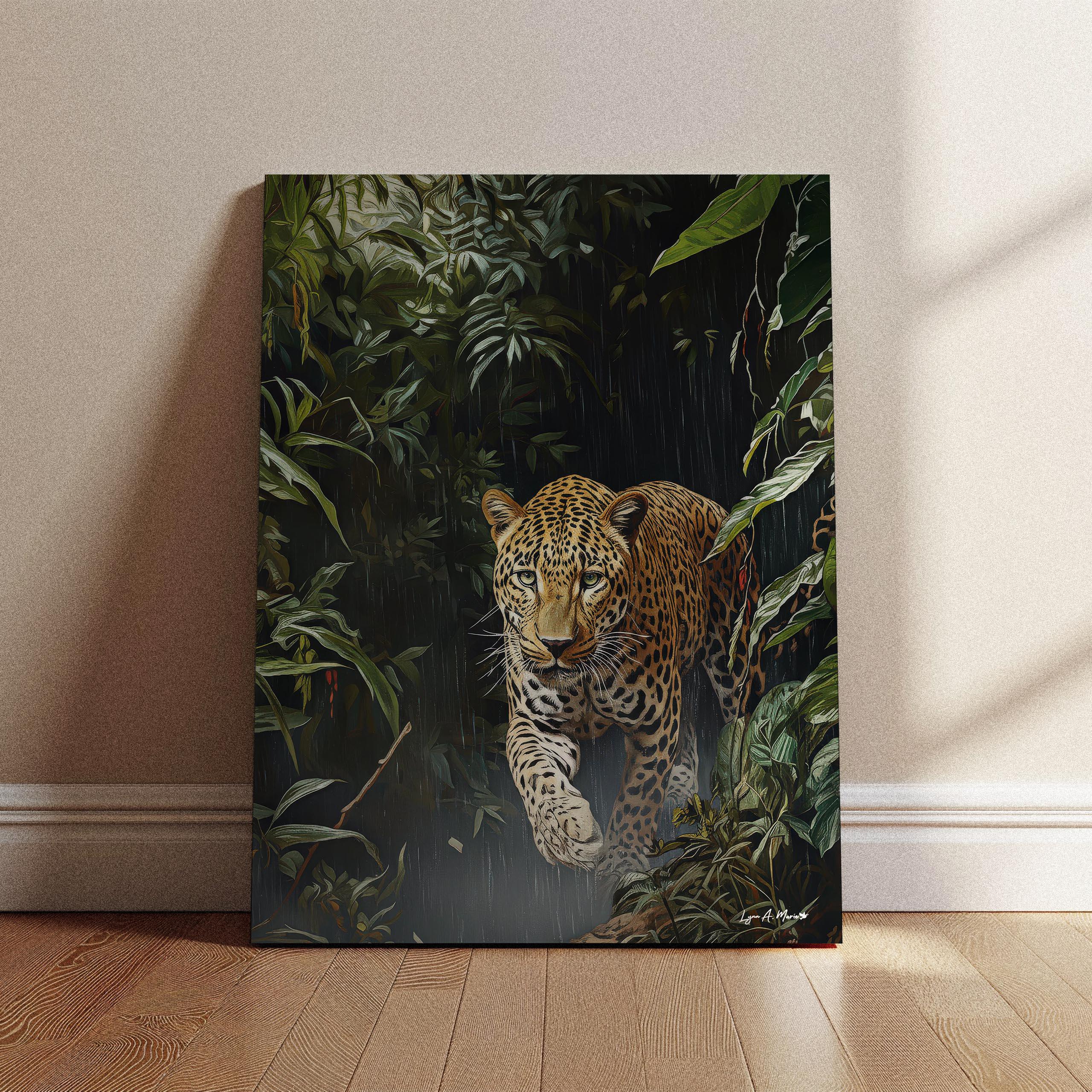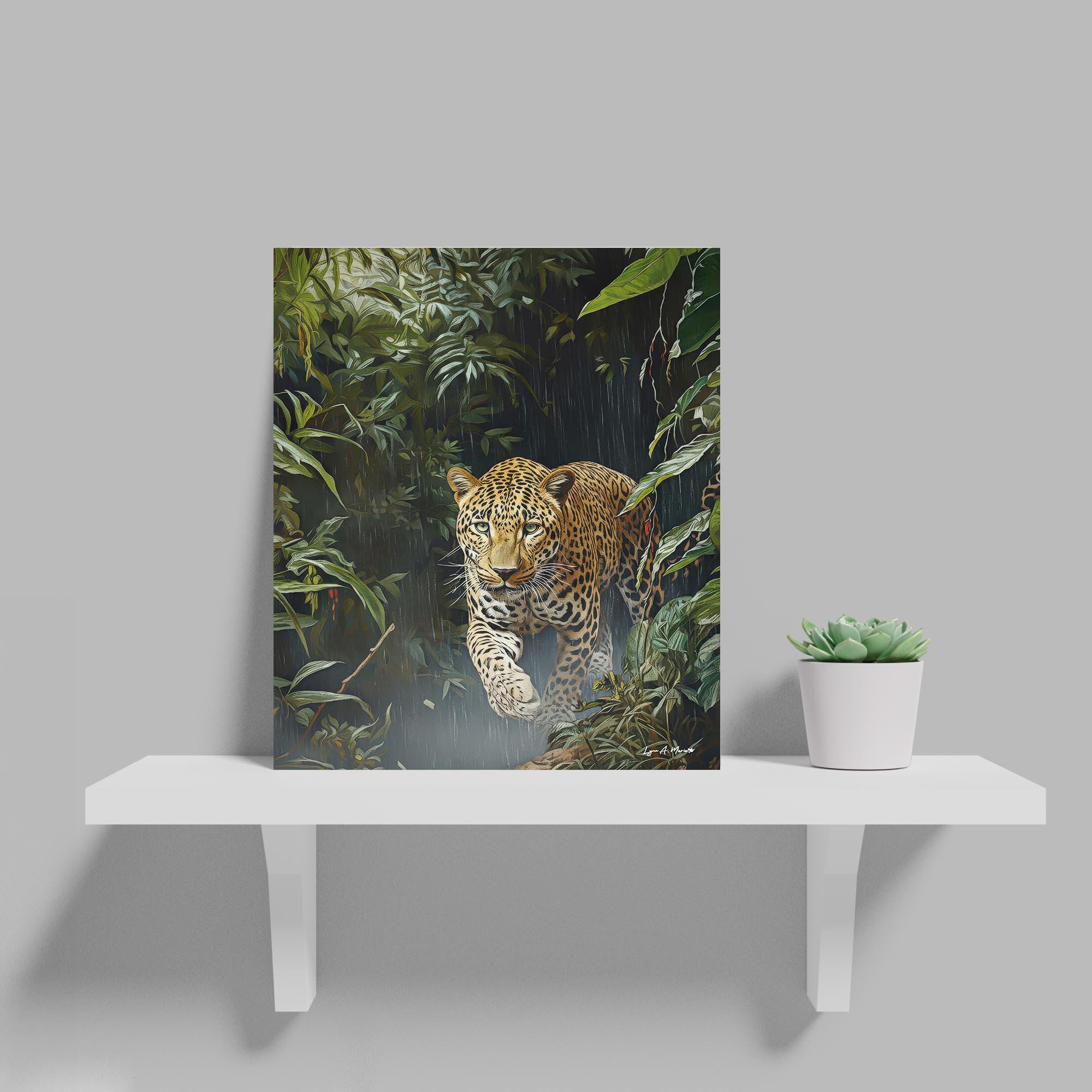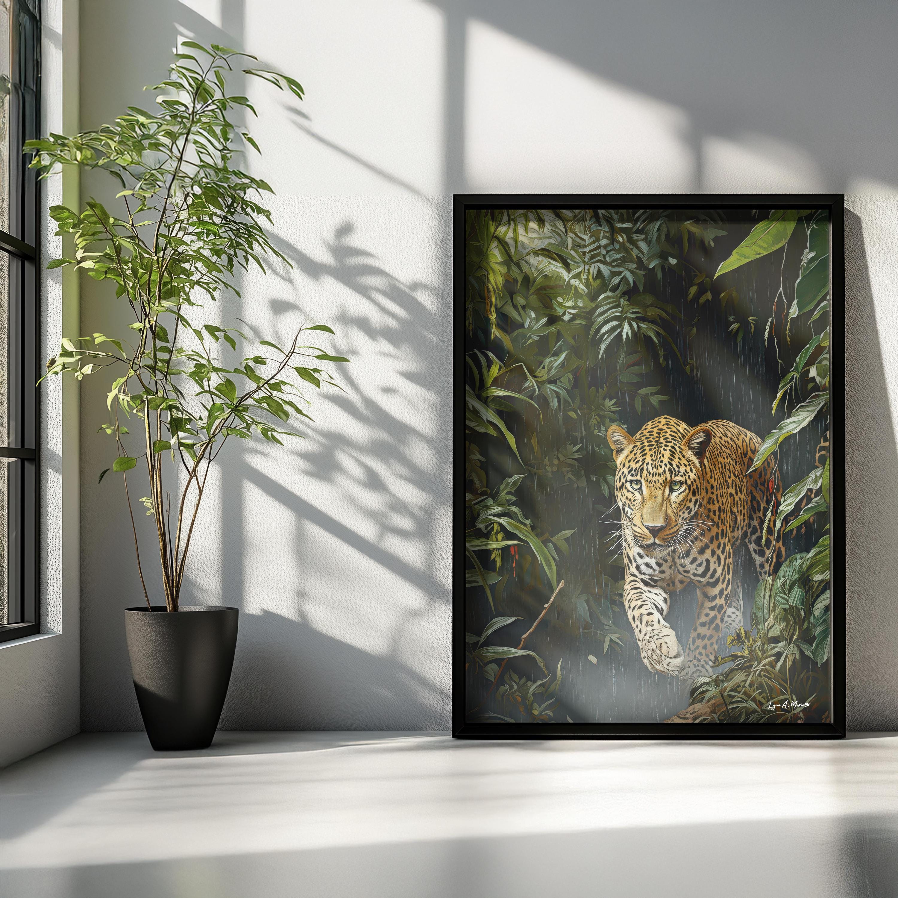 I created this artwork to show the strength and mystery of the leopard in its jungle home. The rain and shadows capture its wild, powerful spirit and the beauty of nature.