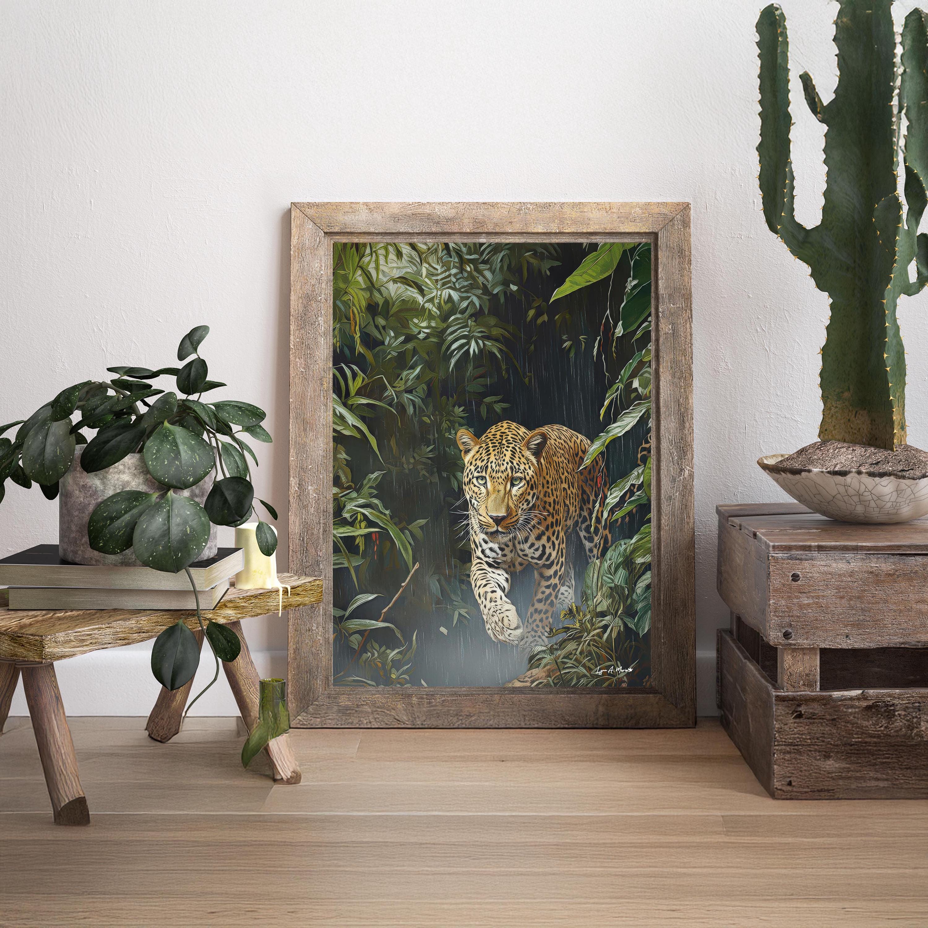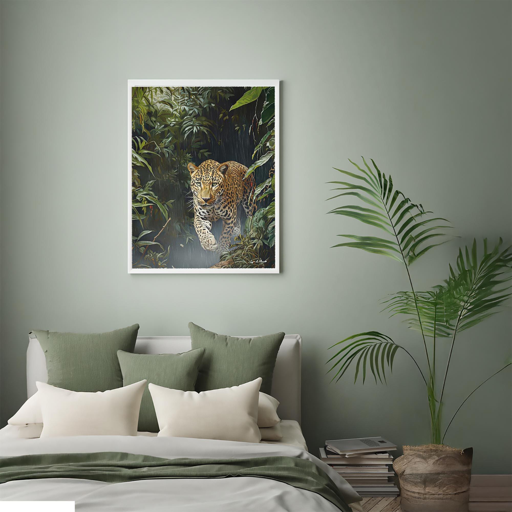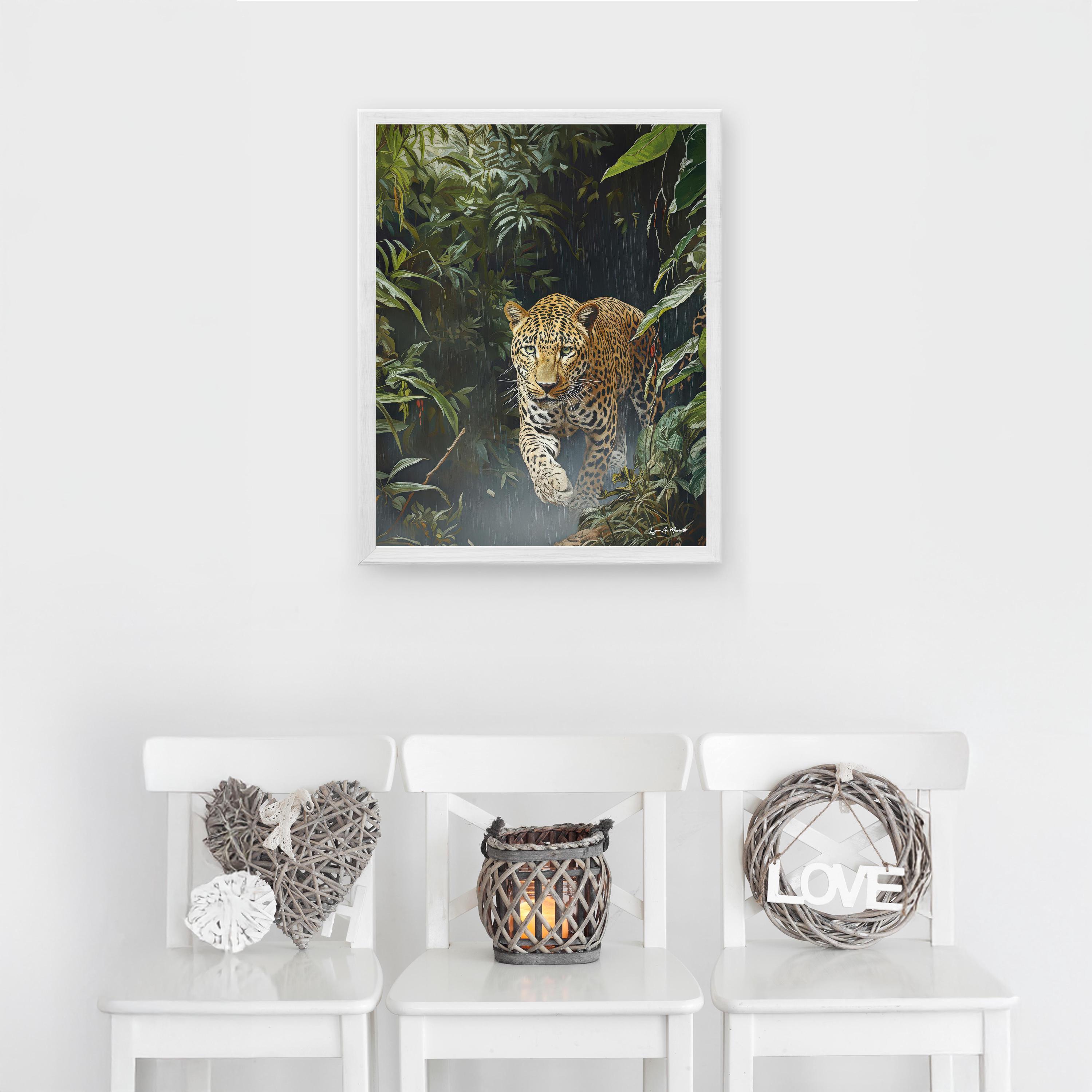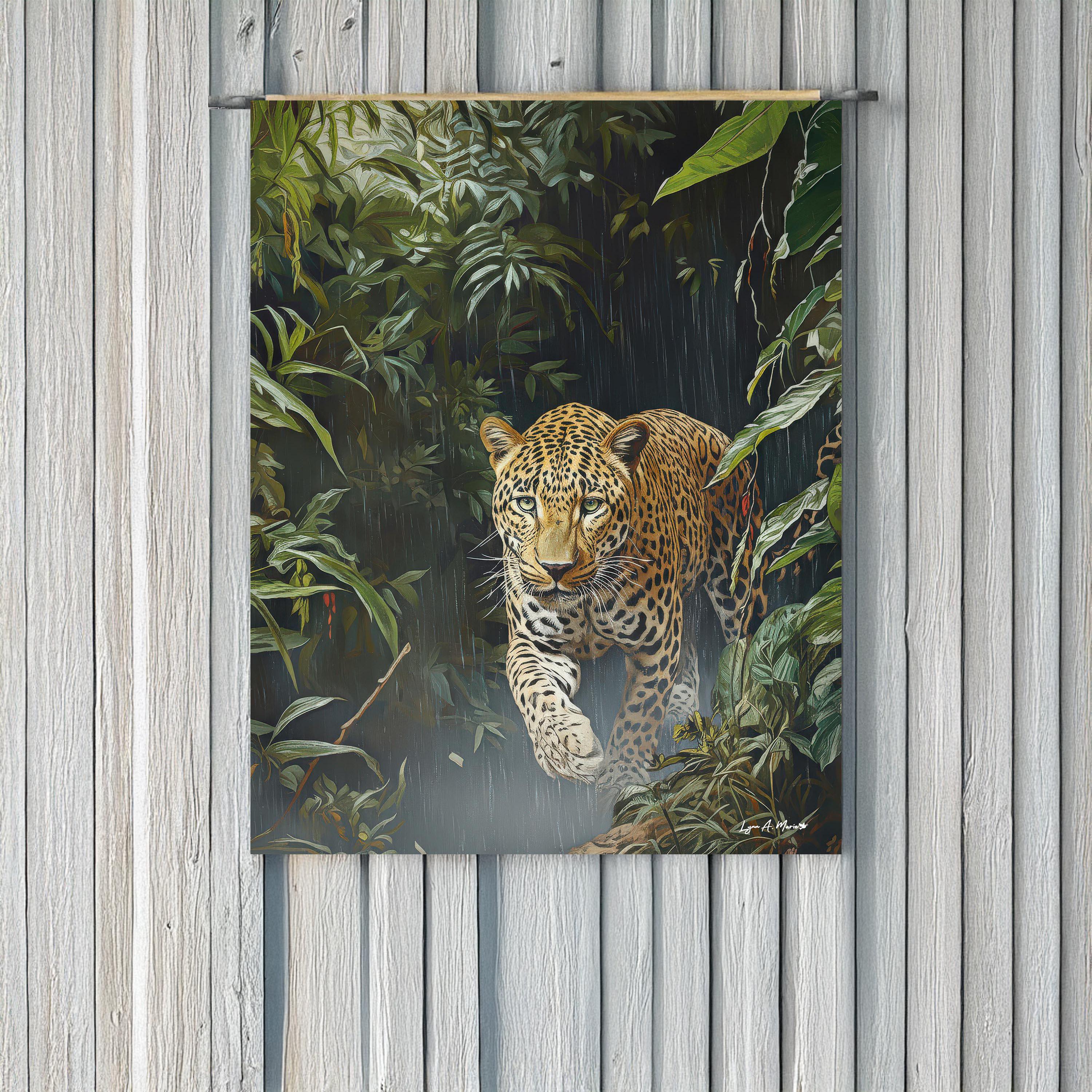 I created this artwork to show the strength and mystery of the leopard in its jungle home. The rain and shadows capture its wild, powerful spirit and the beauty of nature.