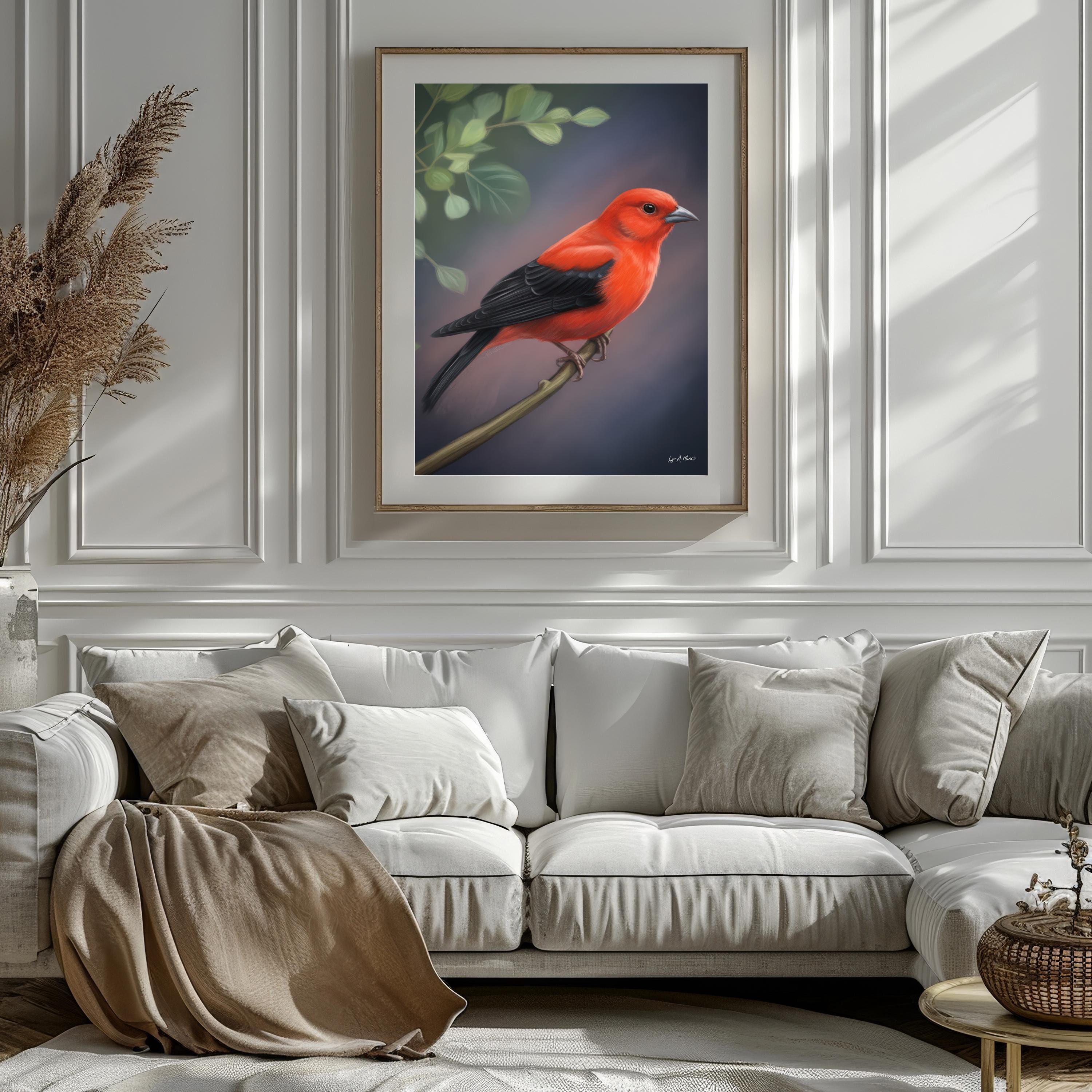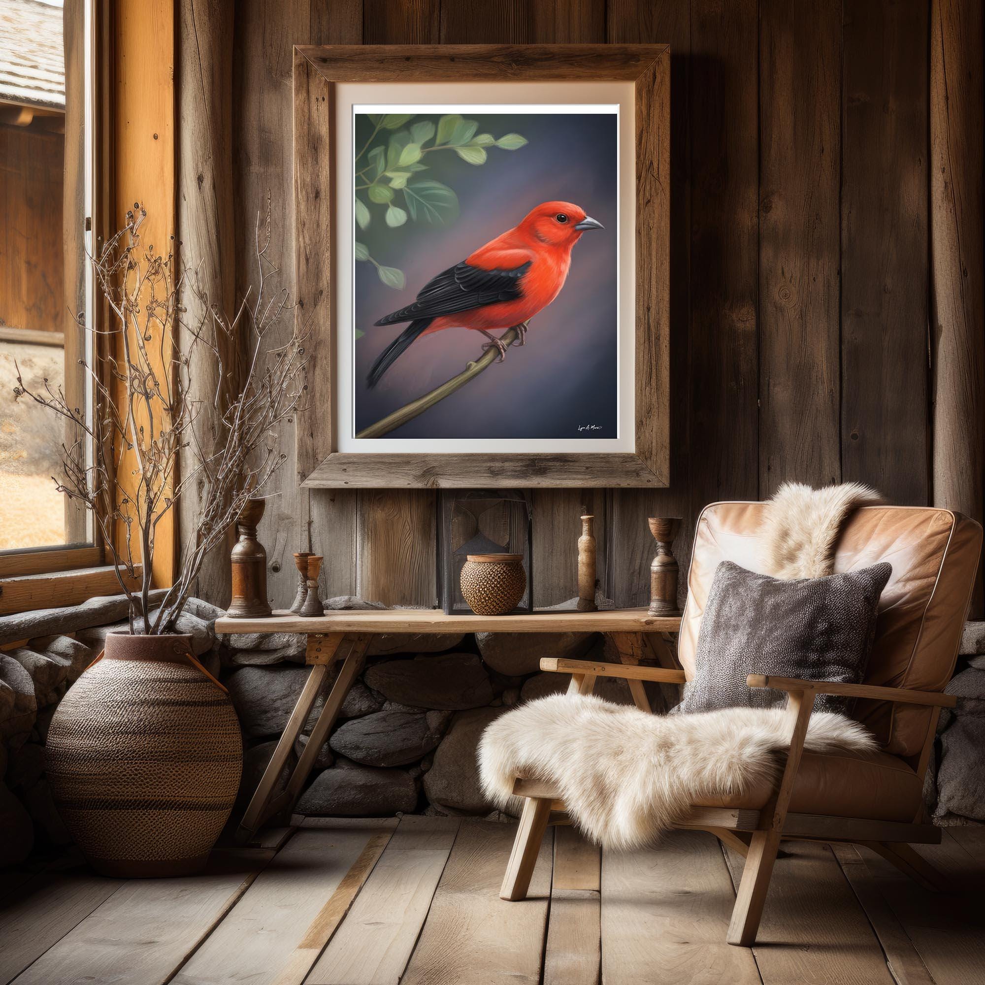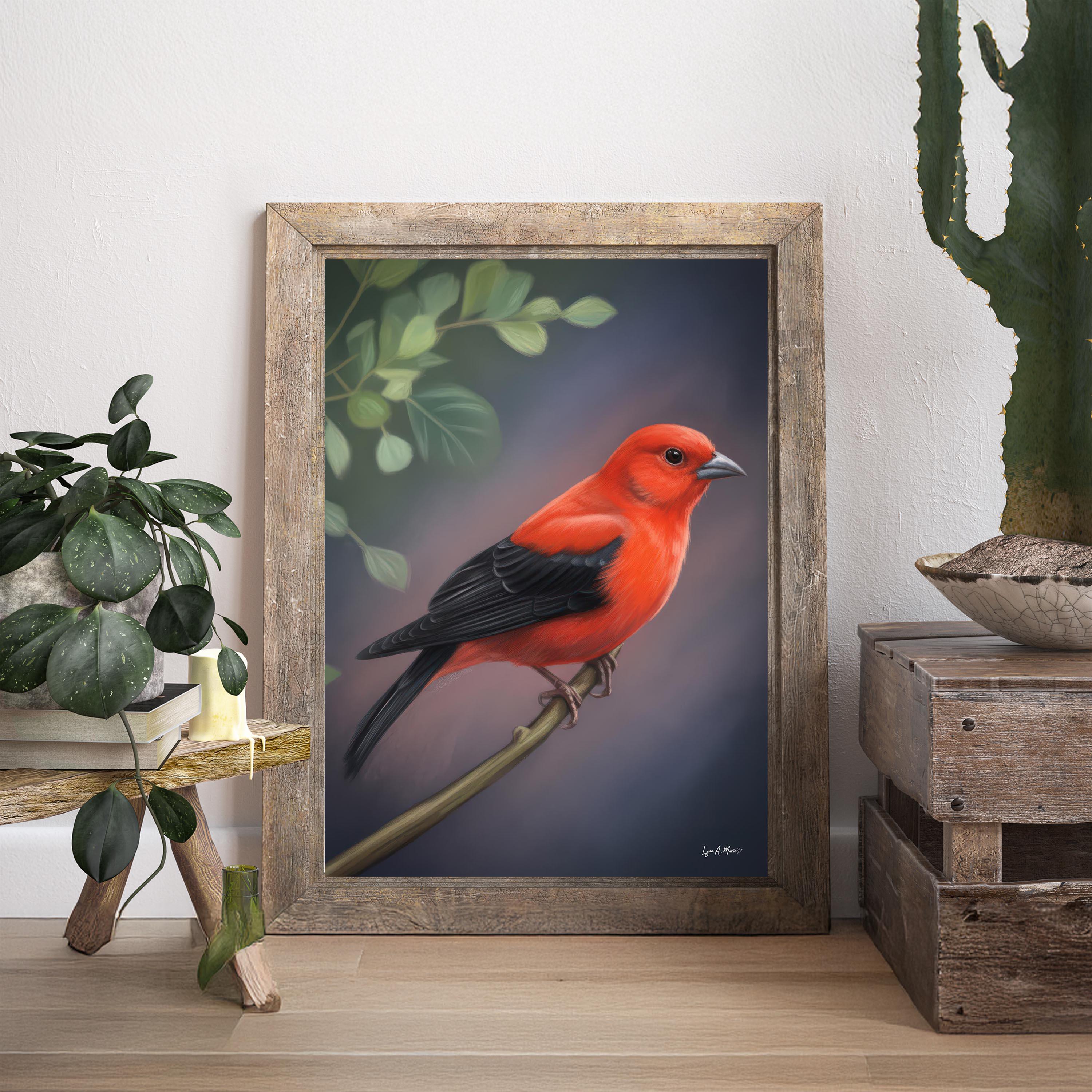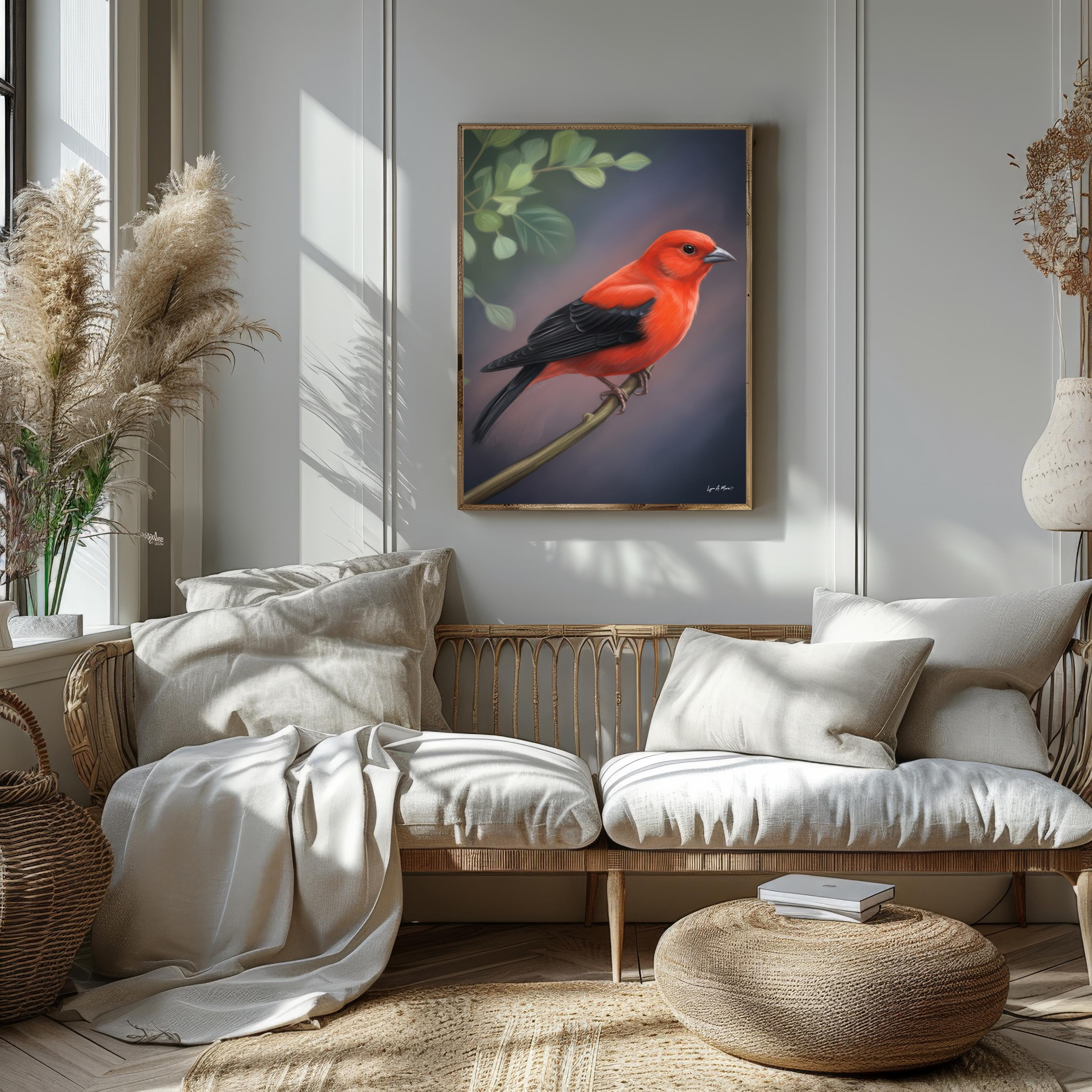 I created this to bring the bright, peaceful beauty of woodland songbirds into everyday spaces. I wanted to add warmth and color to any living room wall. Every detail is digitally created, not AI generated, signed and made for anyone who loves bird wall art, wildlife art, and colorful bird decor. This nature songbird art print was designed to be a calming, uplifting touch for any bird lover decor or woodland-inspired home.