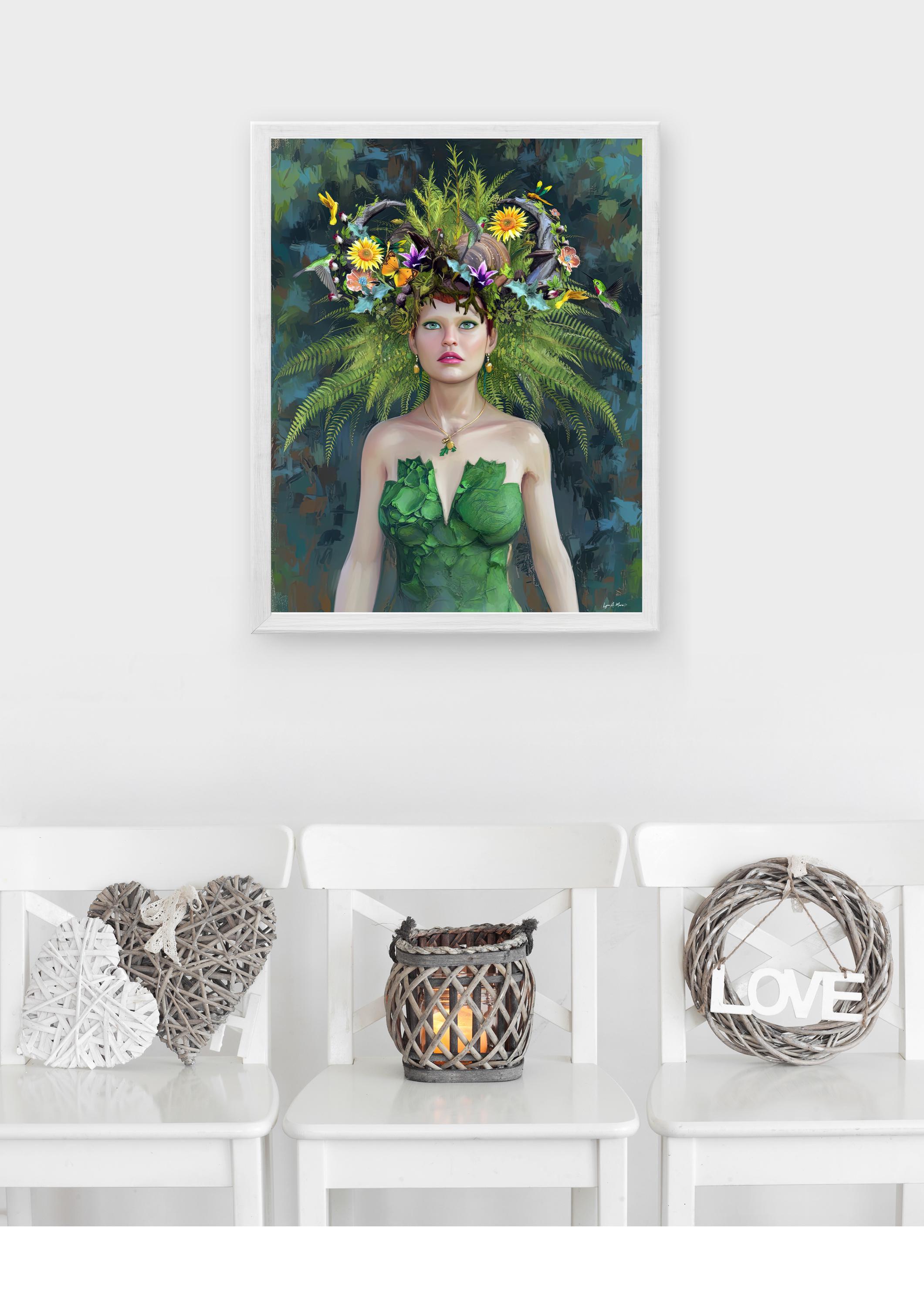 I created this piece to bring a touch of fantasy magic into a living room through a bold green style of wall decor. Inspired by nature and eco values, I used soft, natural pigment tones to give it a warm, handcrafted feel. It’s meant to be a unique gift idea for any fantasy fan, offering a hint of luxury while still feeling personal and creative.