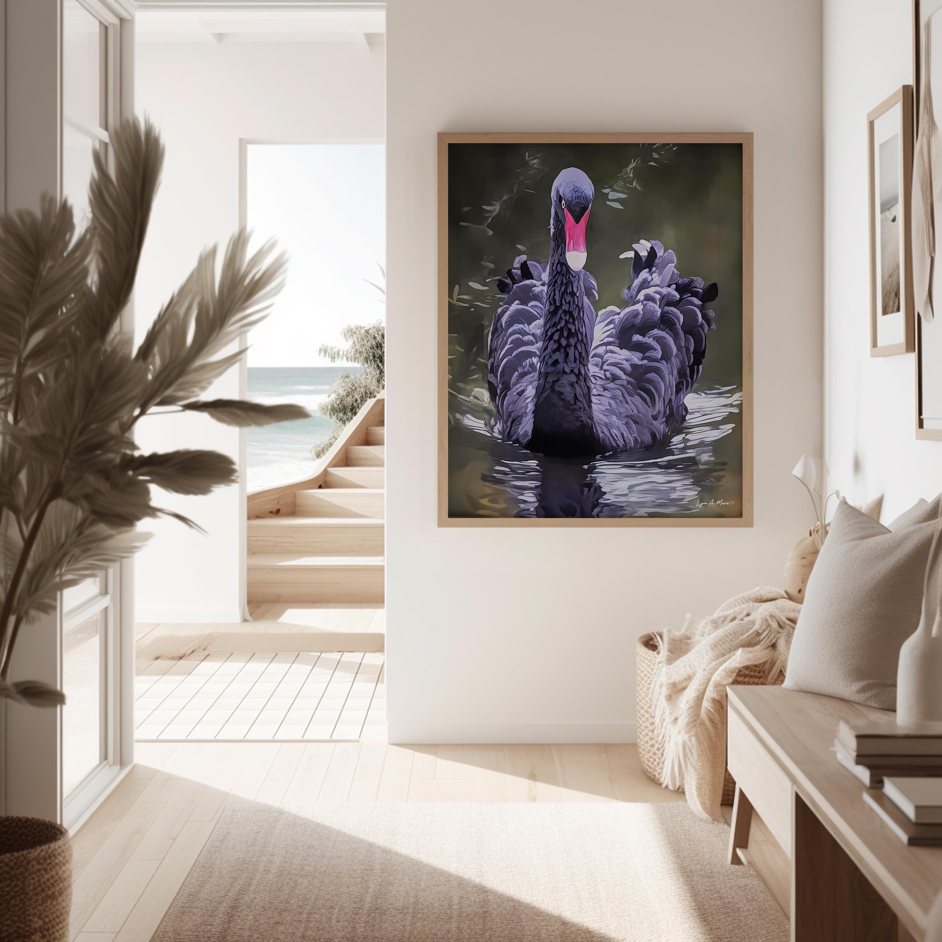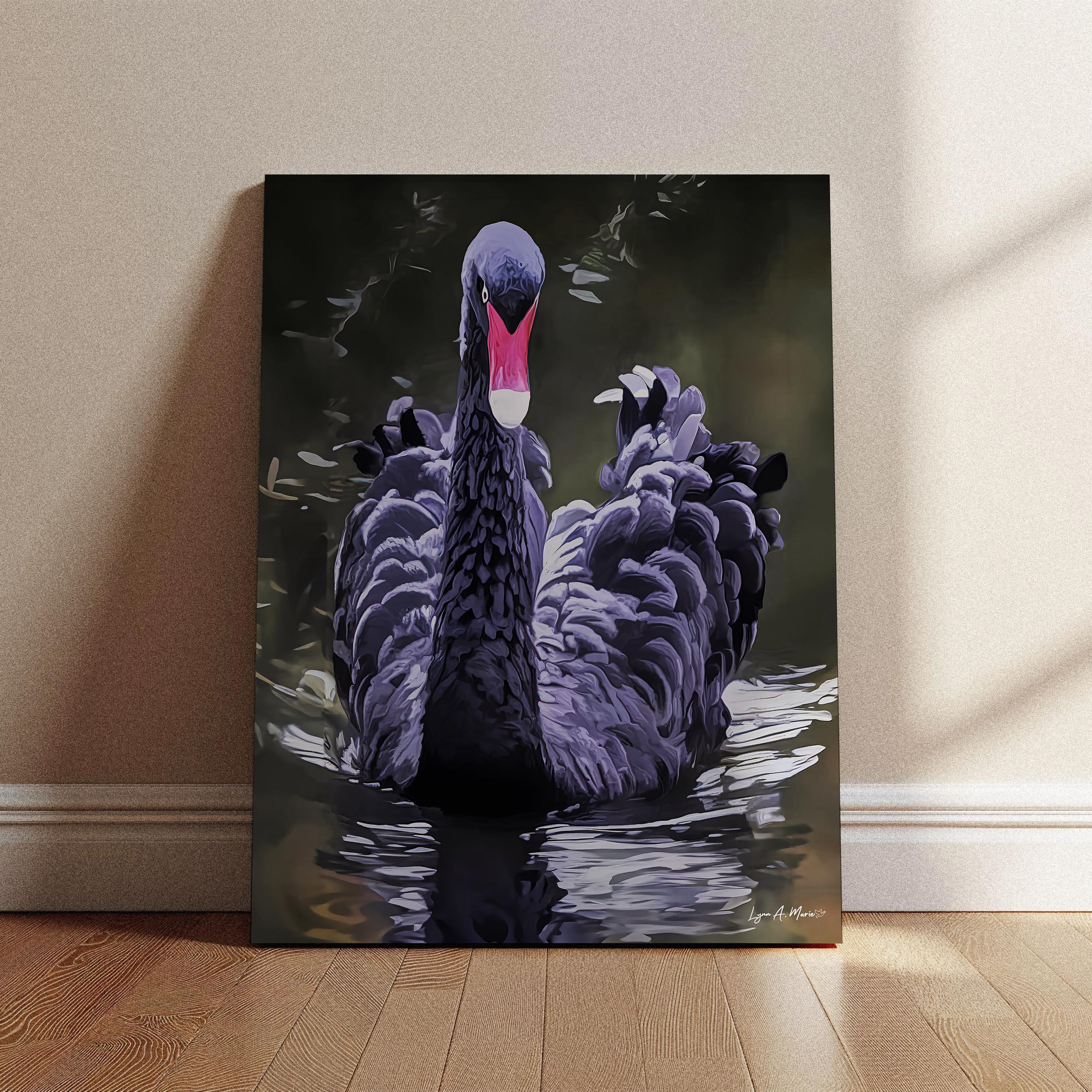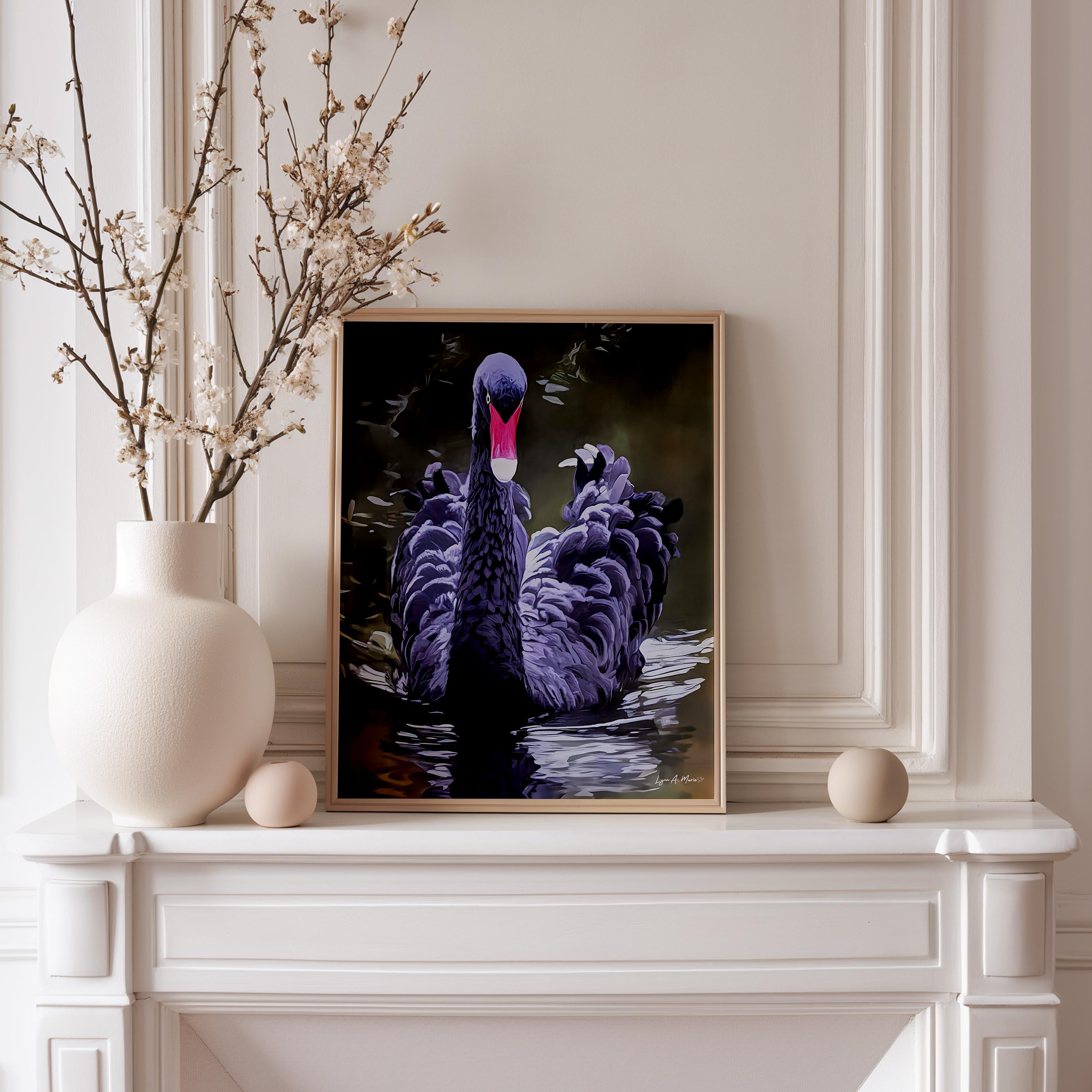 Bring a calm, elegant touch to your living room wall with this black swan bird artwork. Inspired by real nature, this artist-generated piece highlights the quiet beauty of a swan gliding across water. Its refined, elegant décor style makes it a meaningful gift for any birdwatcher or nature lover, perfect for adding timeless wall décor to any space.