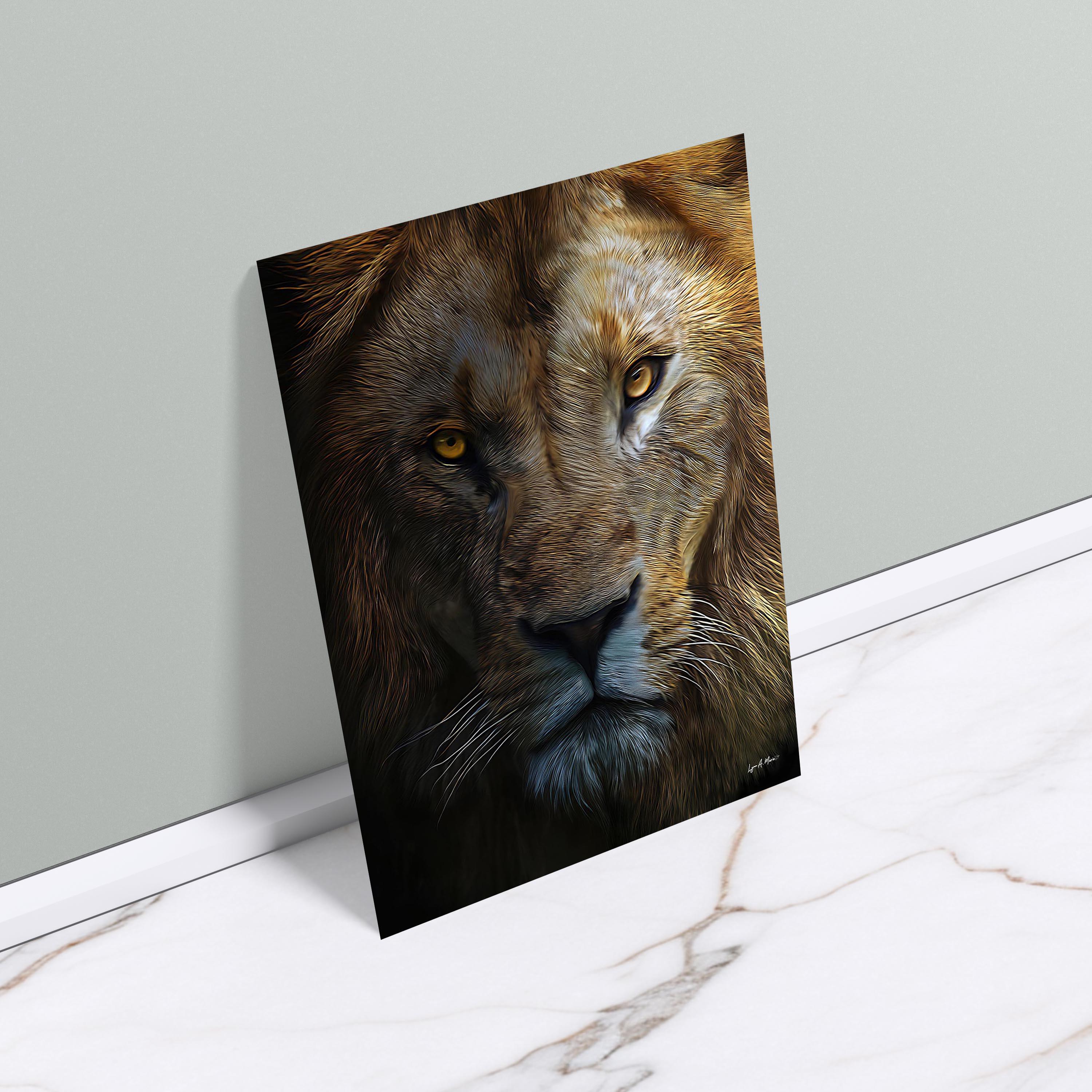 I created this piece because I wanted to capture the quiet strength you see in a big cat, especially a male lion. There’s something about that calm, focused look that feels really powerful, like the moment right before action. I wanted it to reflect the natural beauty of Africa and the wild nature that gives this animal its strong, confident presence.