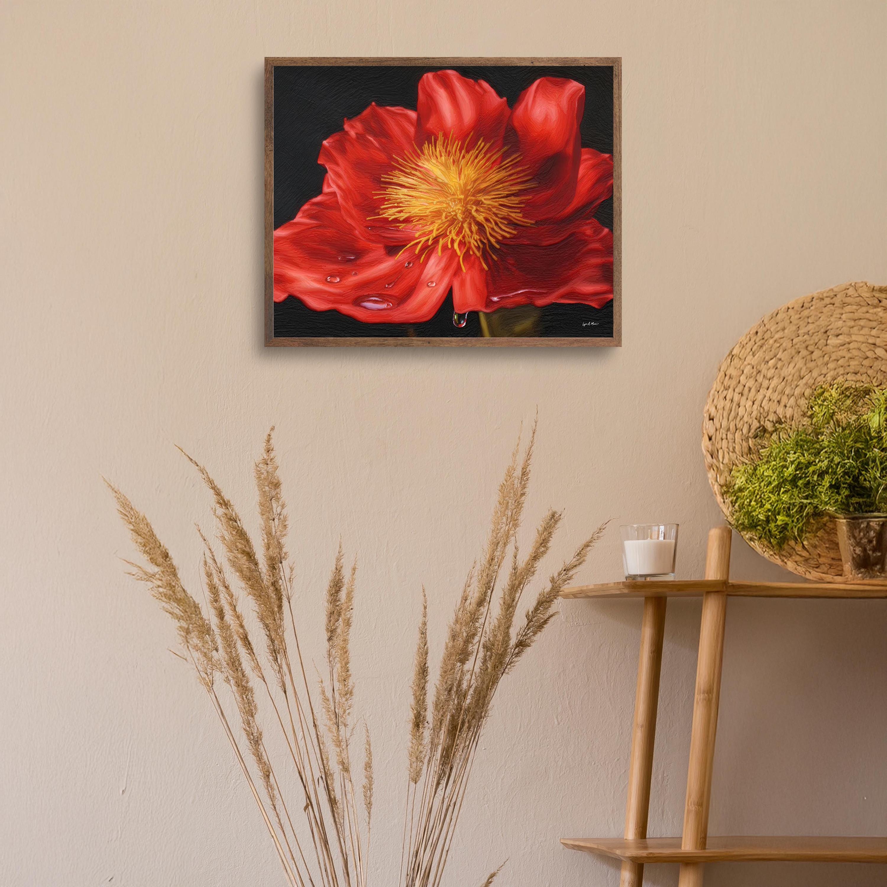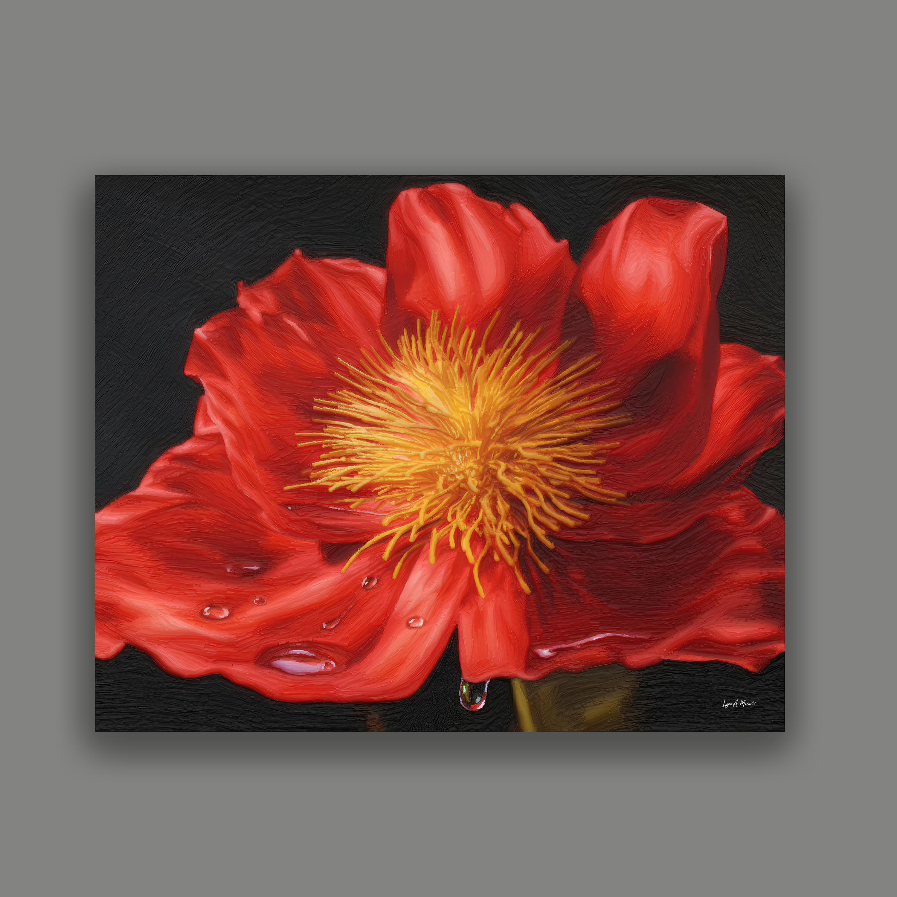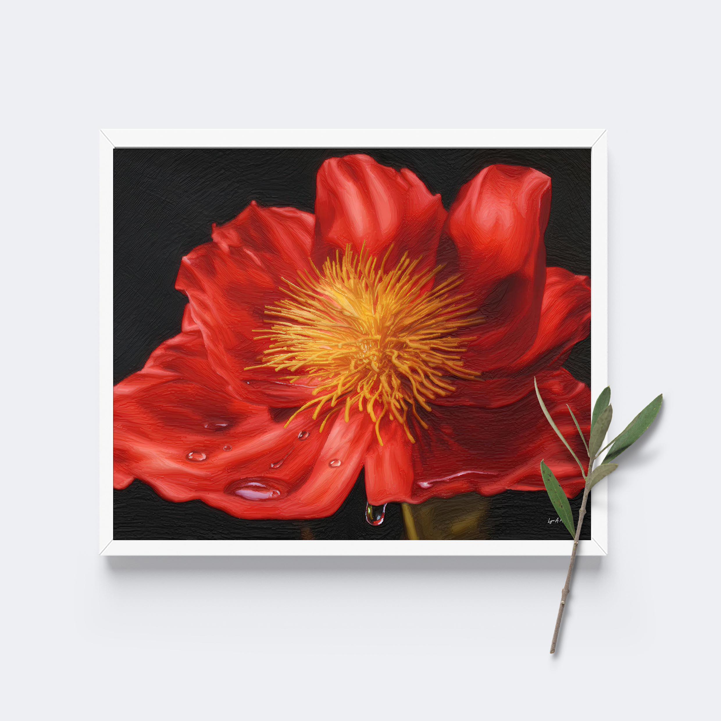 I created this artwork because I wanted to show how simple things, like a single flower, can hold so much beauty. The bright red petals and drops of water caught my eye, and I wanted to capture that freshness and energy in a way that feels alive and uplifting.