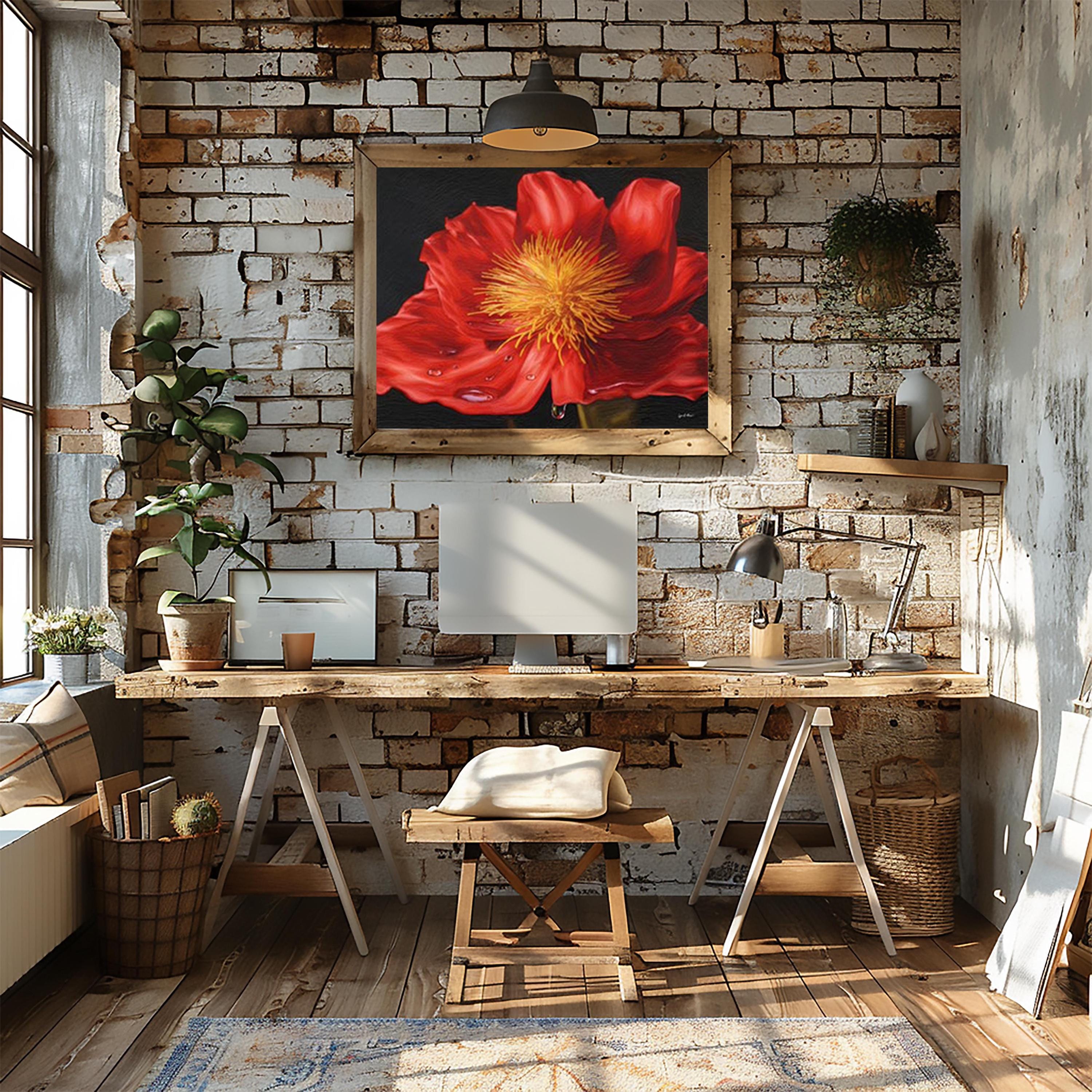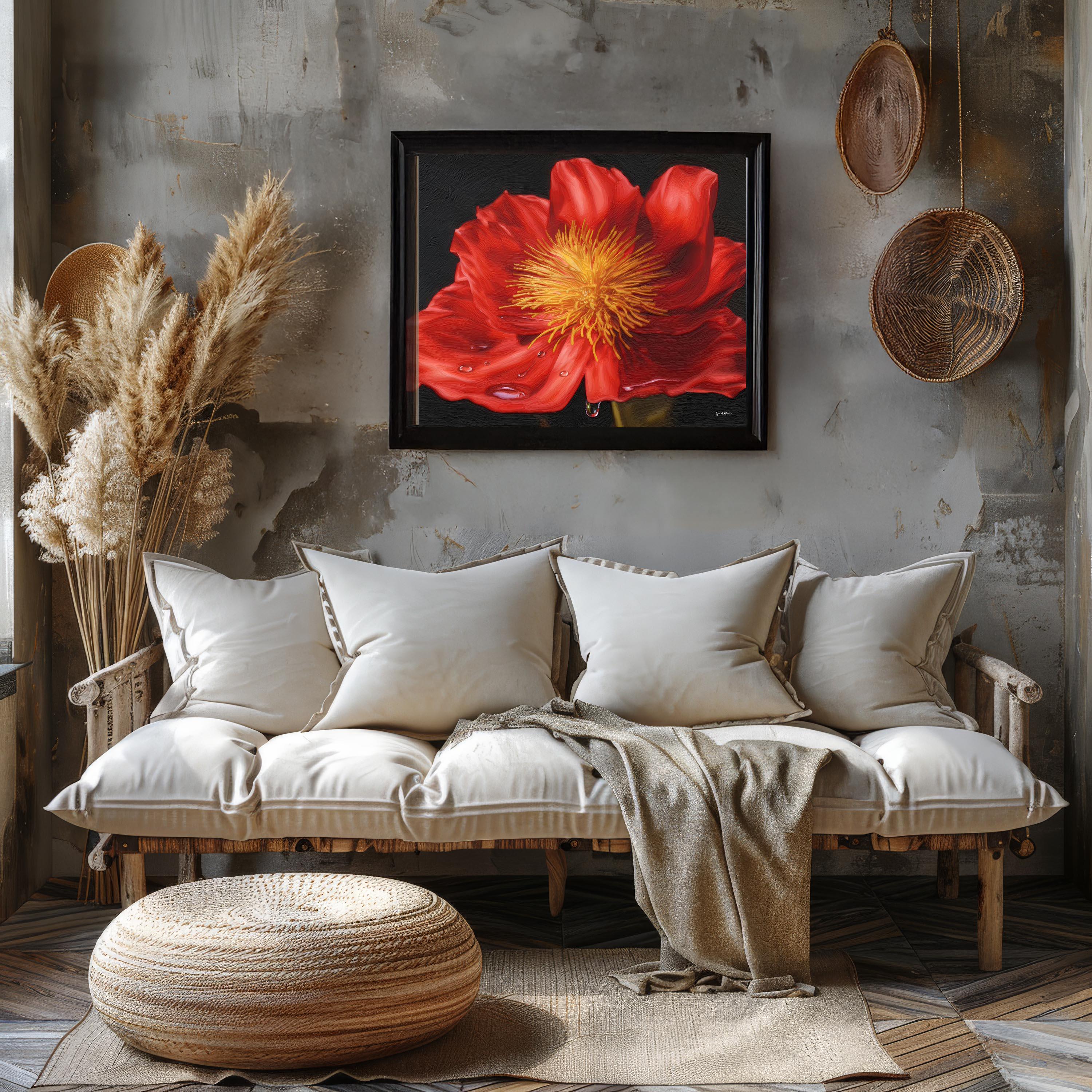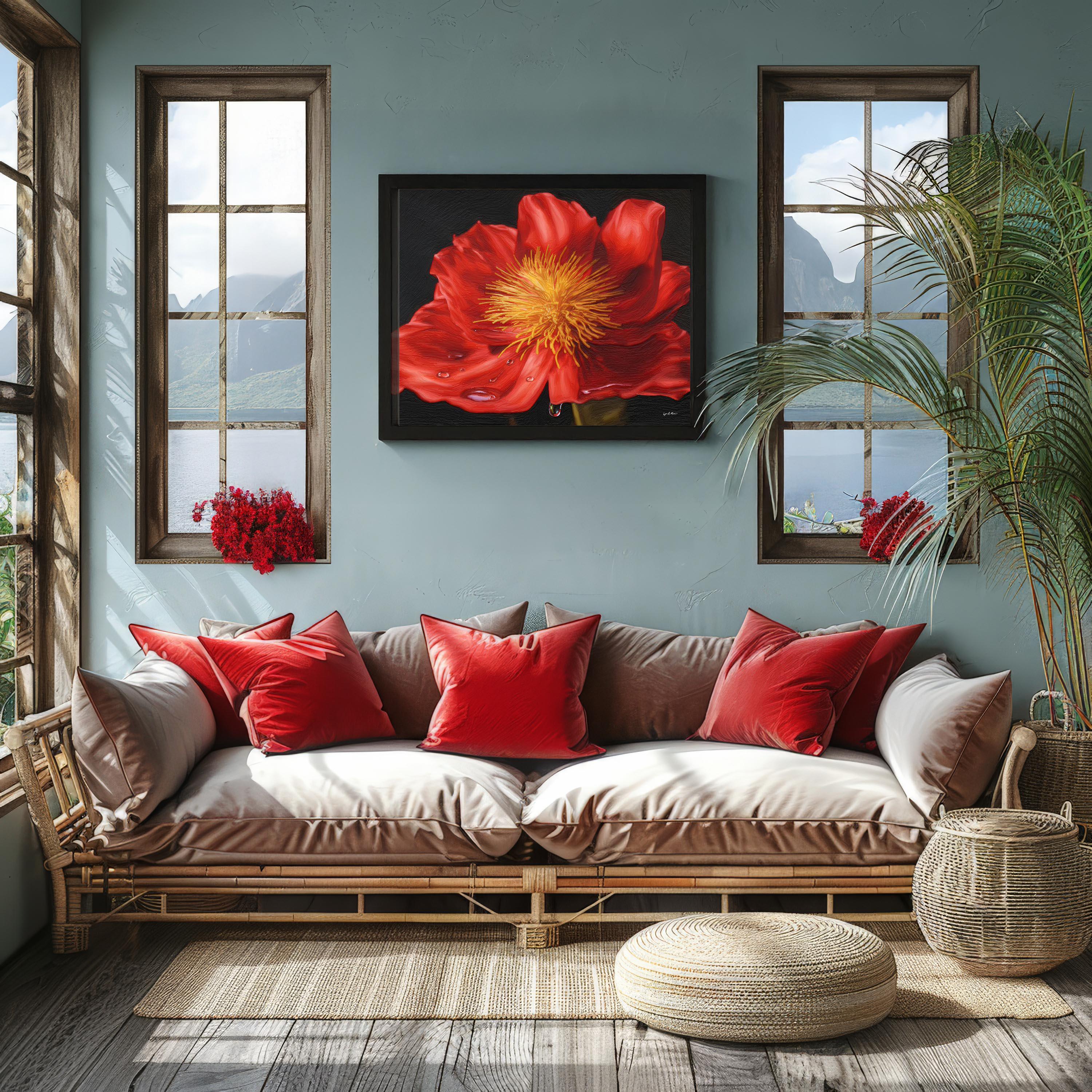 I created this artwork because I wanted to show how simple things, like a single flower, can hold so much beauty. The bright red petals and drops of water caught my eye, and I wanted to capture that freshness and energy in a way that feels alive and uplifting.