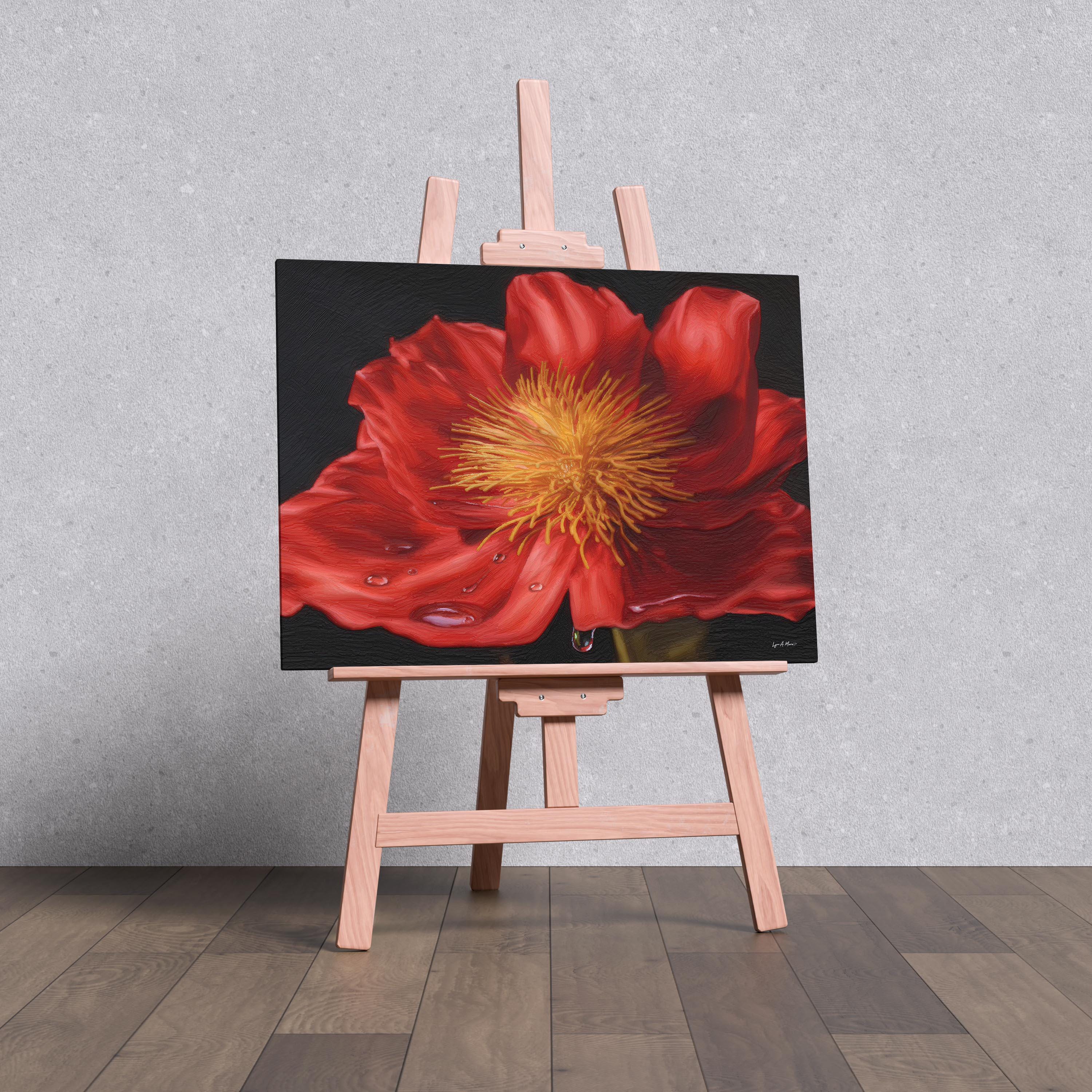 I created this artwork reddish orange floral piece because I wanted to show how simple things, like a single flower, can hold so much beauty. The bright red petals and drops of water caught my eye, and I wanted to capture that freshness and energy in a way that feels alive and uplifting. botanical