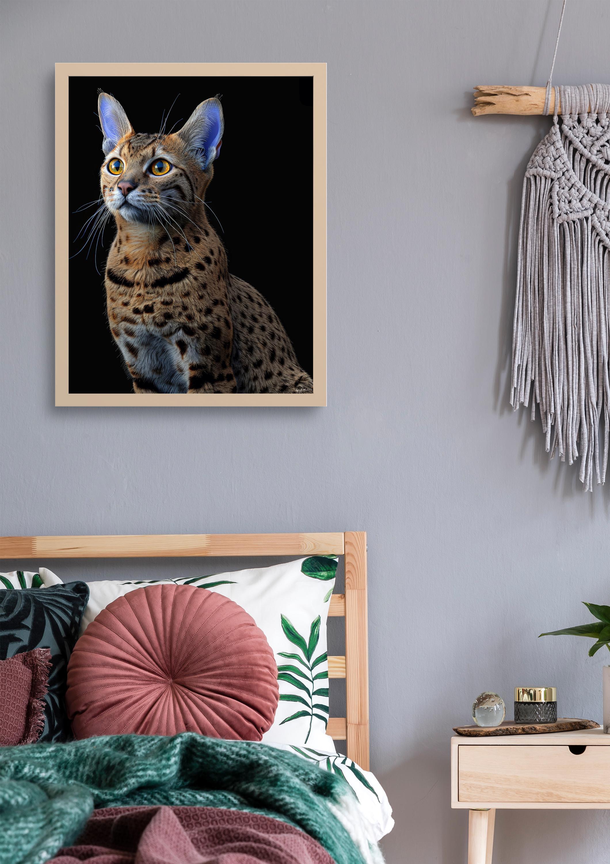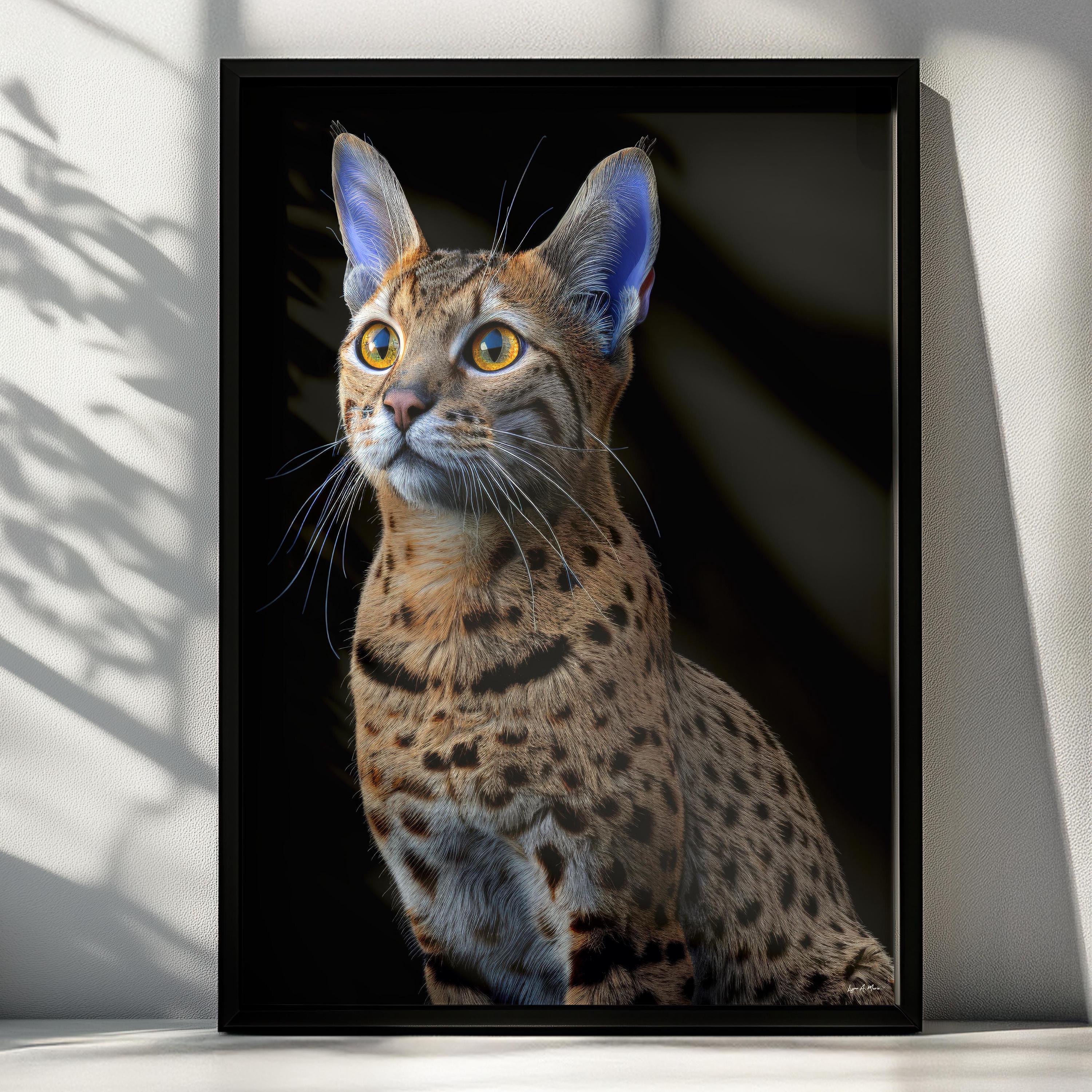I created this piece to celebrate the striking beauty and intelligence of the feline form. The Savannah cat’s alert gaze and graceful posture felt like the perfect blend of wild spirit and refined elegance. I wanted this artwork to feel intimate and powerful, something that resonates with a pet lover who appreciates both nature and sophisticated design. This piece was created to honor the bond we feel with animals and to serve as an elegant statement artwork or a meaningful gift for anyone who loves cats and refined decor.