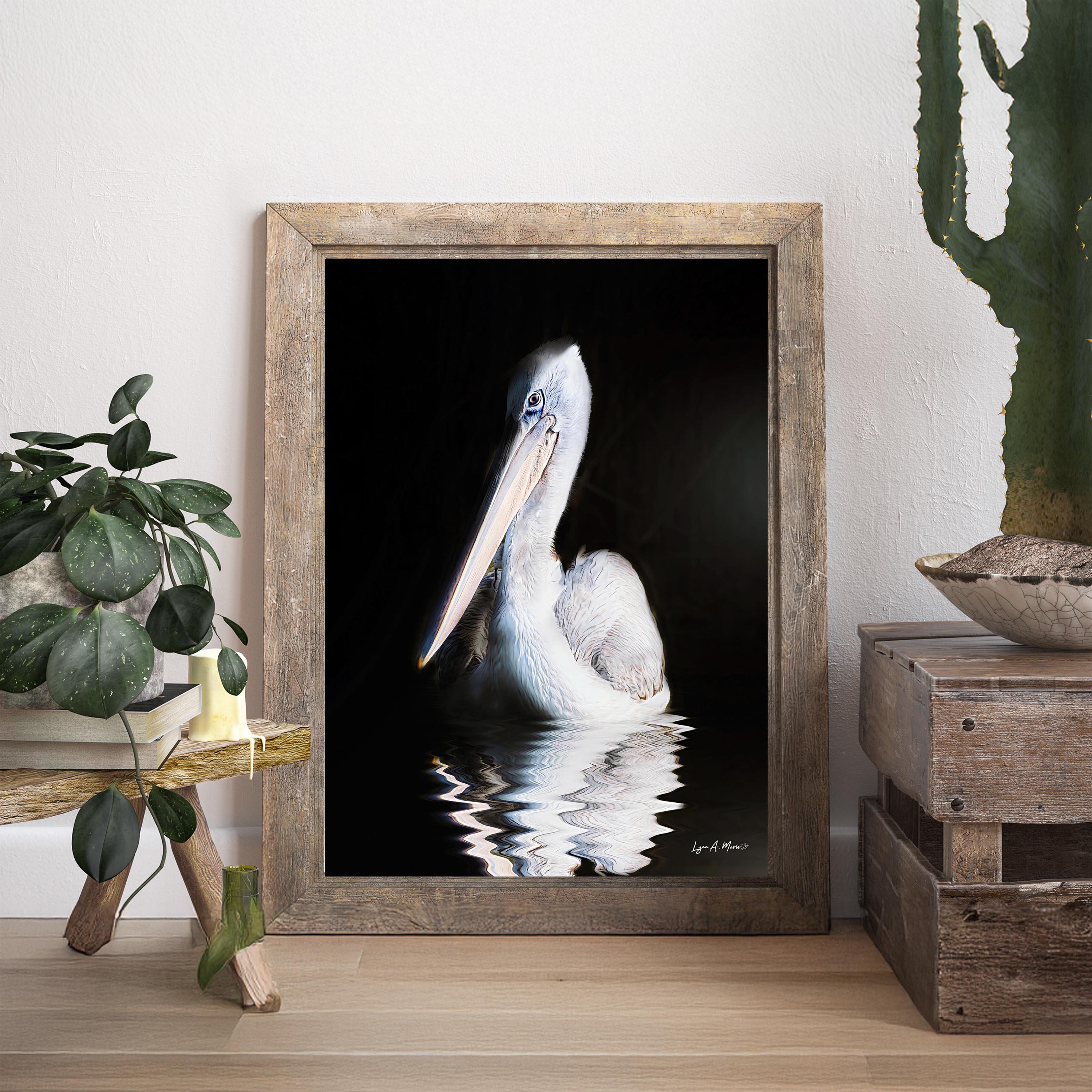 I created this white pelican piece to capture a calm, reflective moment in nature—something peaceful that people can bring into their homes. Made entirely by hand in Photoshop and Topaz Studio (no AI), I wanted the soft feathers and dark background to create striking, elegant wildlife art. This signed art print is perfect for your living room wall, coastal spaces, and anyone who loves pelican decor, birds, or unique natural scenes. It makes a thoughtful bird lover gift and fits beautifully into nautical themed art or modern home decor.