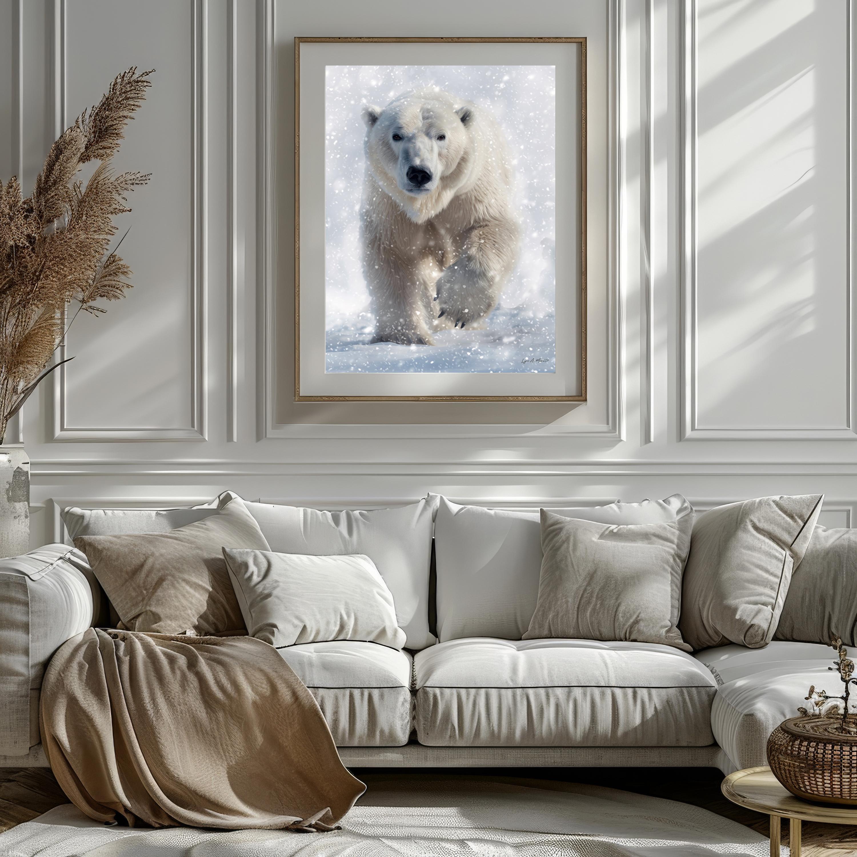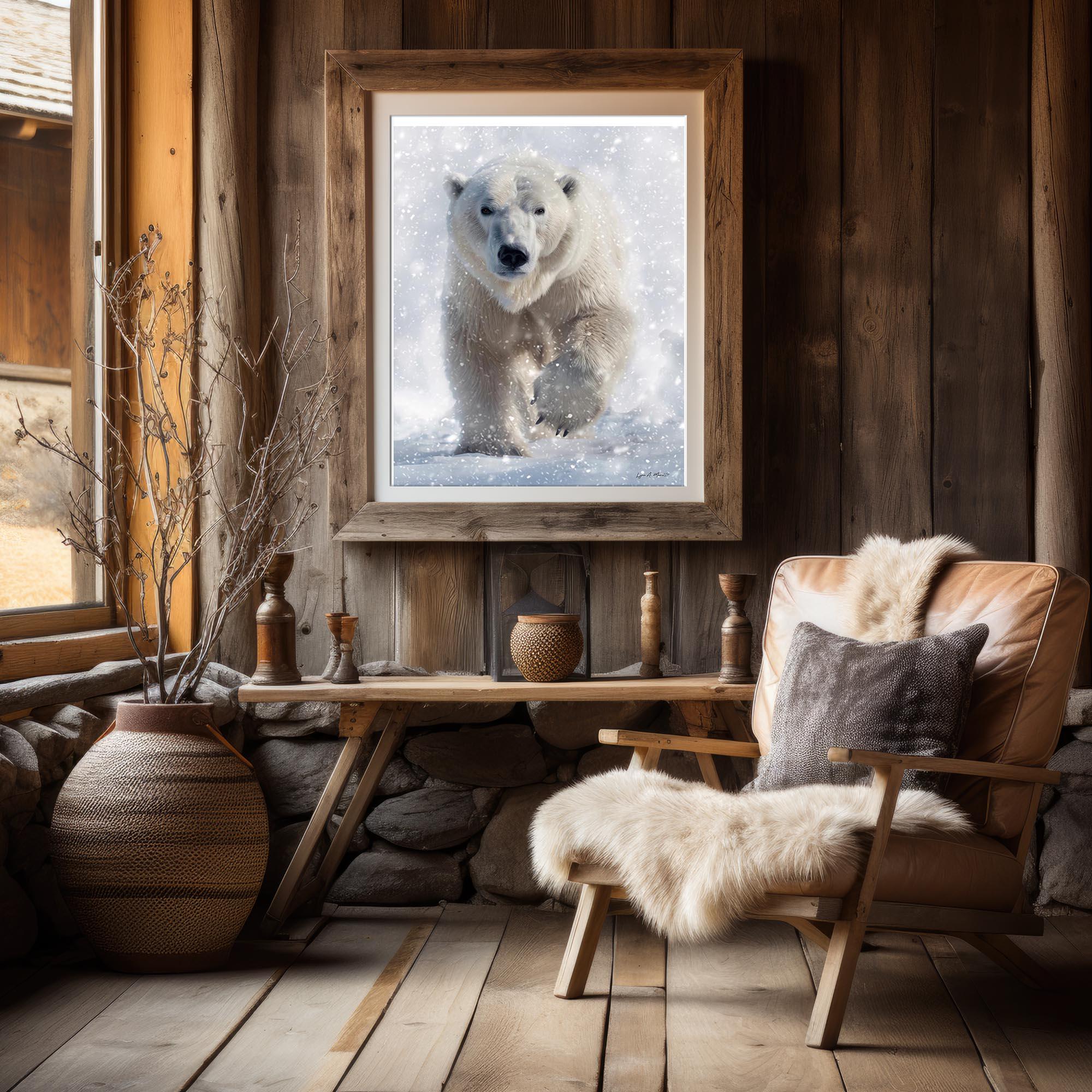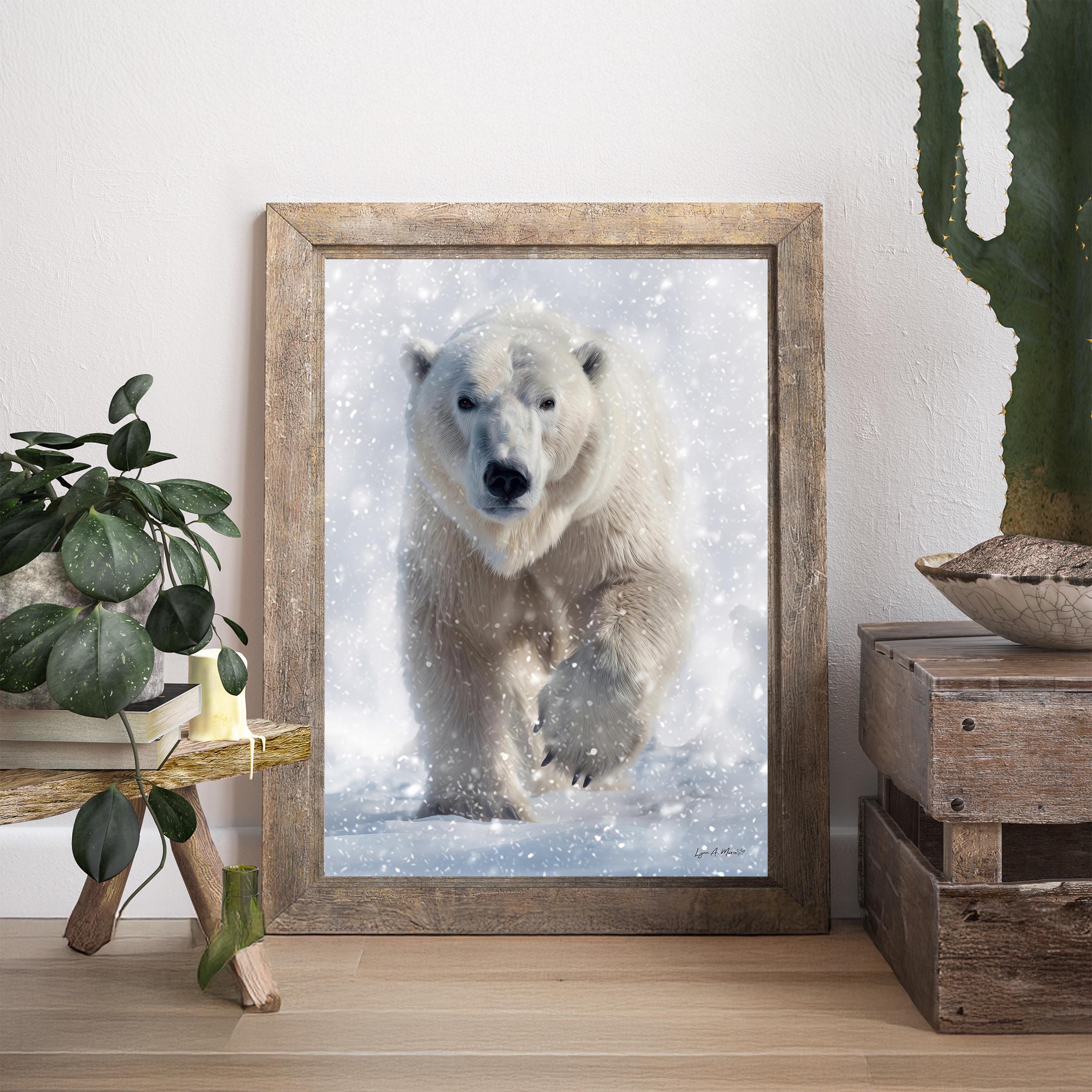 This limited edition piece draws you into a breathtaking snow scene, making it an ideal addition to your wildlife decor or cabin decor. Looking for a unique polar bear gift? This polar bear wall art is a thoughtful choice for anyone who appreciates living room wall art with natural beauty.
