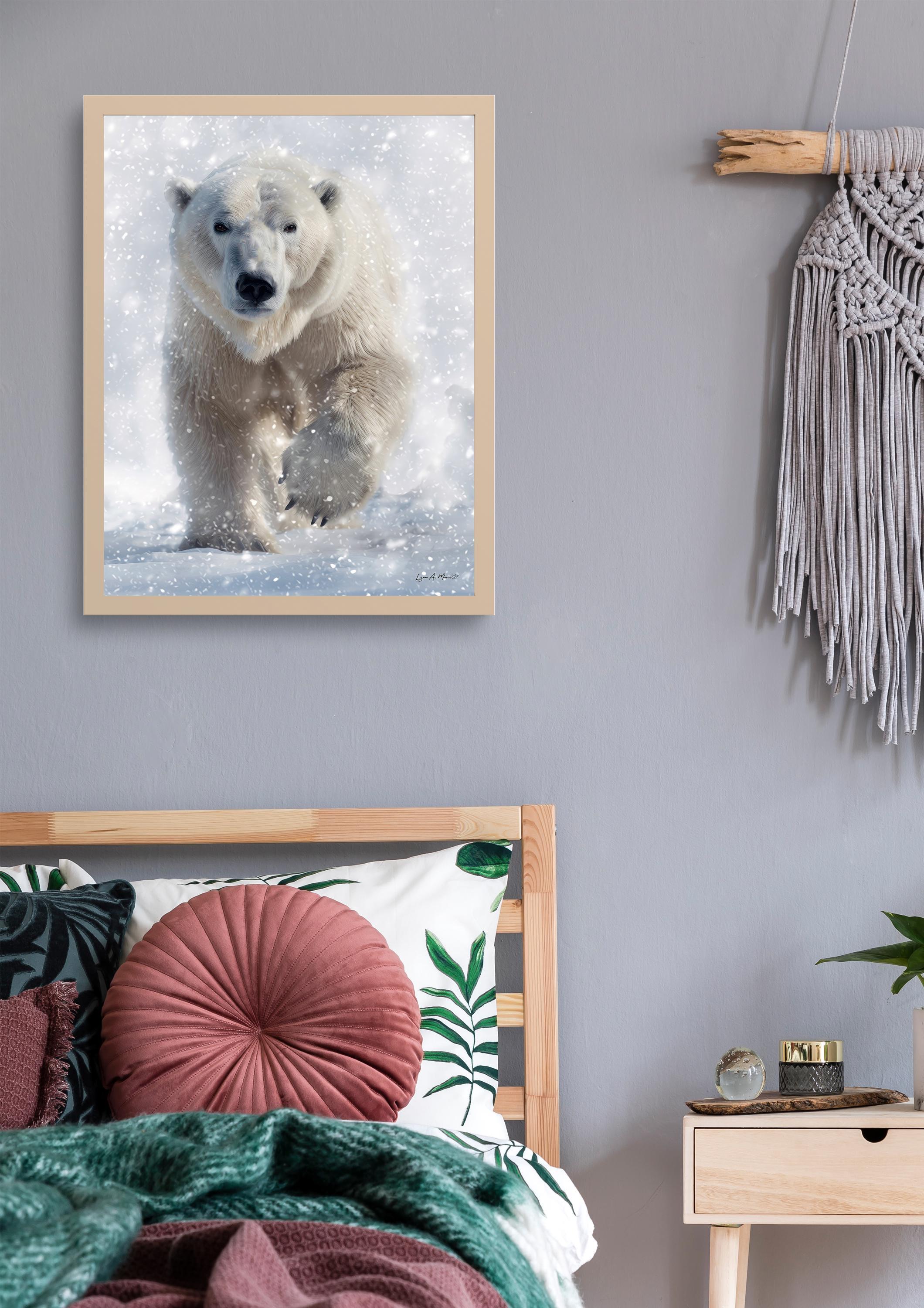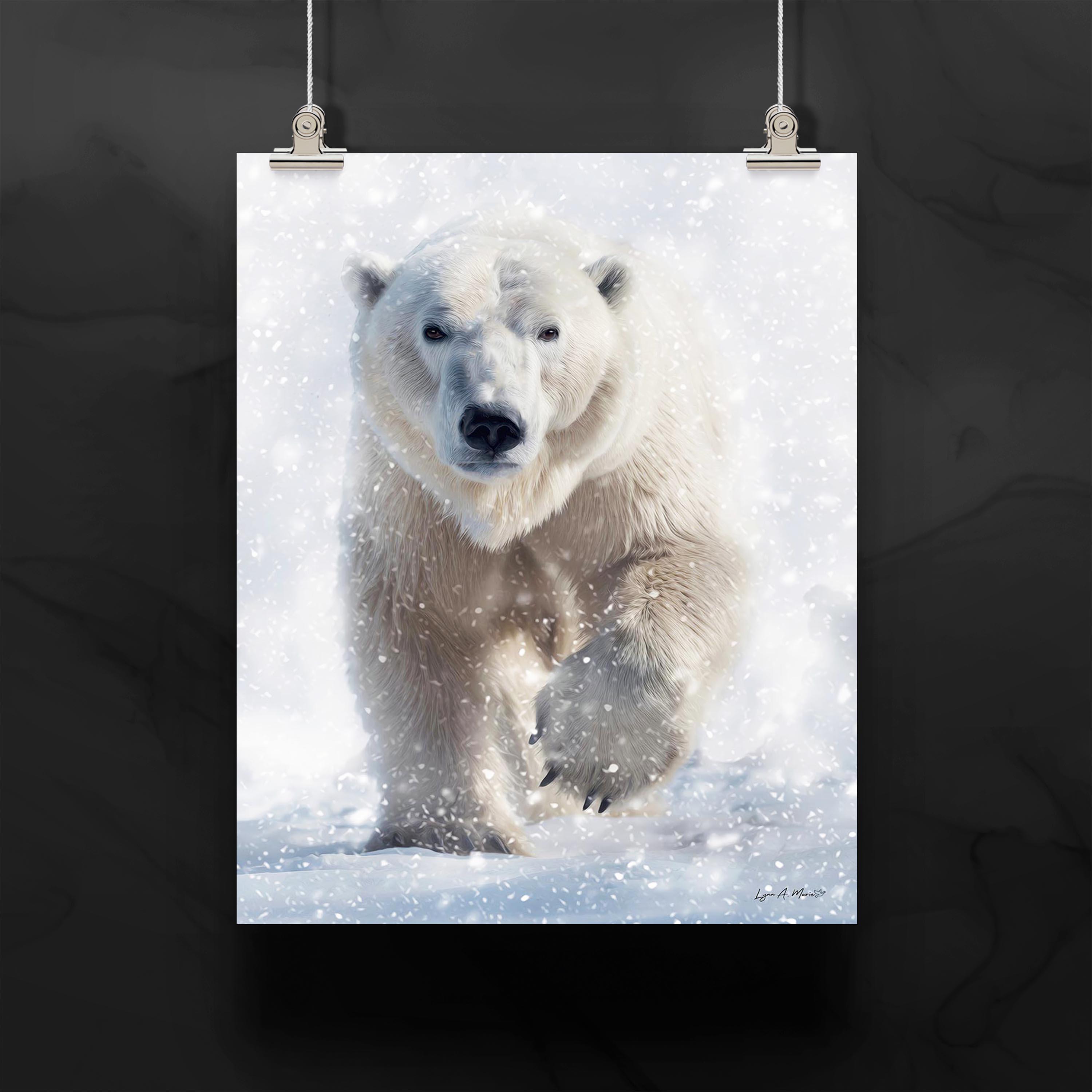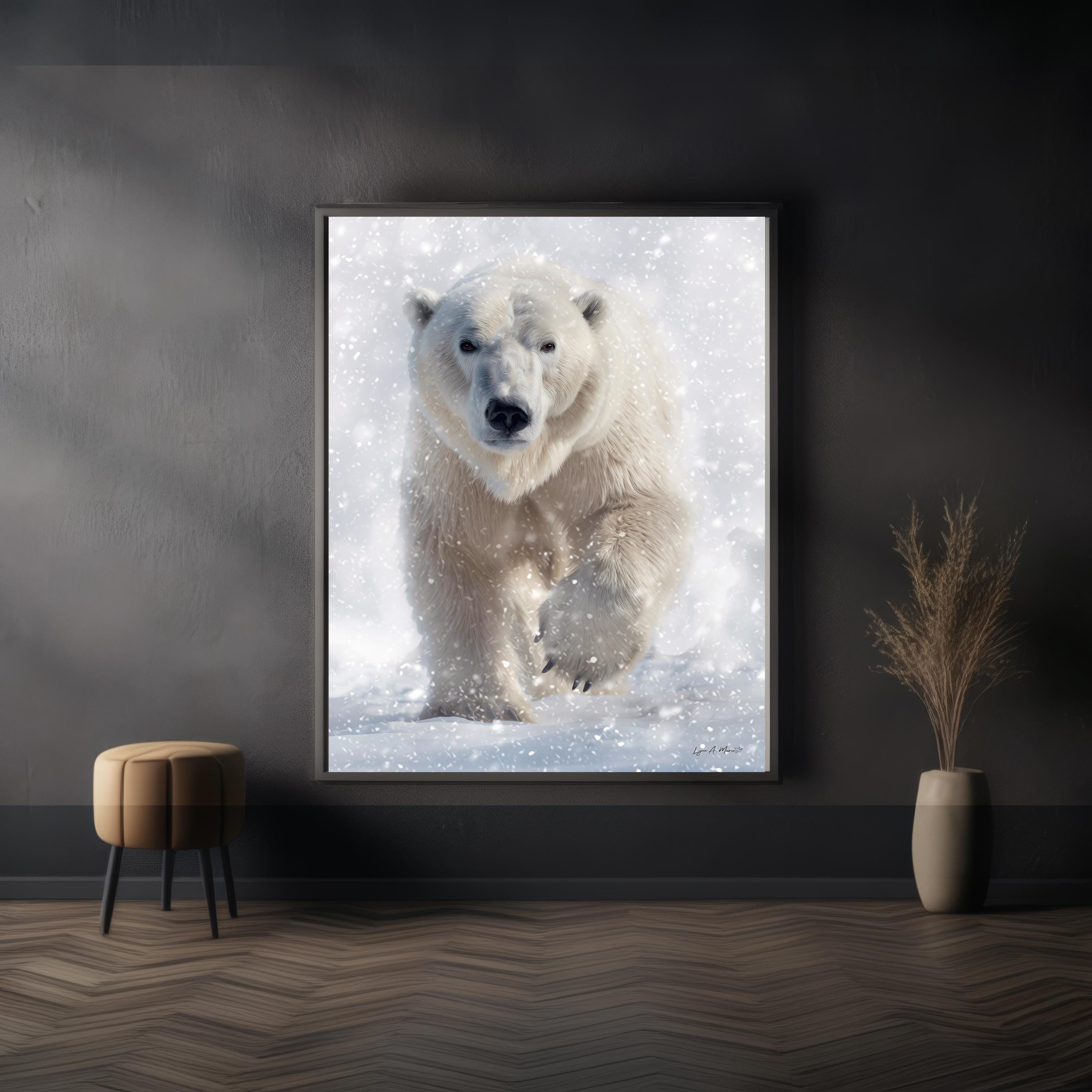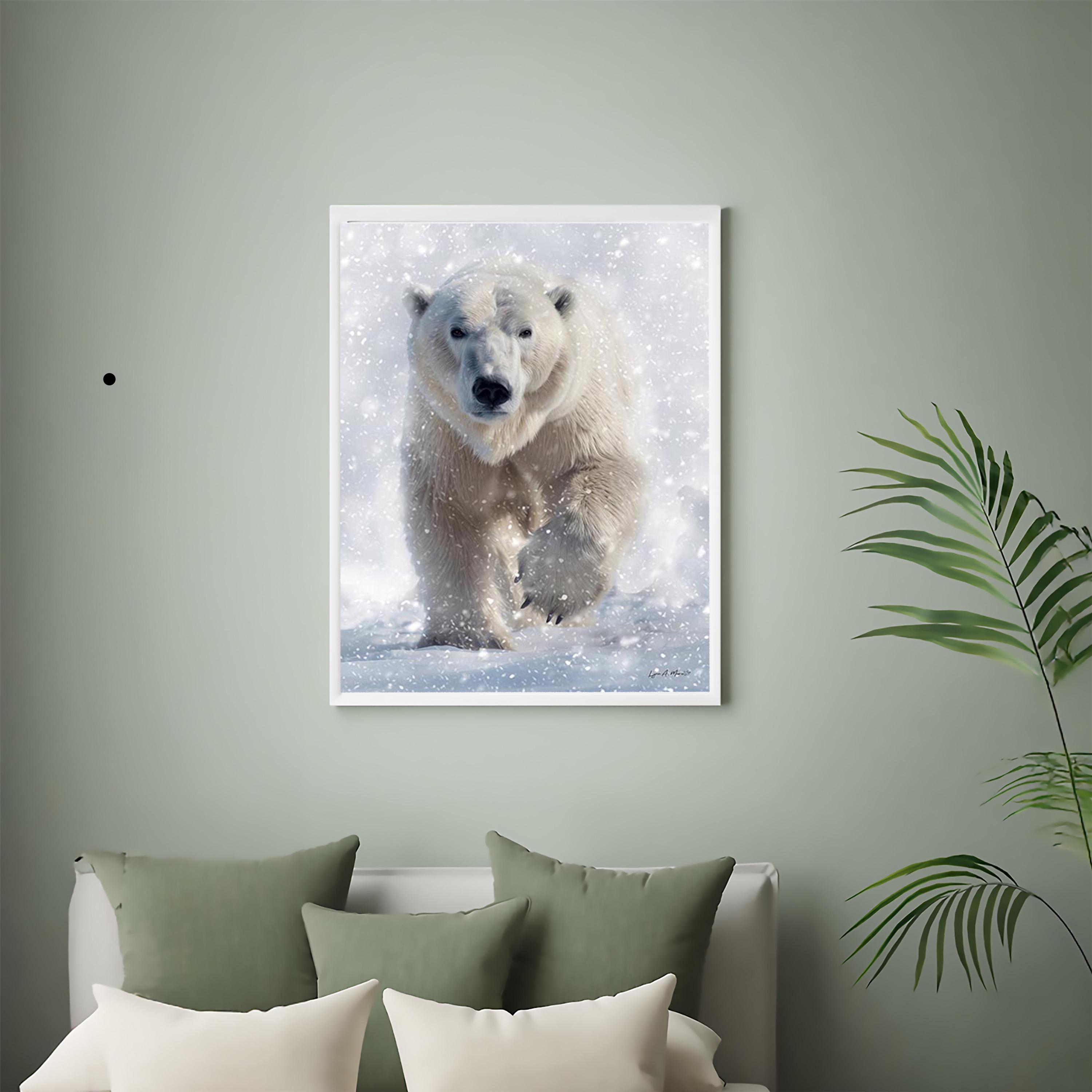 This limited edition piece draws you into a breathtaking snow scene, making it an ideal addition to your wildlife decor or cabin decor. Looking for a unique polar bear gift? This polar bear wall art is a thoughtful choice for anyone who appreciates living room wall art with natural beauty.