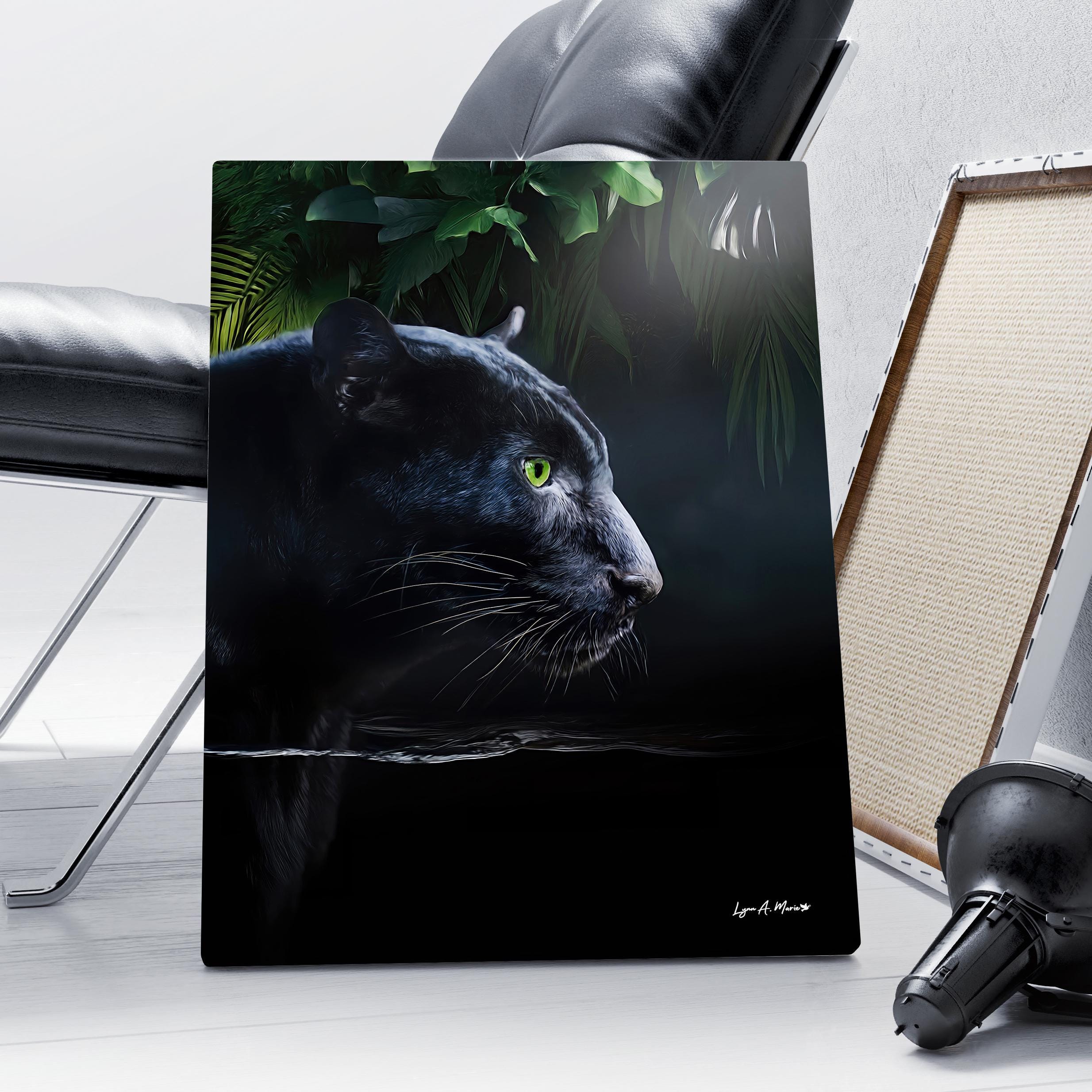 I created this piece to honor the quiet power of the leopard, an animal that moves through wildlife with big presence, even in shadow and dark. I was inspired by how nature hides and reveals at once, letting the cat’s green eye cut through the night. This signed fine art print brings a sleek, modern mood to a livingroom and works as statement decor or a meaningful gift for animal and nature lovers.