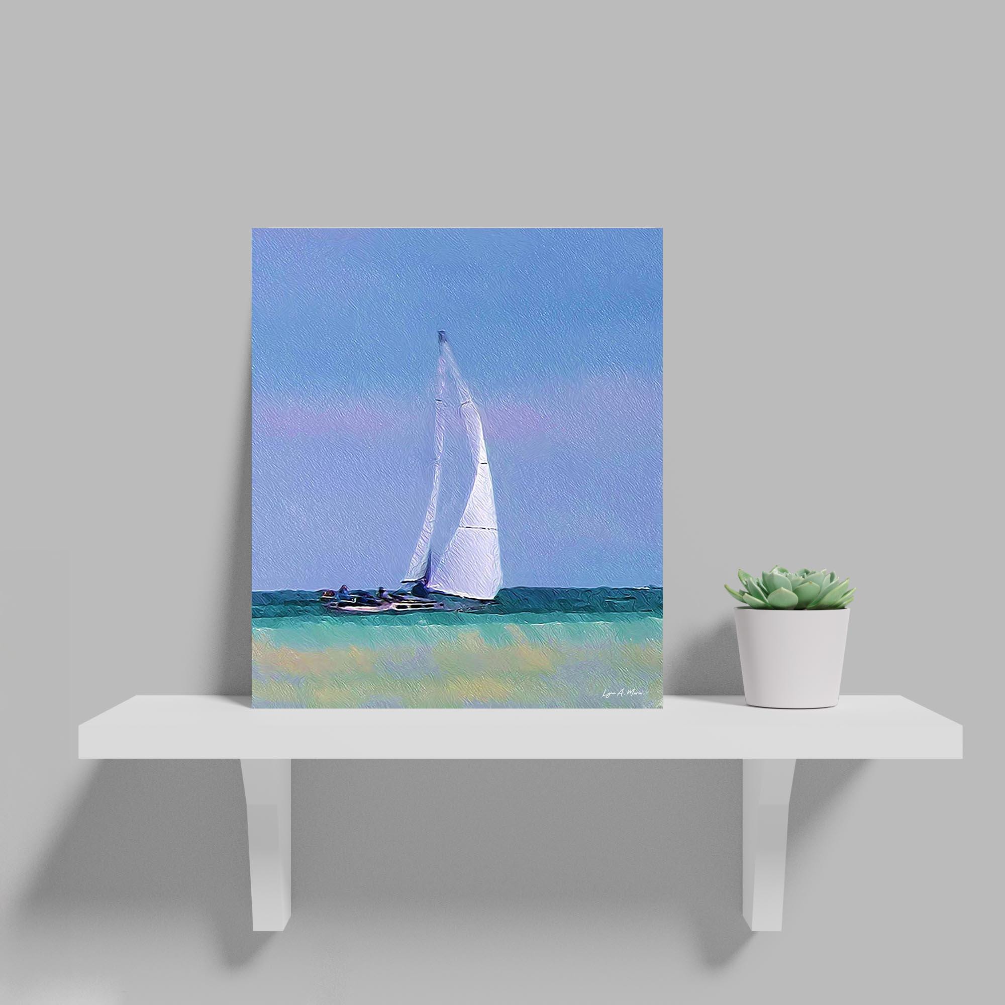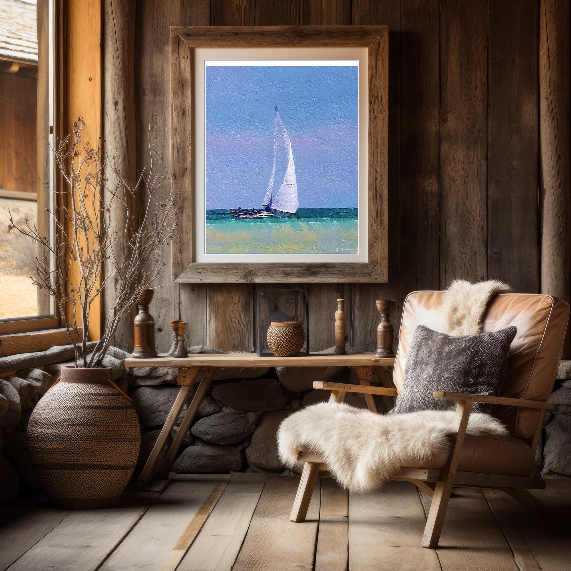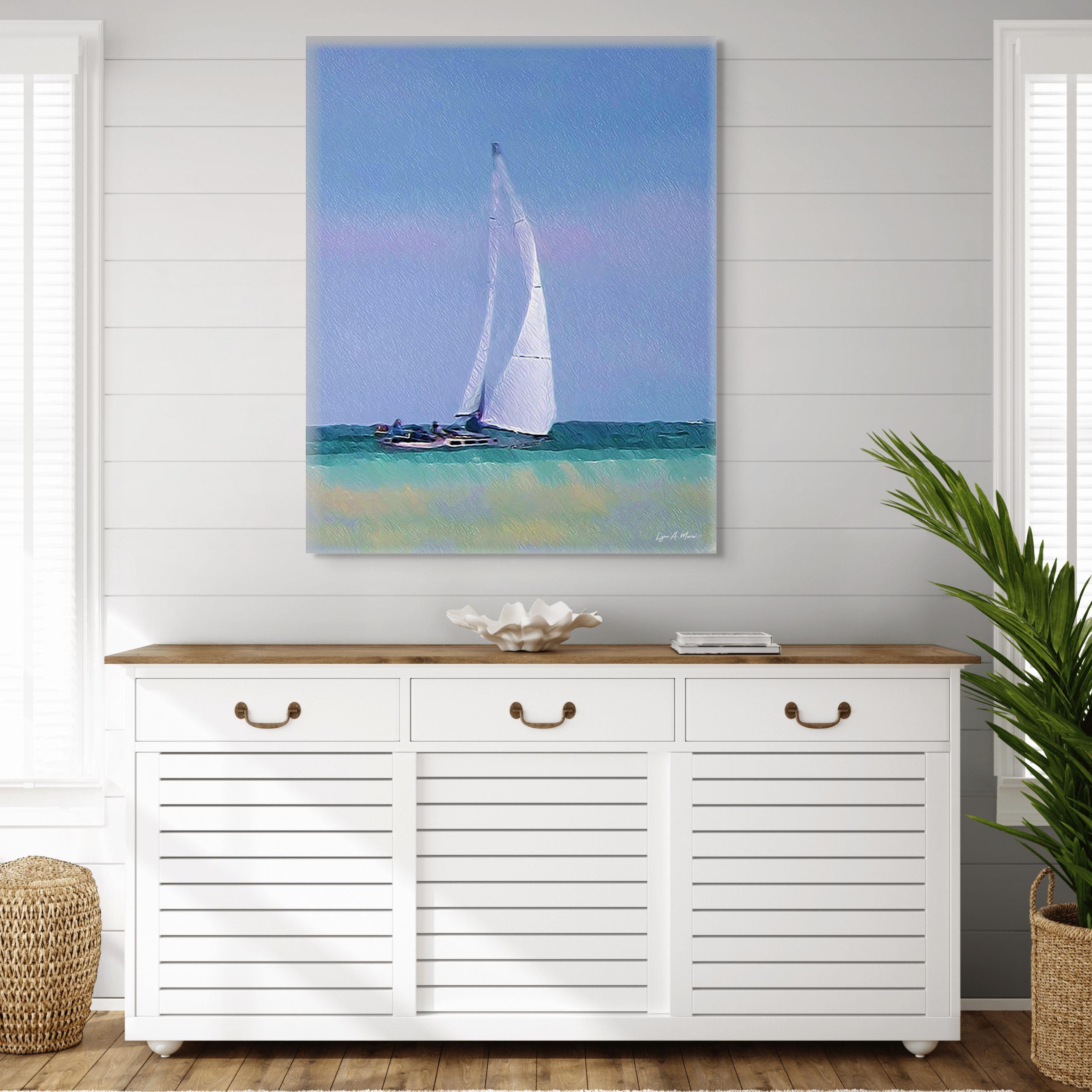 I created this elegant nautical piece to bring real nature and seaside calm to any living room wall. With digitally created brushwork, (not AI generated) and a peaceful boat on the water, it’s perfect for beachhouse decor or a unique gift for nautical and nature lovers.