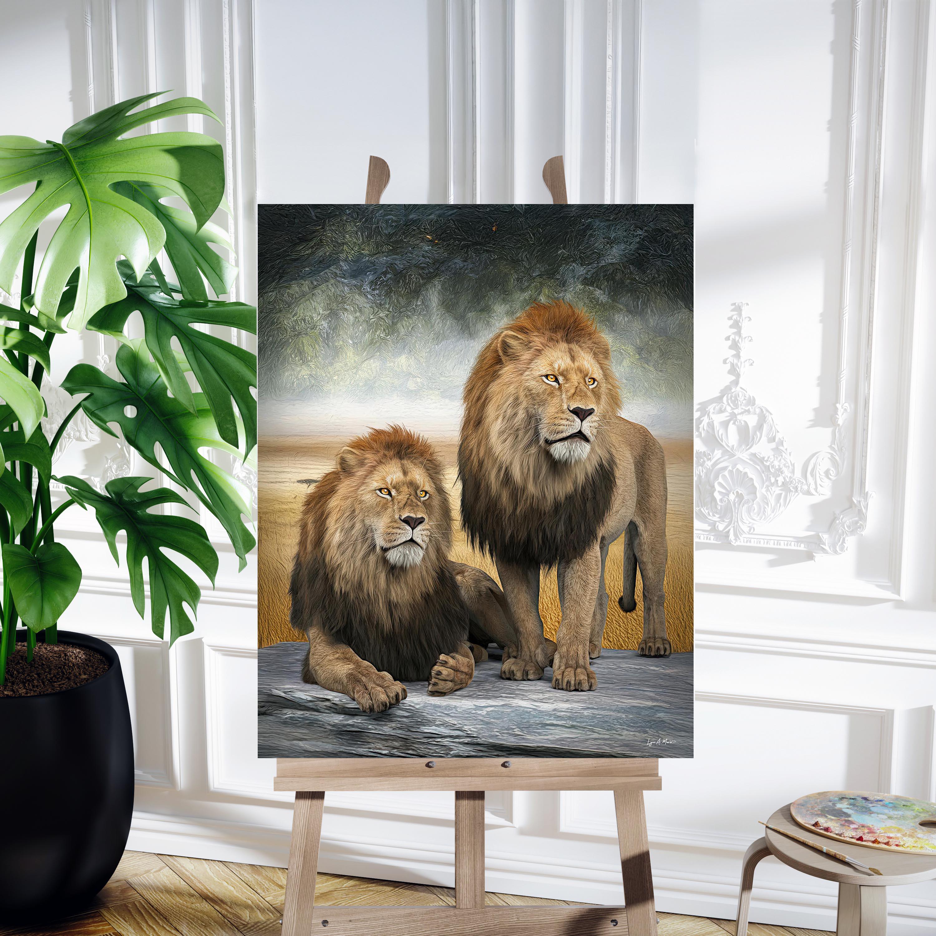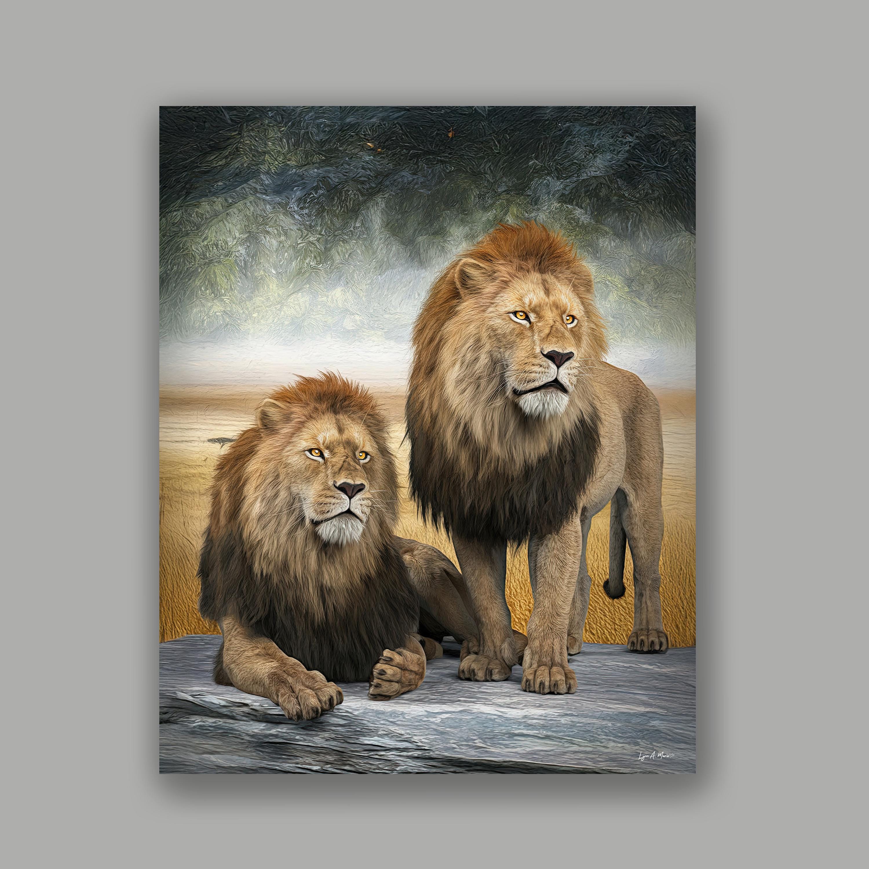 I created this artwork because I wanted to show the bond and strength shared between male lions. In the wild, males often join together for protection and power, forming coalitions that help them survive and defend their pride. I wanted to capture that unity and quiet confidence in this piece.