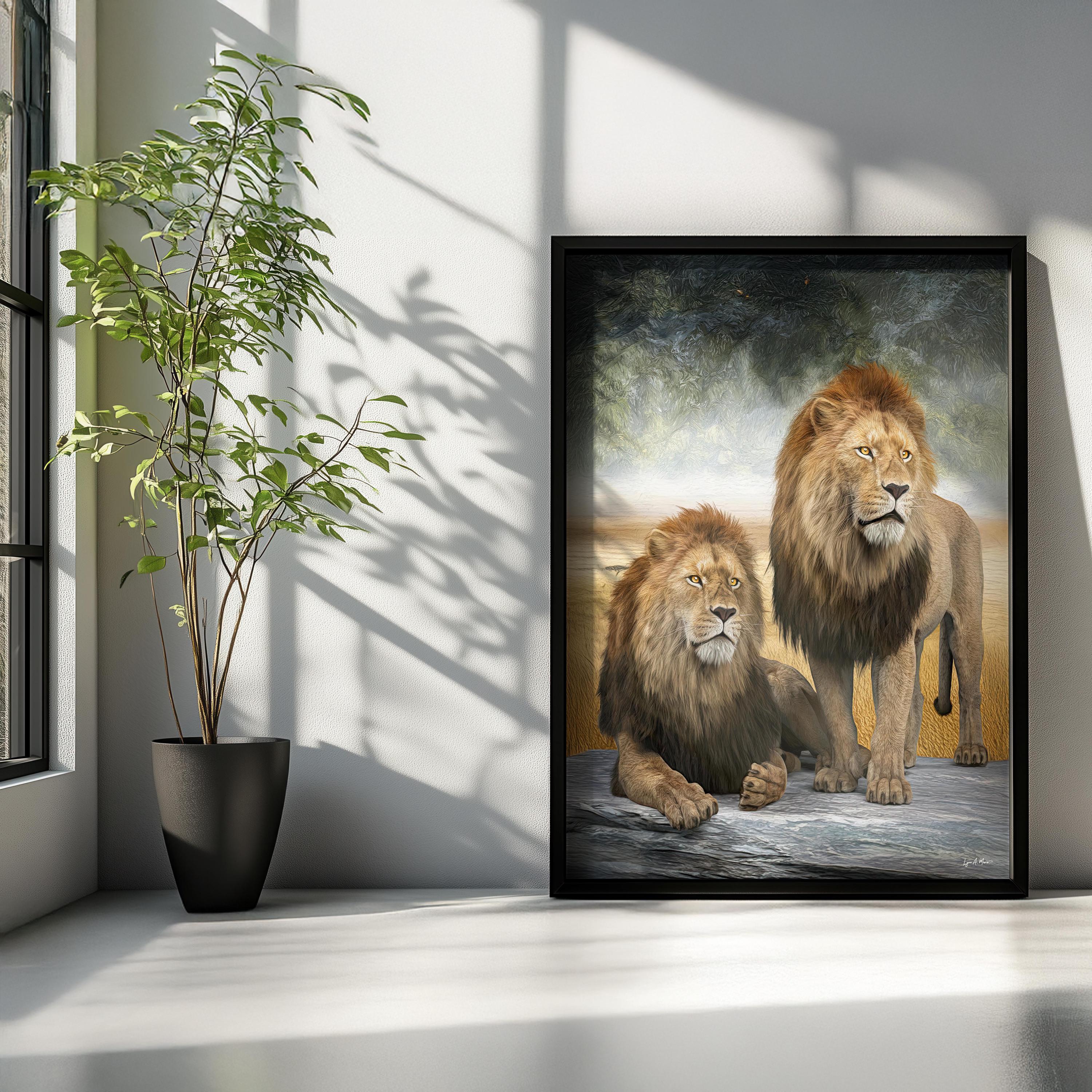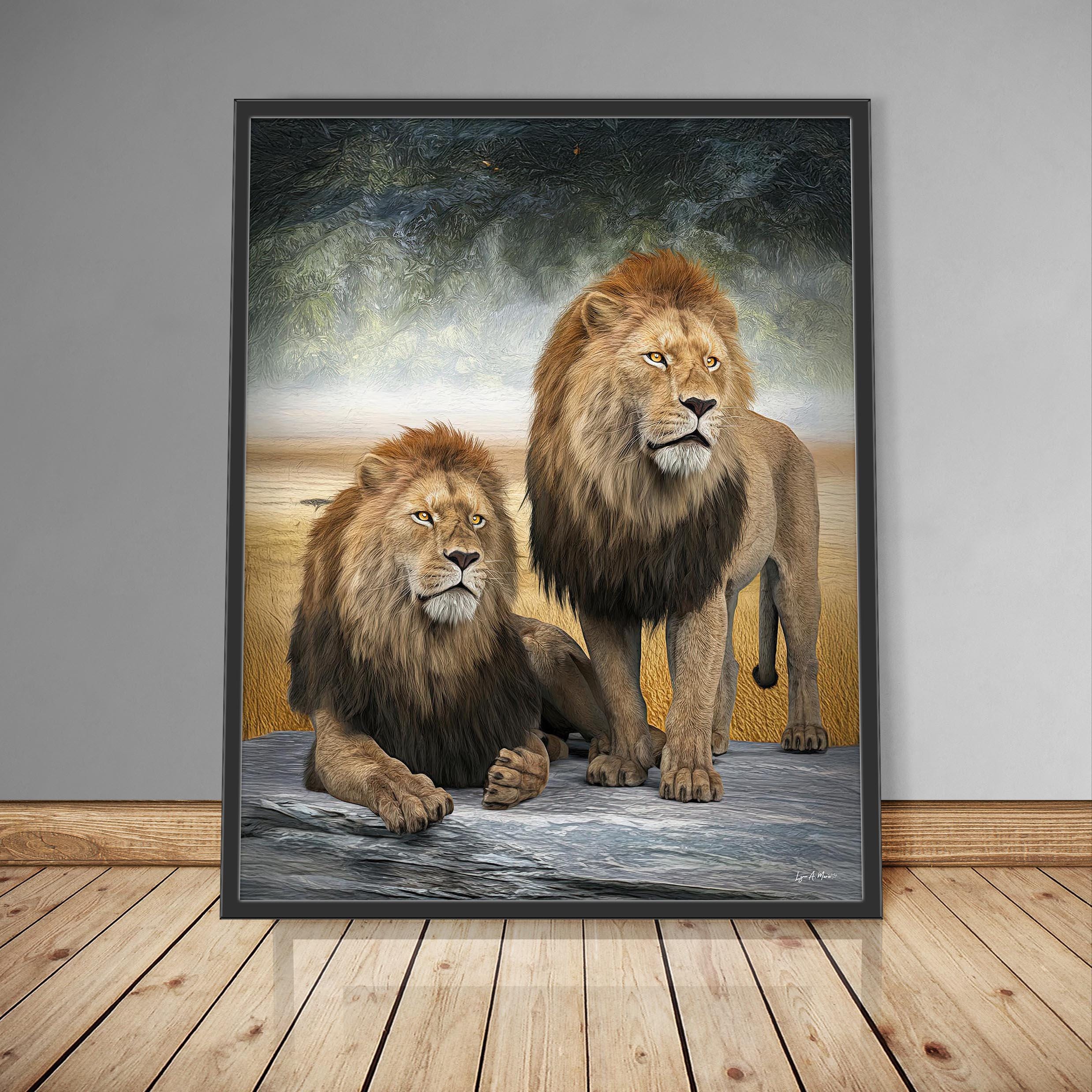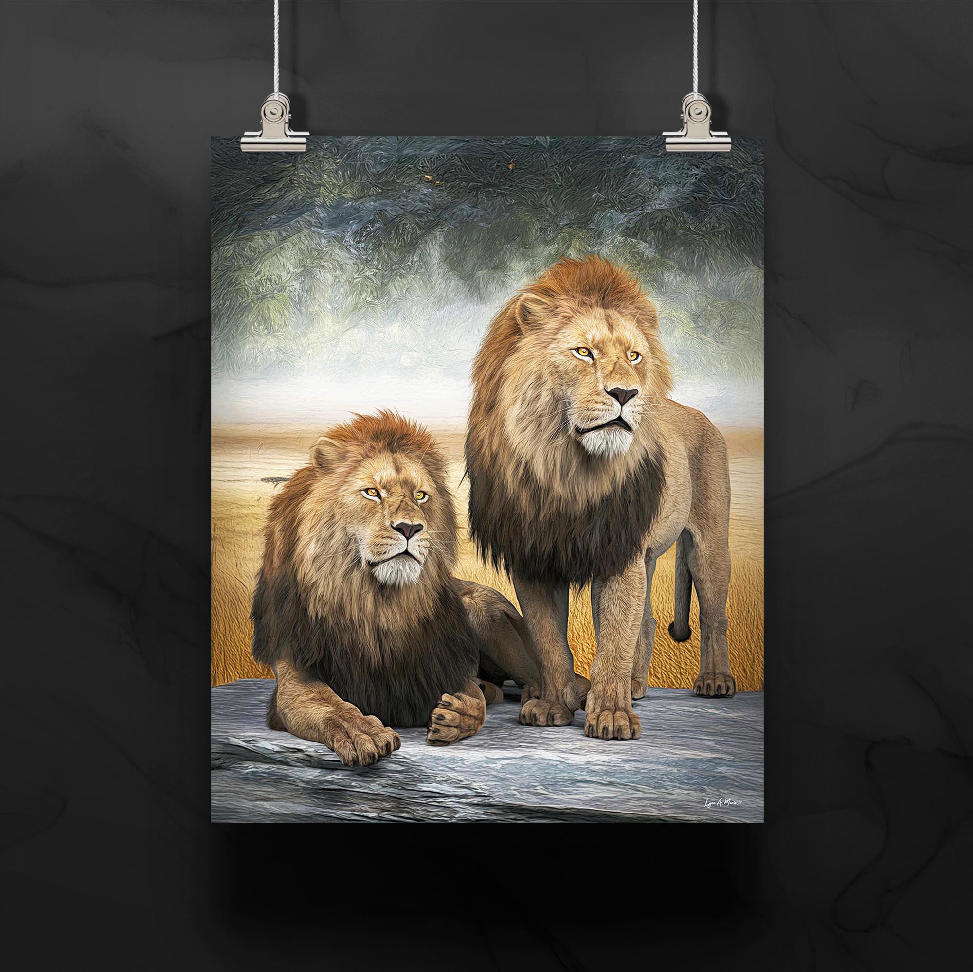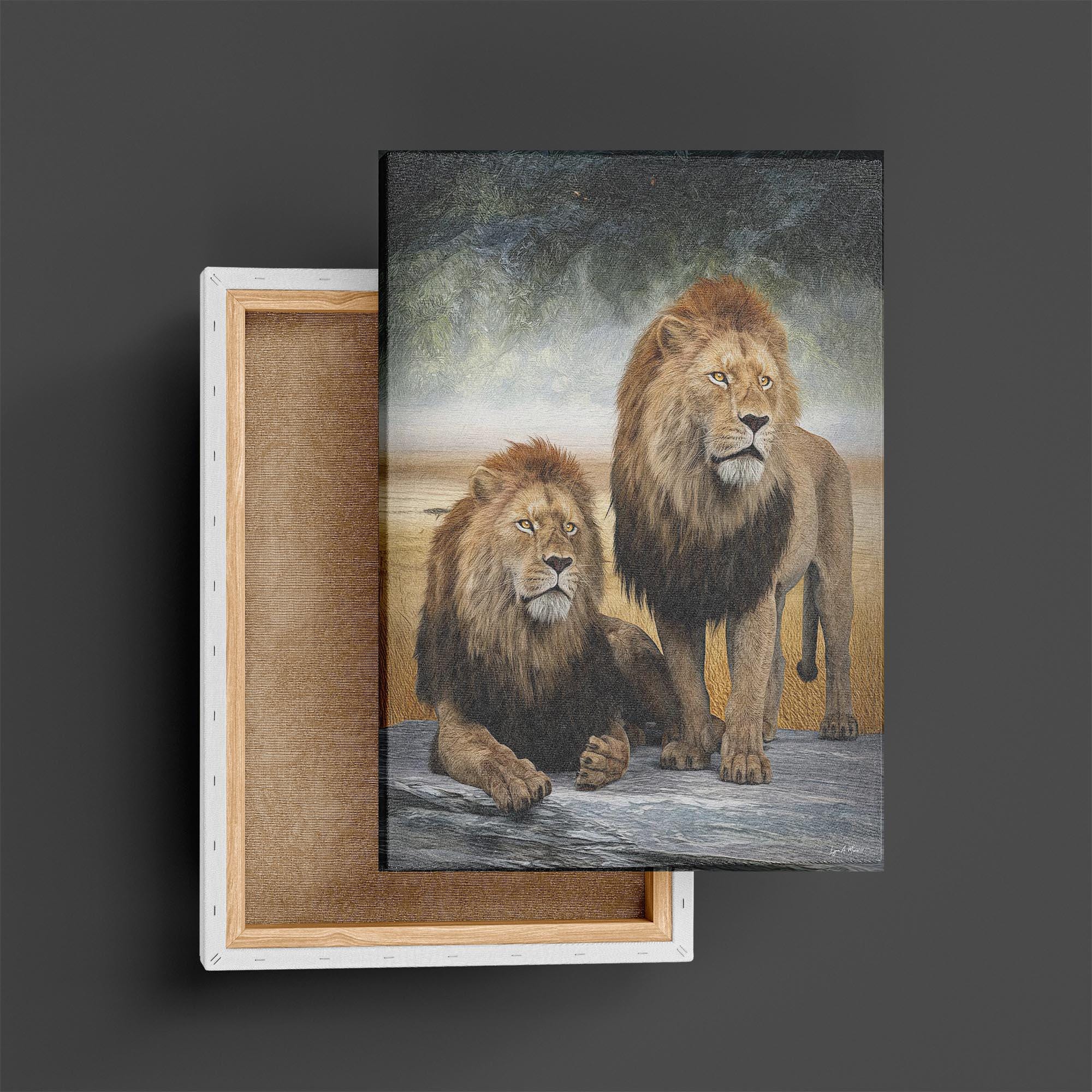 I created this big cat artwork because I wanted to show the bond and strength shared between African male lions. In the wild, males often join together for protection and power, forming coalitions that help them survive and defend their pride. I wanted to capture that unity and quiet confidence in this piece. This nature inspired art would be a perfect gift to any animal lover.