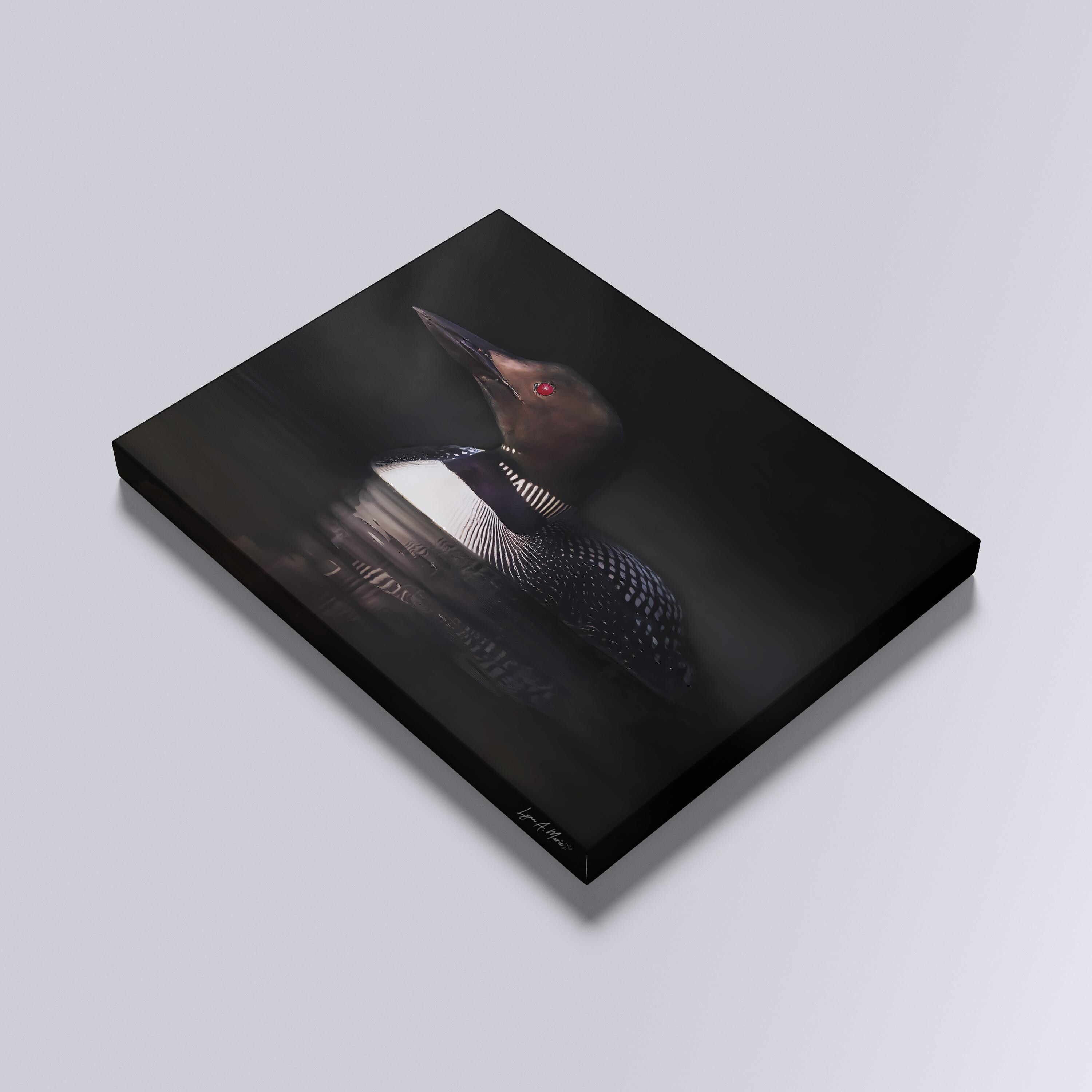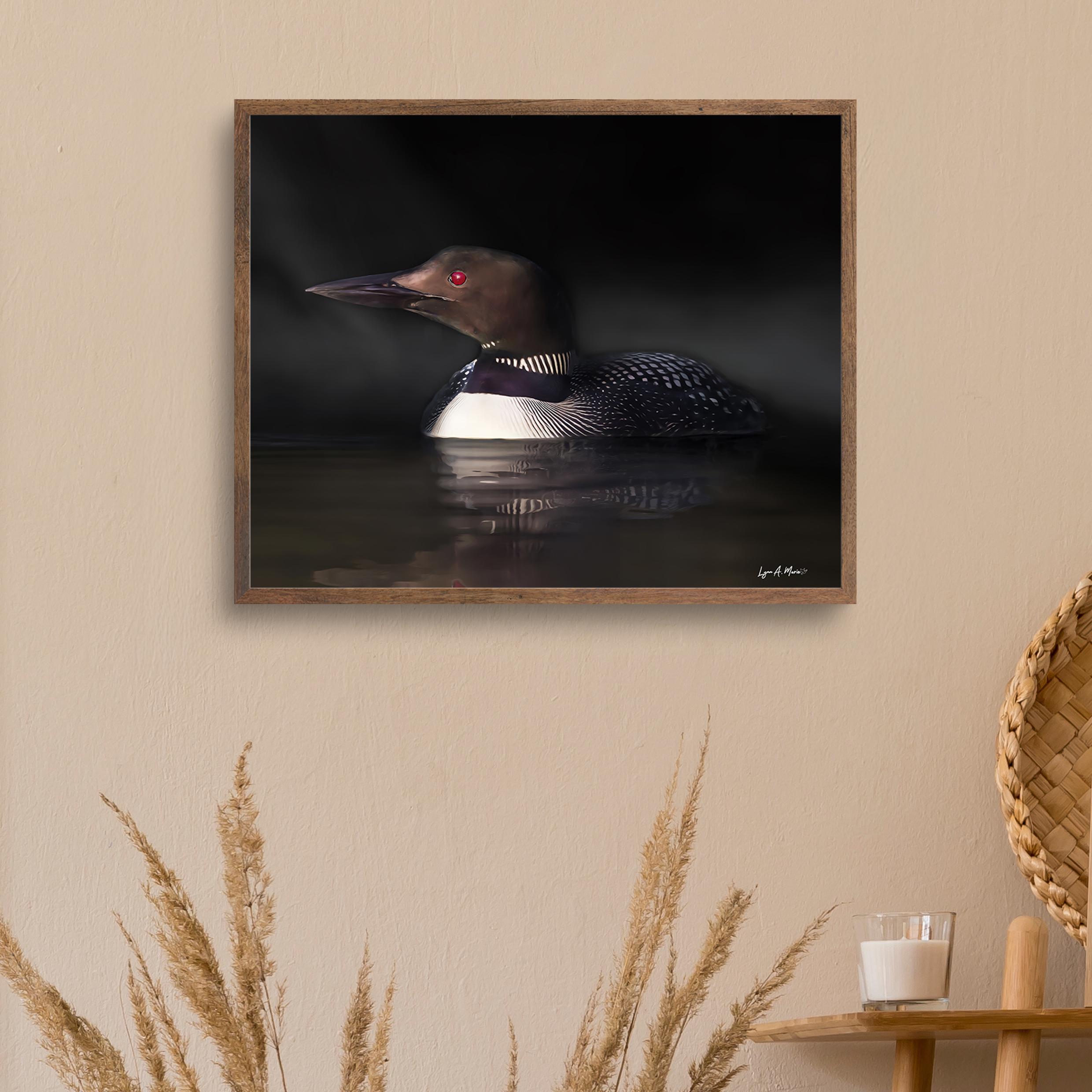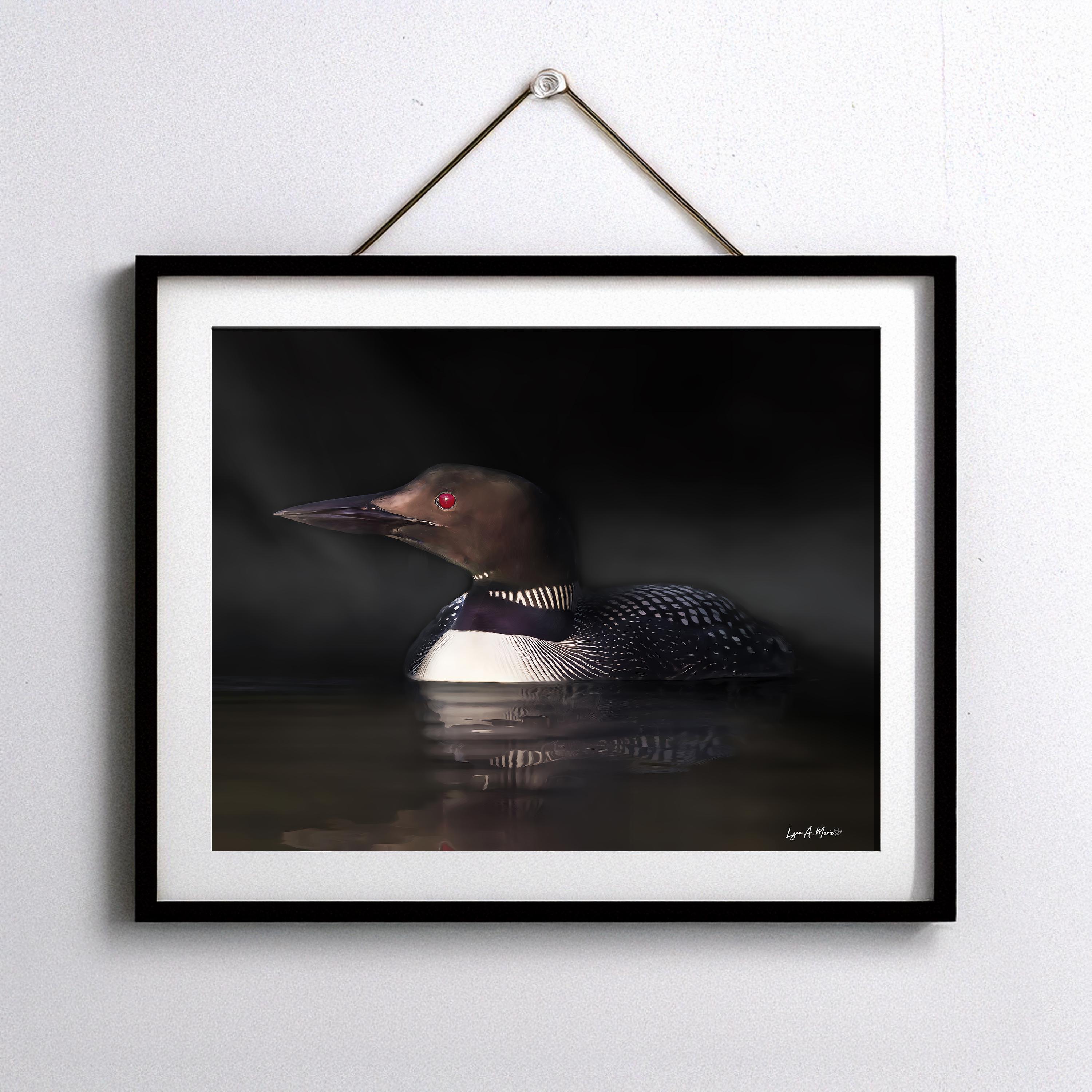 I created “Common Loon in the Dark” to capture the quiet, mysterious feel of a solitary bird moving through still water. The low light and calm reflection highlight the raw beauty of nature, inviting a moment of pause and connection with the wild.