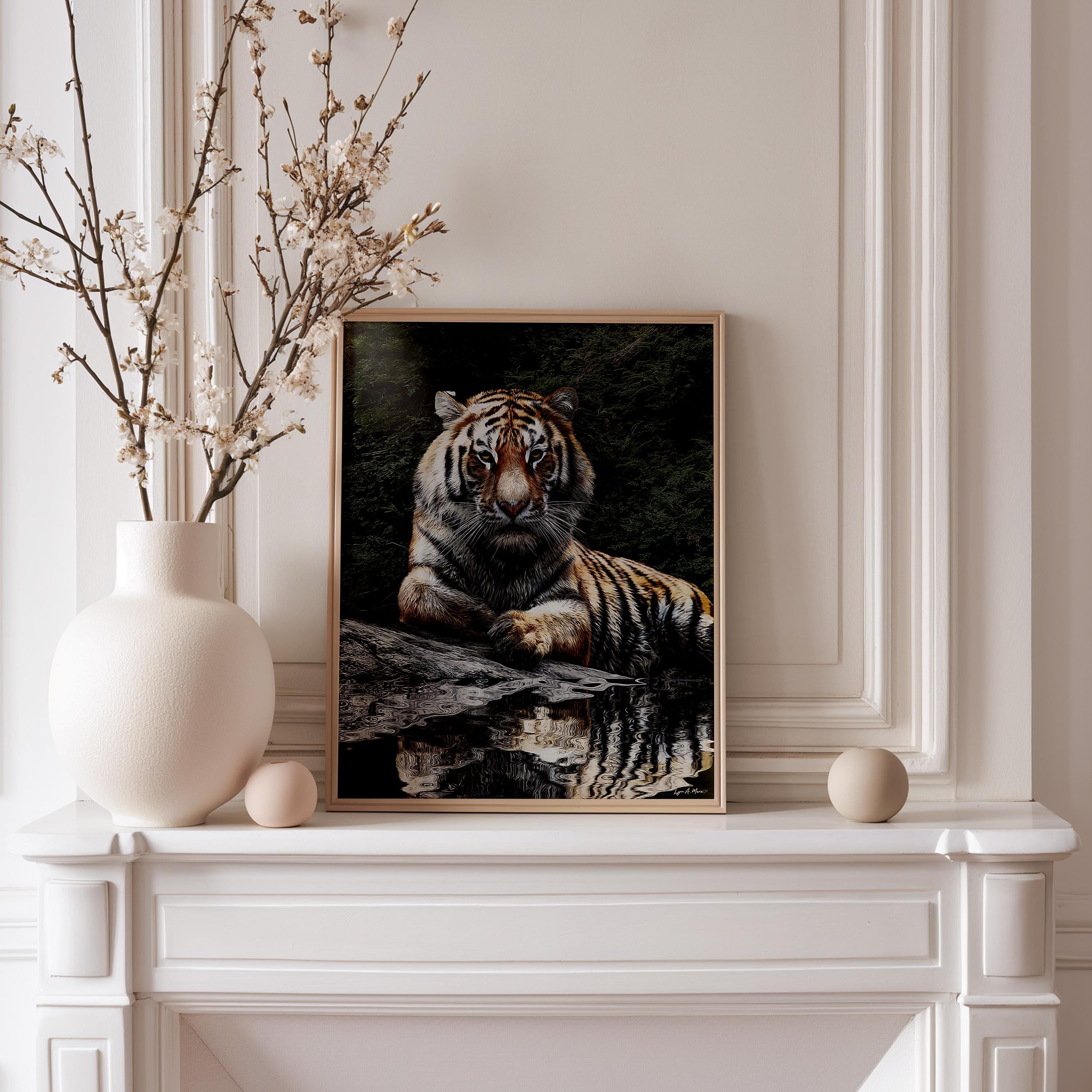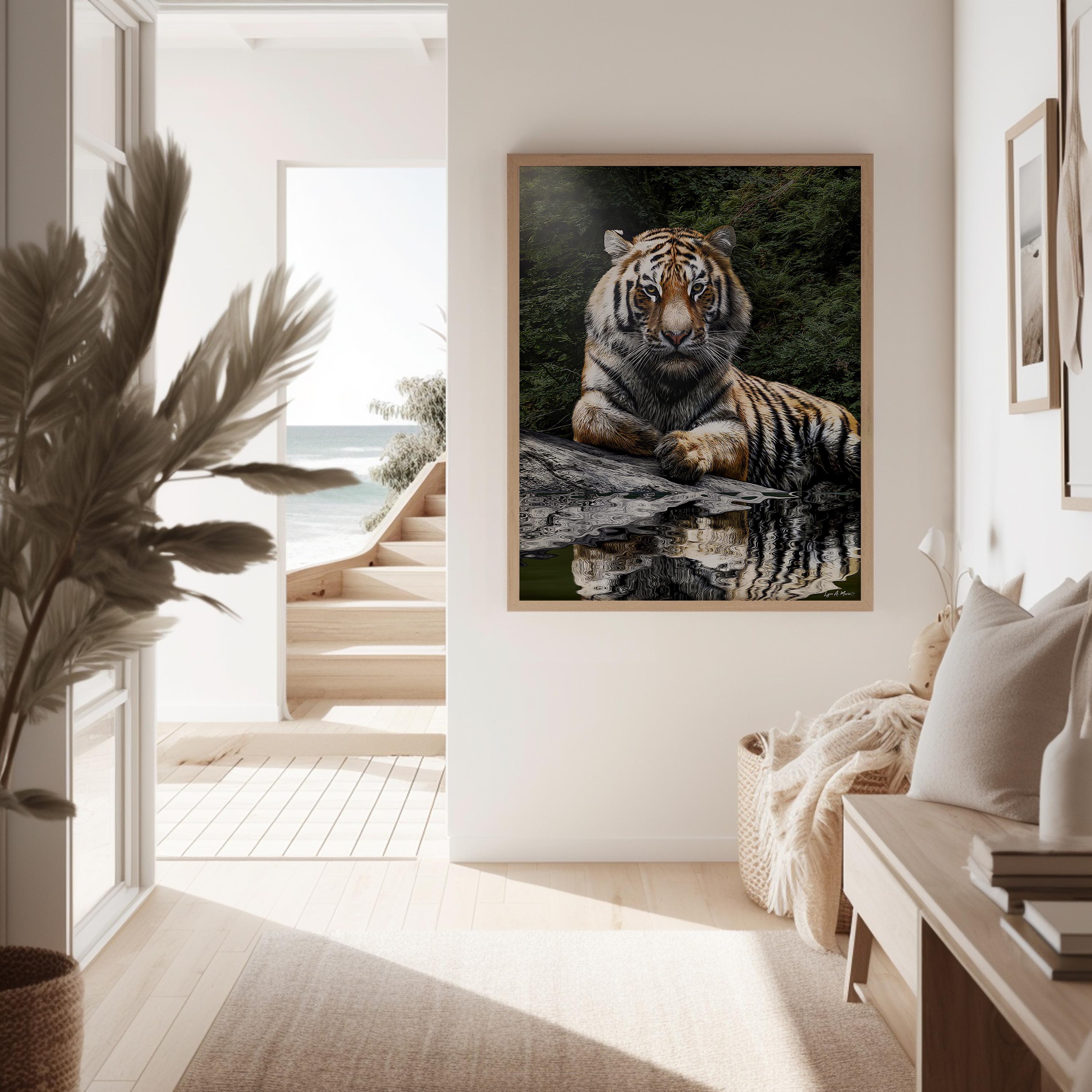 I created this Siberian big cat artwork to bring an elegant, powerful touch of wildlife into living room wall décor. Its real yet softly generated style makes it perfect for any cat lover looking for striking nature decor or a unique gift idea. This was created in Photoshop and Blender 3d, it is NOT AI generated.
