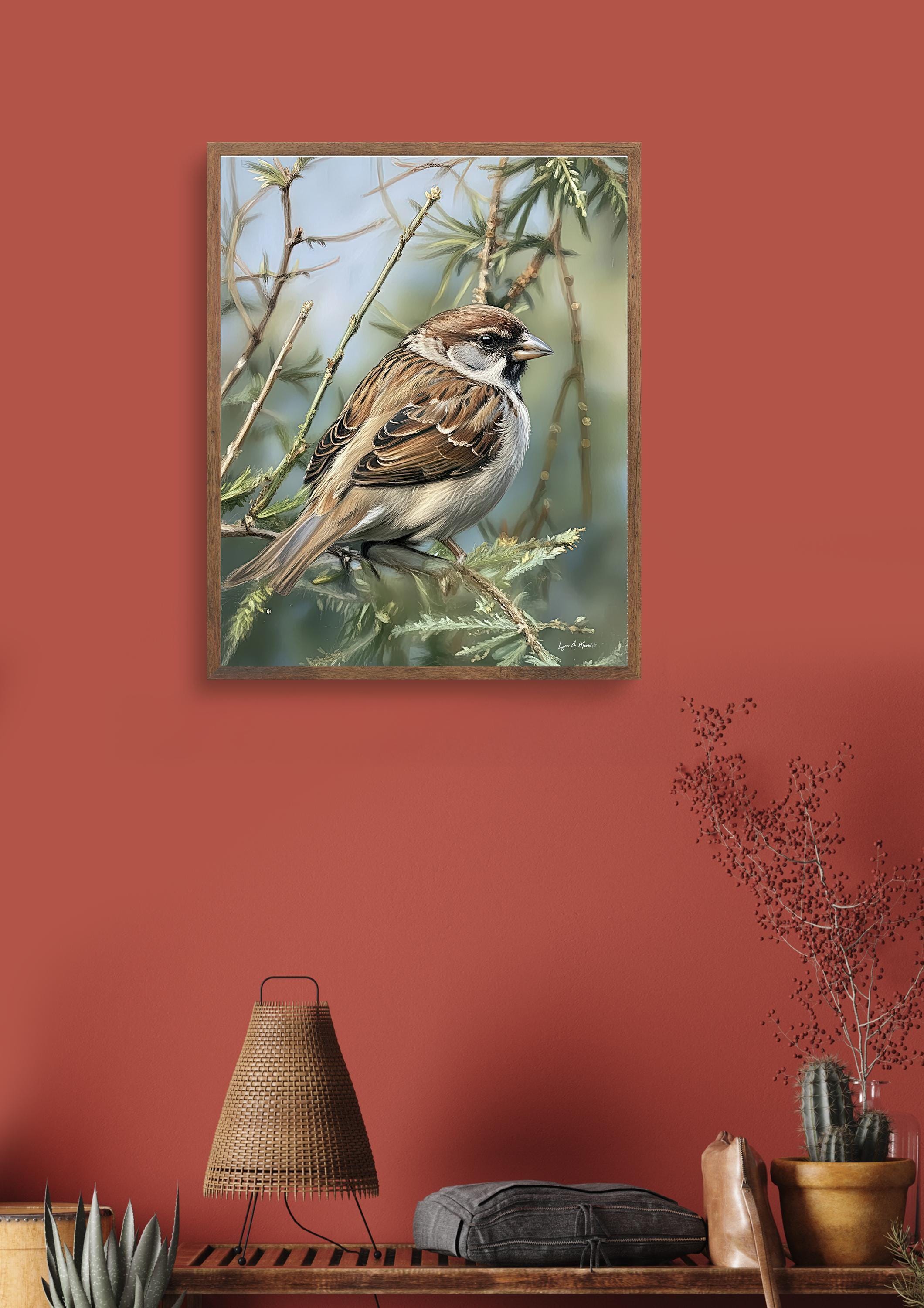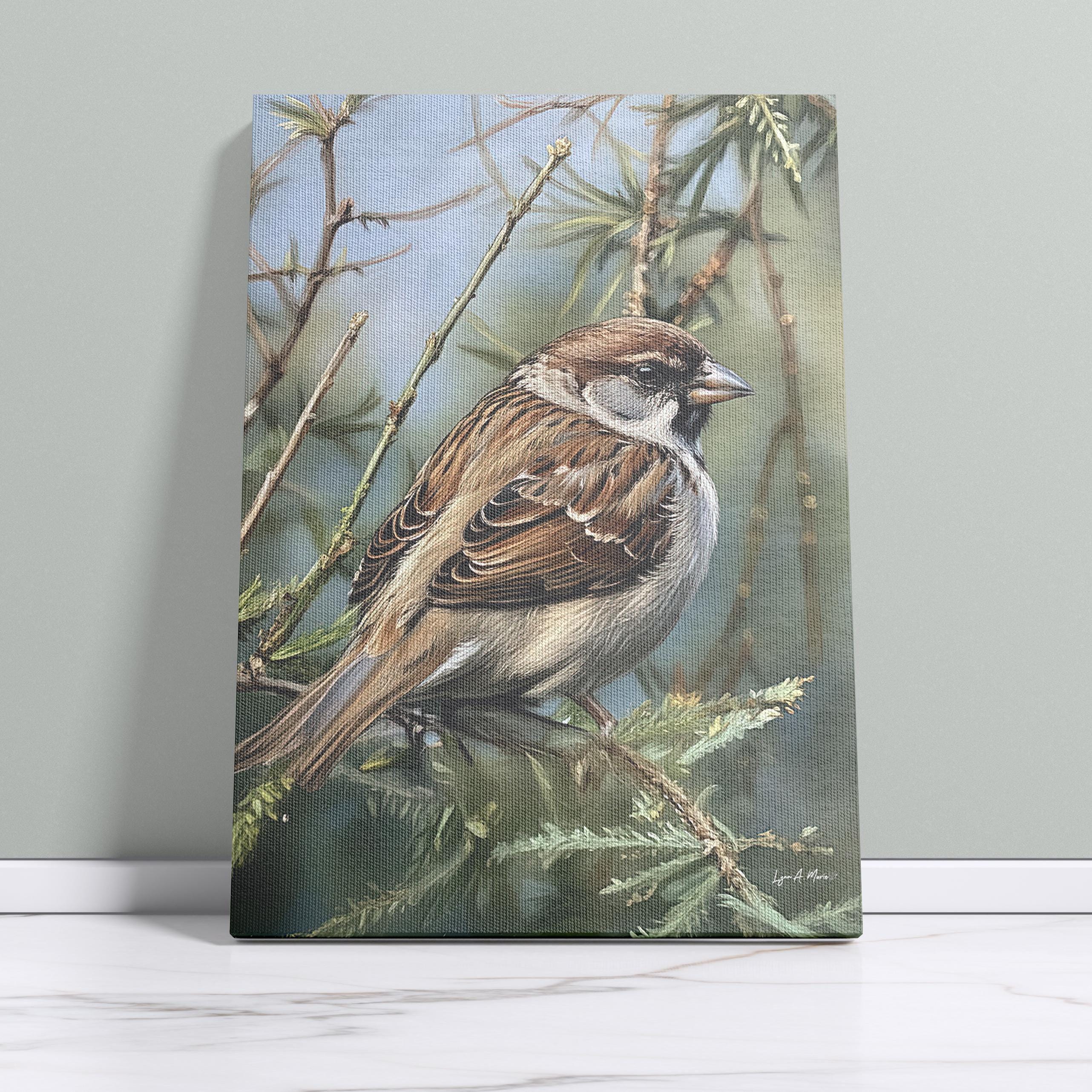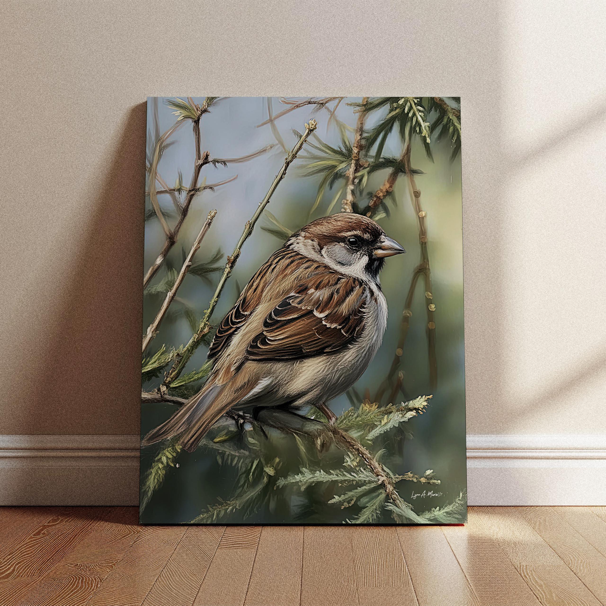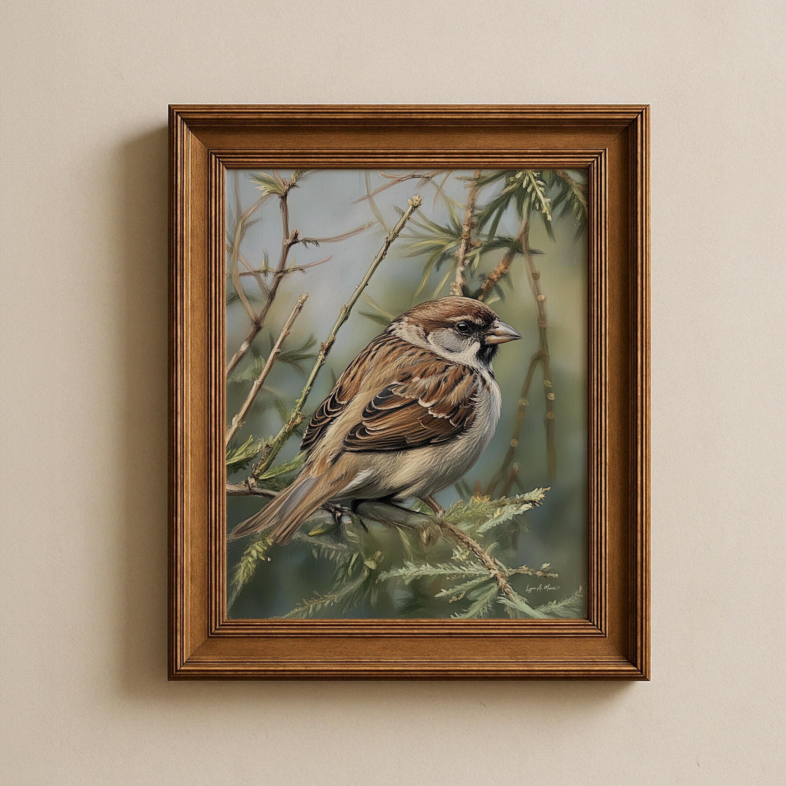 I created this sparrow piece to bring a quiet moment from nature into everyday spaces. I imagined it hanging in a cozy living room or bright home office as calming decor for any bird lover or birdwatcher who feels connected to small backyard birds. The detailed, signed artwork is meant to feel like a little avian treasure, both fine art and a warm gift idea, something you’d keep as a cherished collectible in your house. This gentle animal portrait celebrates the simple beauty of a familiar songbird, turning an ordinary sparrow into a quiet companion on the wall.
